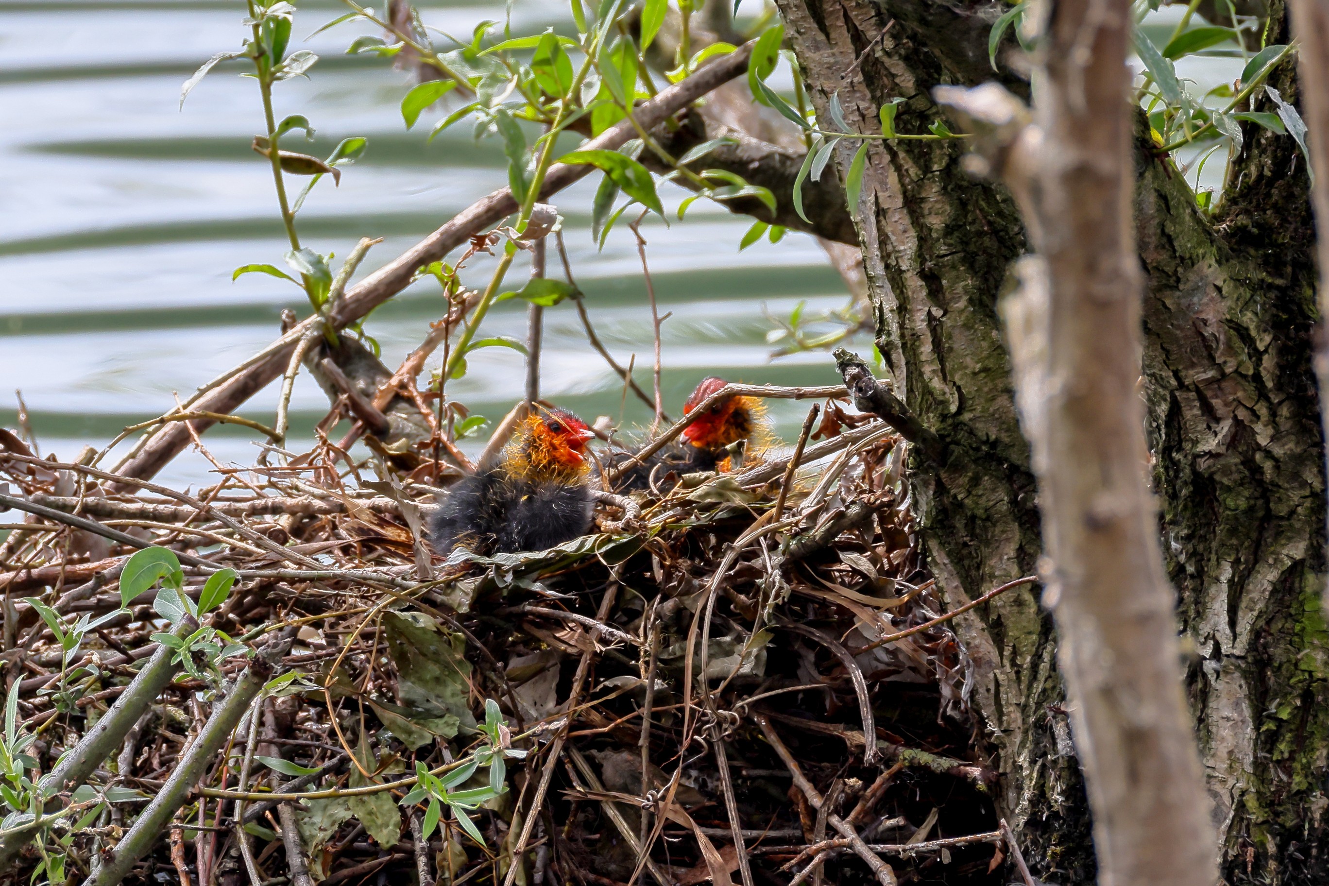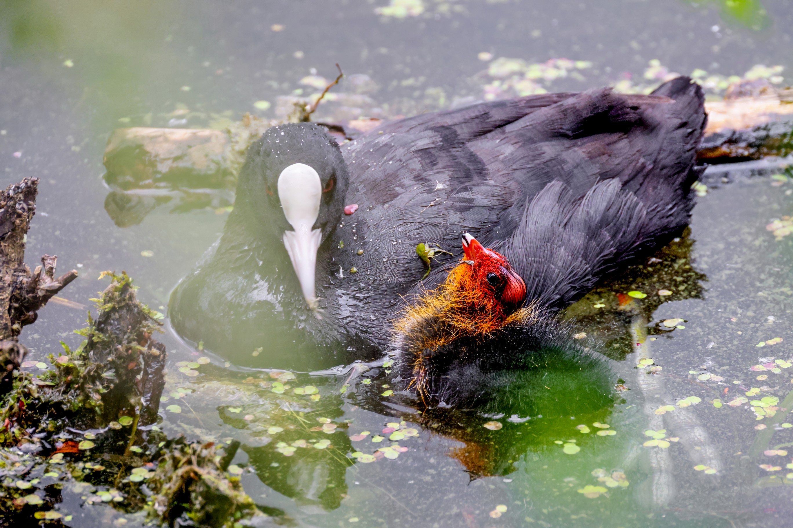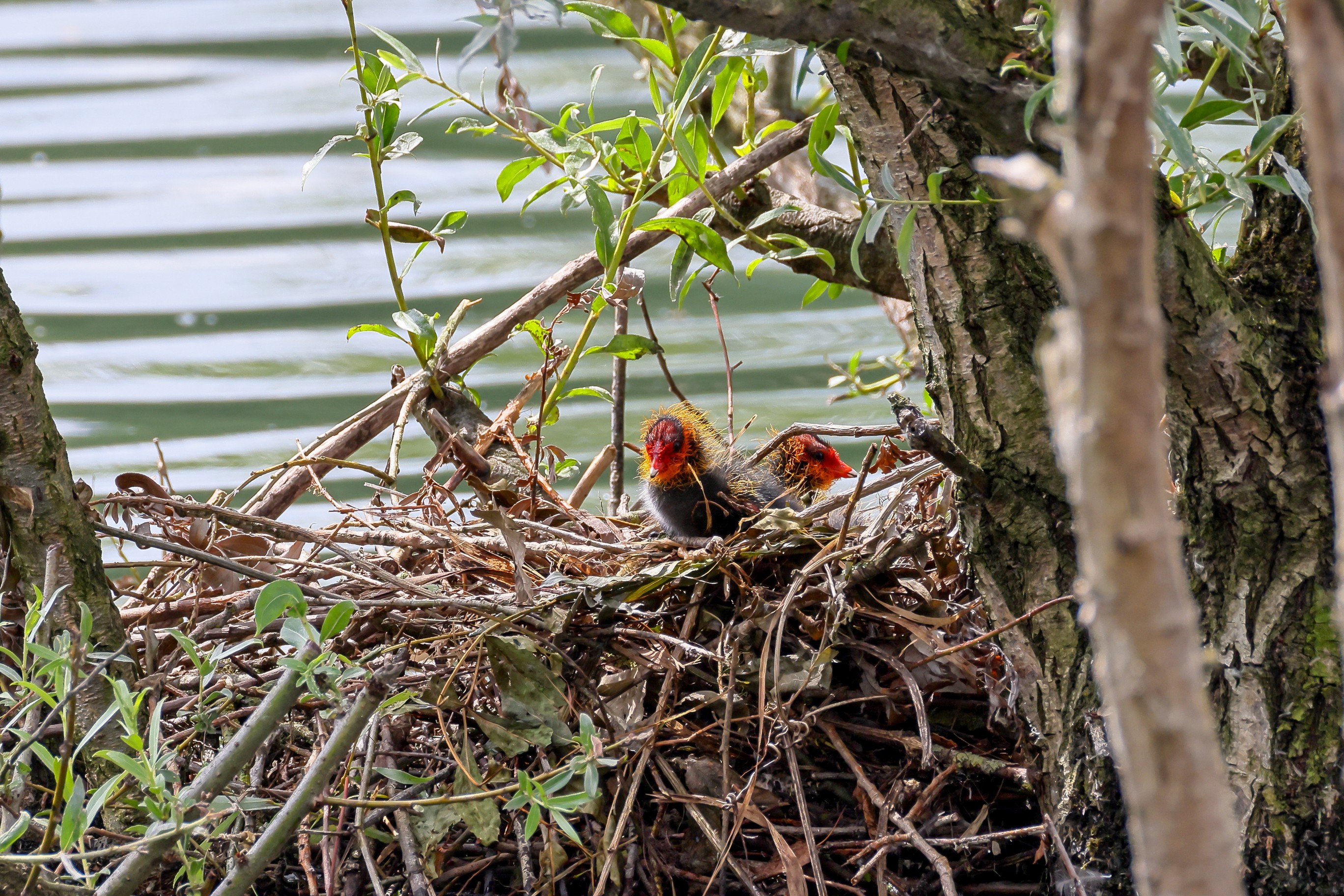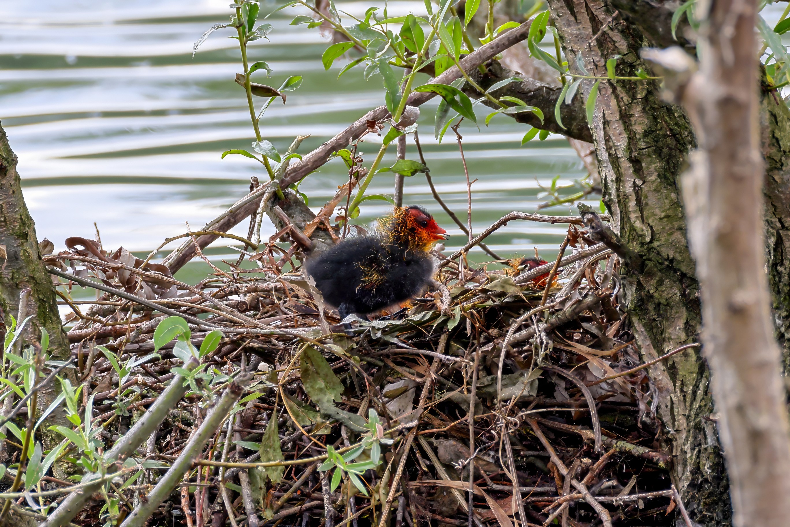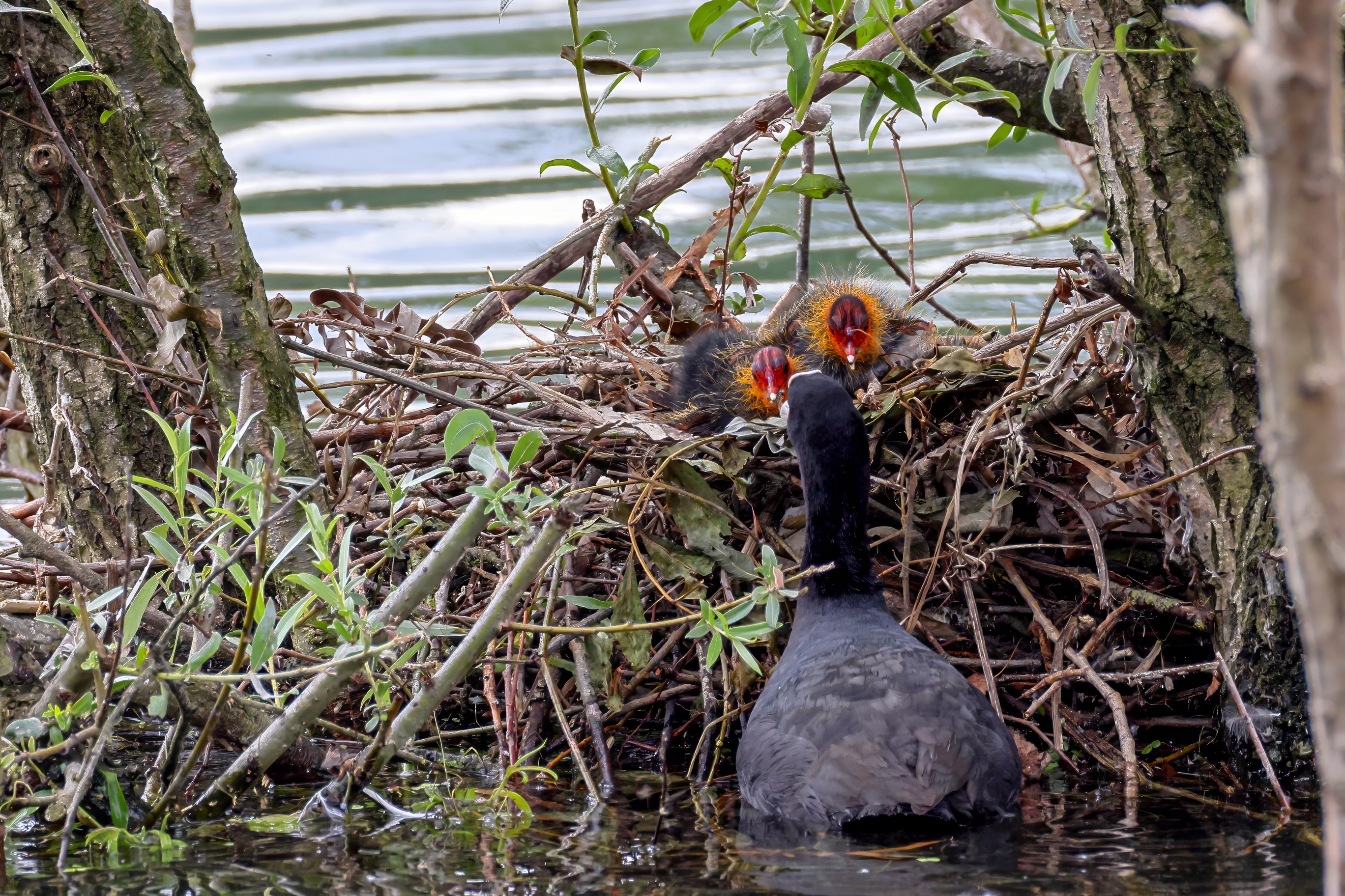 Erster Ausflug der jungen Blässrallen