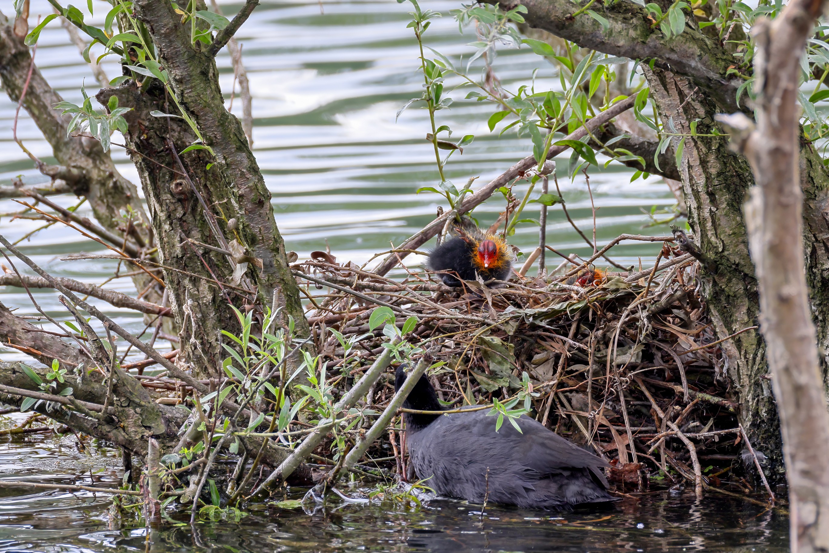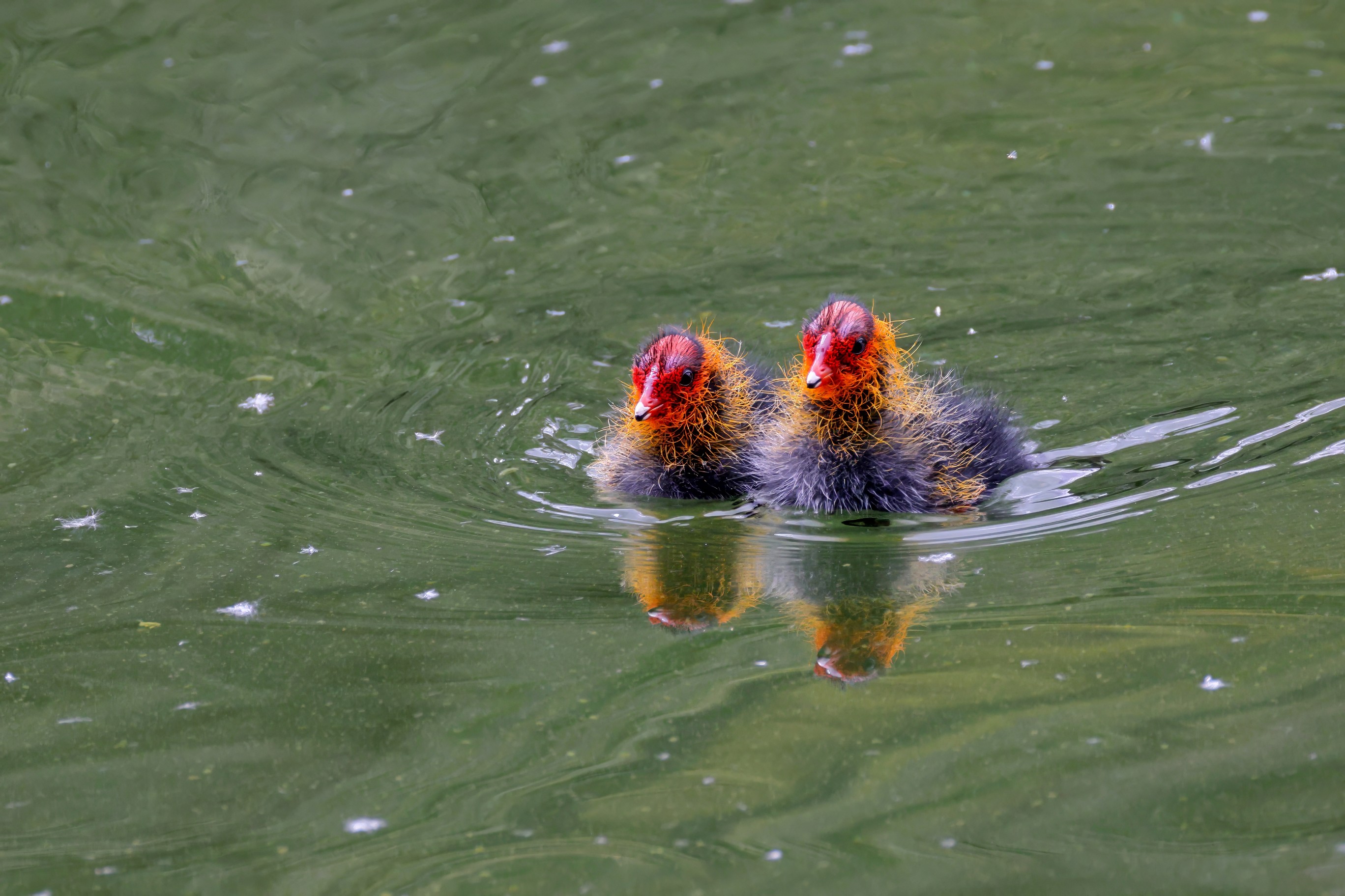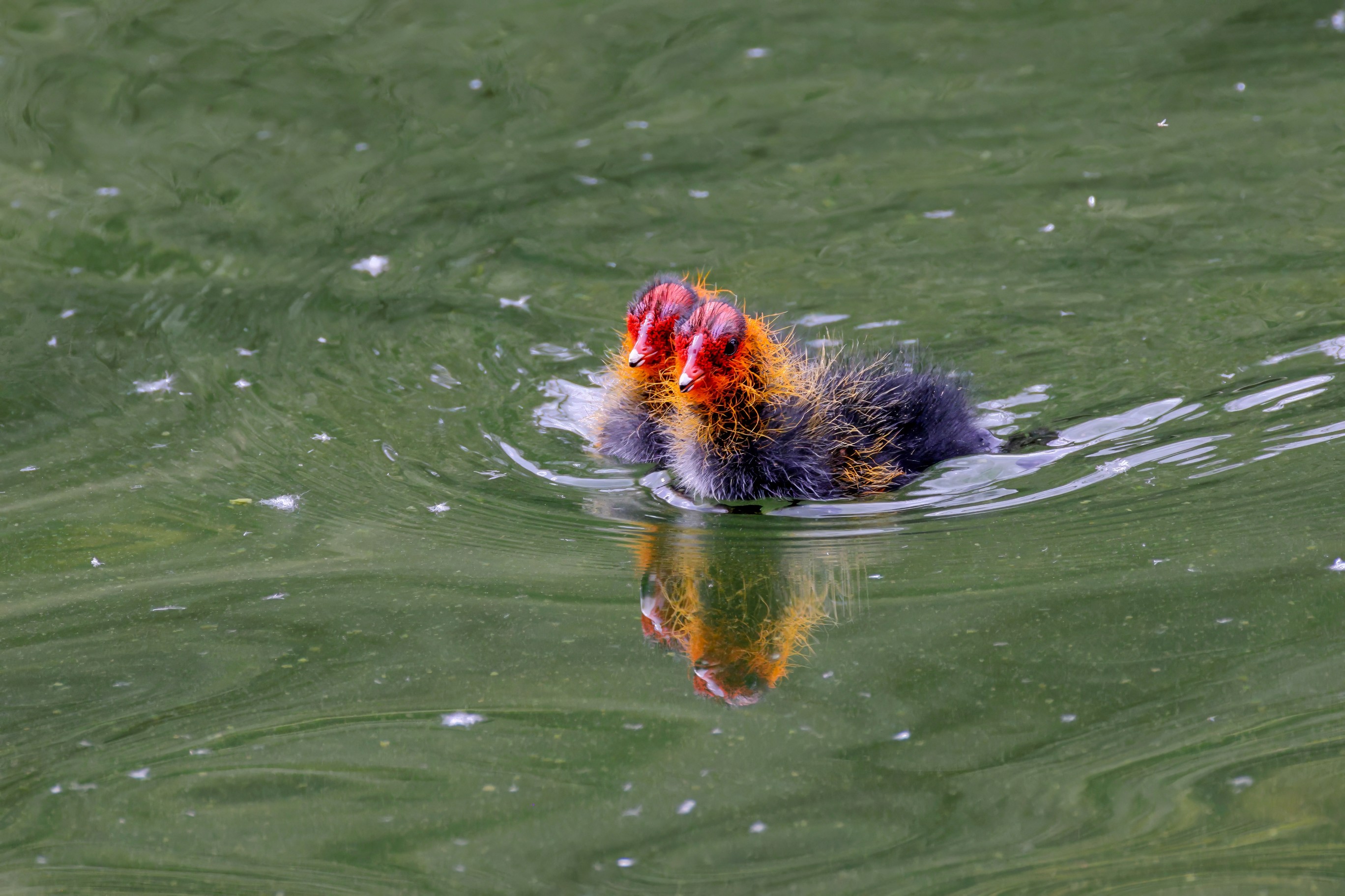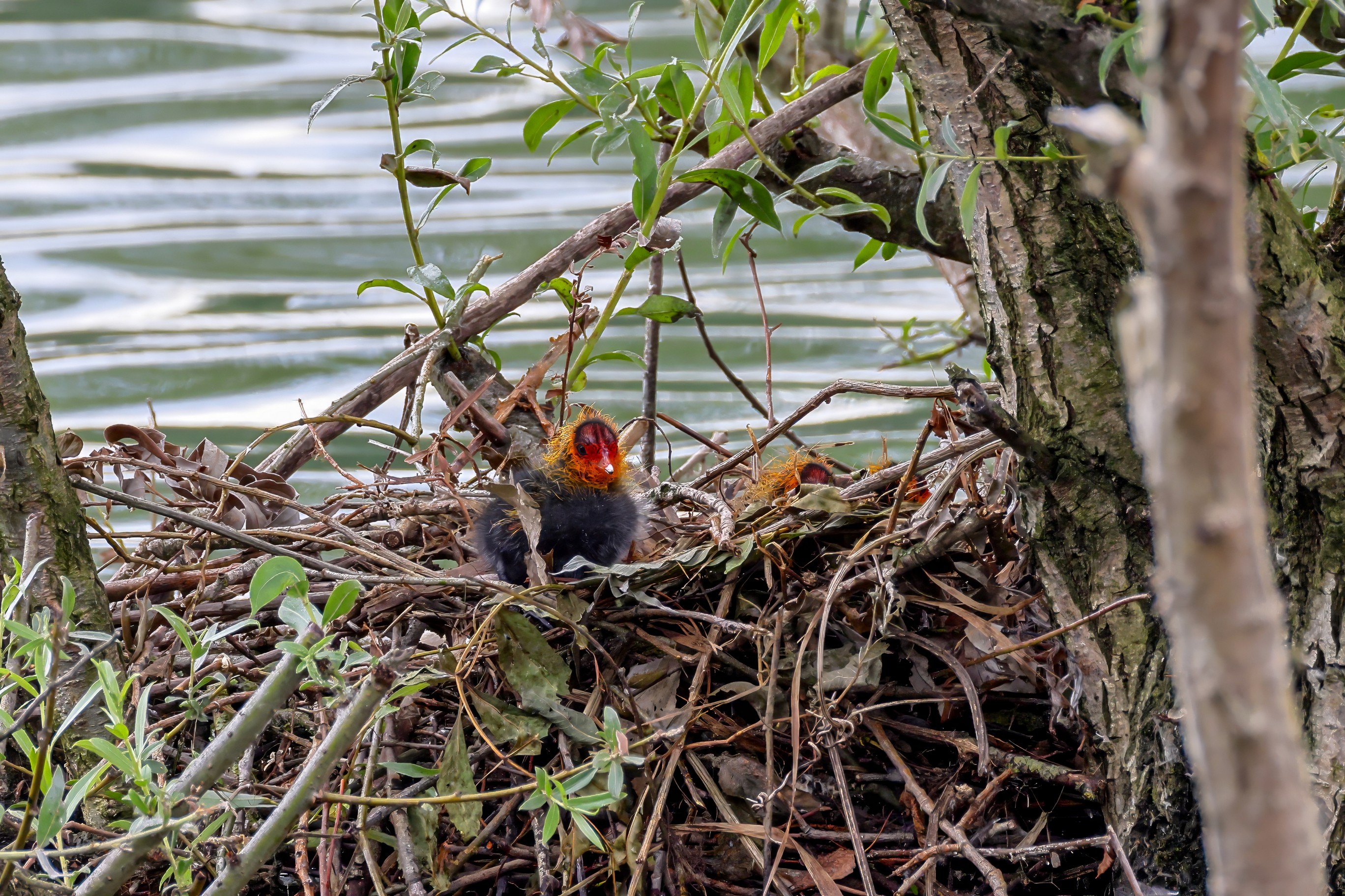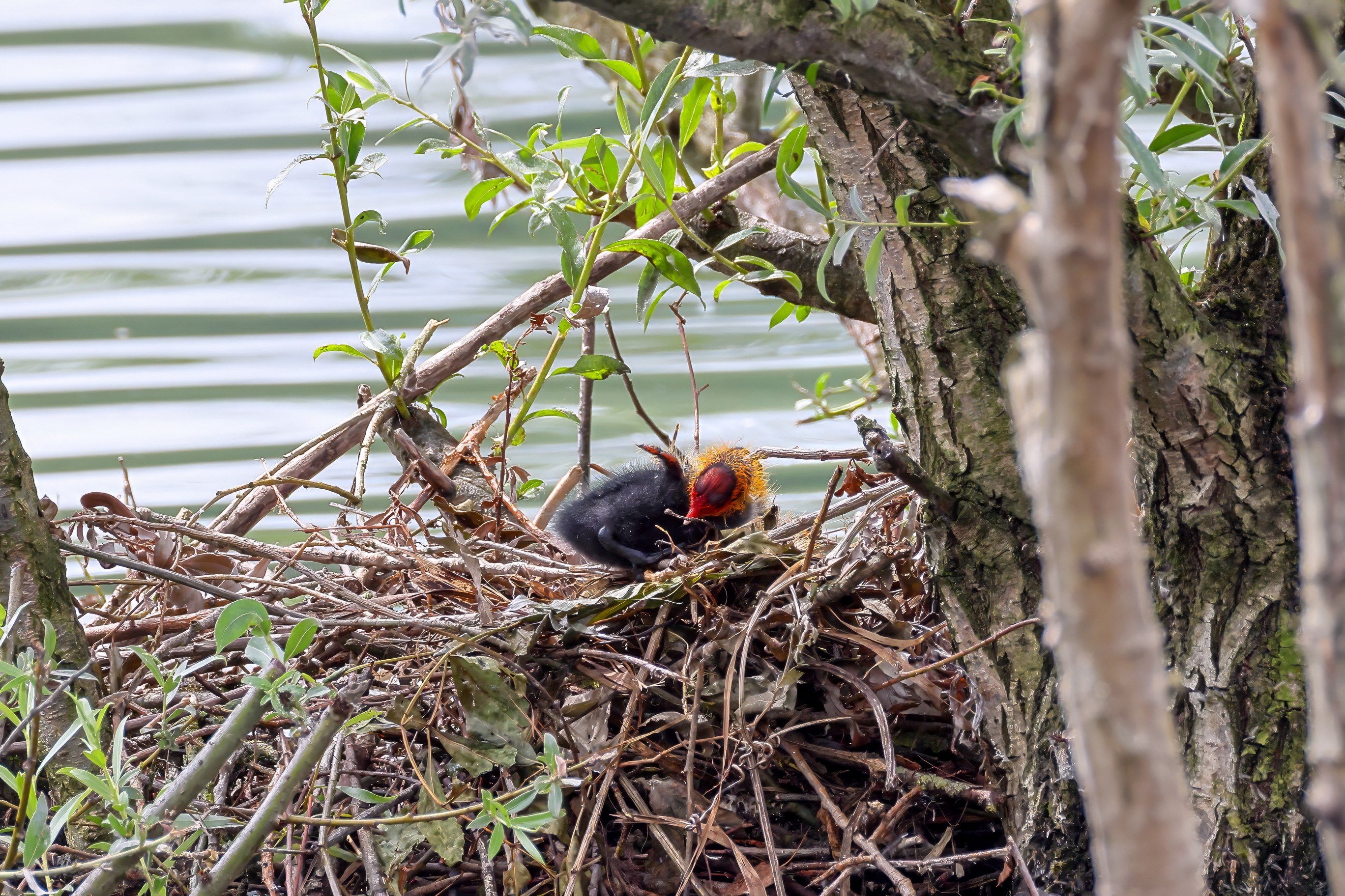 Erster Ausflug der jungen Blässrallen