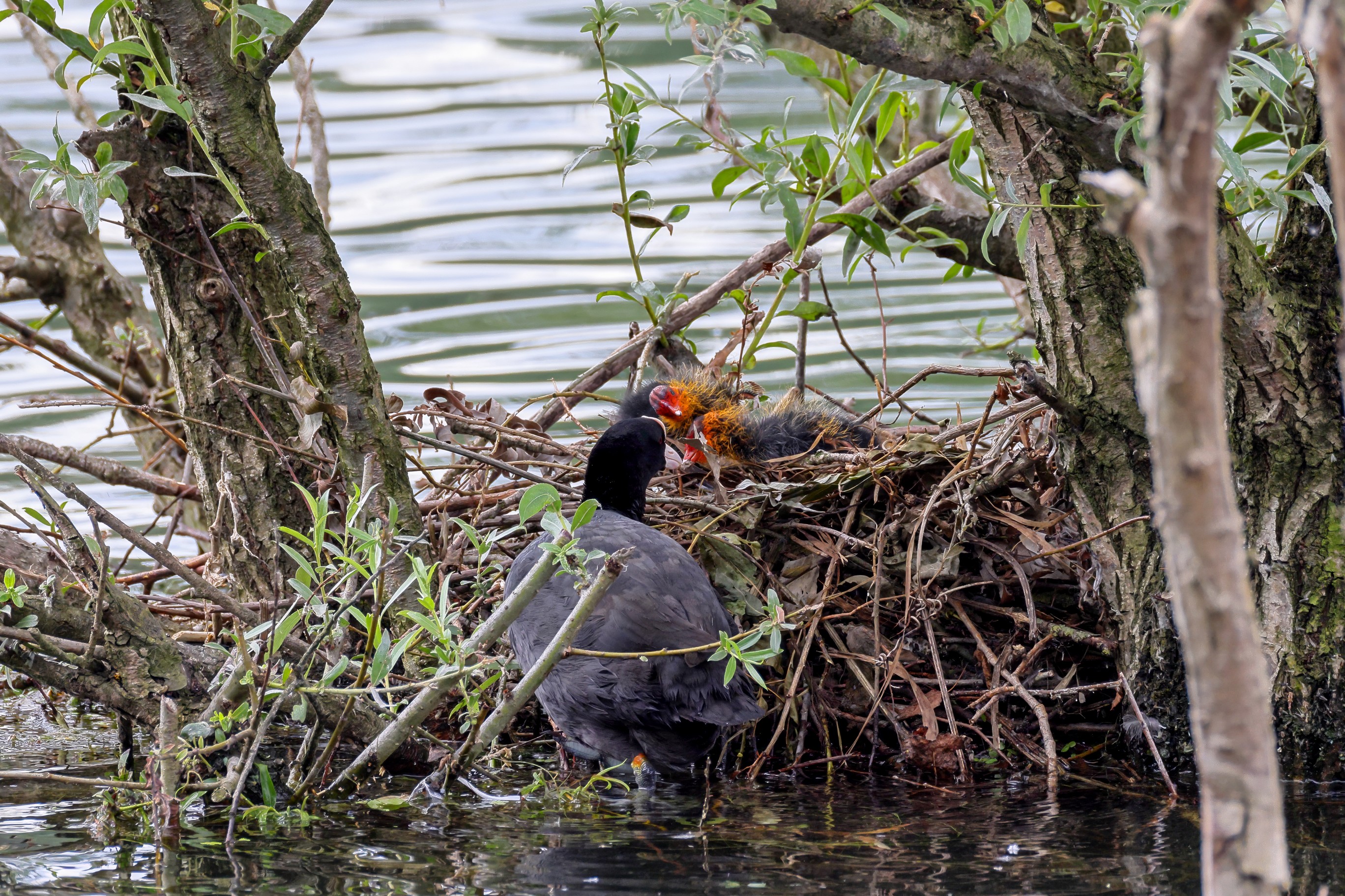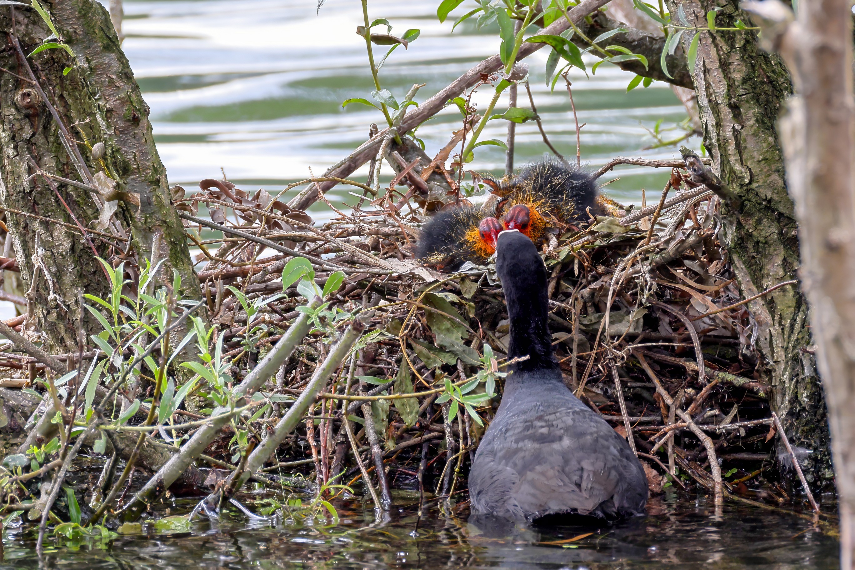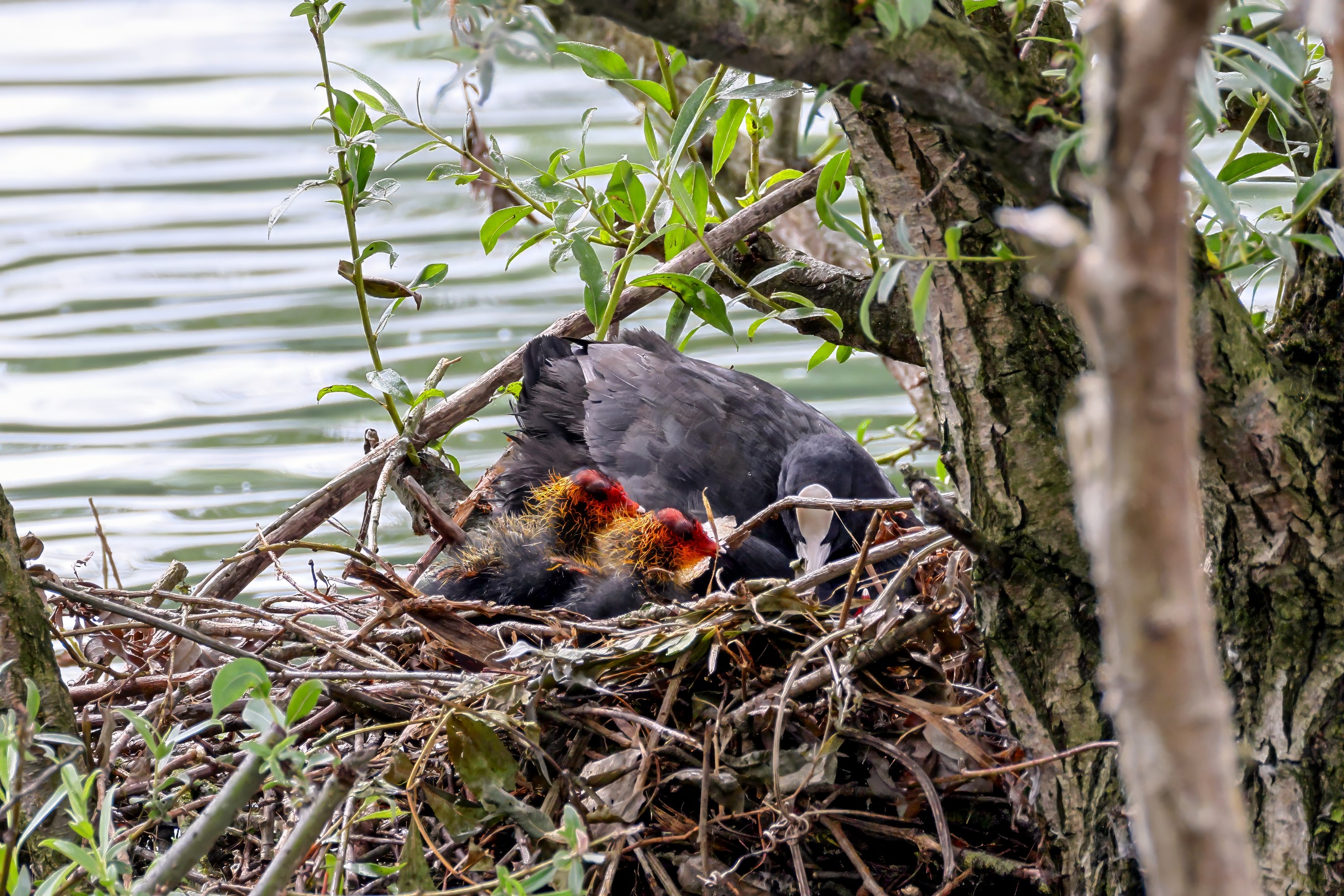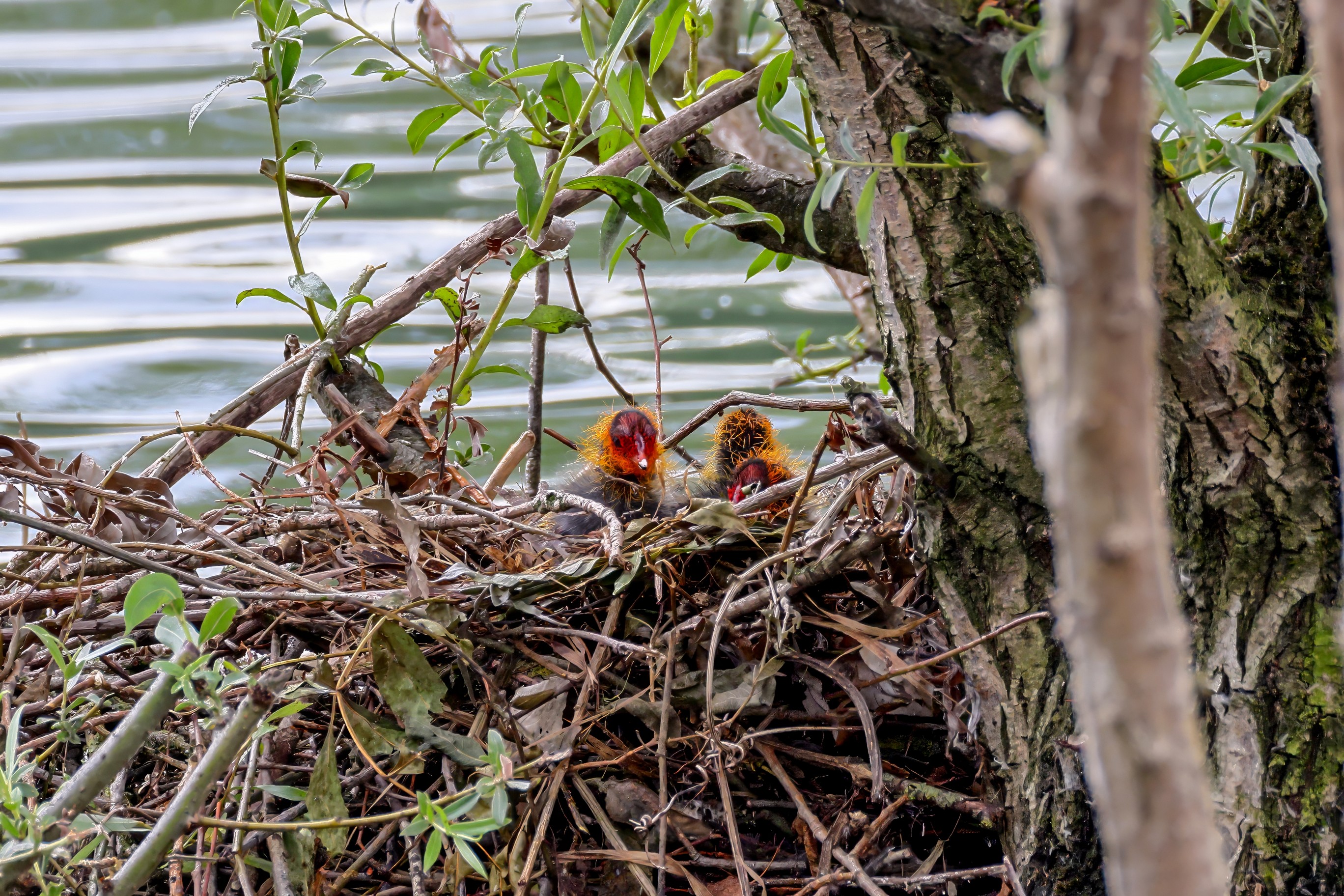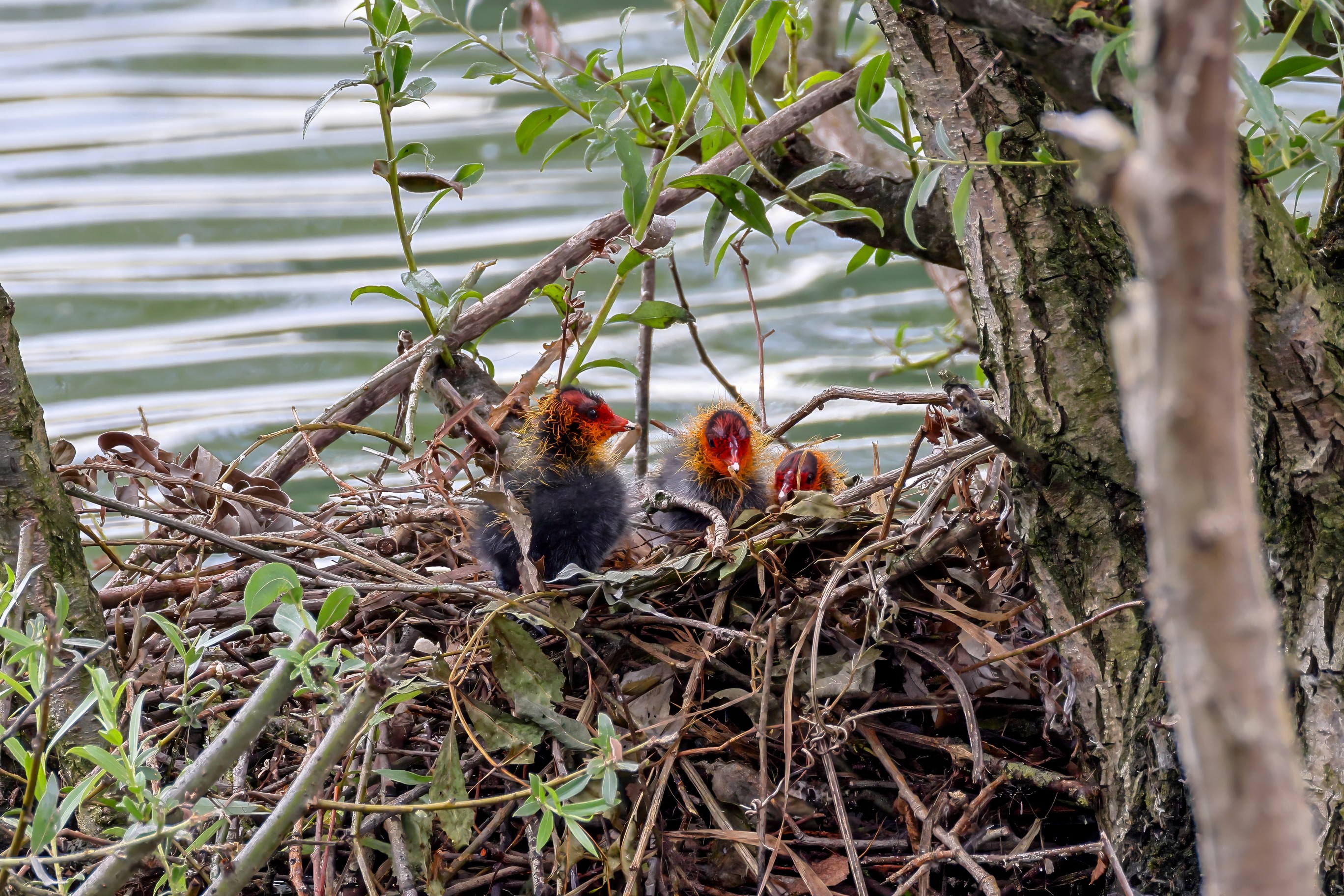 Erster Ausflug der jungen Blässrallen