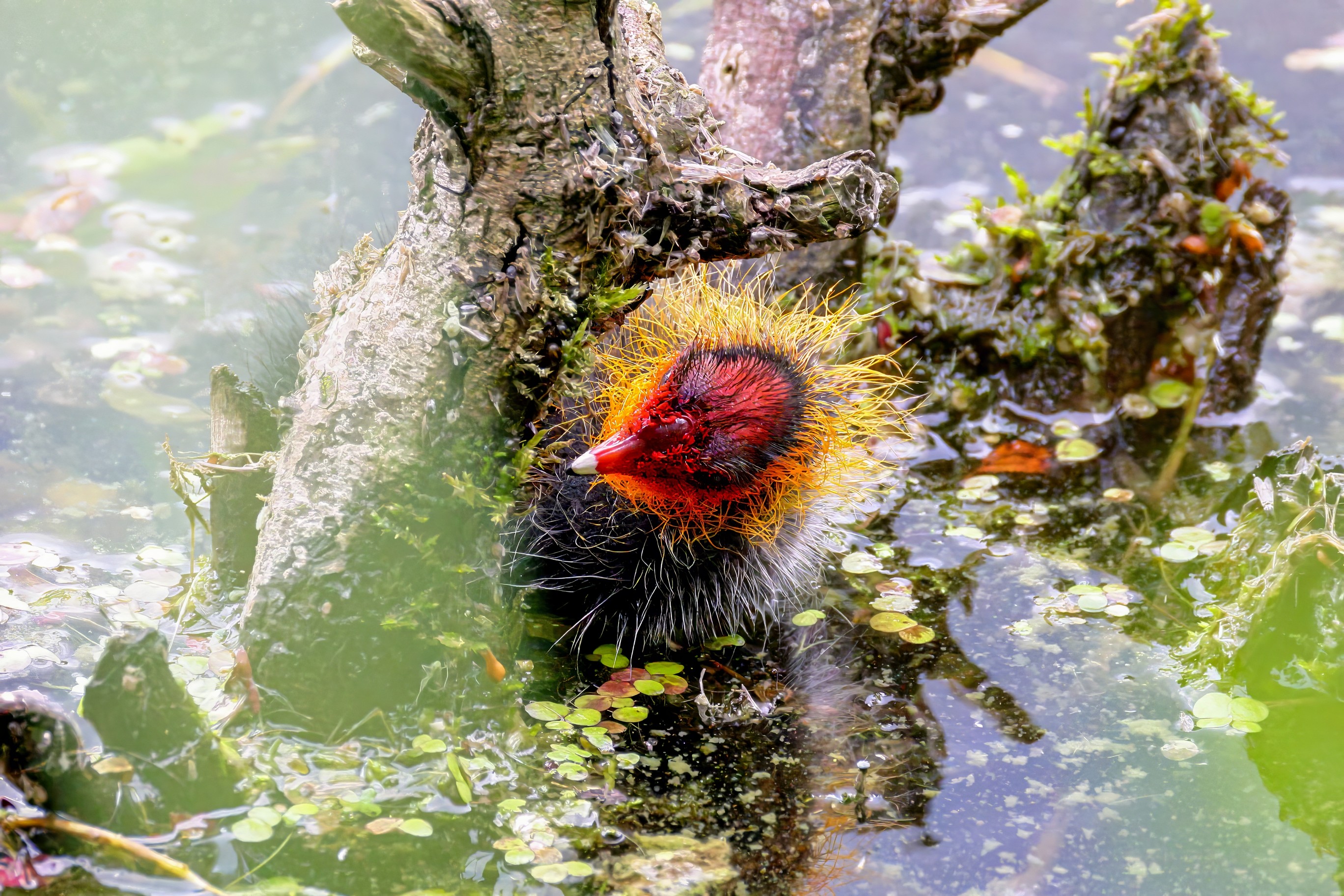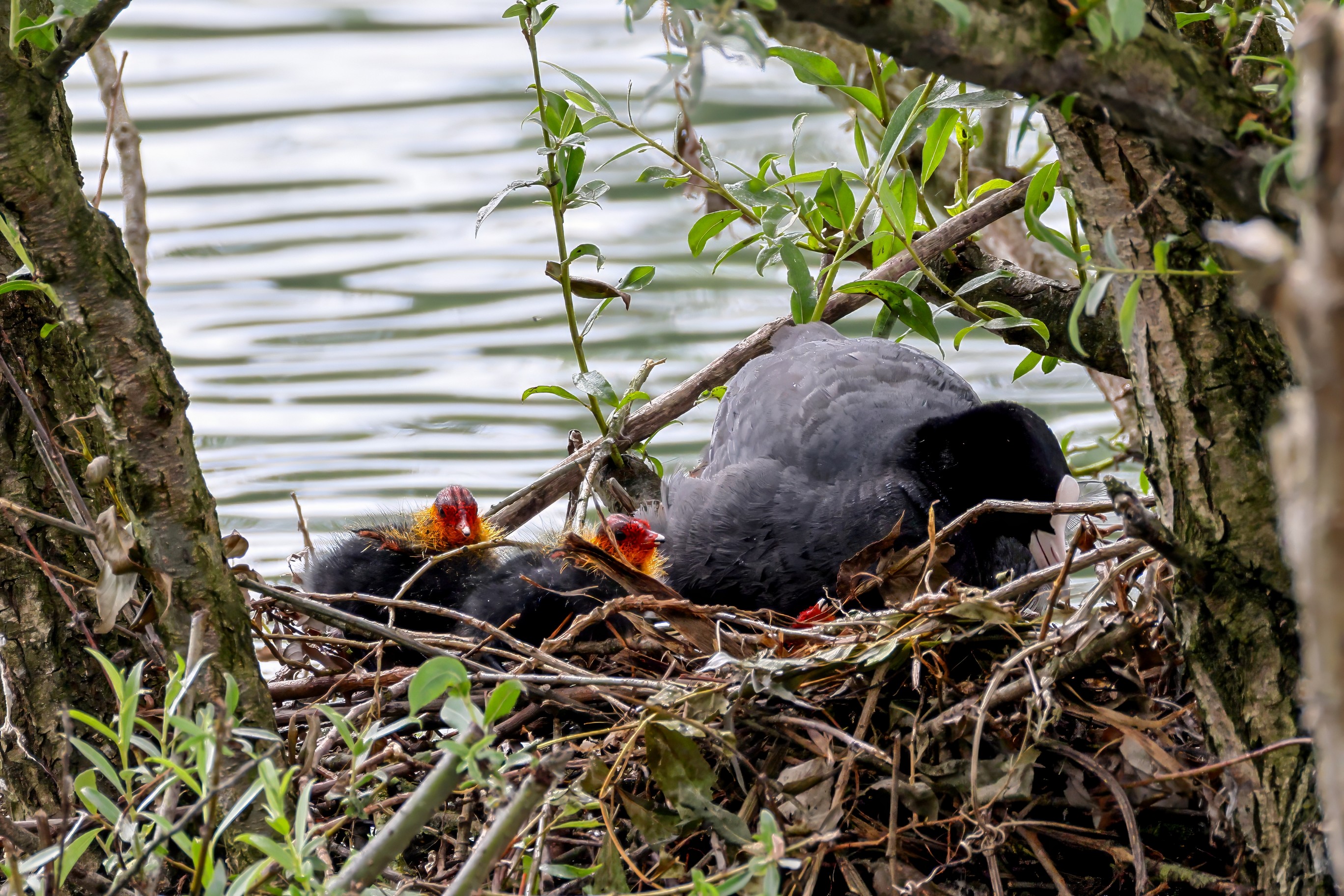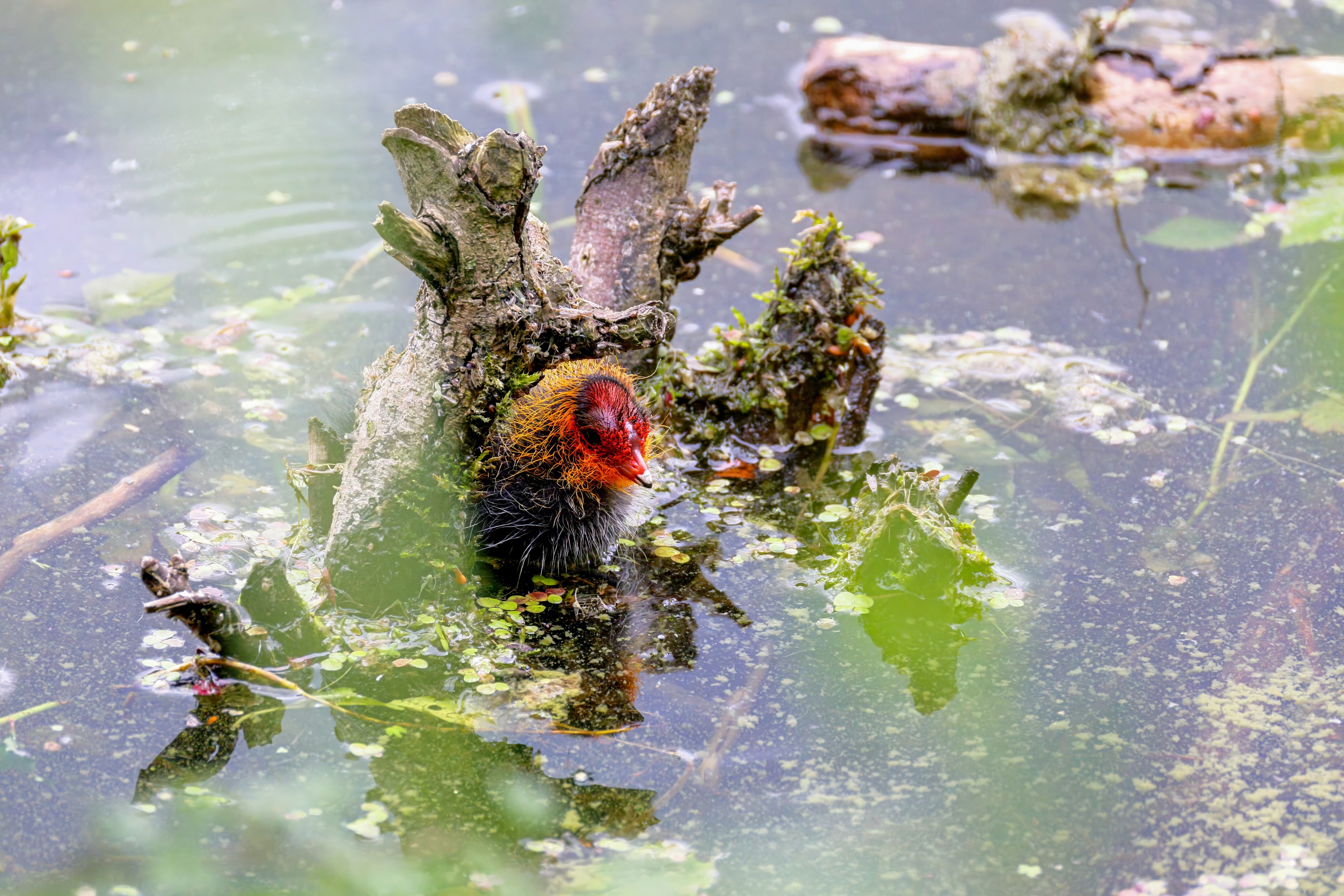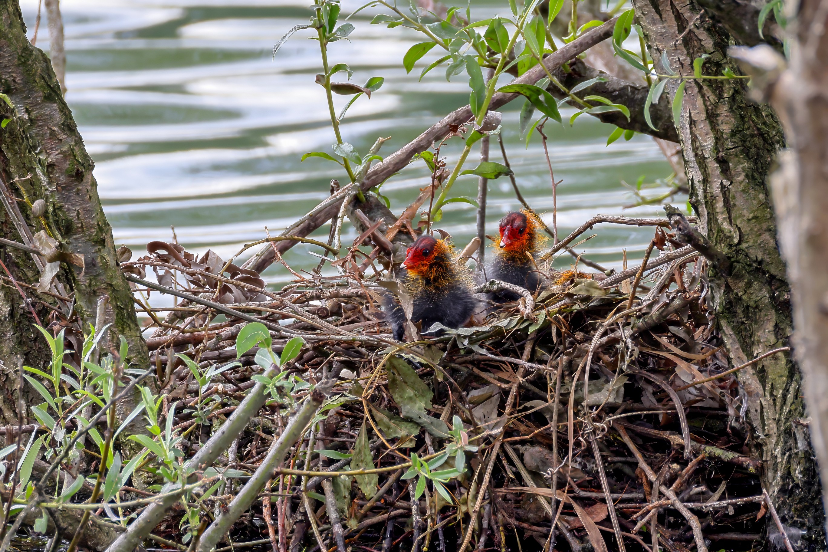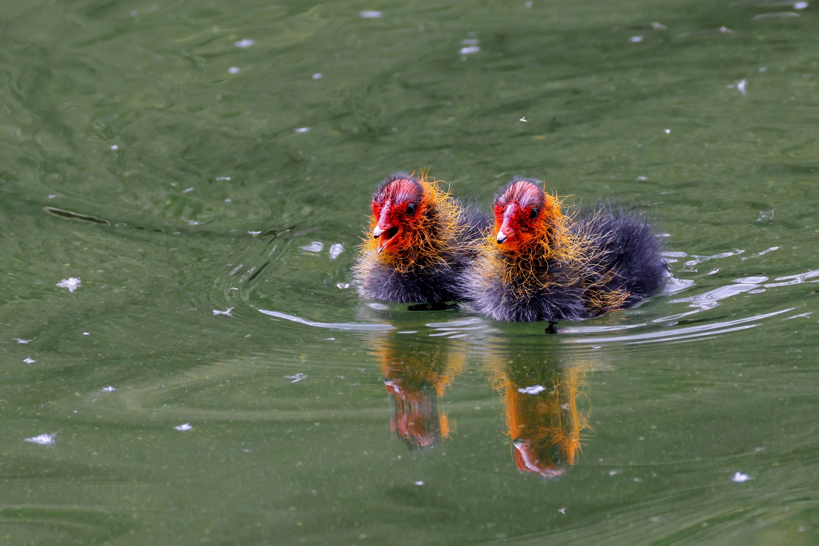 Erster Ausflug der jungen Blässrallen
