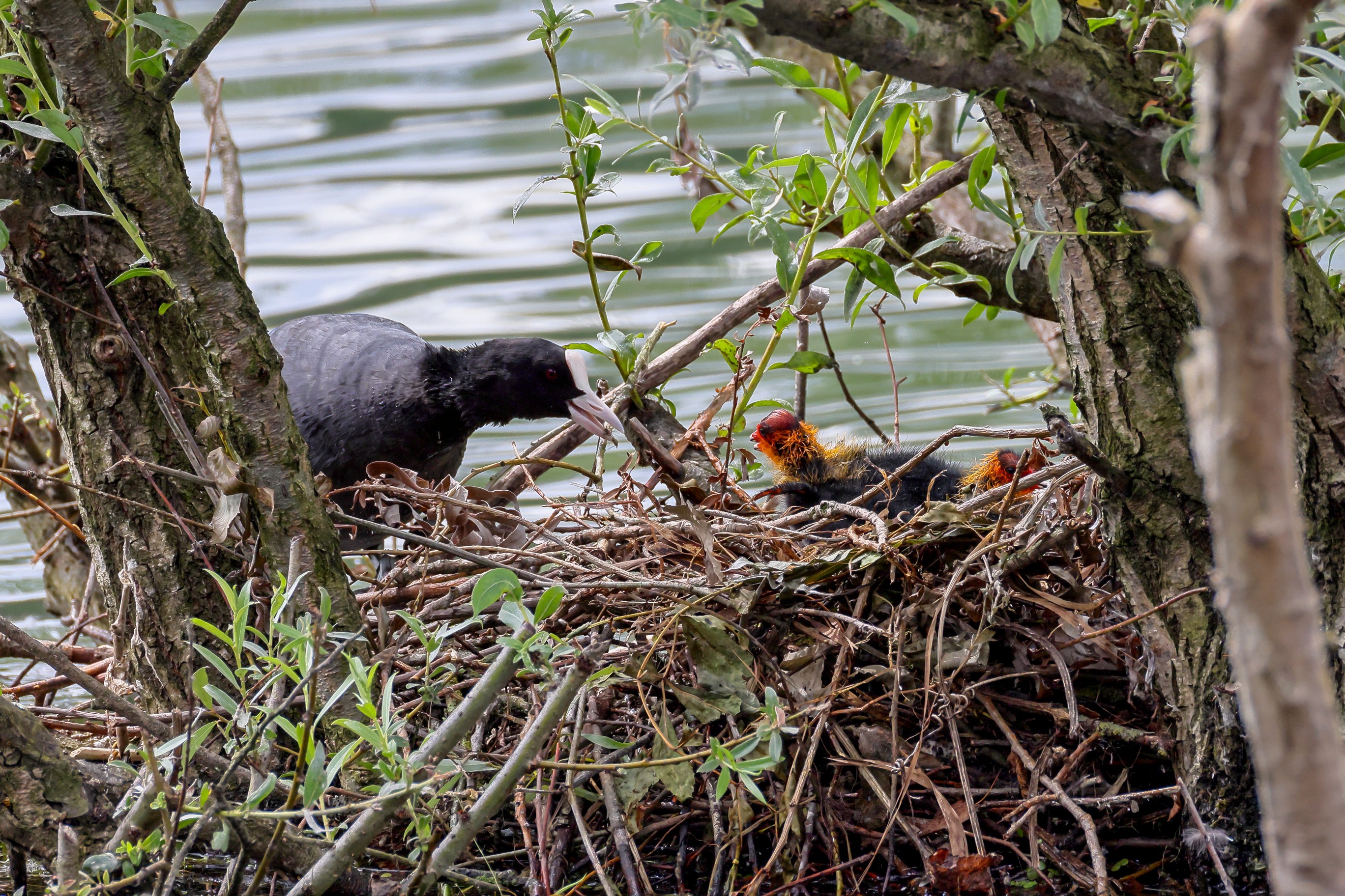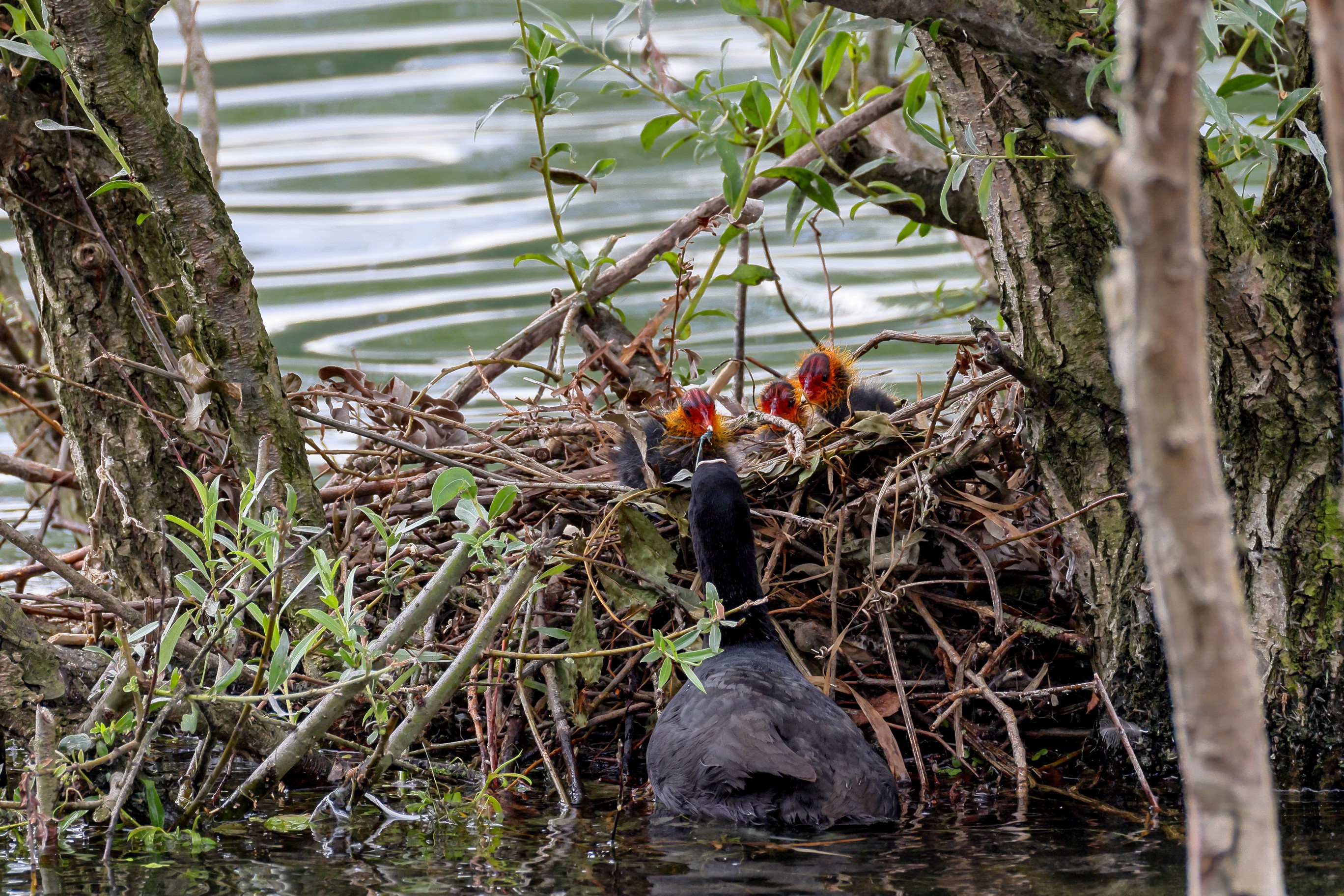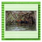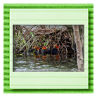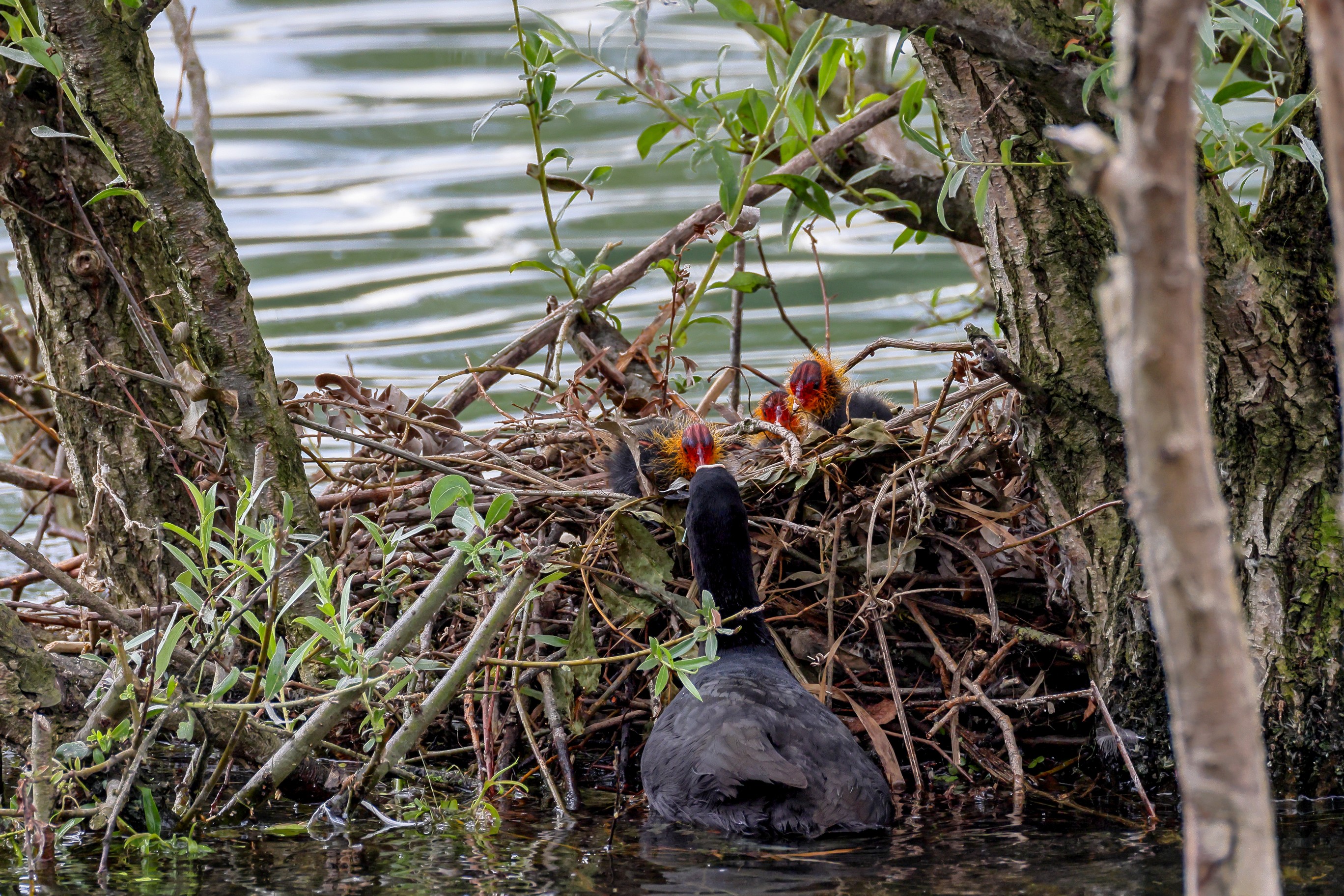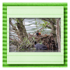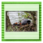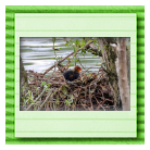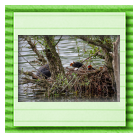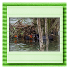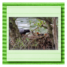 Erster Ausflug der jungen Blässrallen an der Beobachtungshütte 1