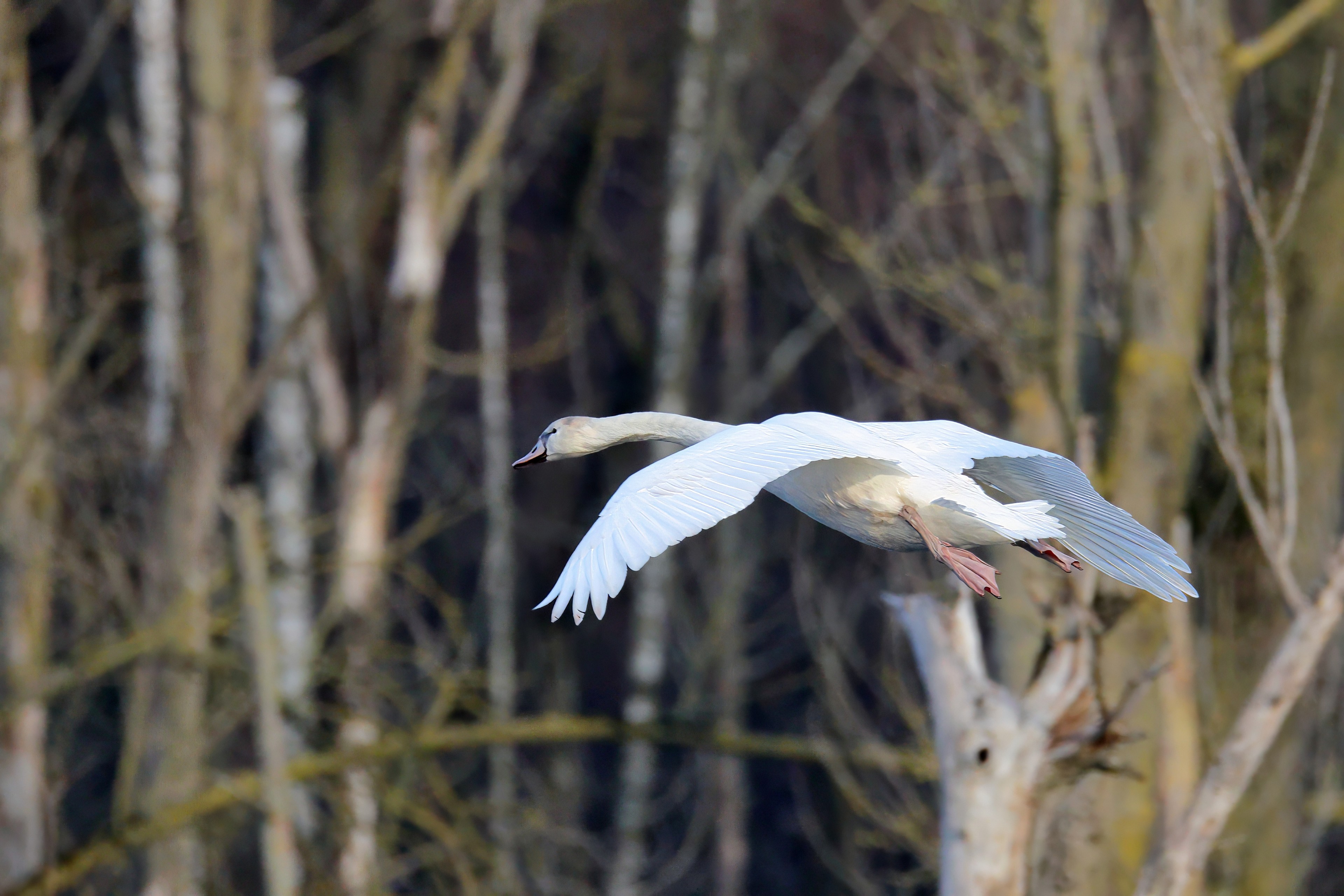 Dem Flug des Jungschwans folgend starten die Eltern
