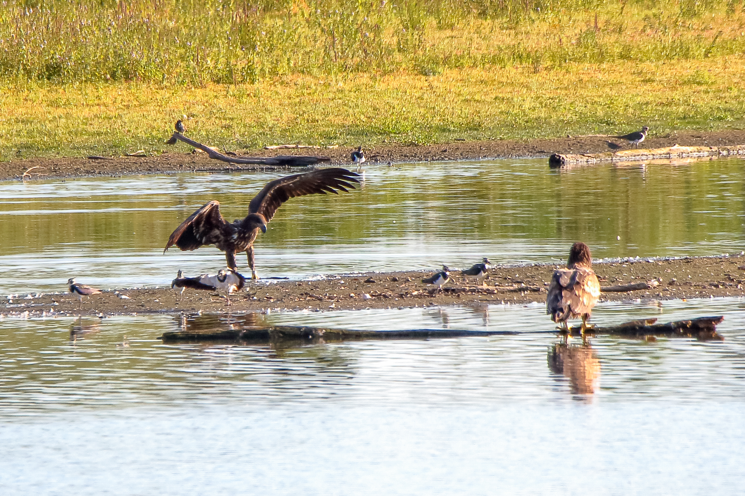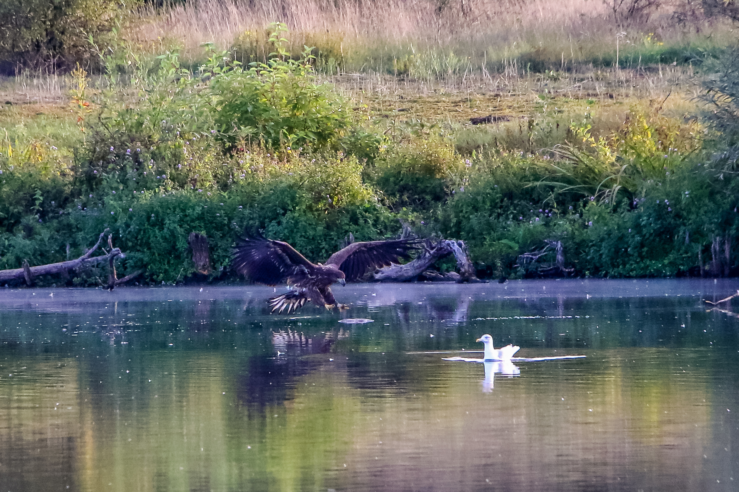 Die Jungseeadler trainieren das Greifen der künftigen Beute
