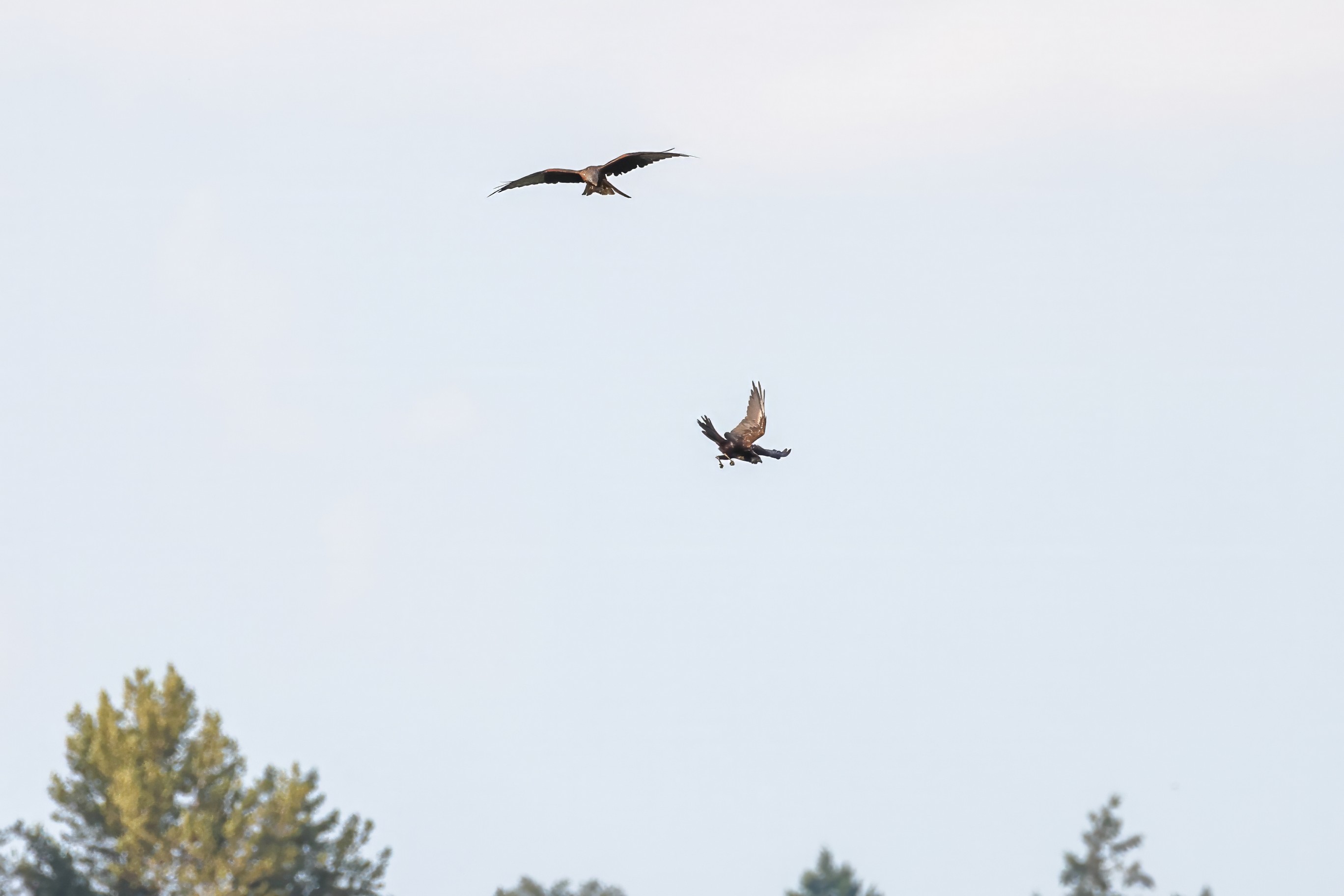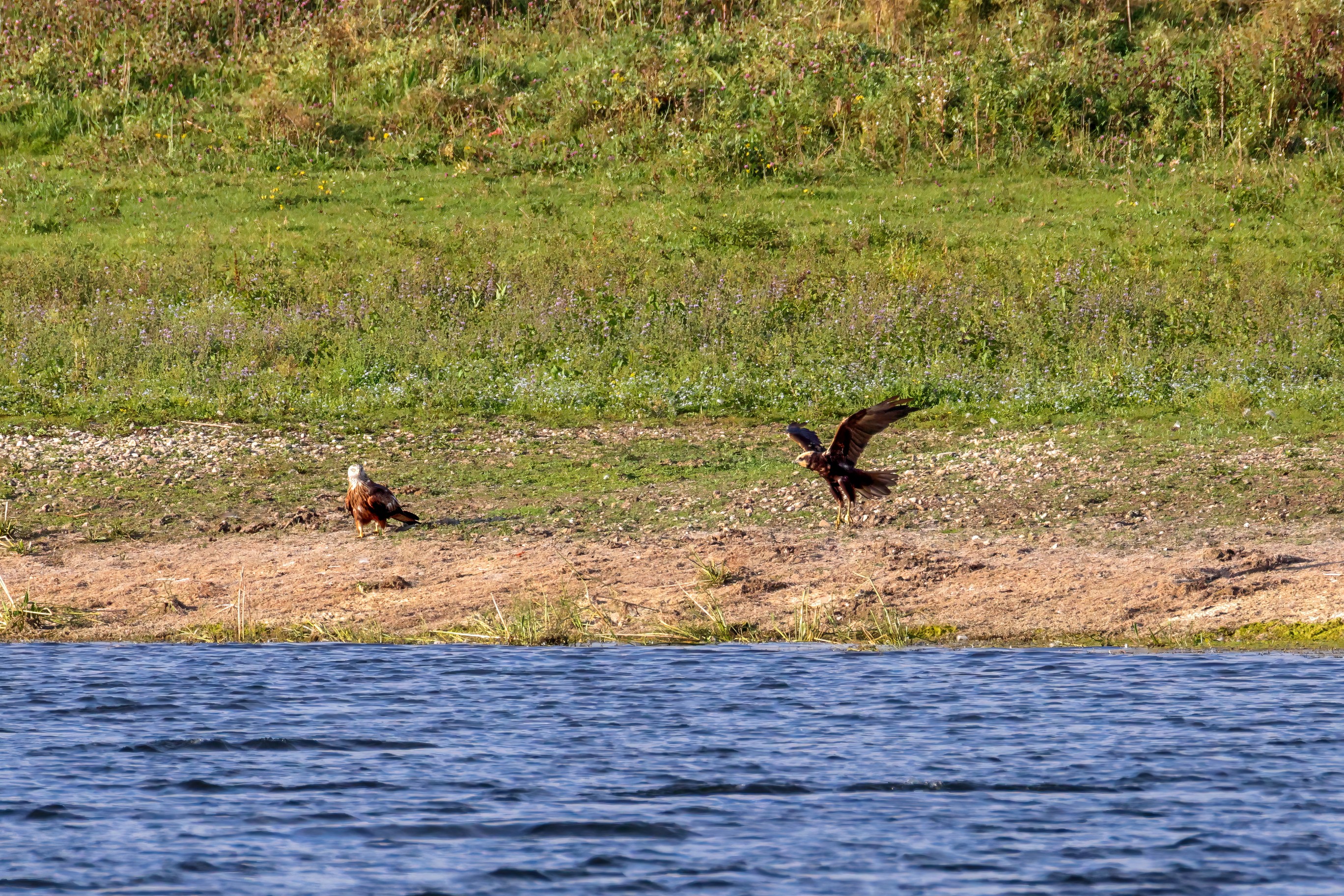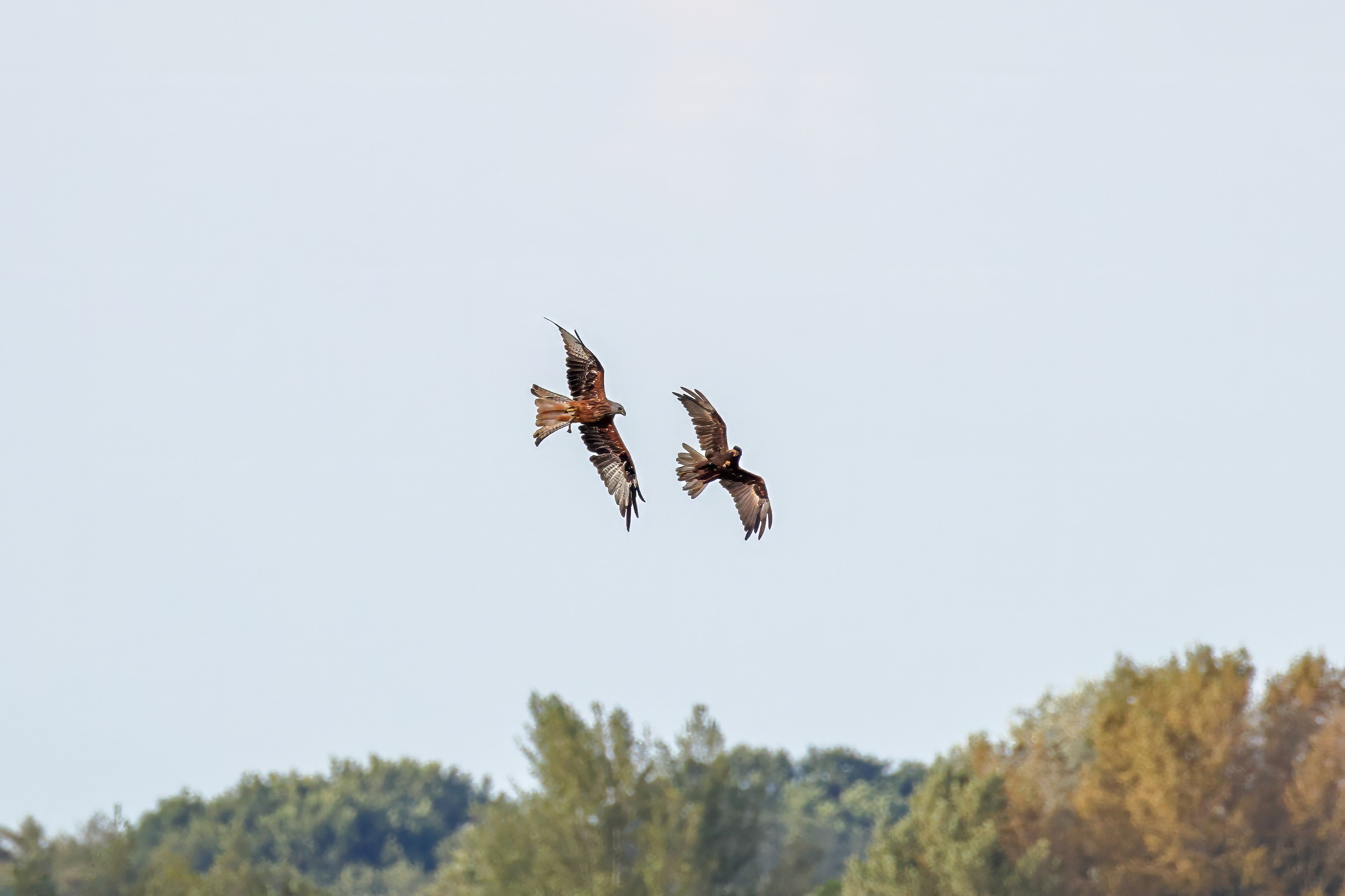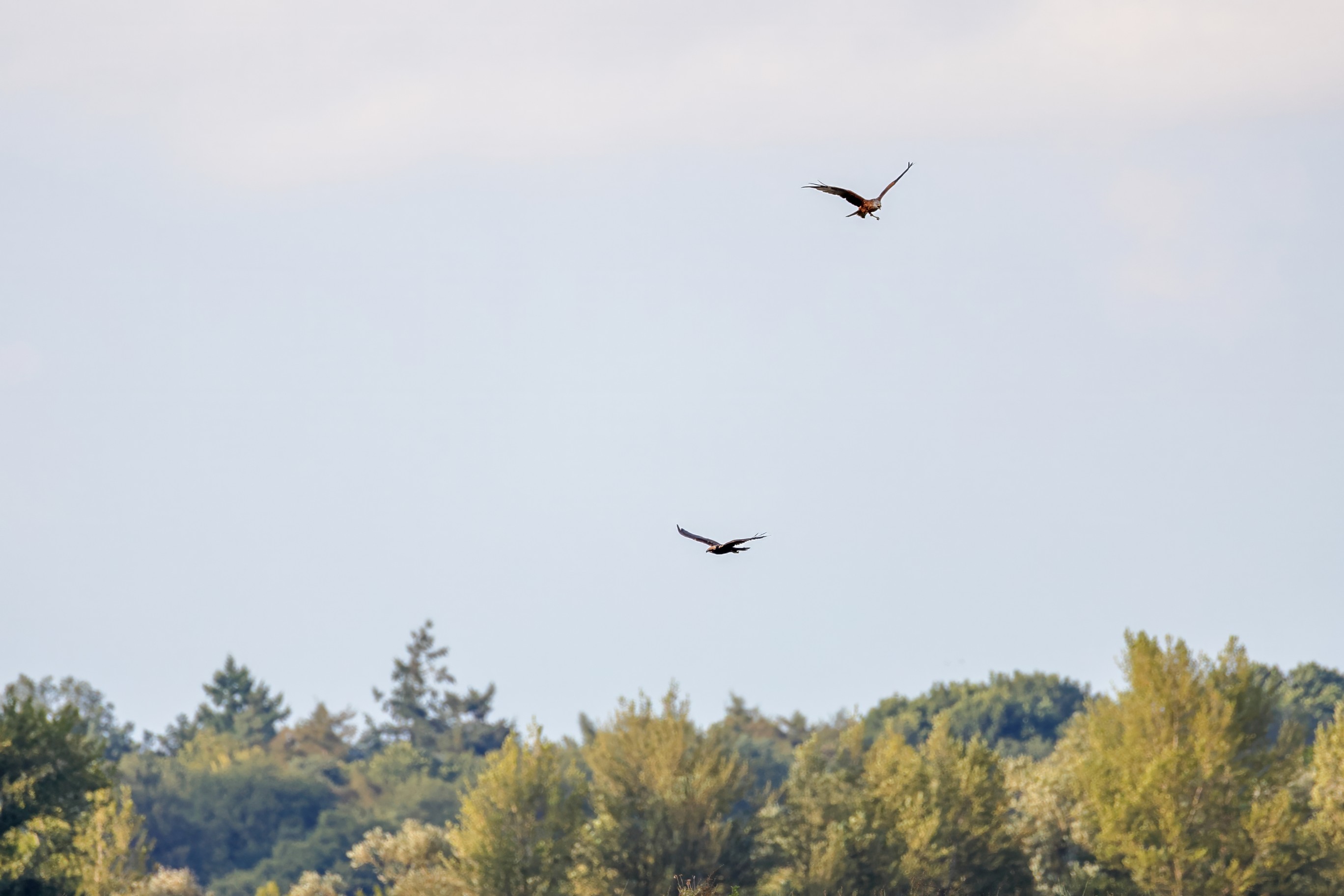 Rohrweihe und junger Rotmilan