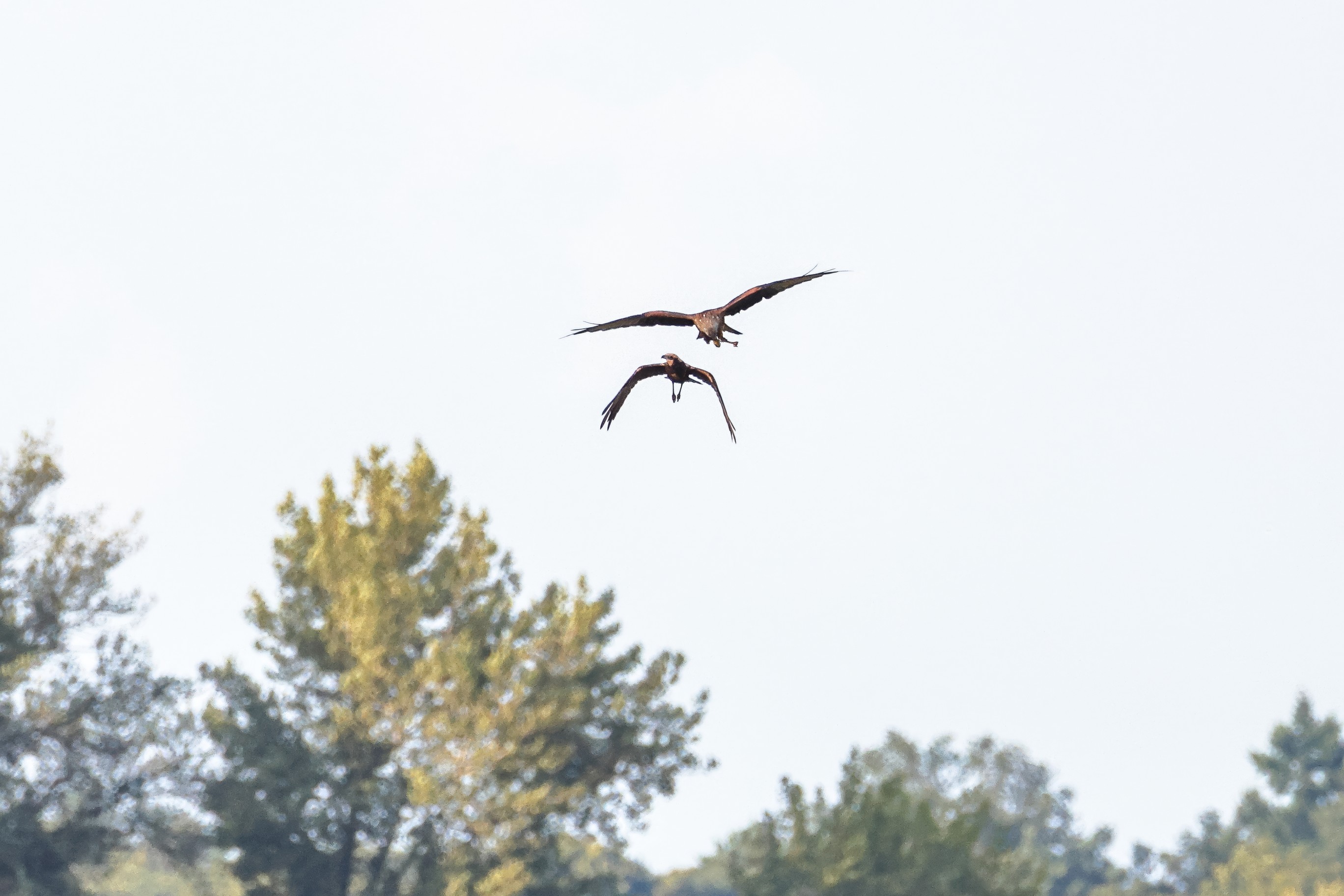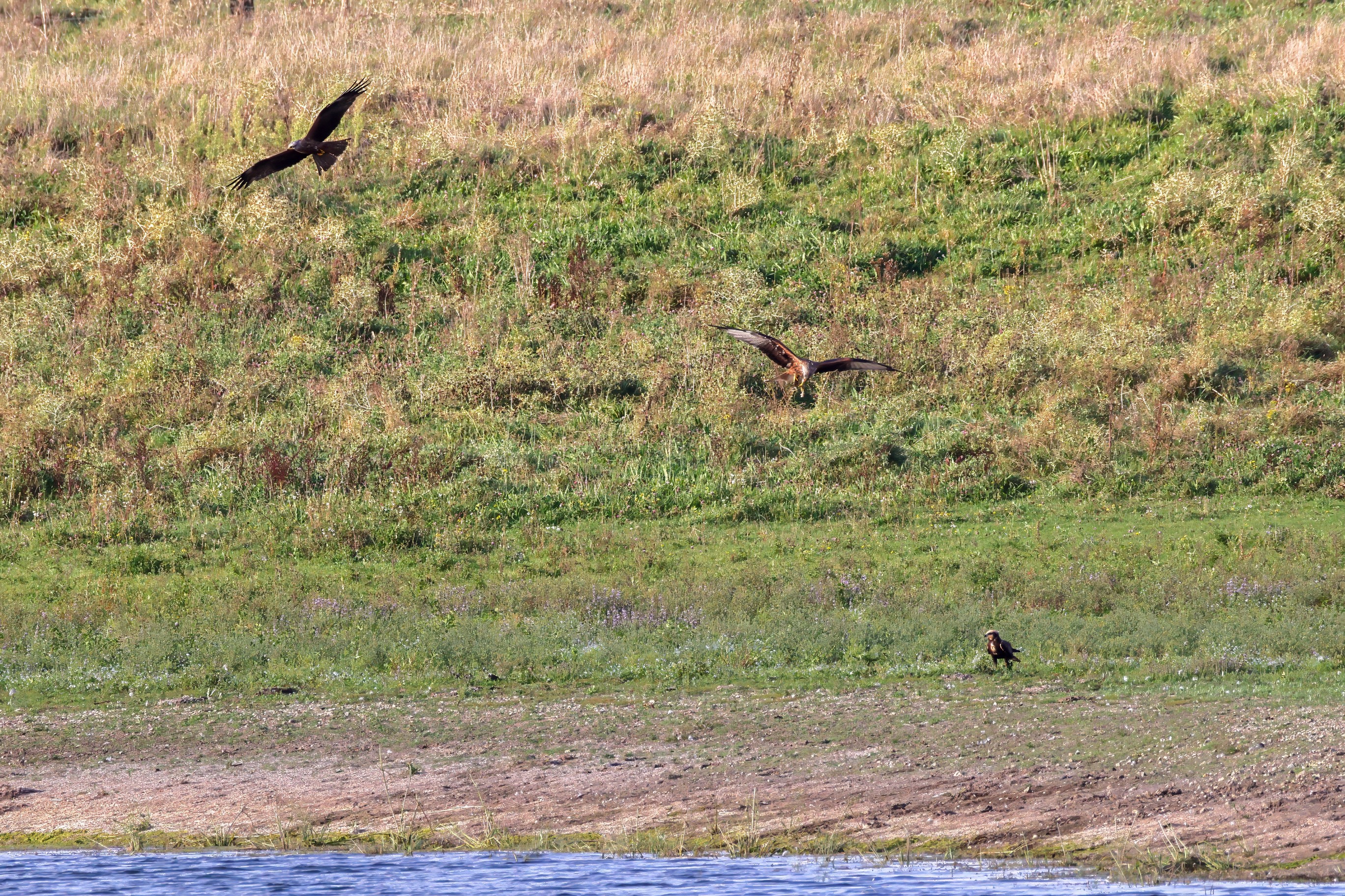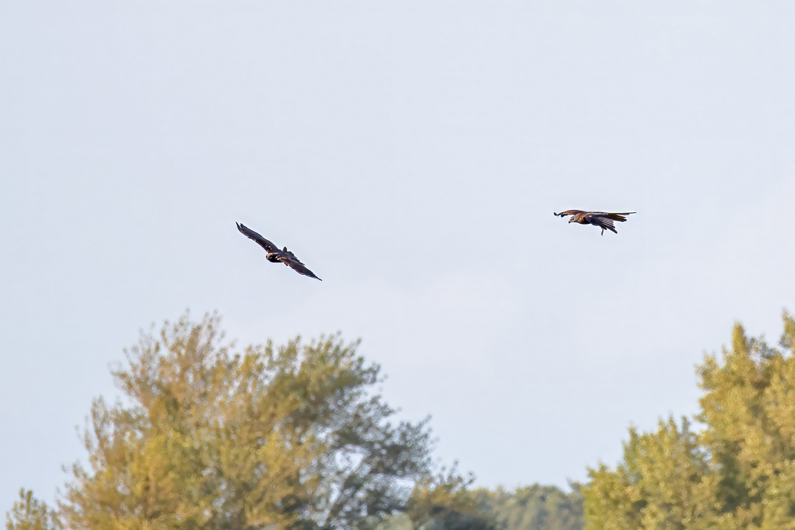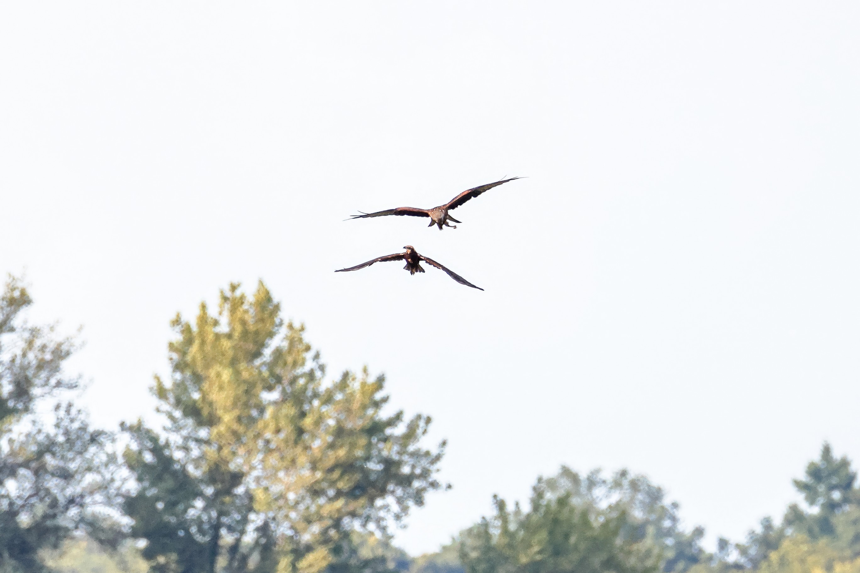 Rohrweihe und junger Rotmilan