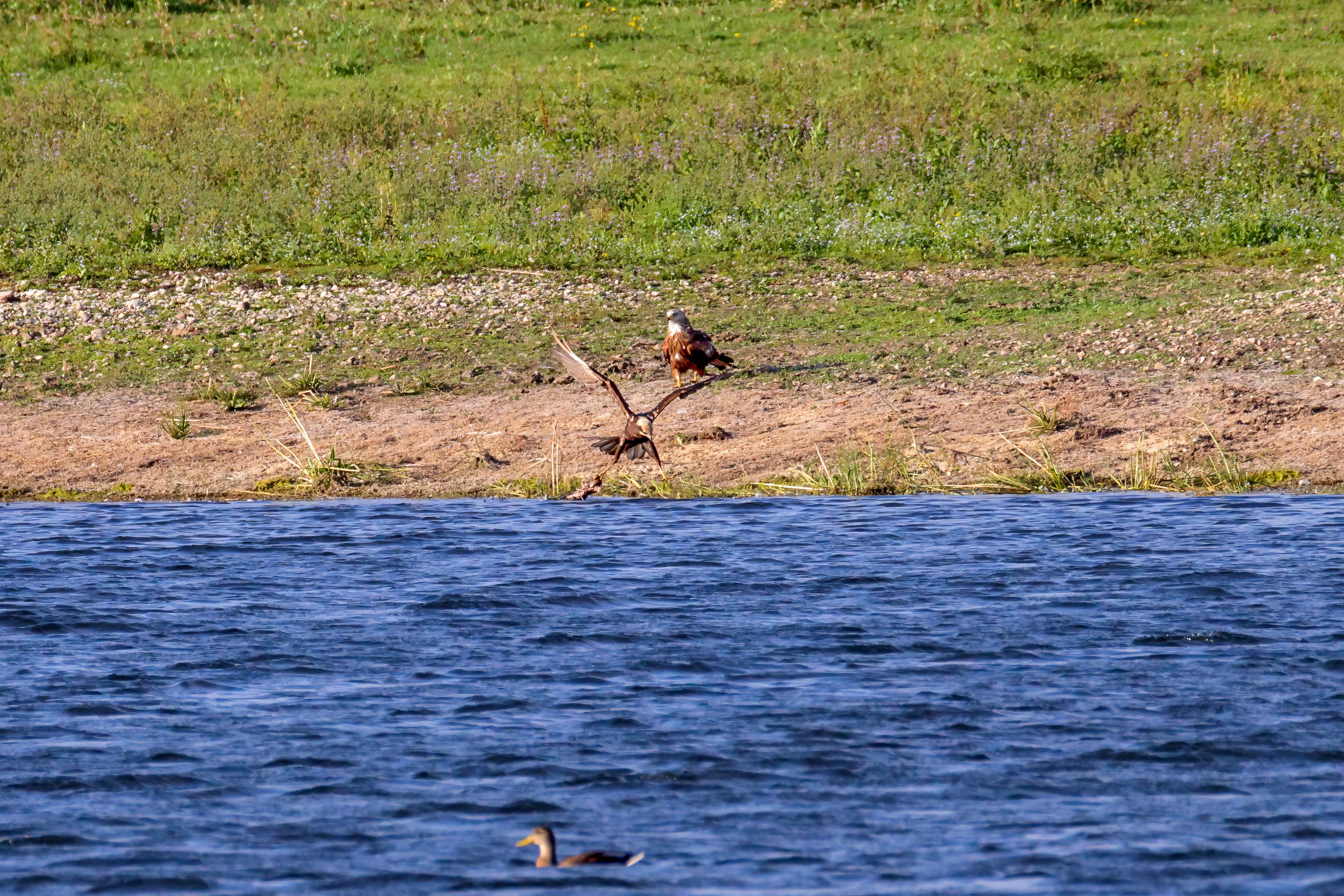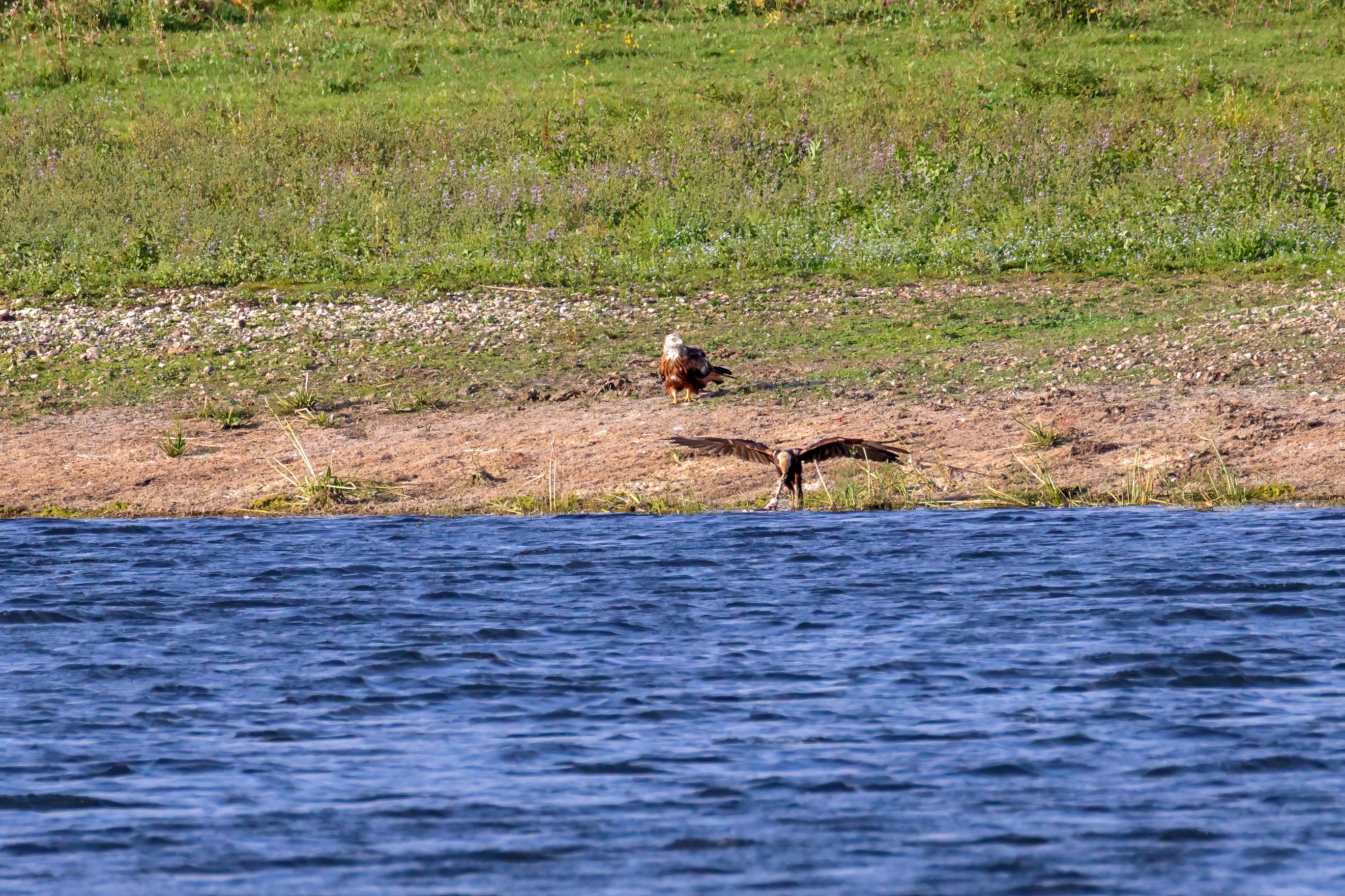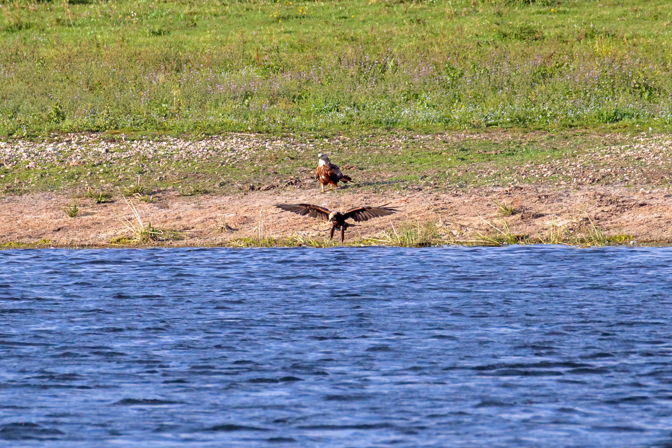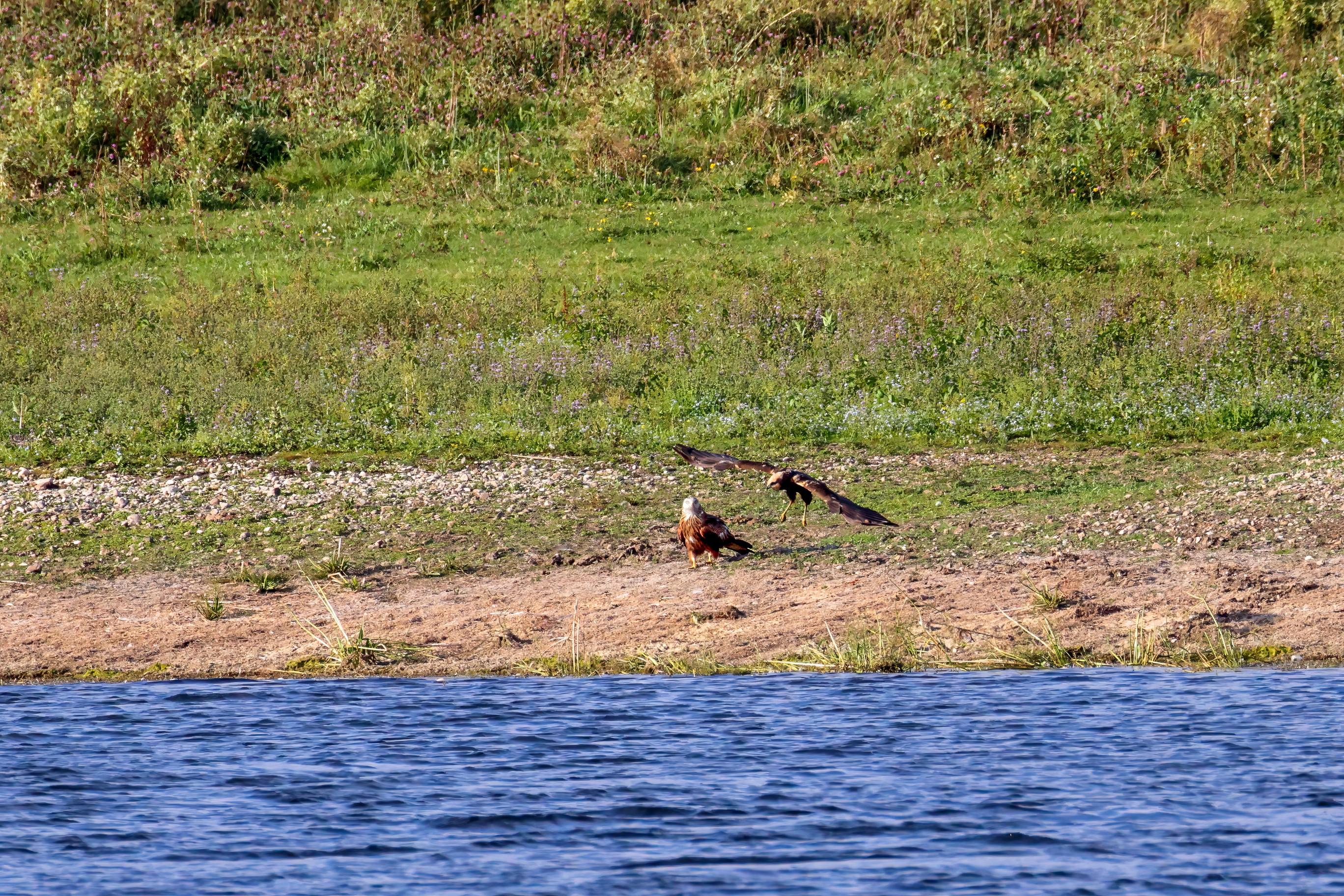 Rohrweihe und junger Rotmilan