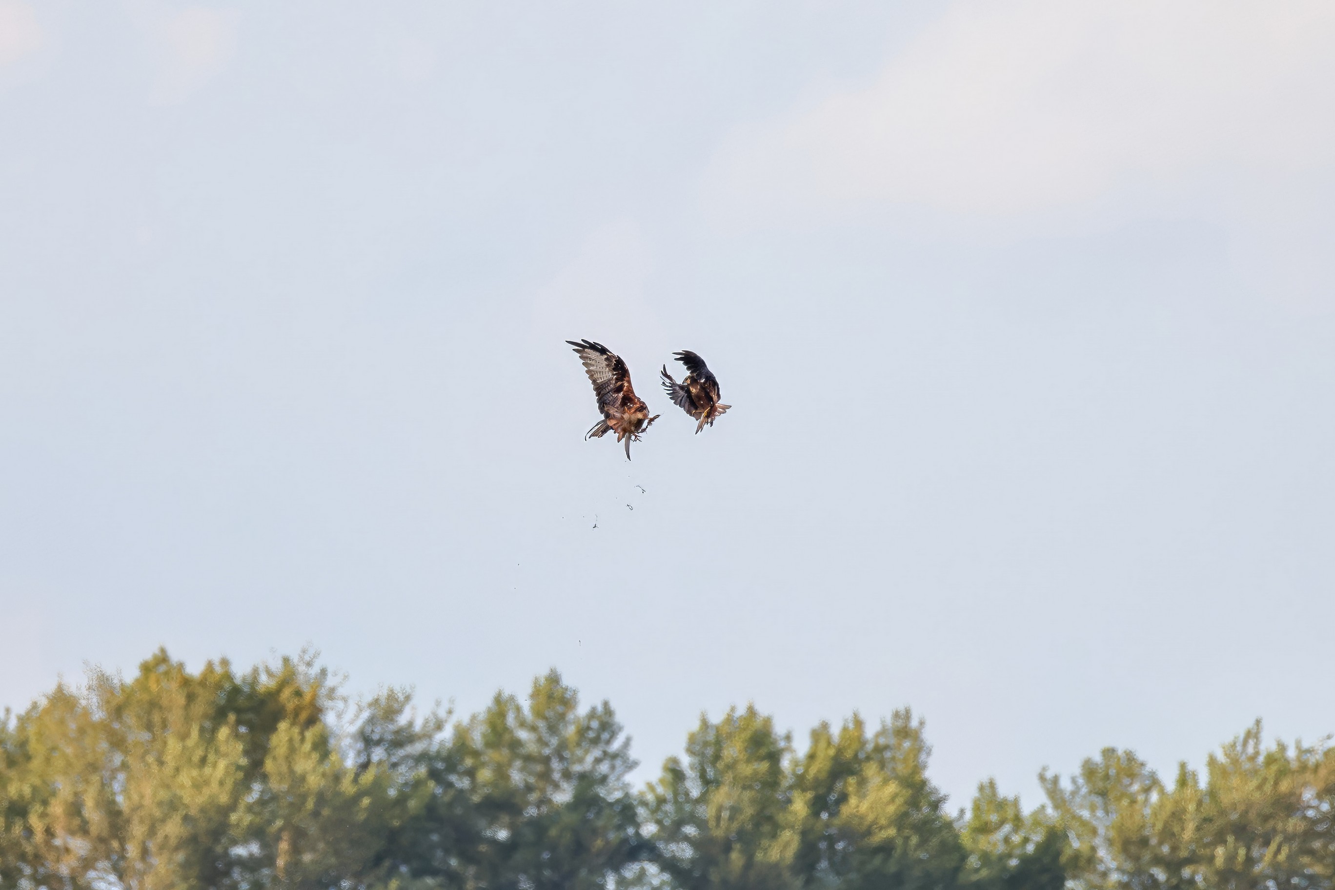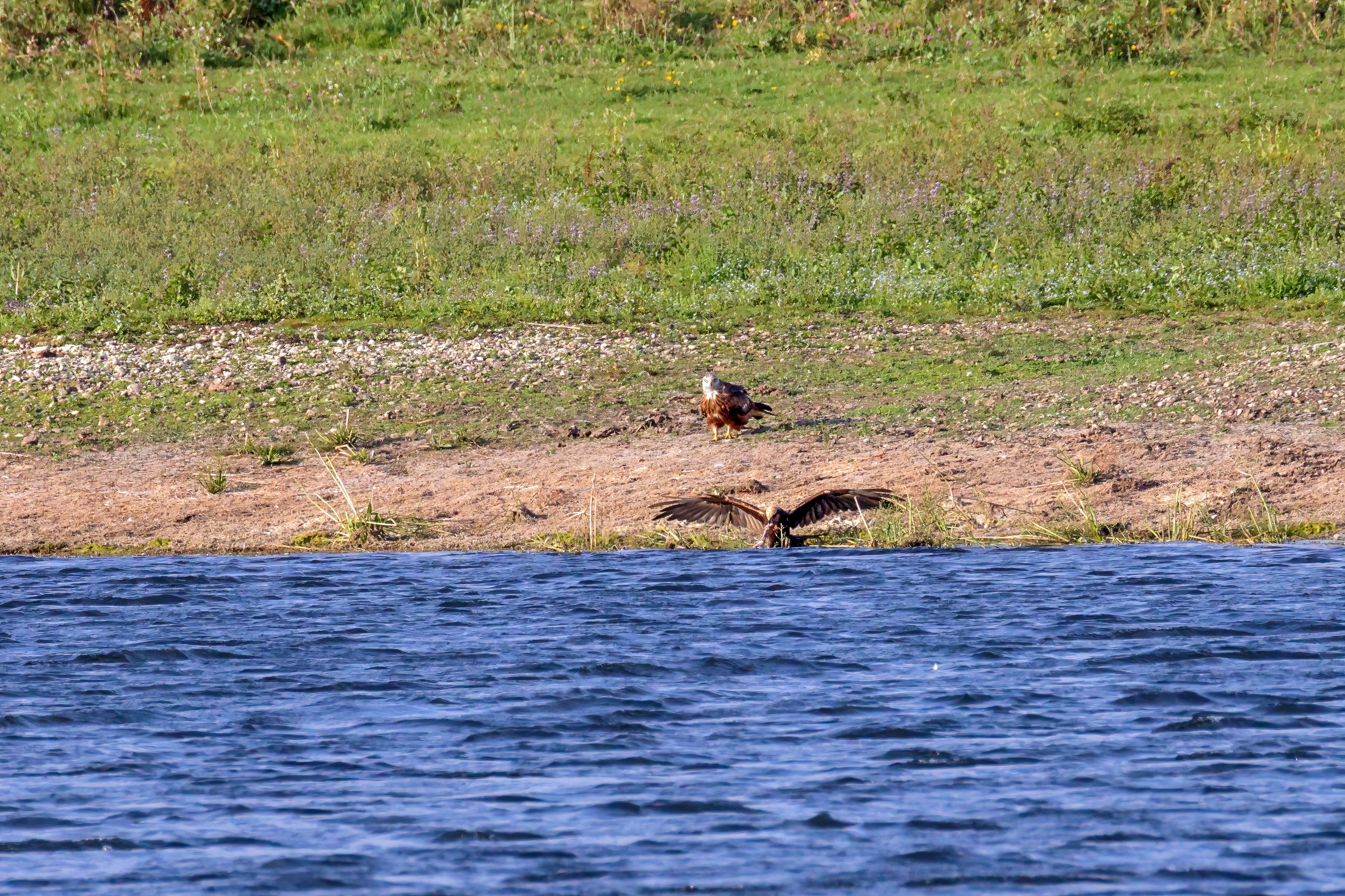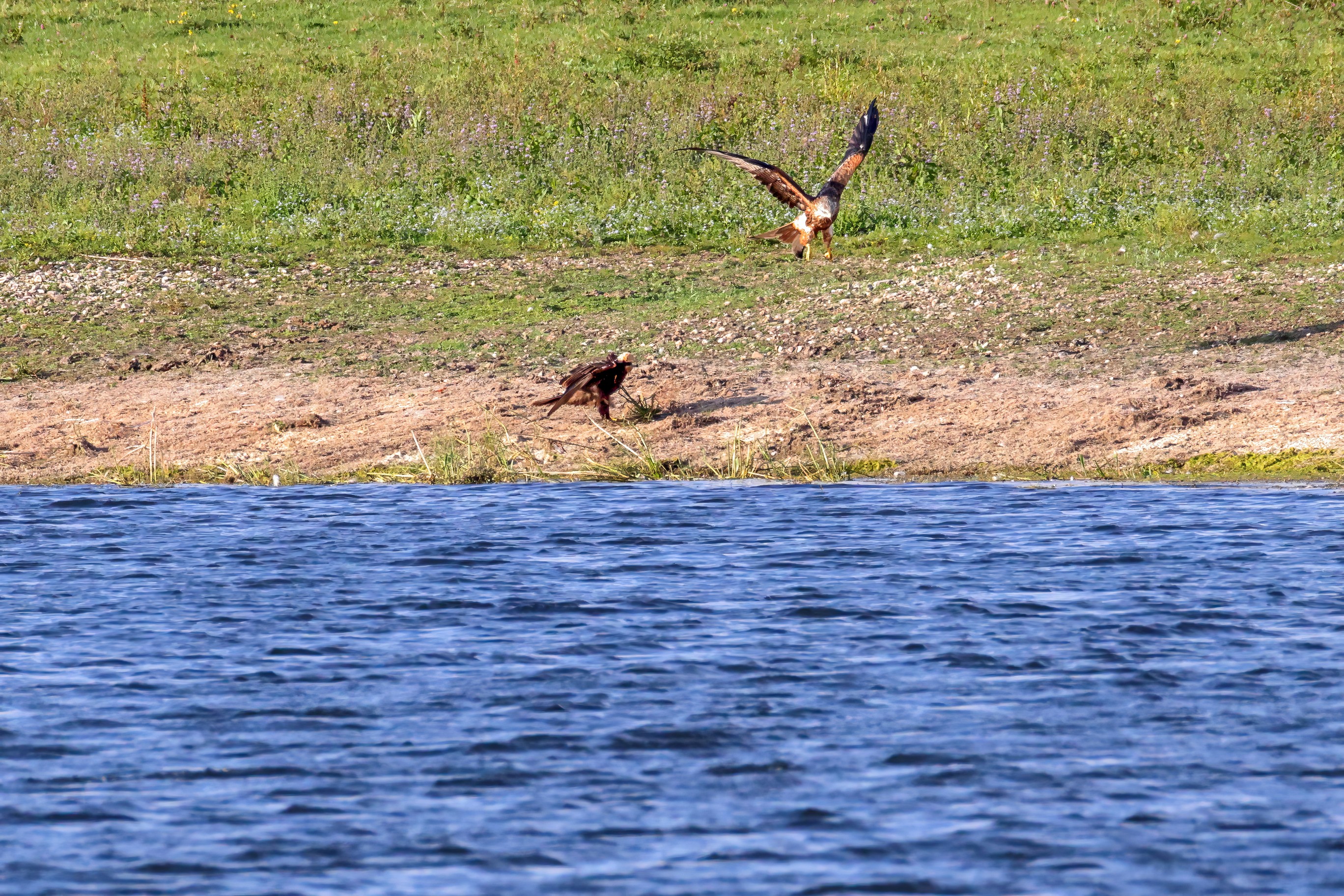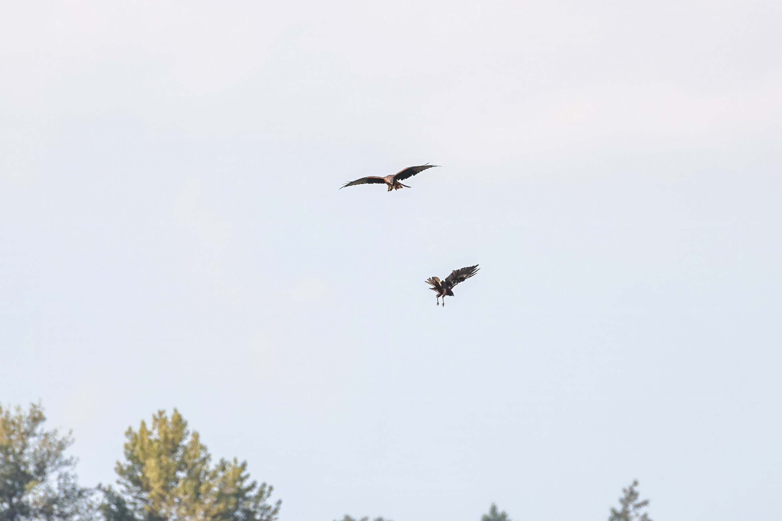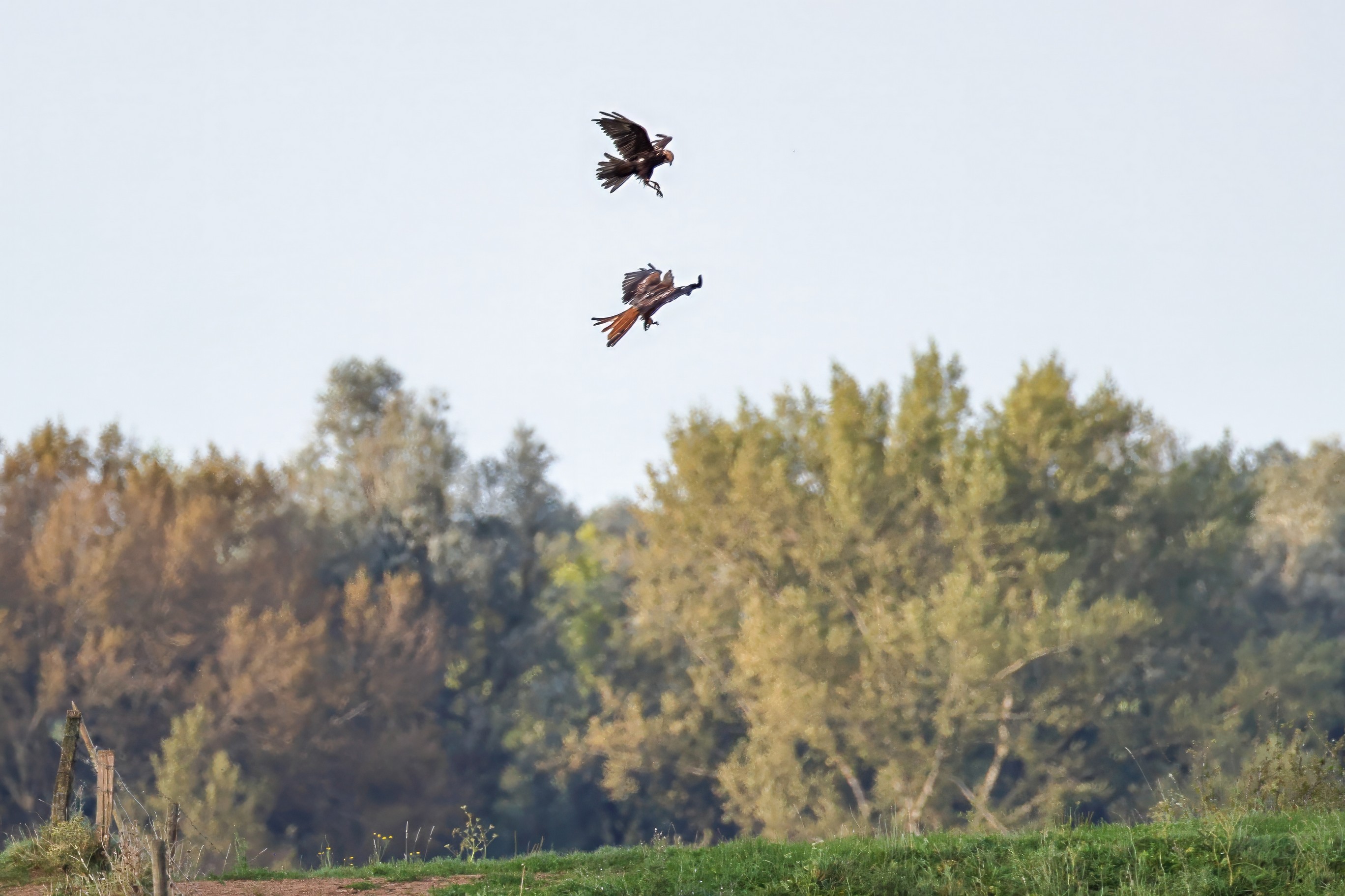 Kornweihe und Rotmilan streiten um Fundbeute