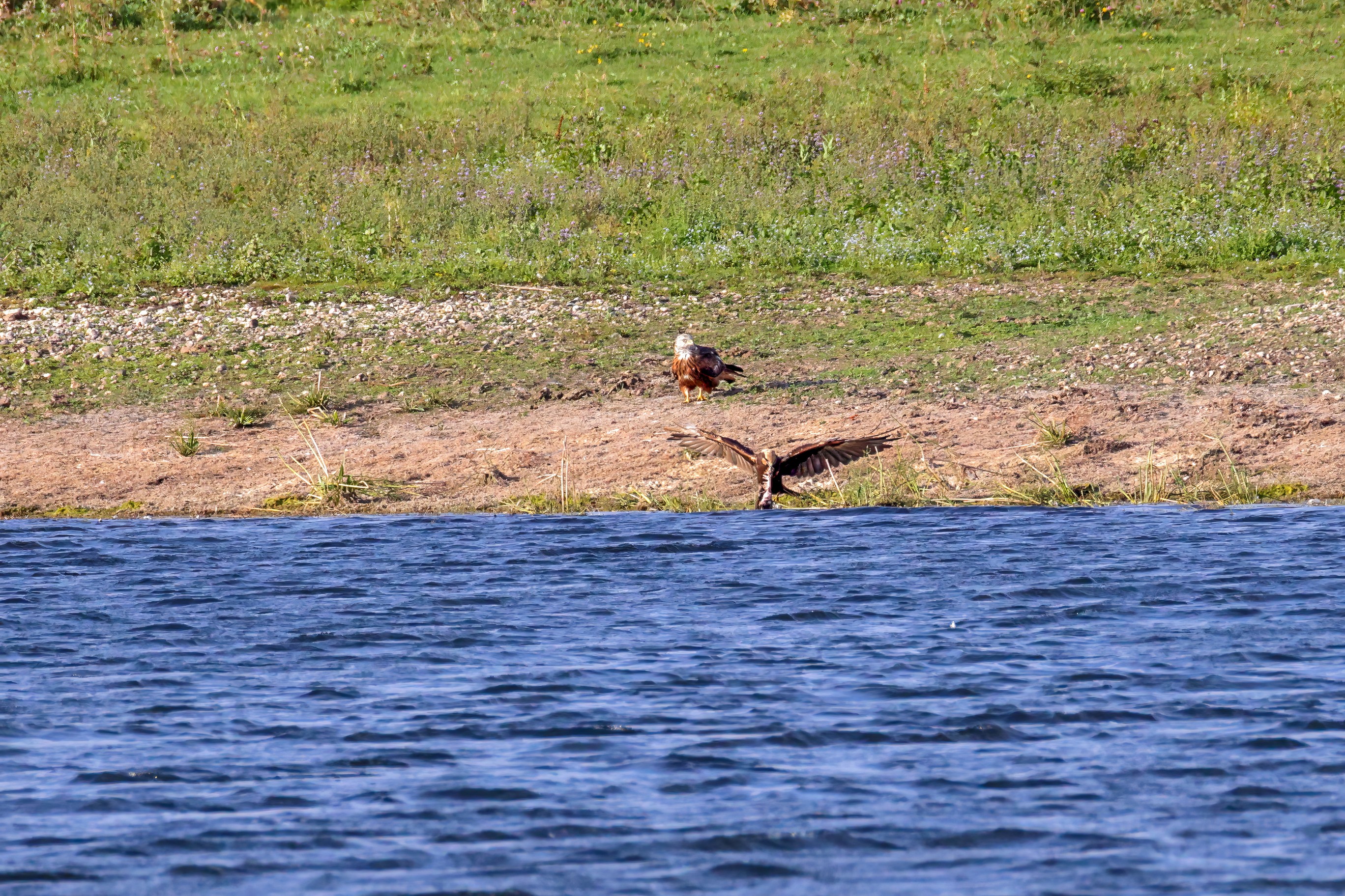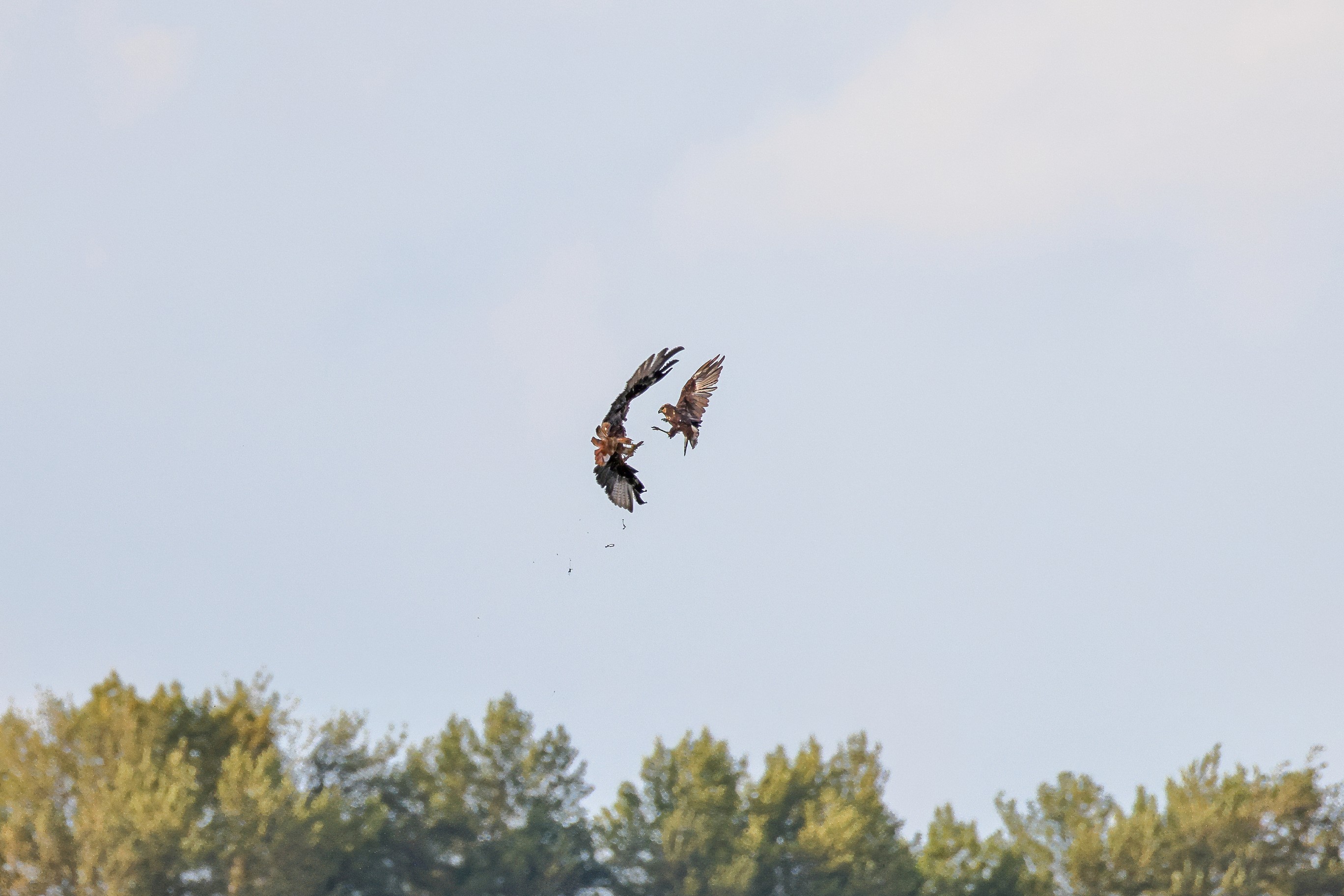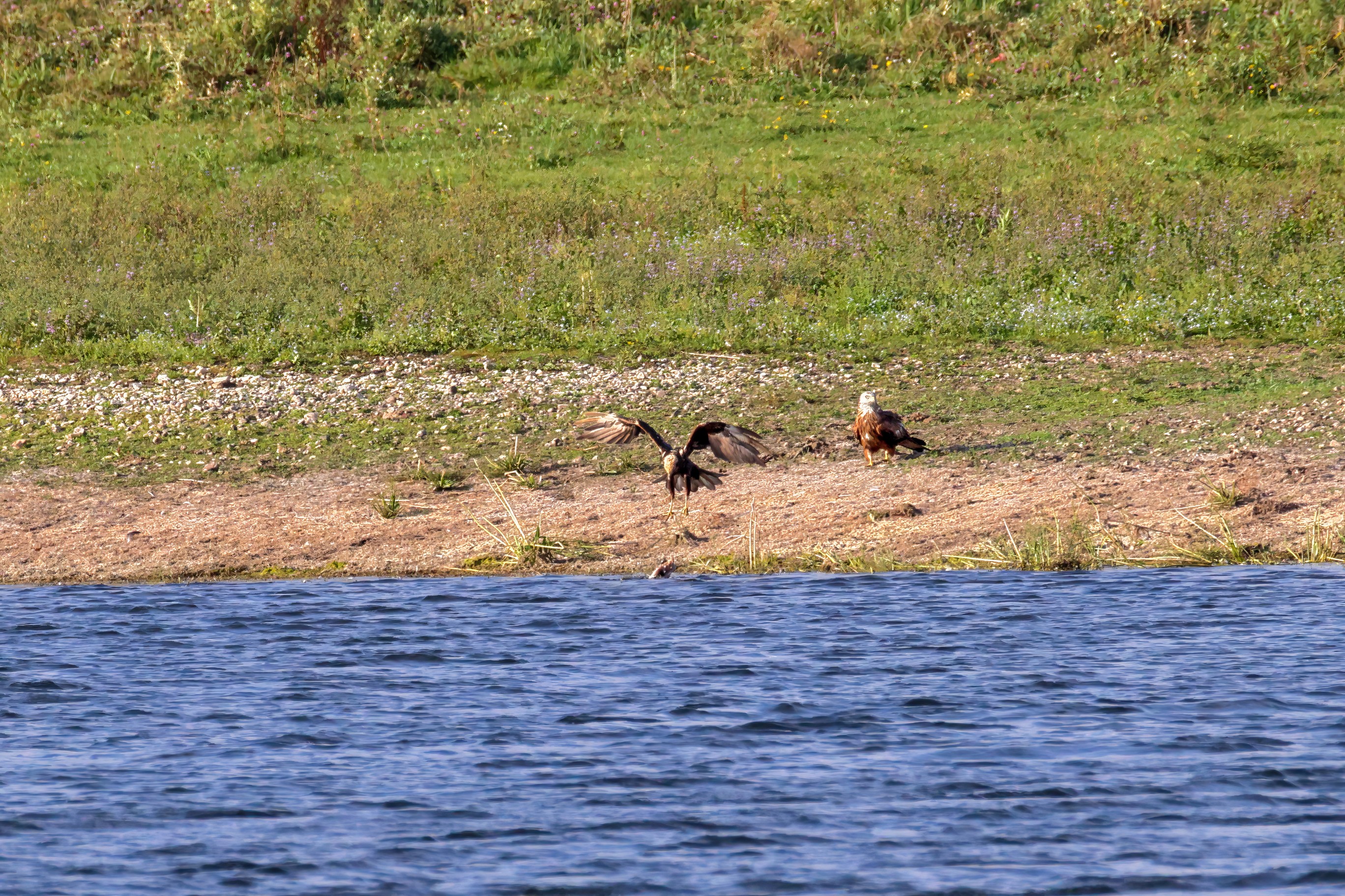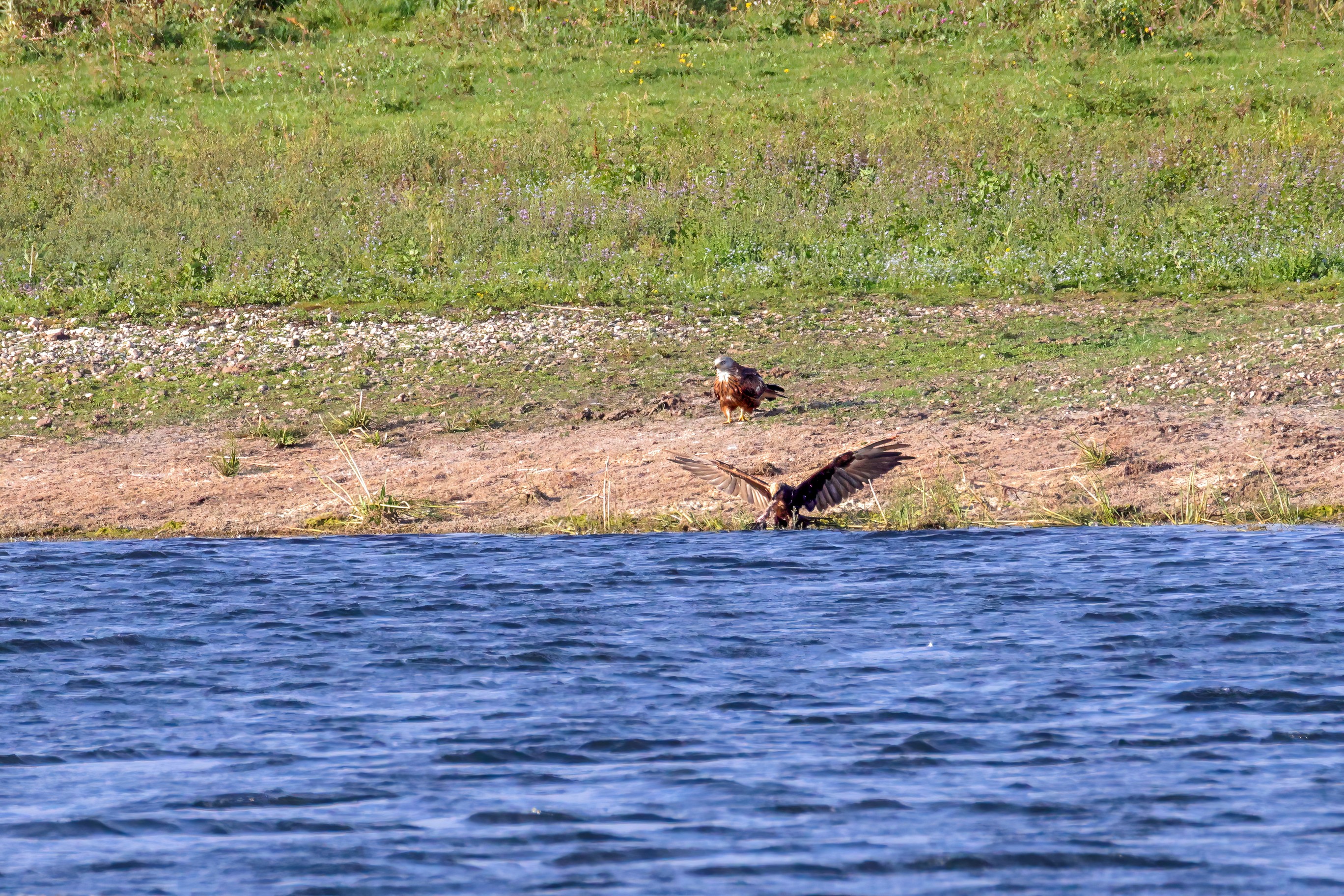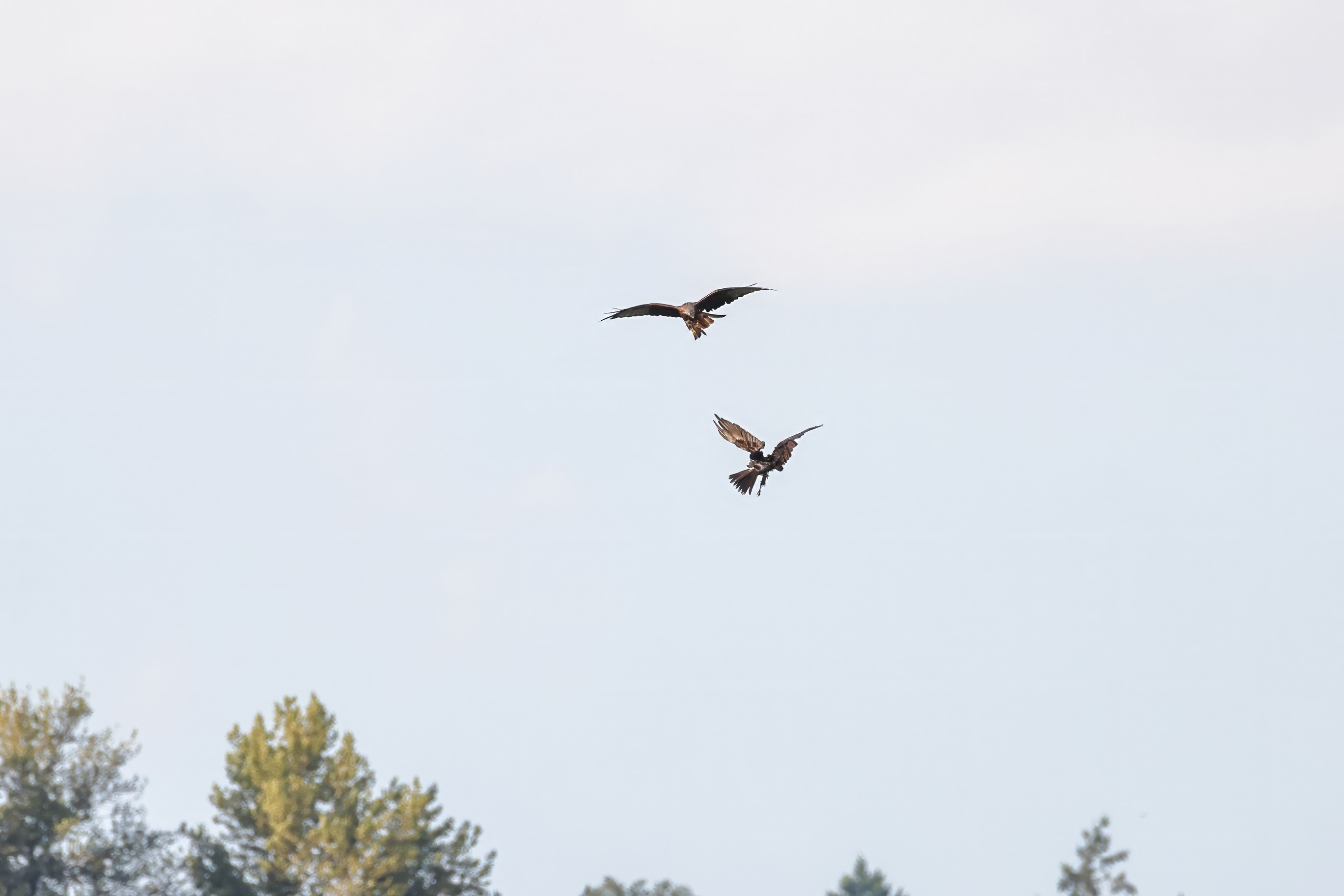 Kornweihe und Rotmilan streiten um Fundbeute