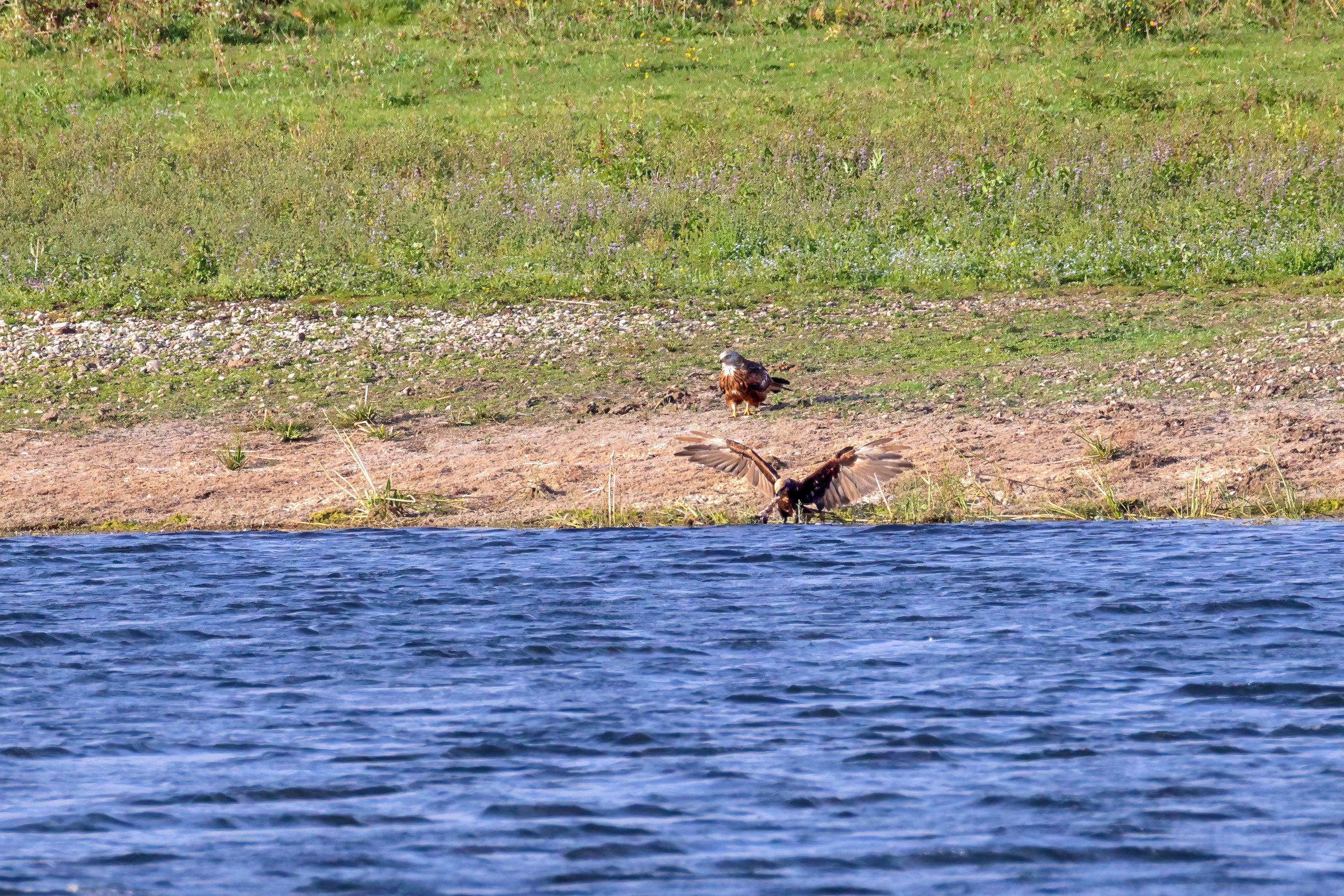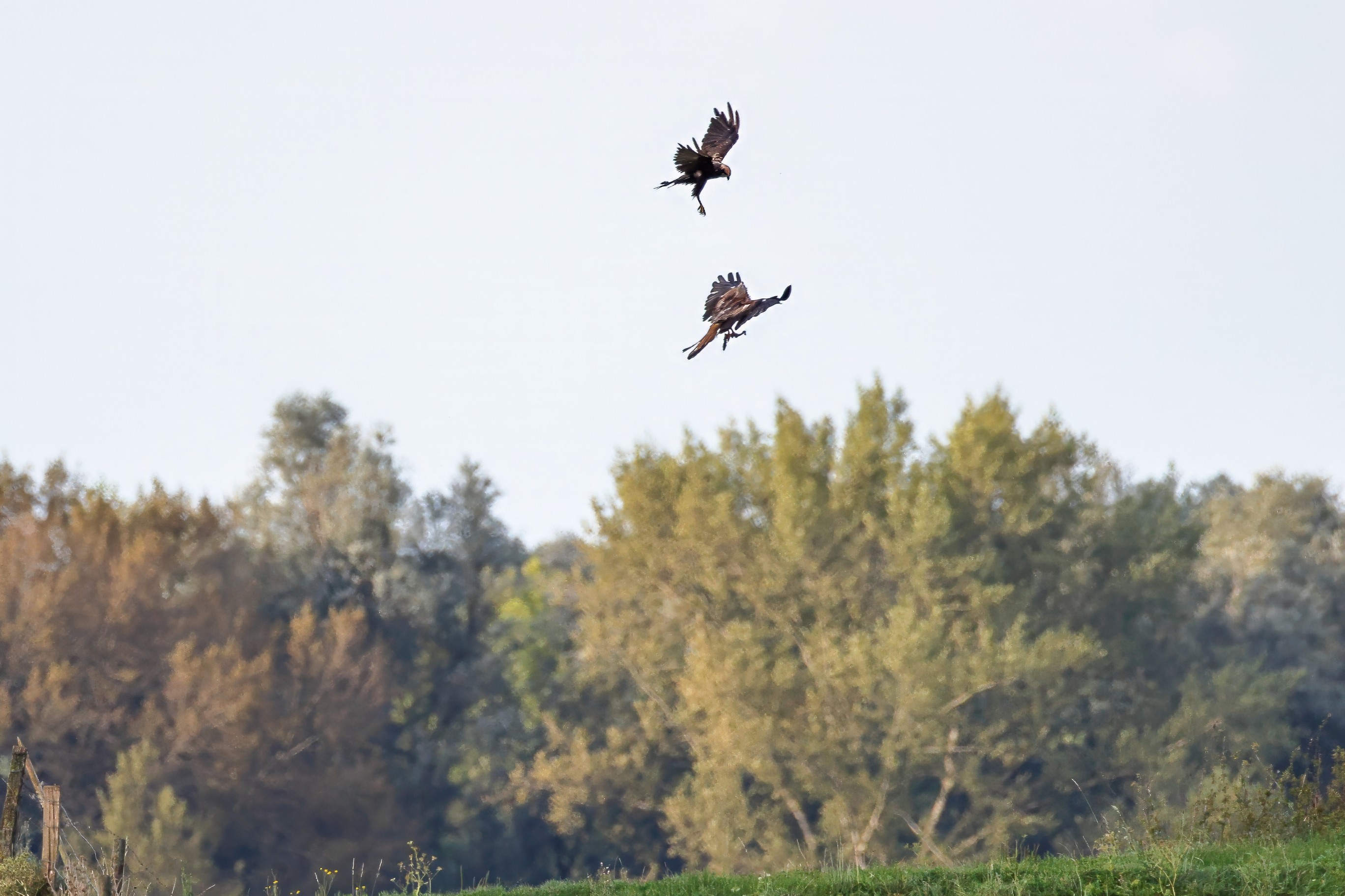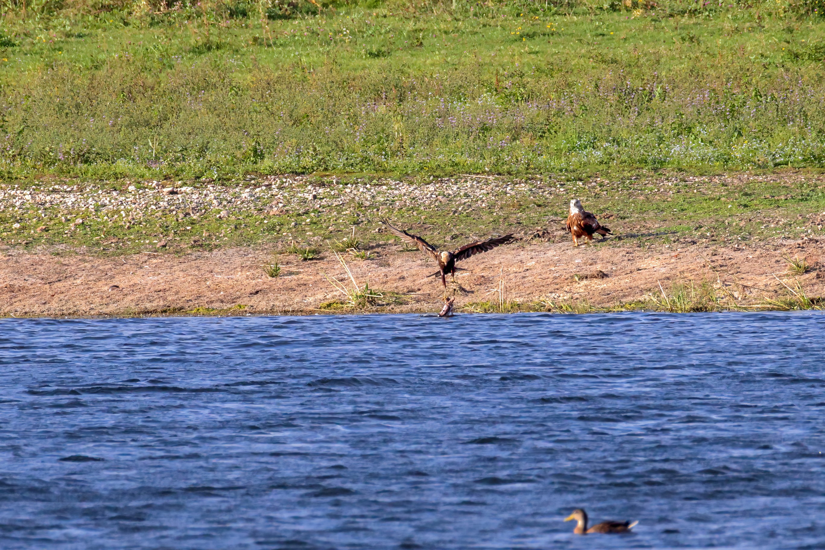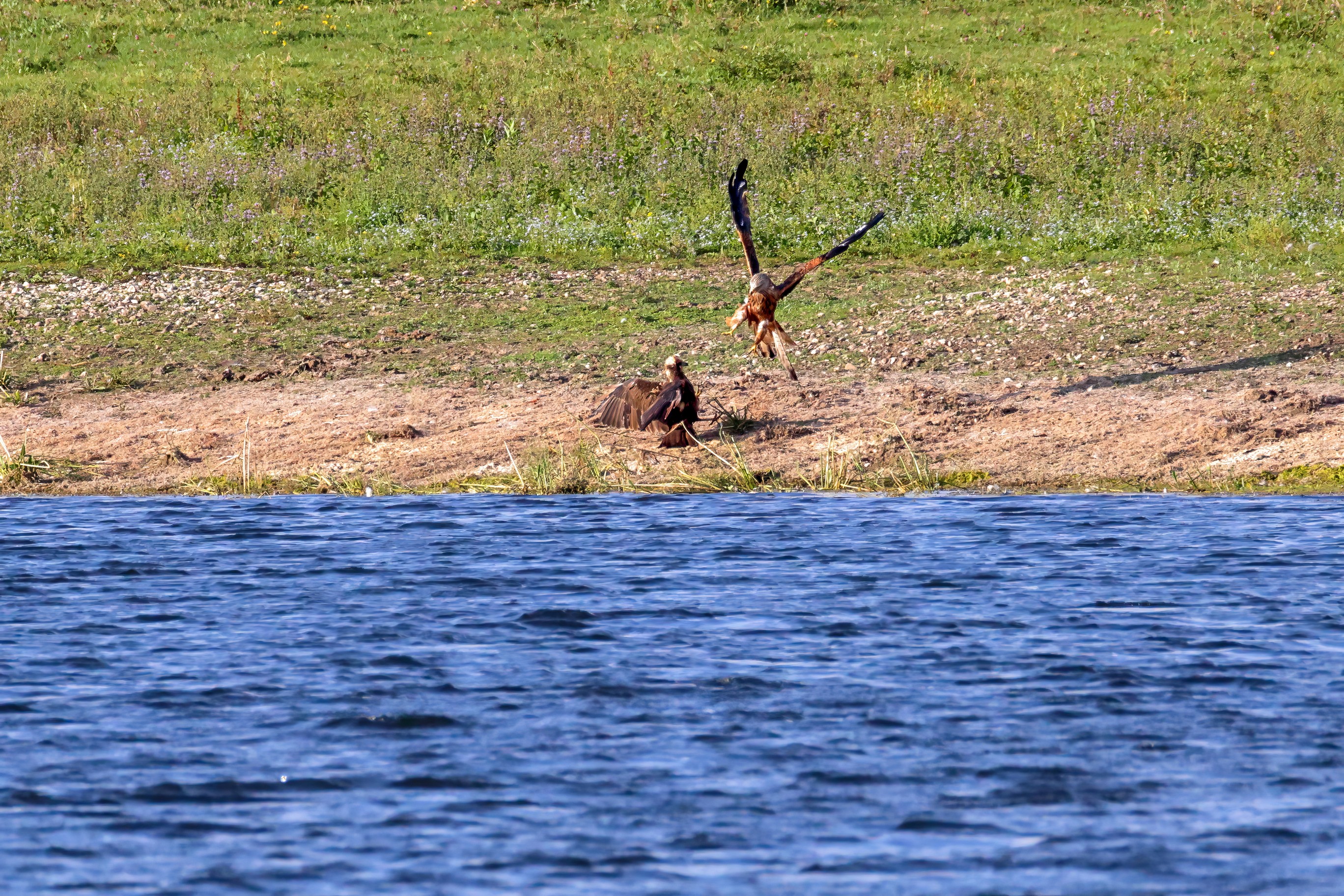 Kornweihe und Rotmilan streiten um Fundbeute