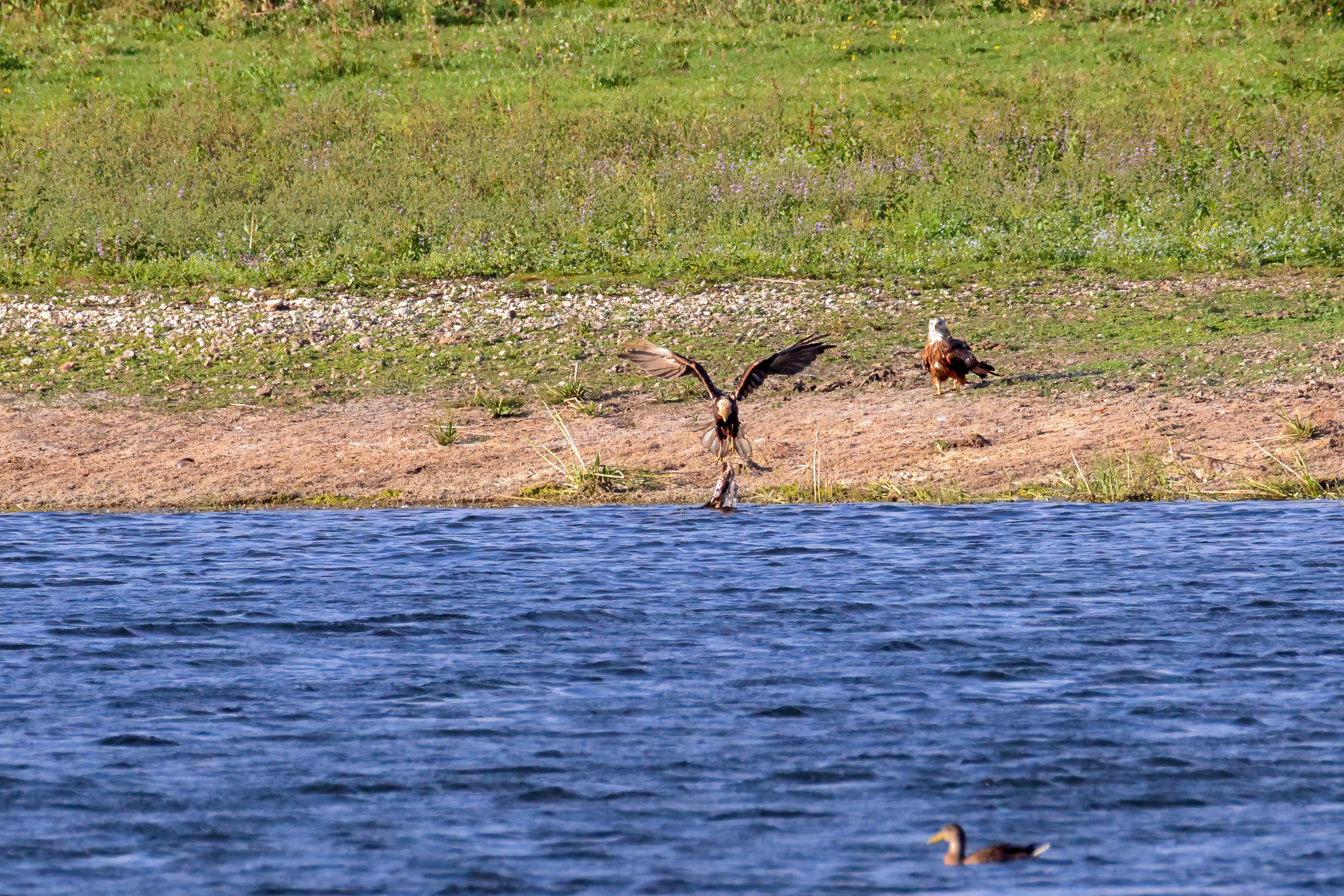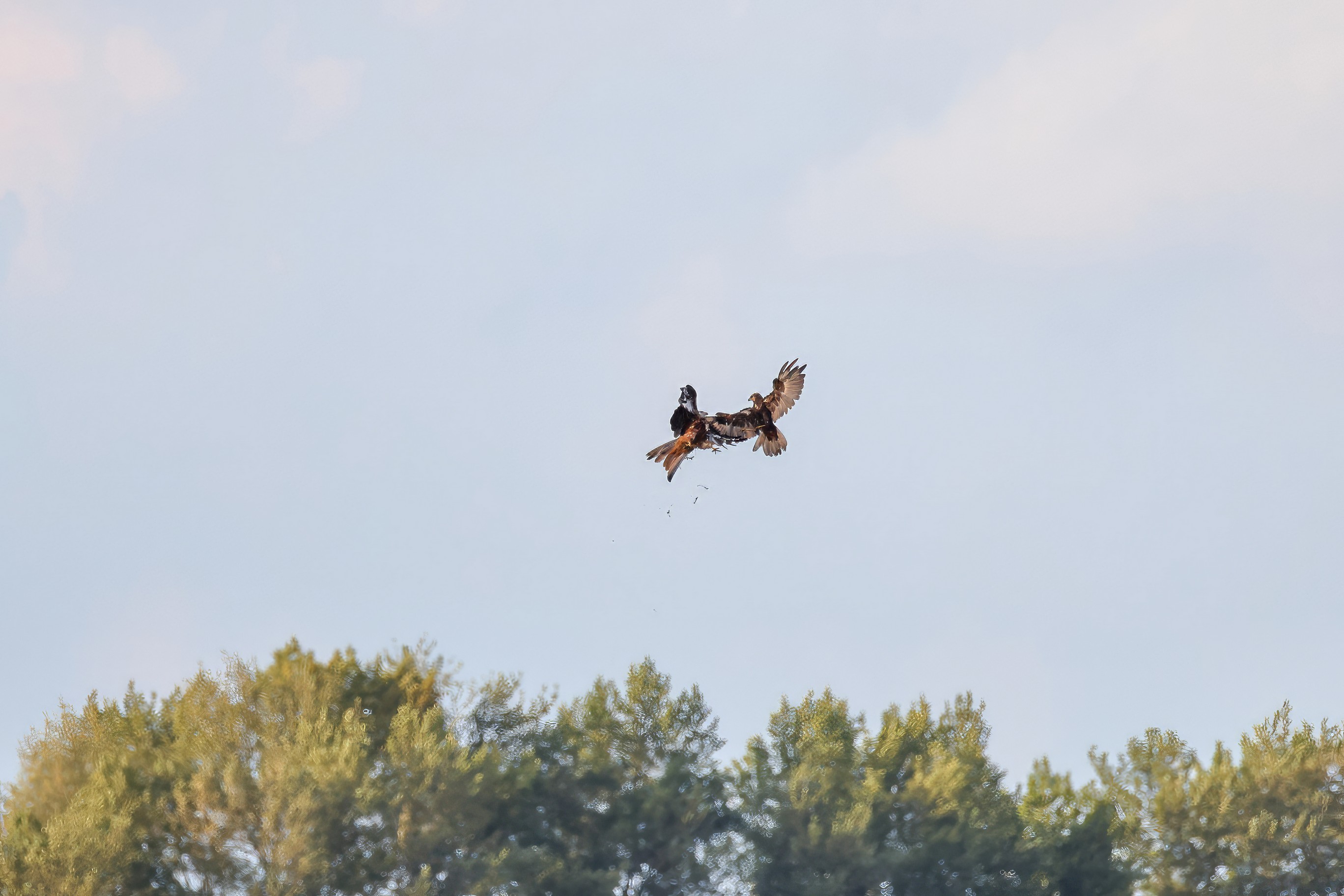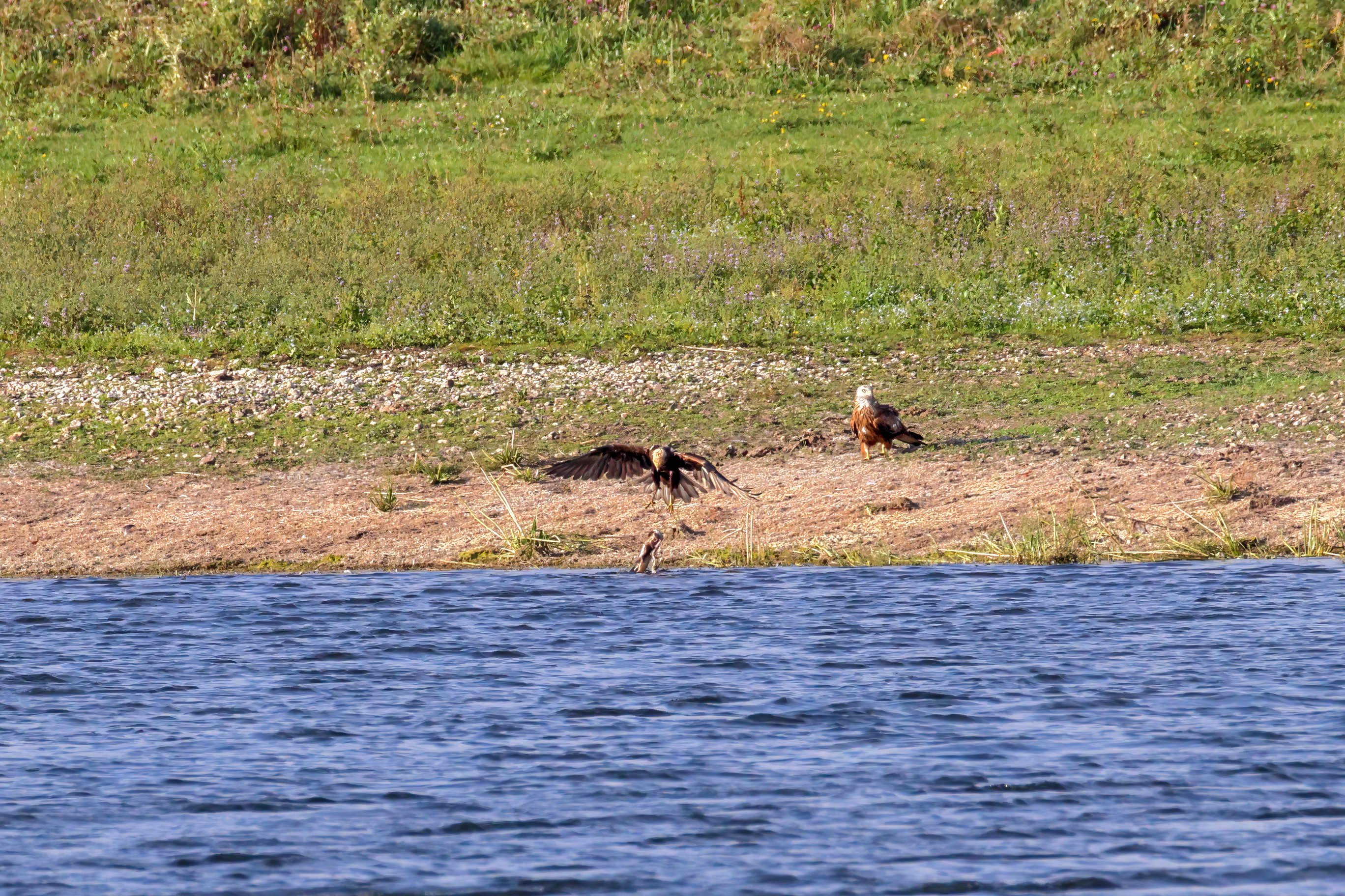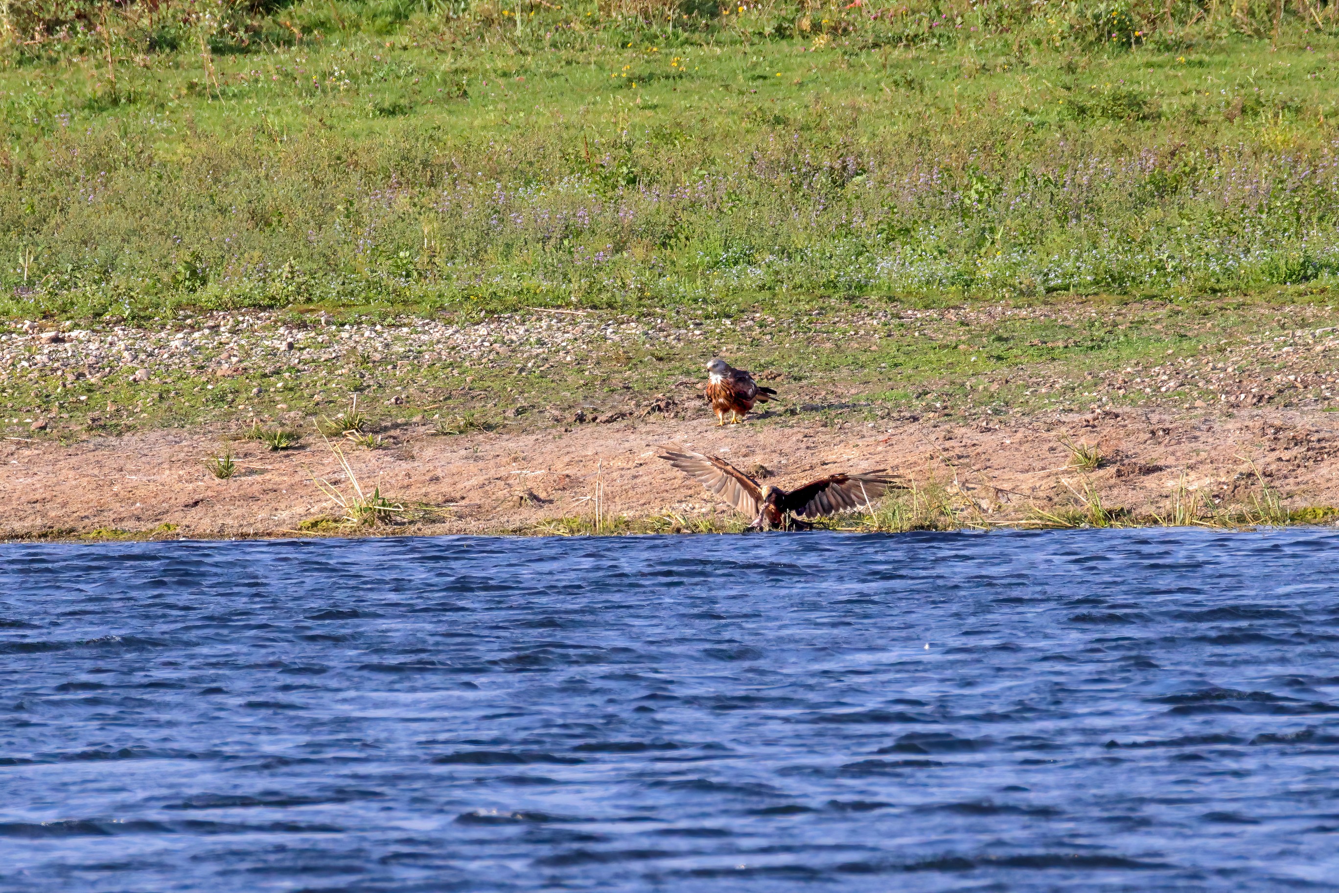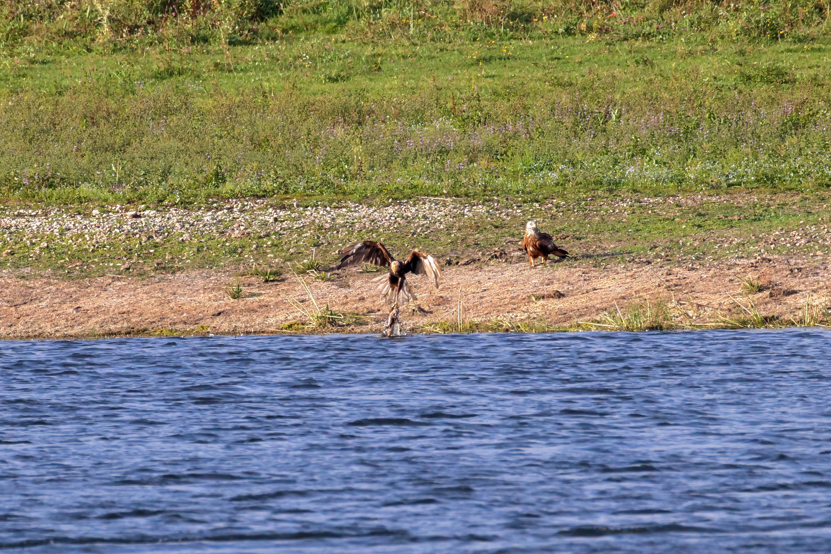Kornweihe und Rotmilan streiten um Fundbeute