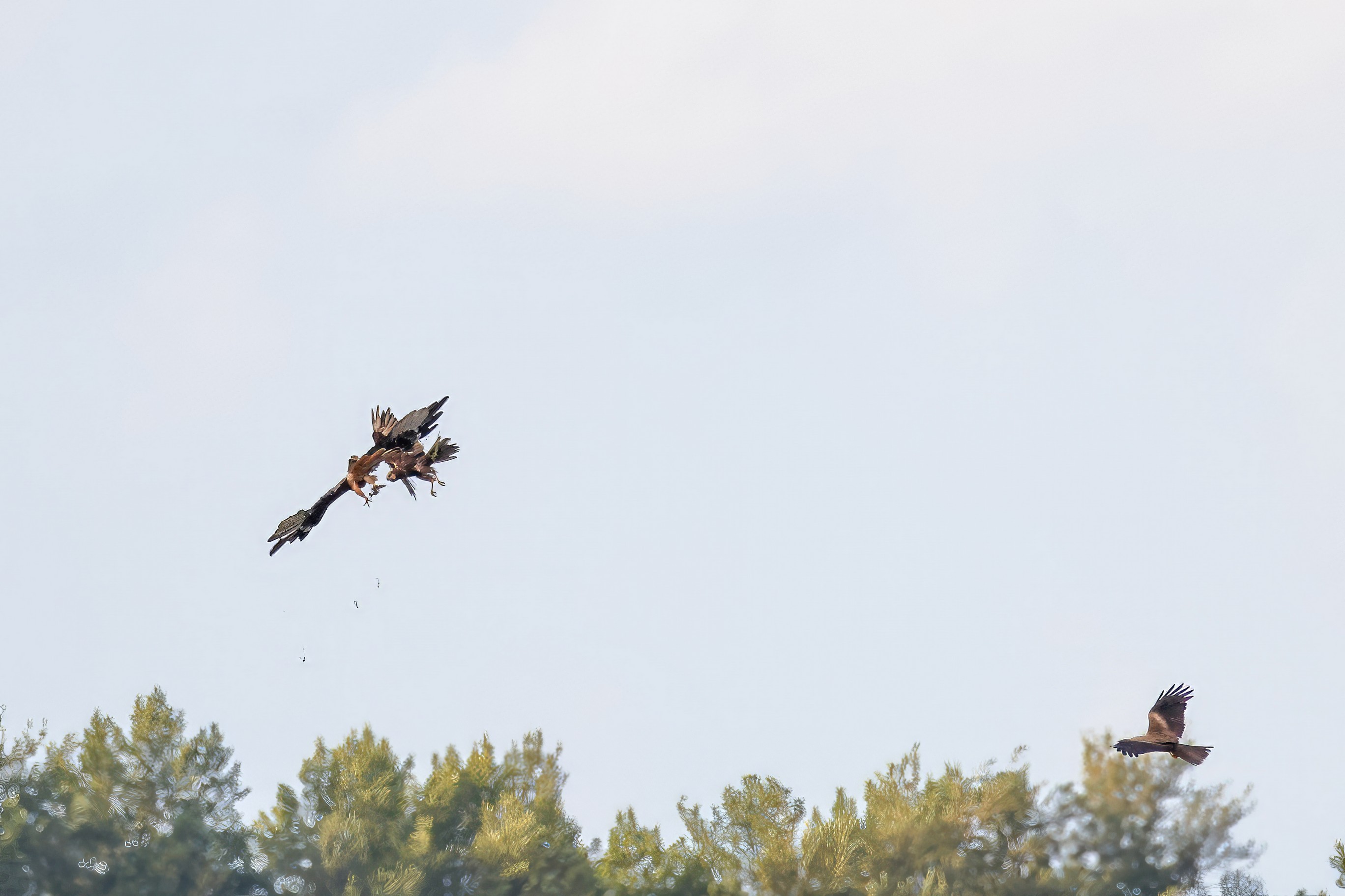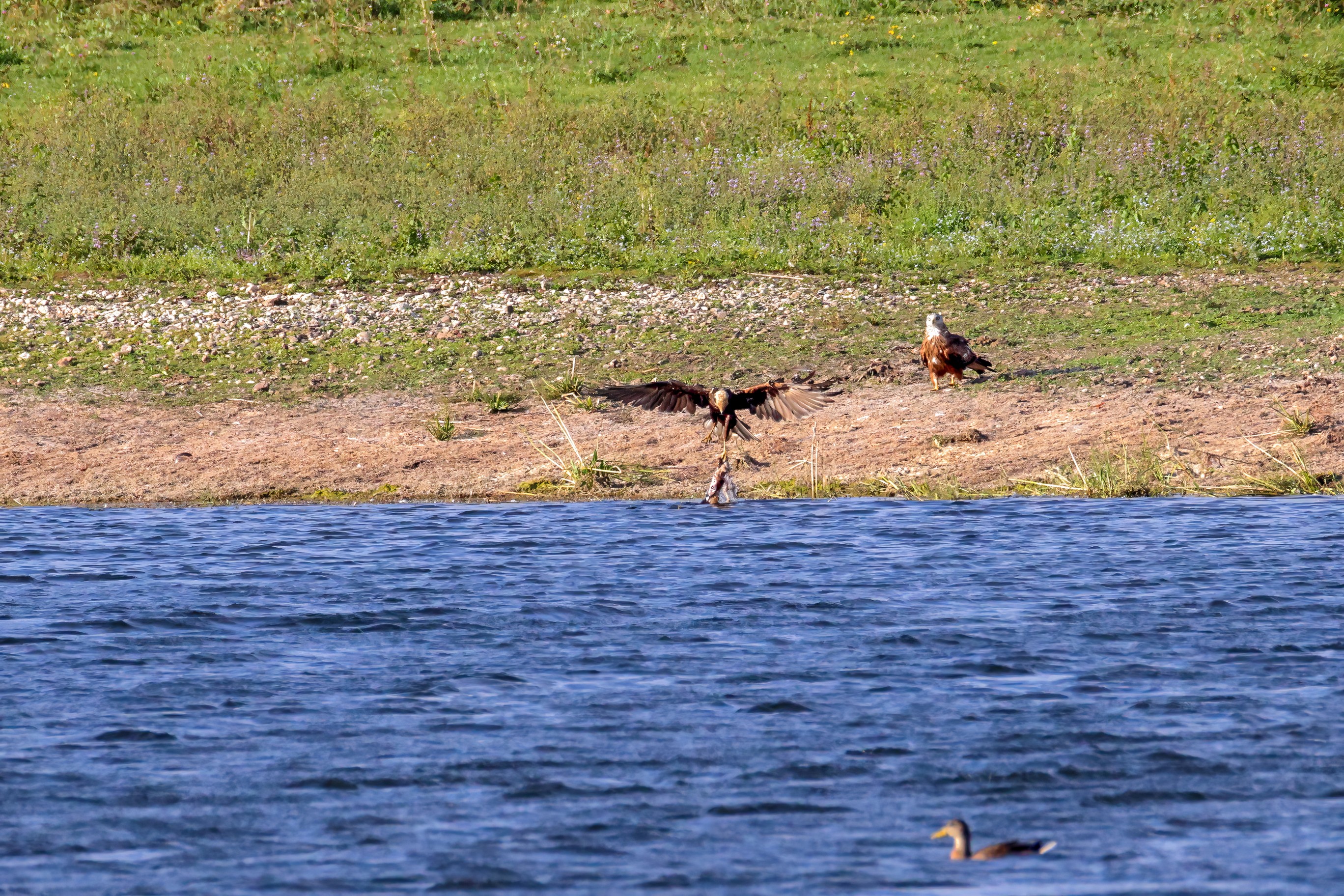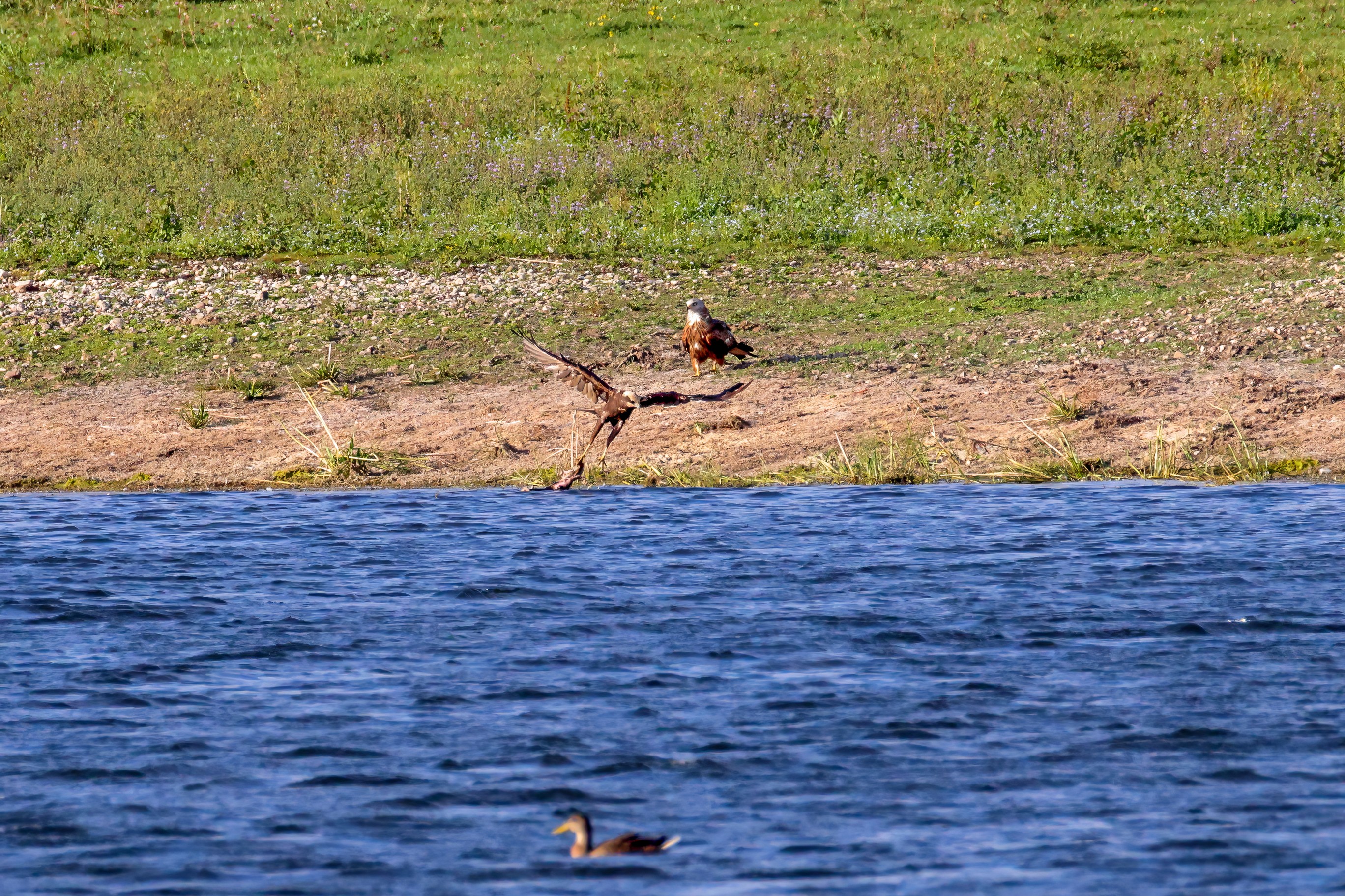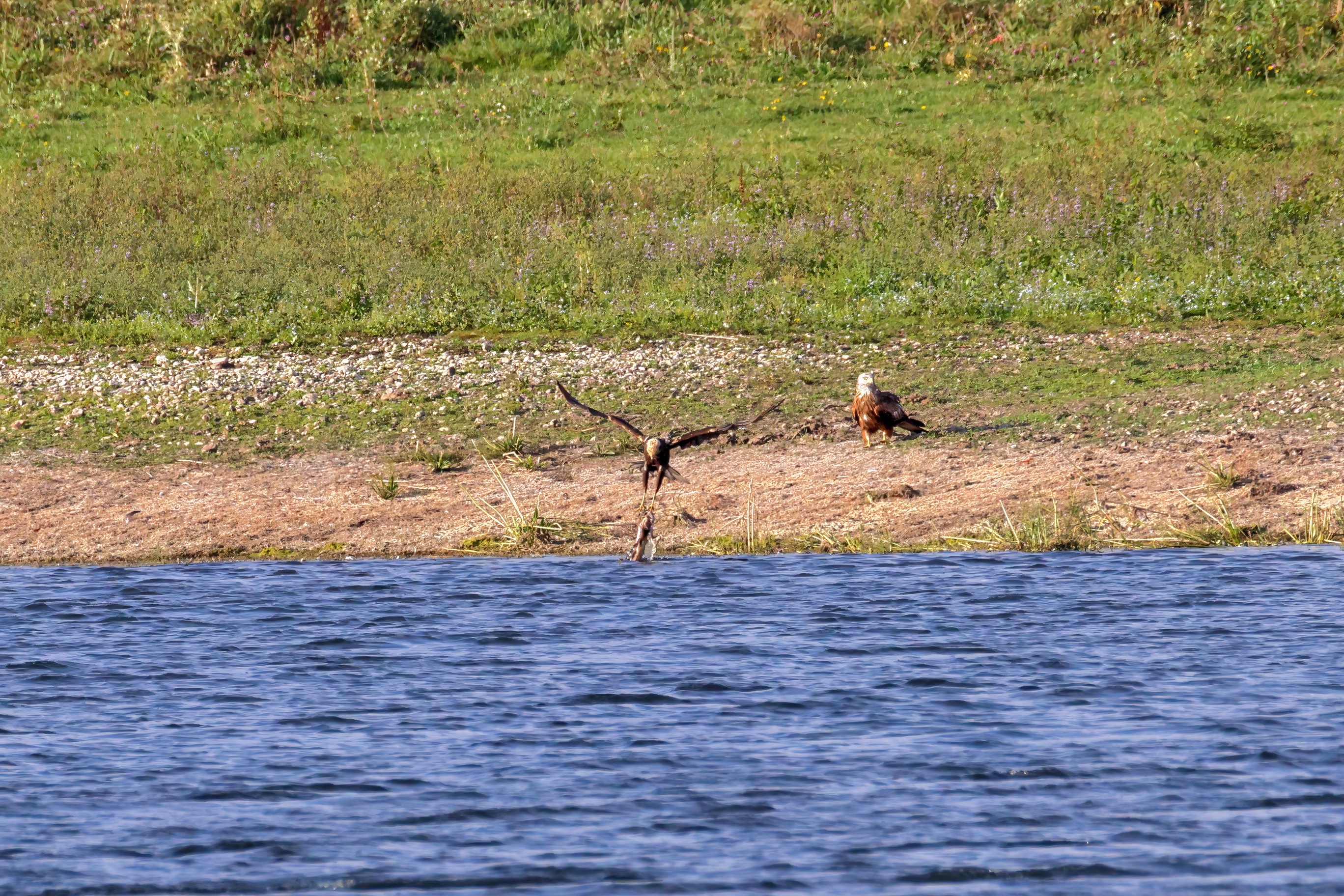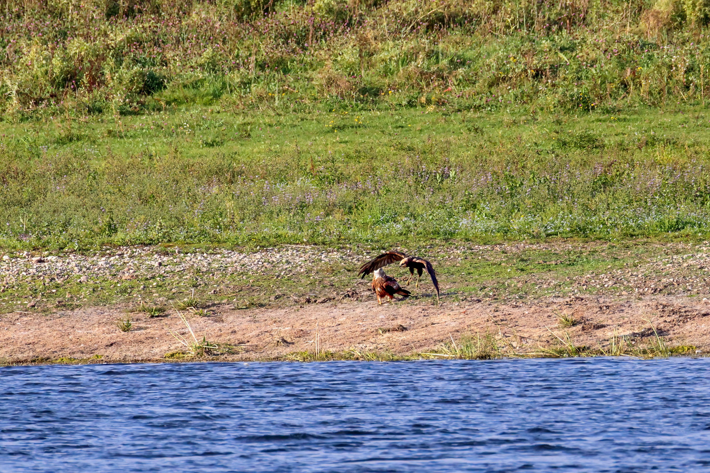 Kornweihe und Rotmilan streiten um Fundbeute