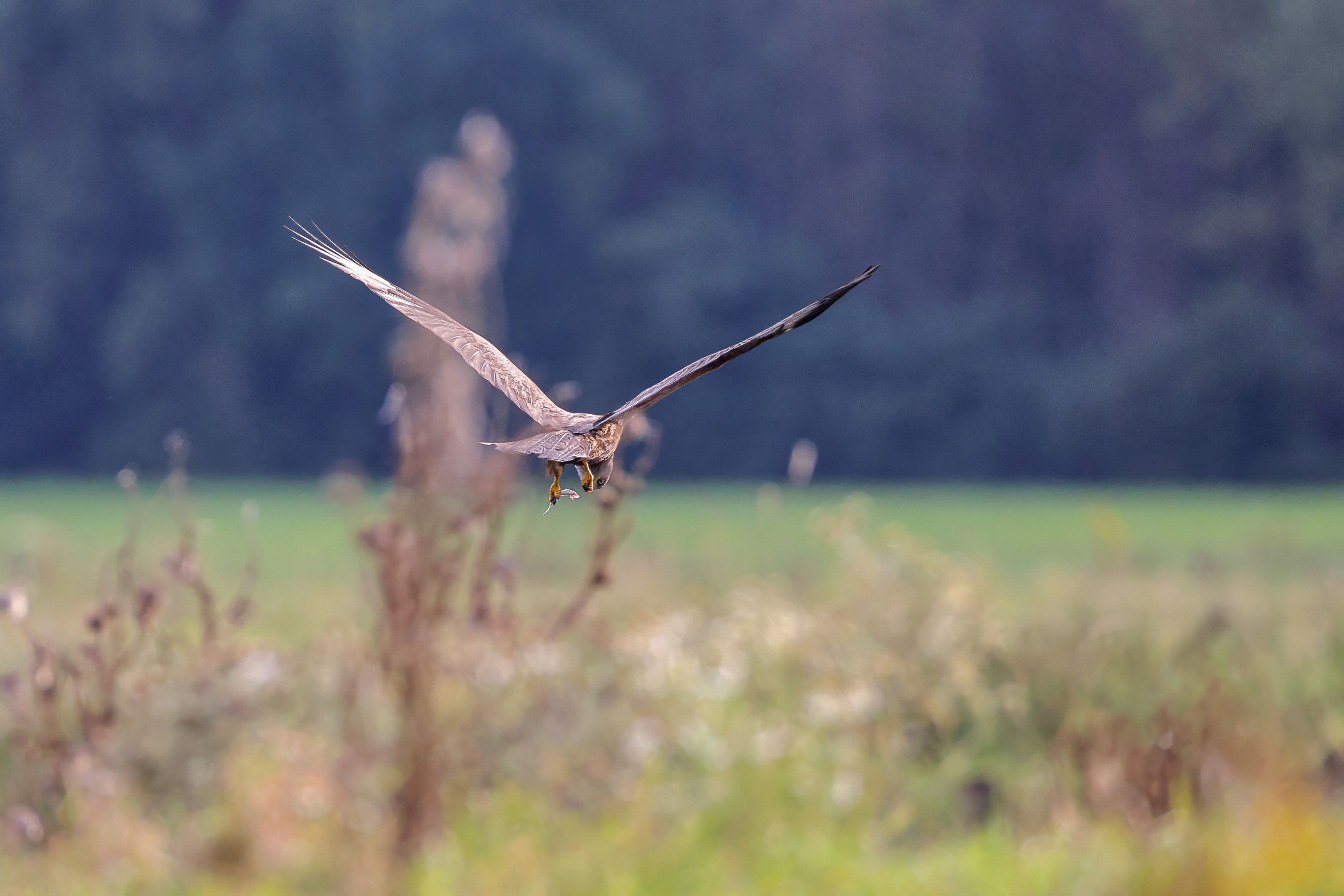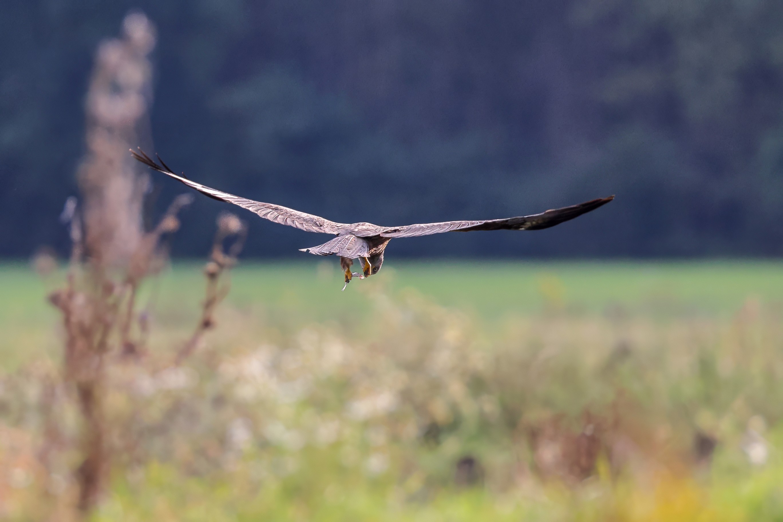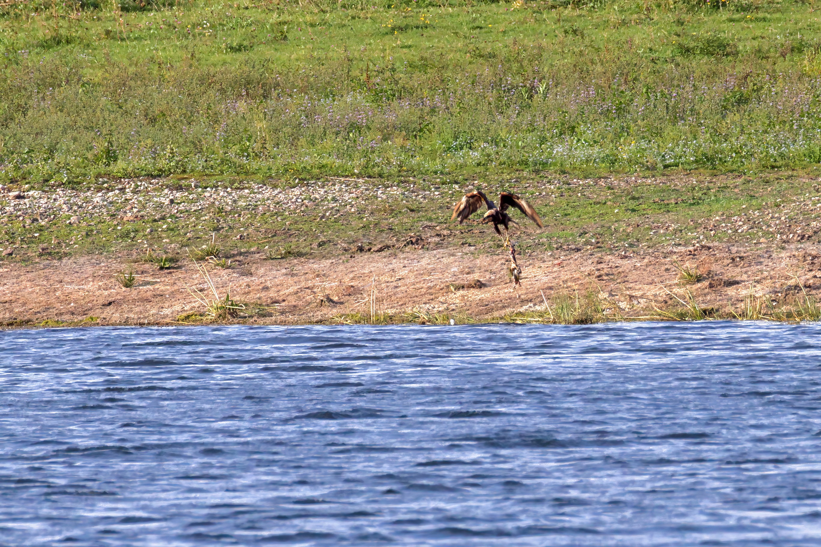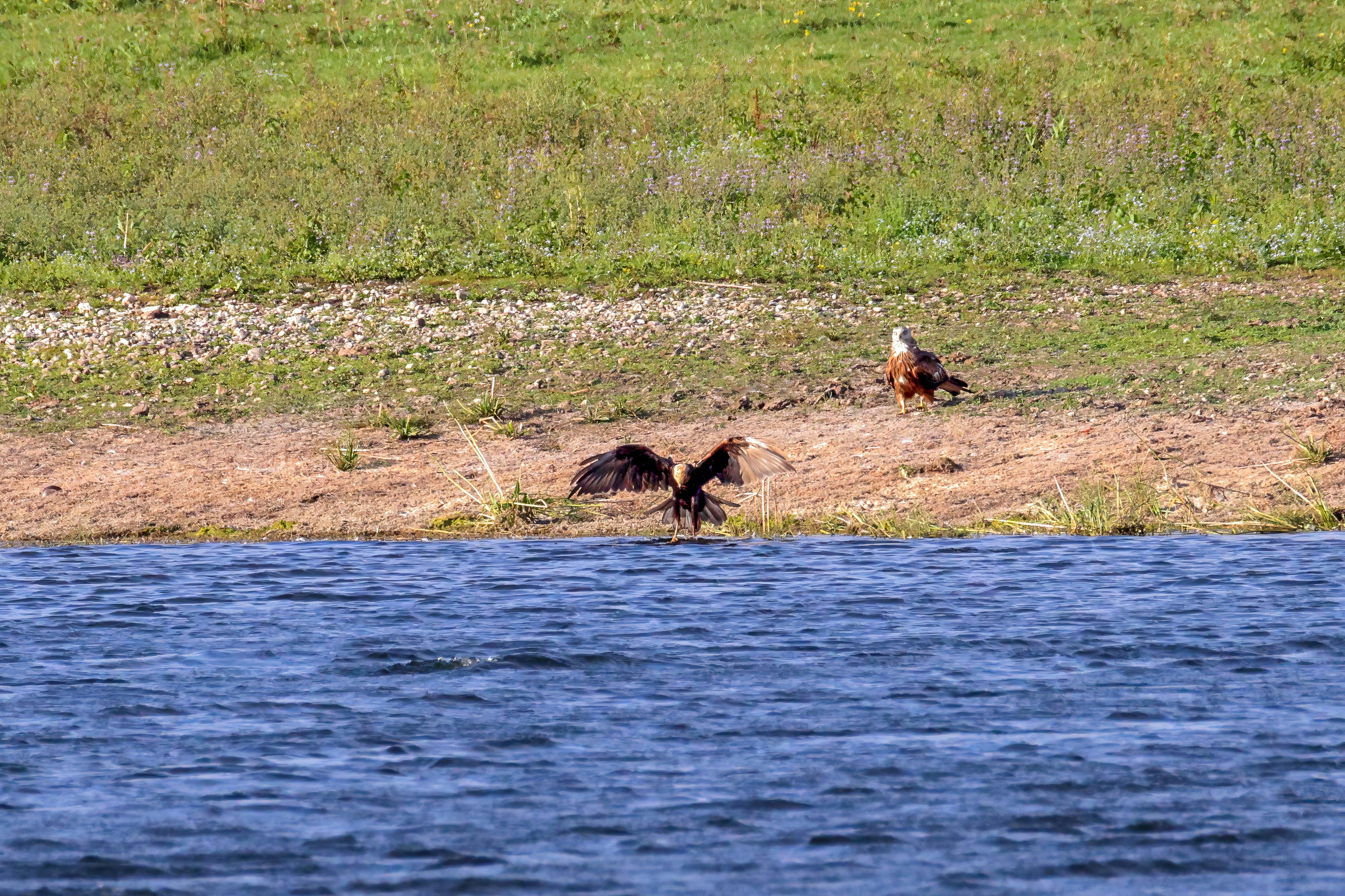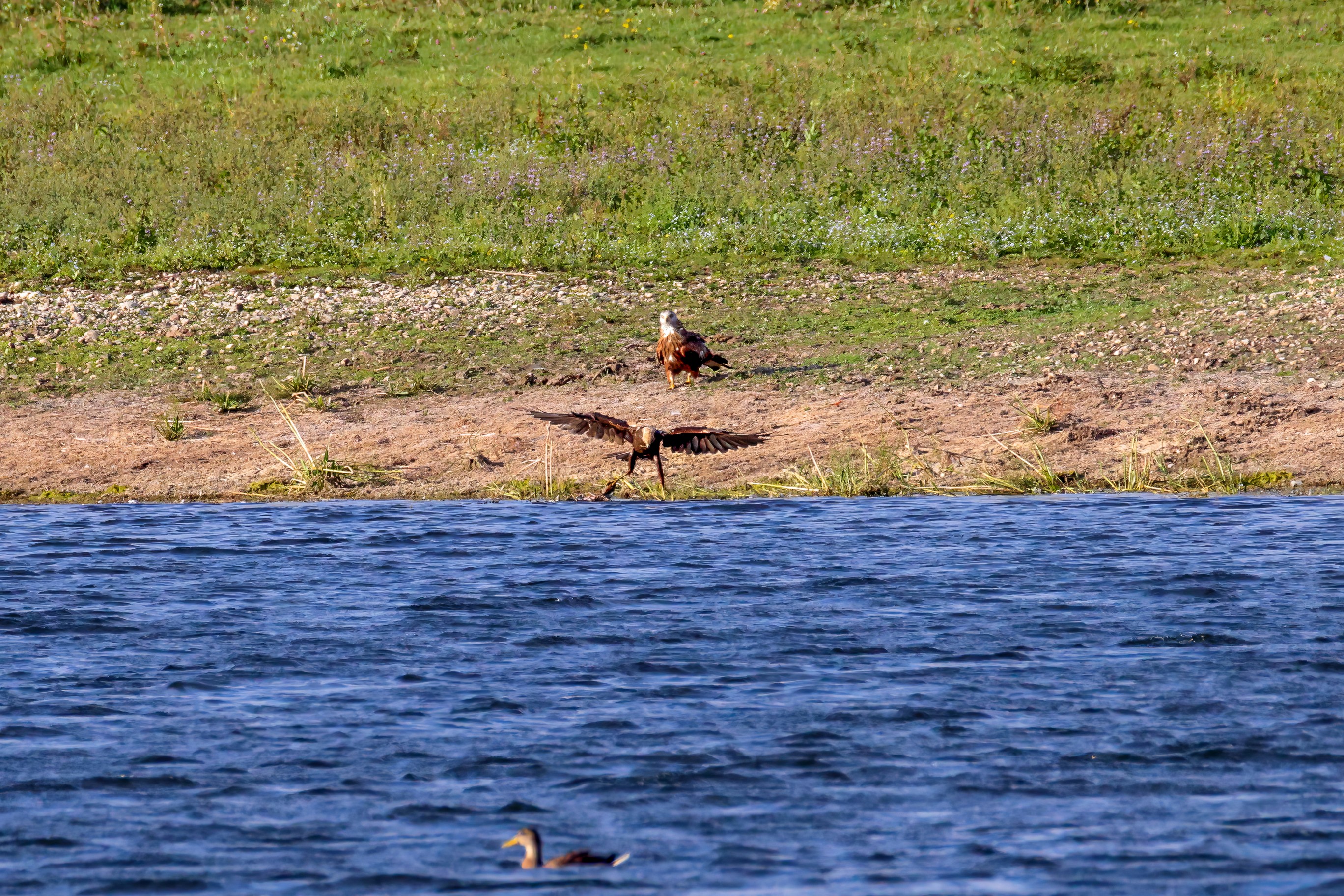 Kornweihe und Rotmilan streiten um Fundbeute
