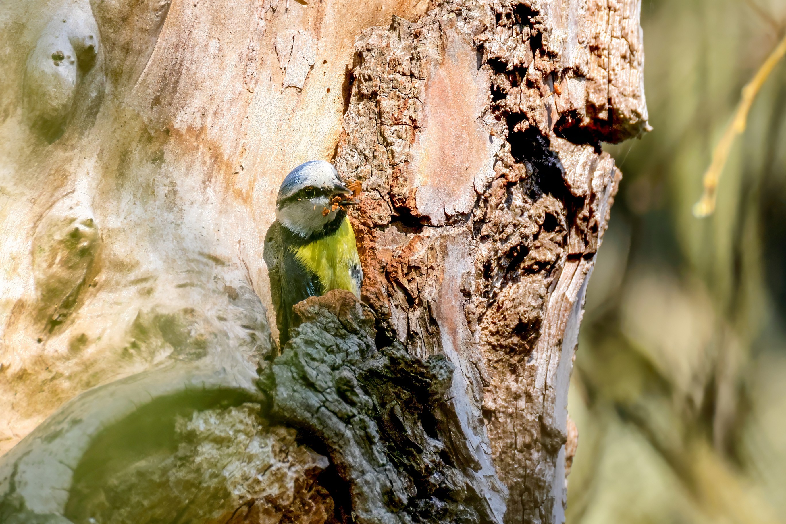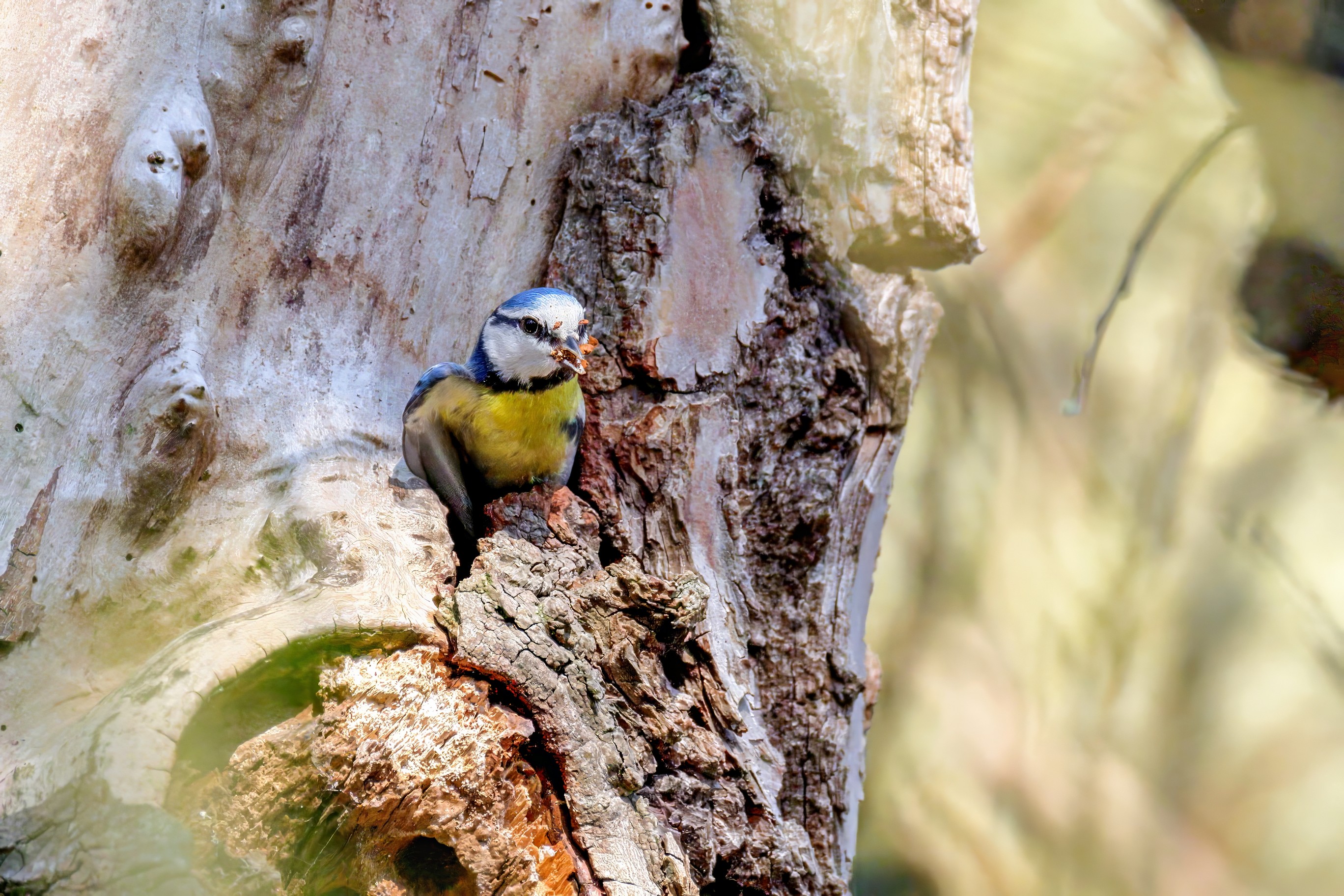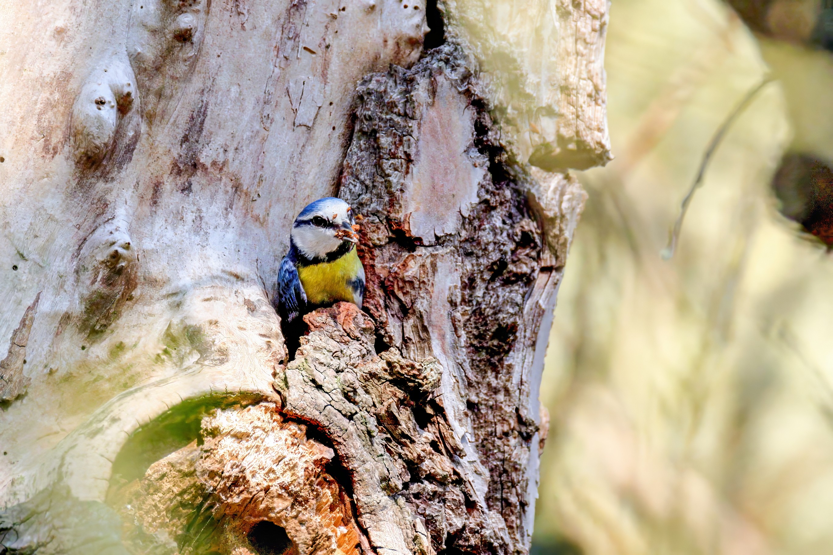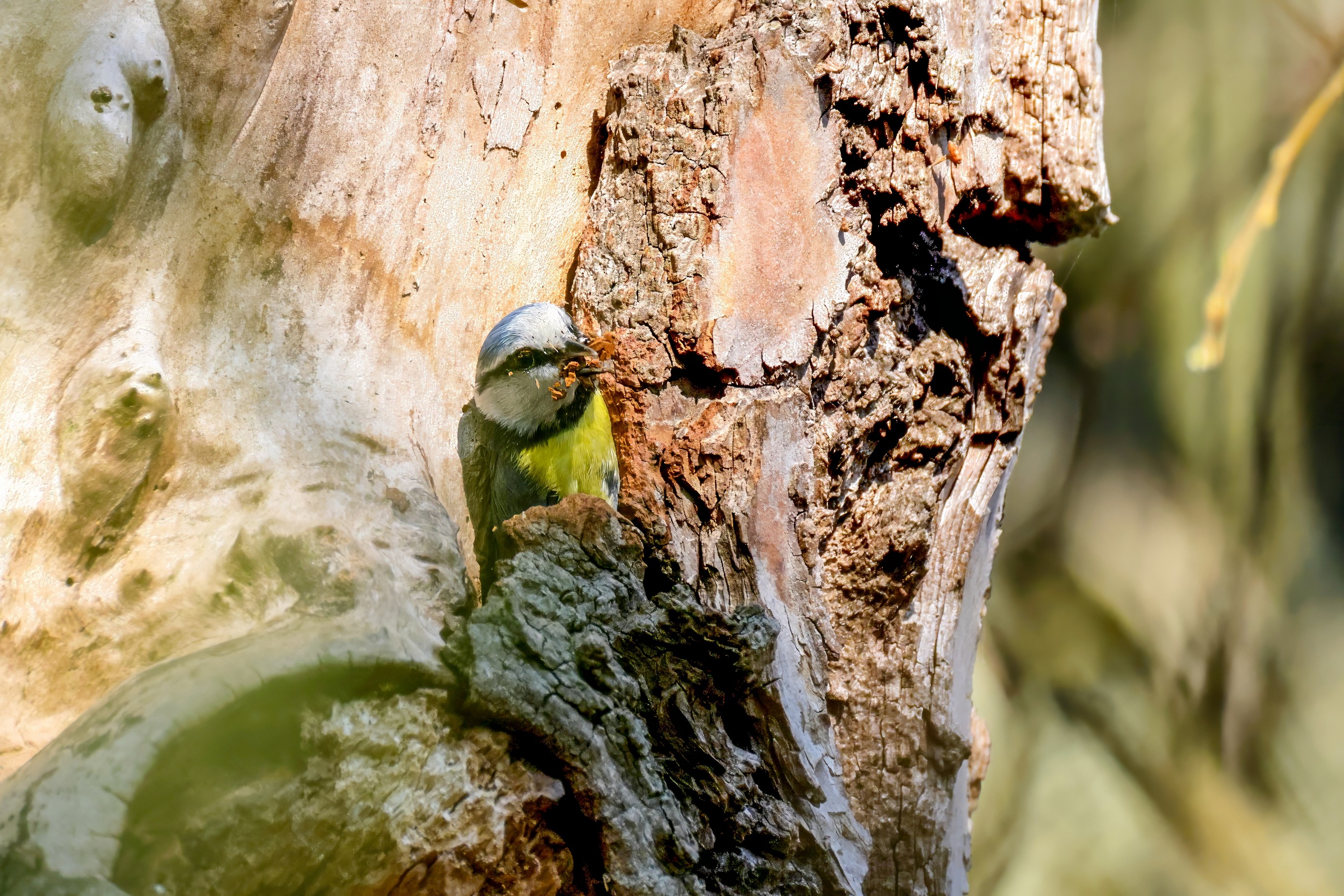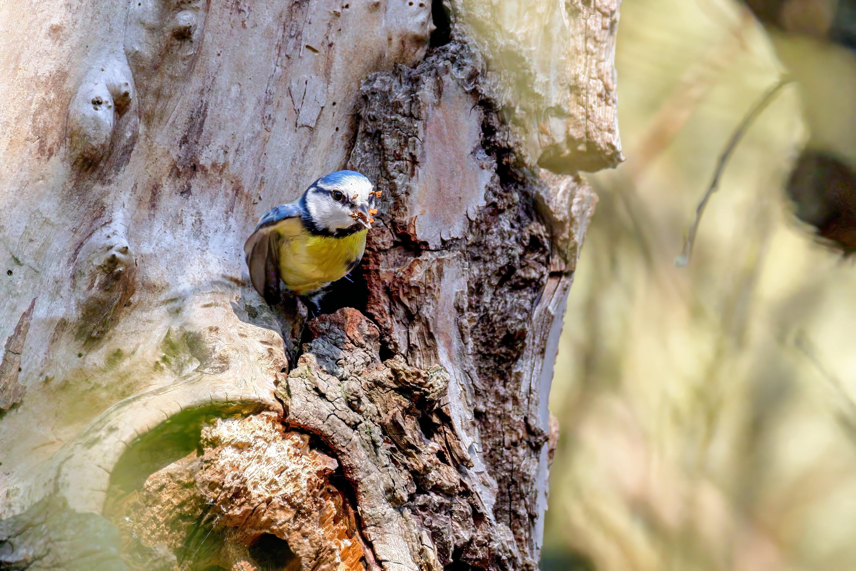 Blaumeisen bauen eine Bruthöhle