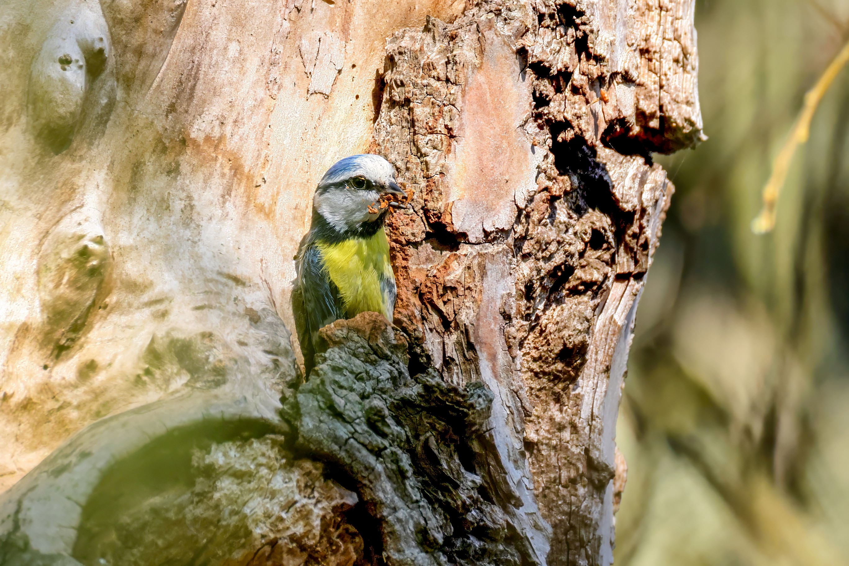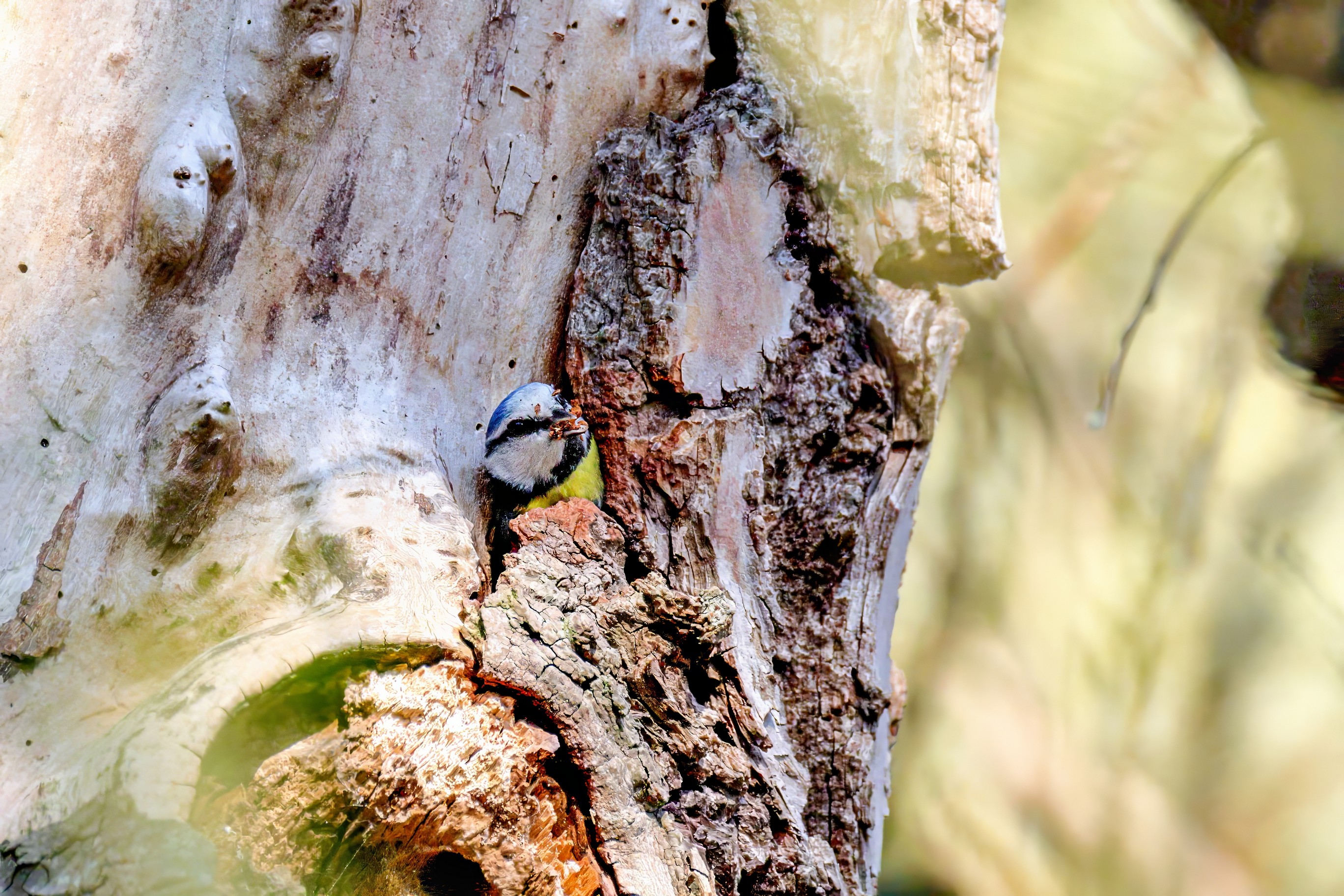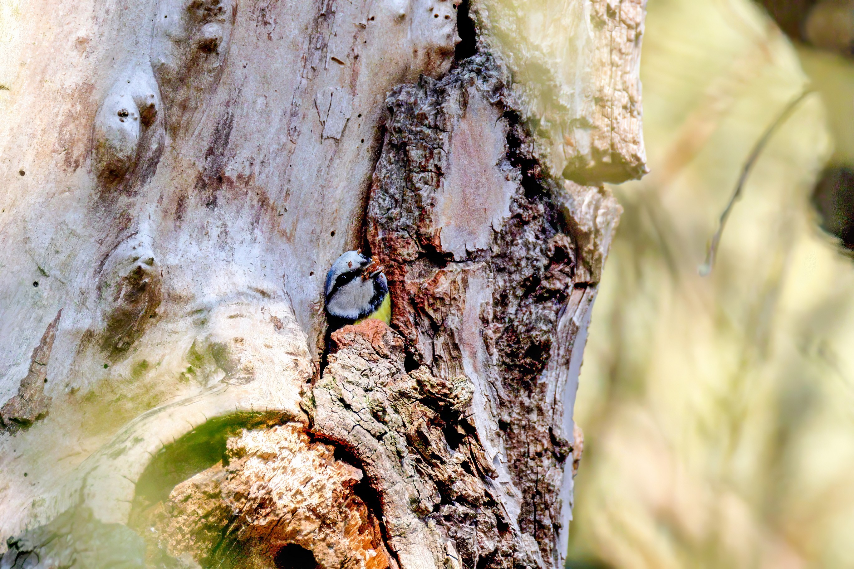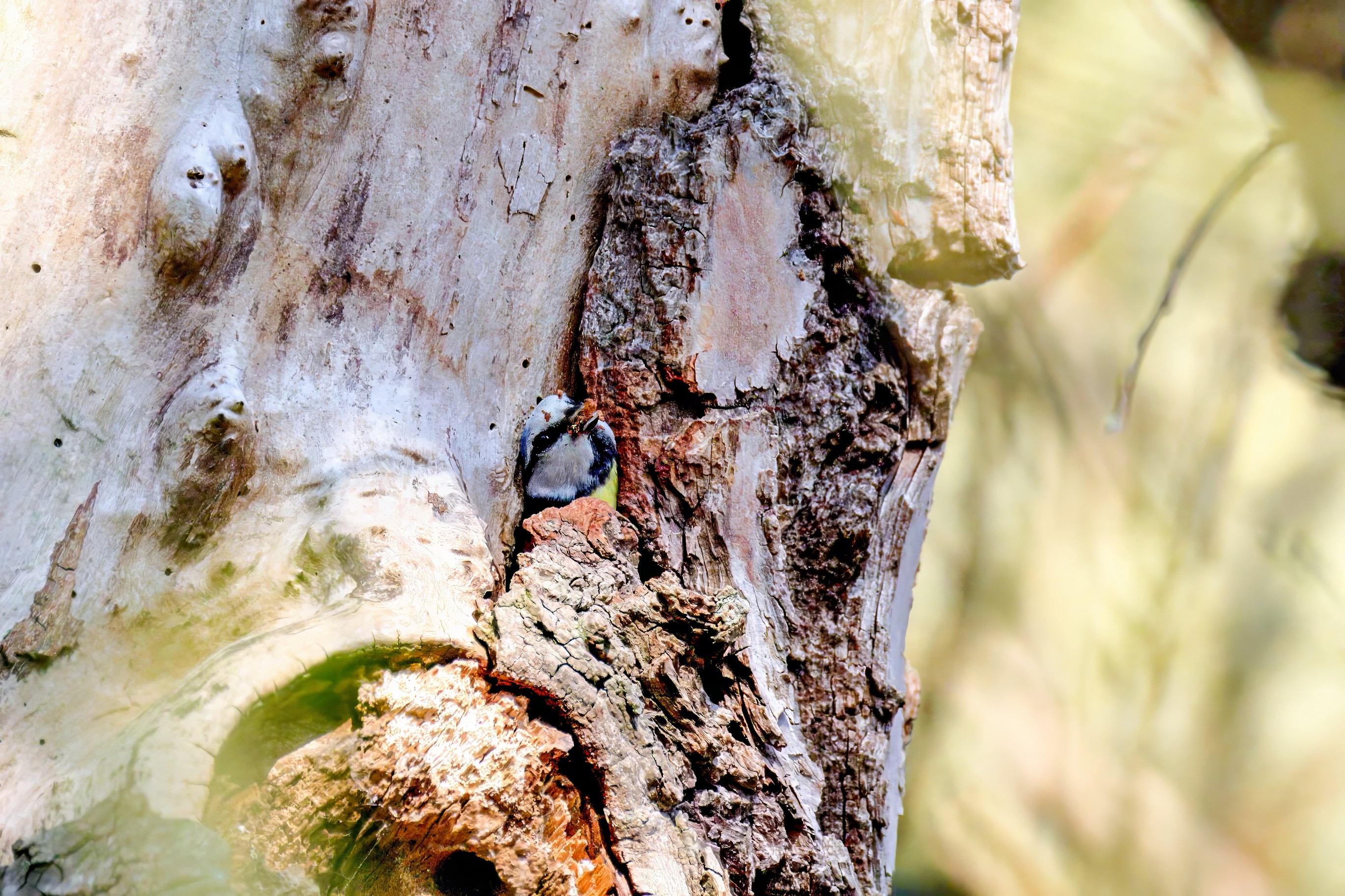 Blaumeisen bauen eine Bruthöhle