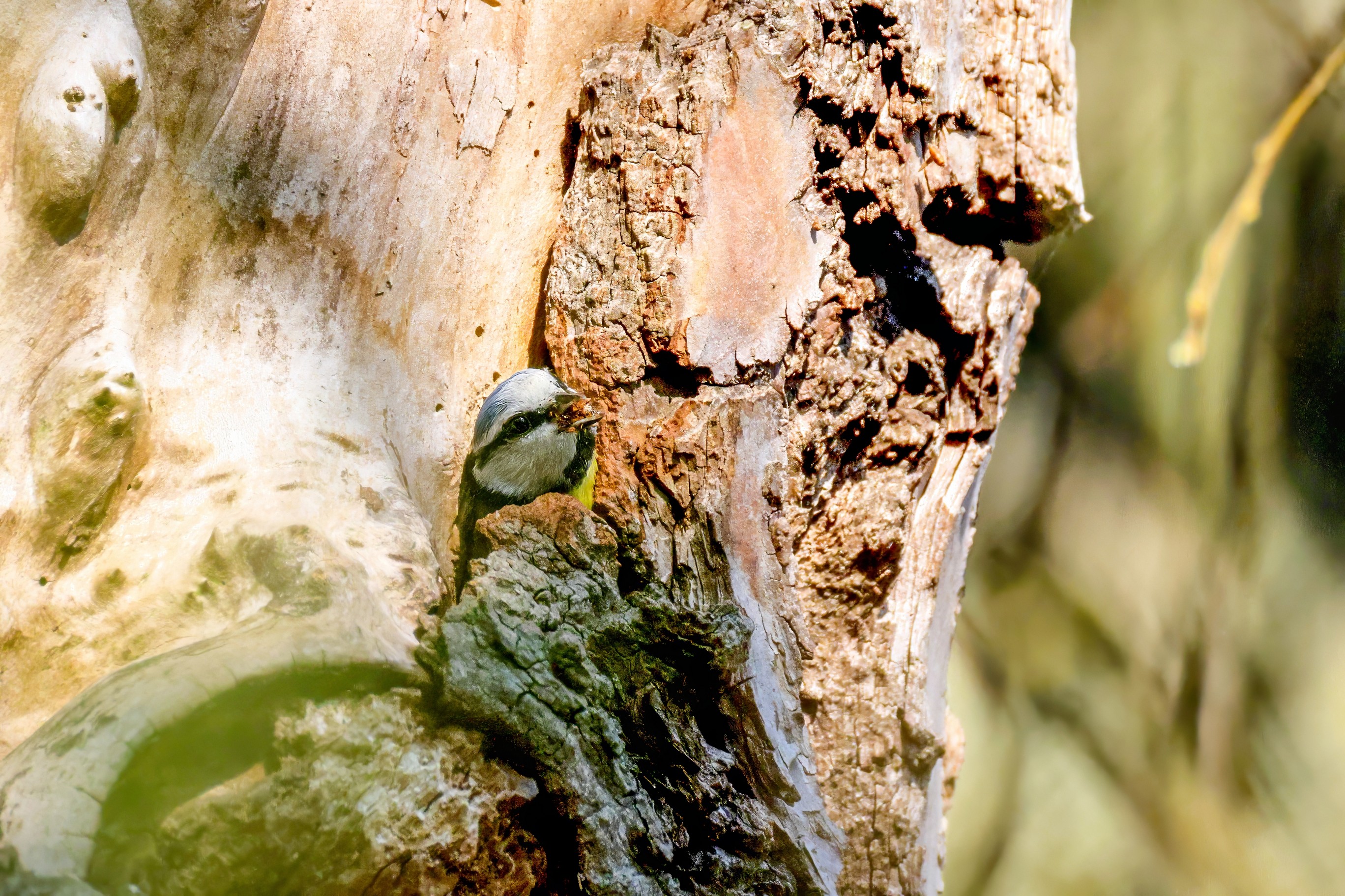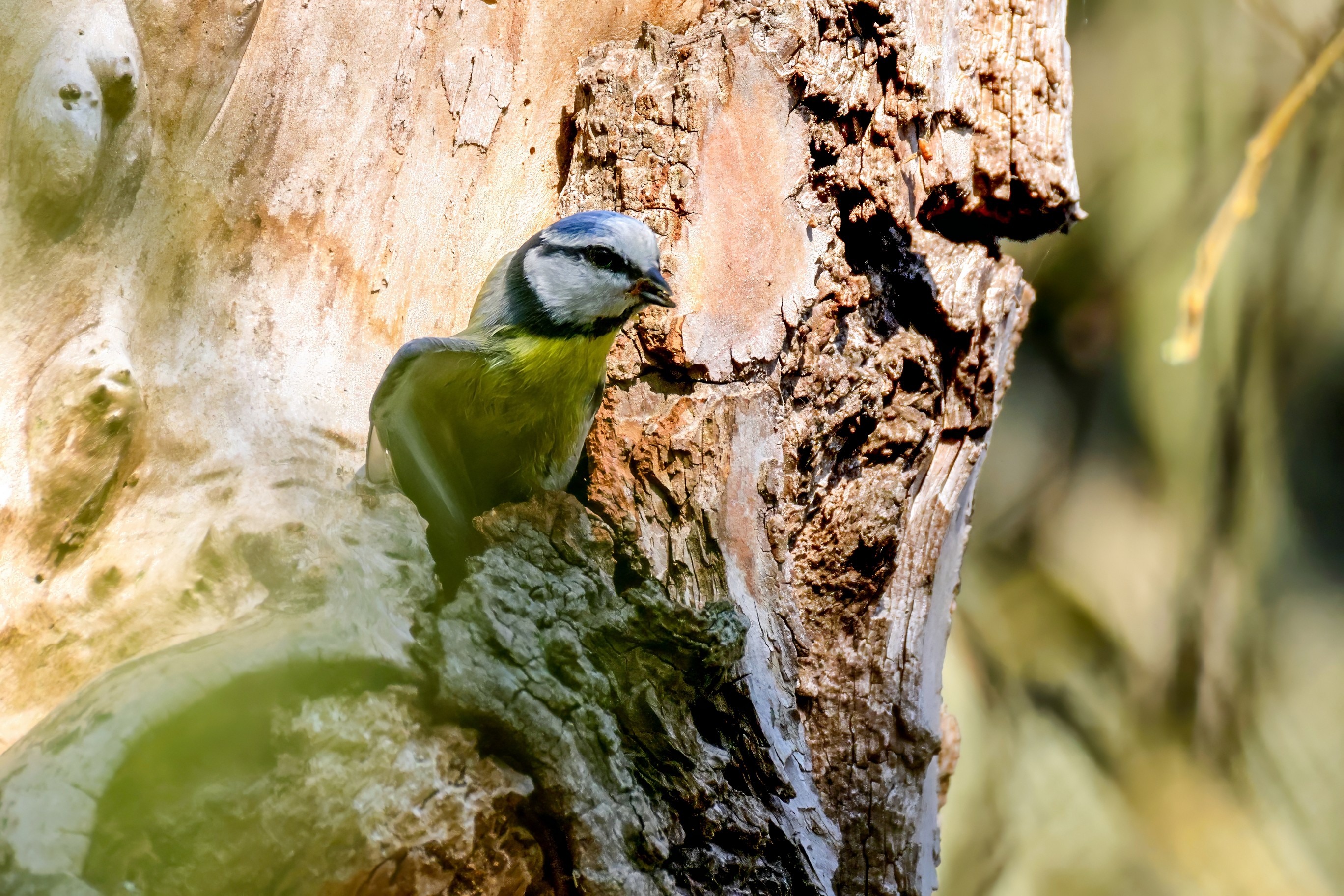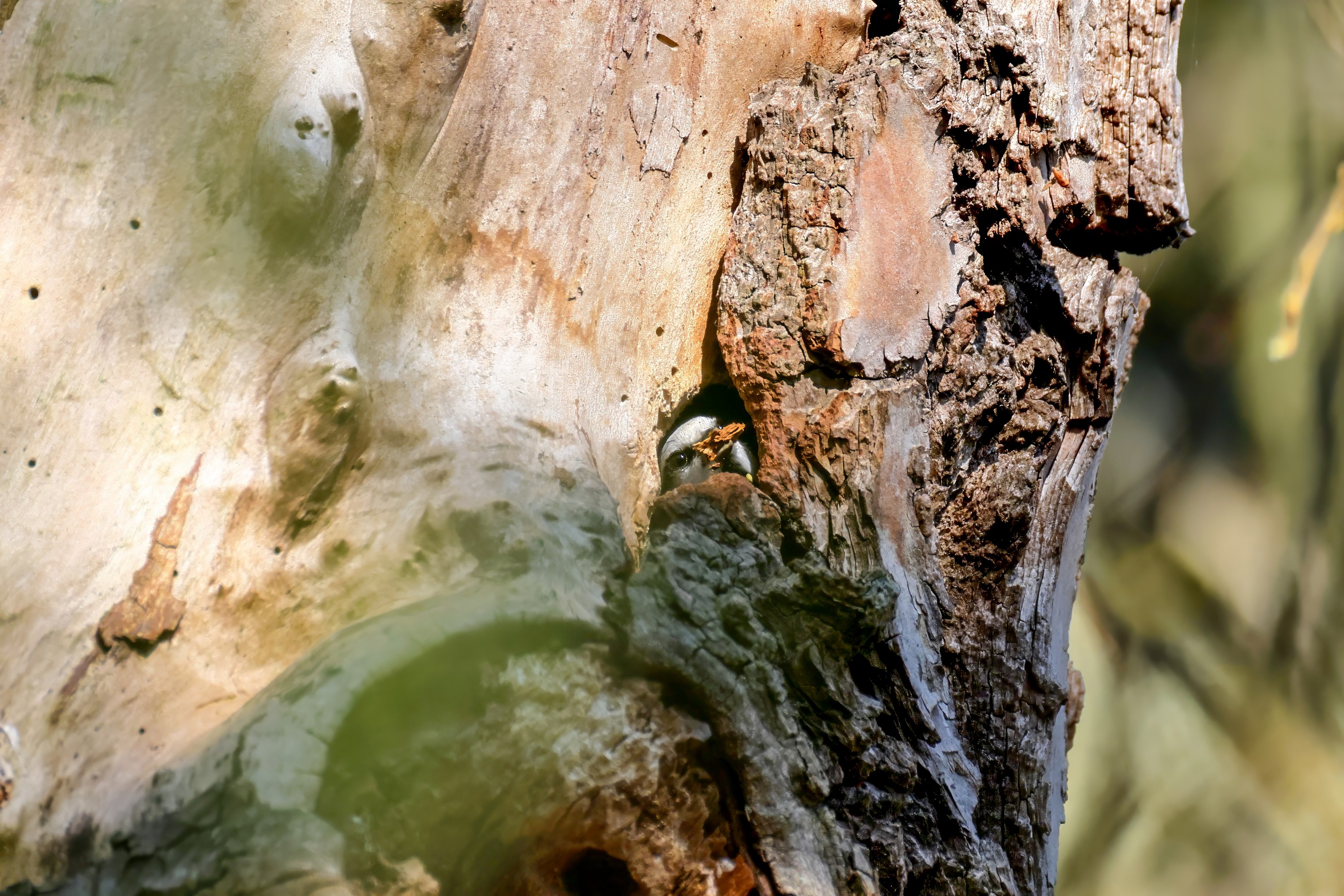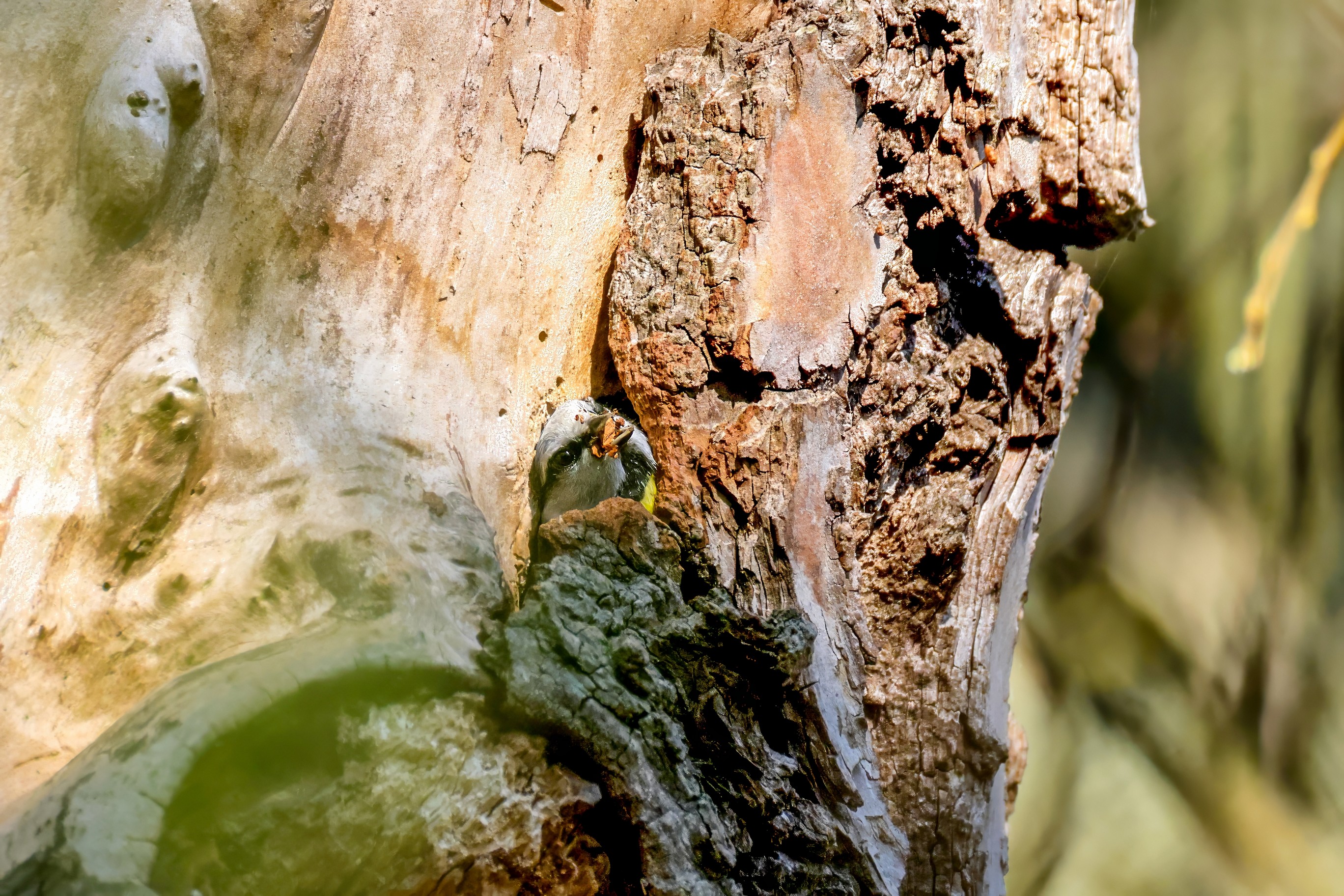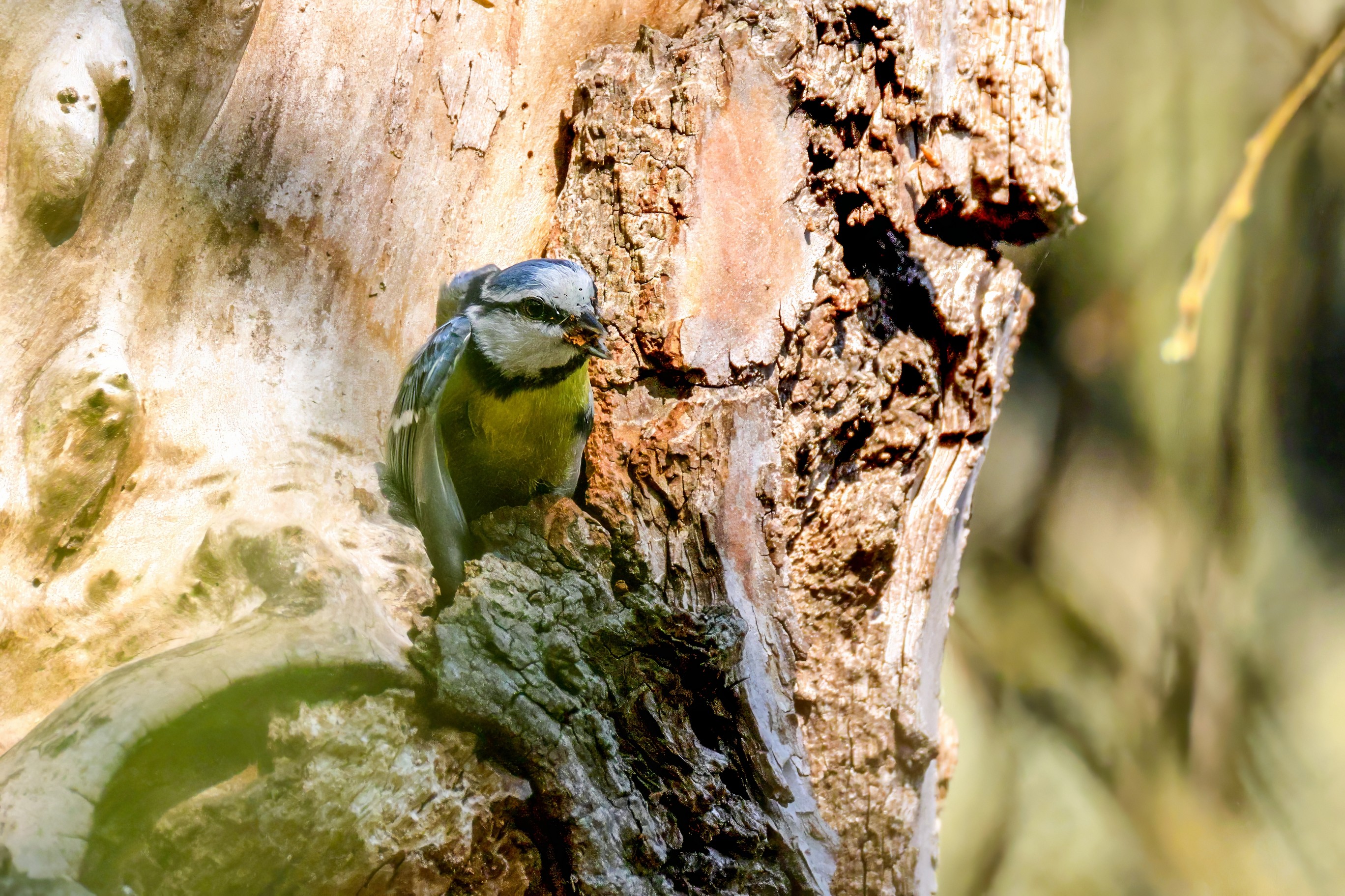 Blaumeisen bauen eine Bruthöhle