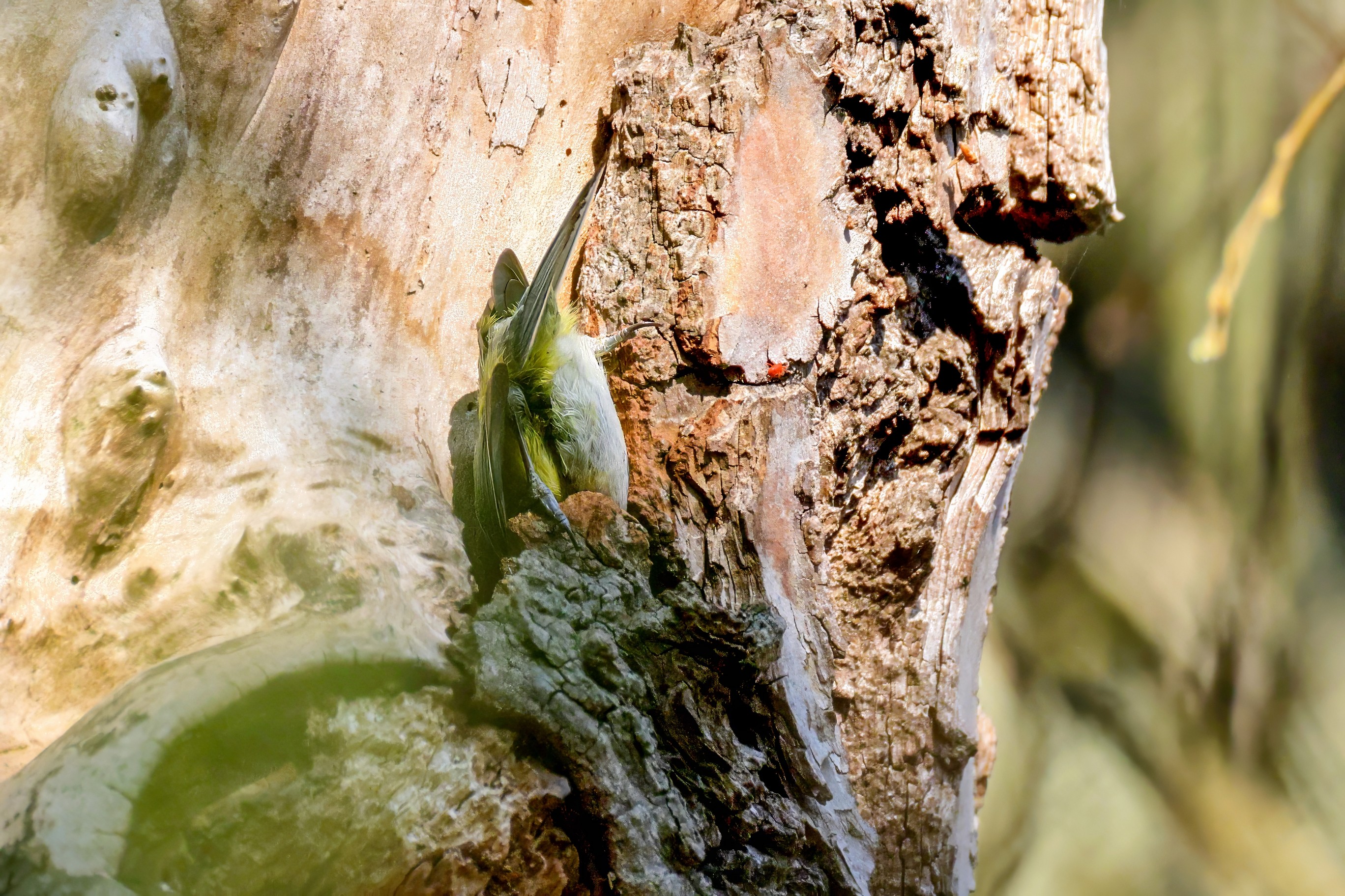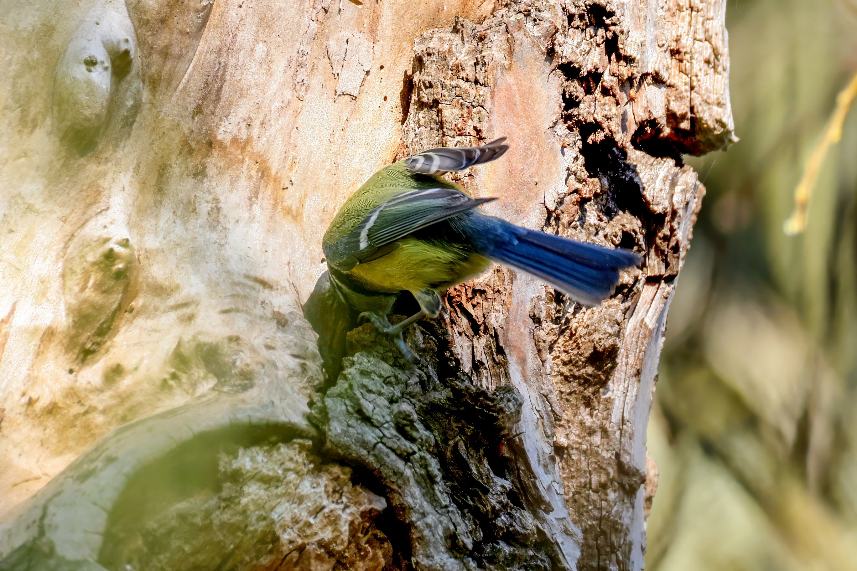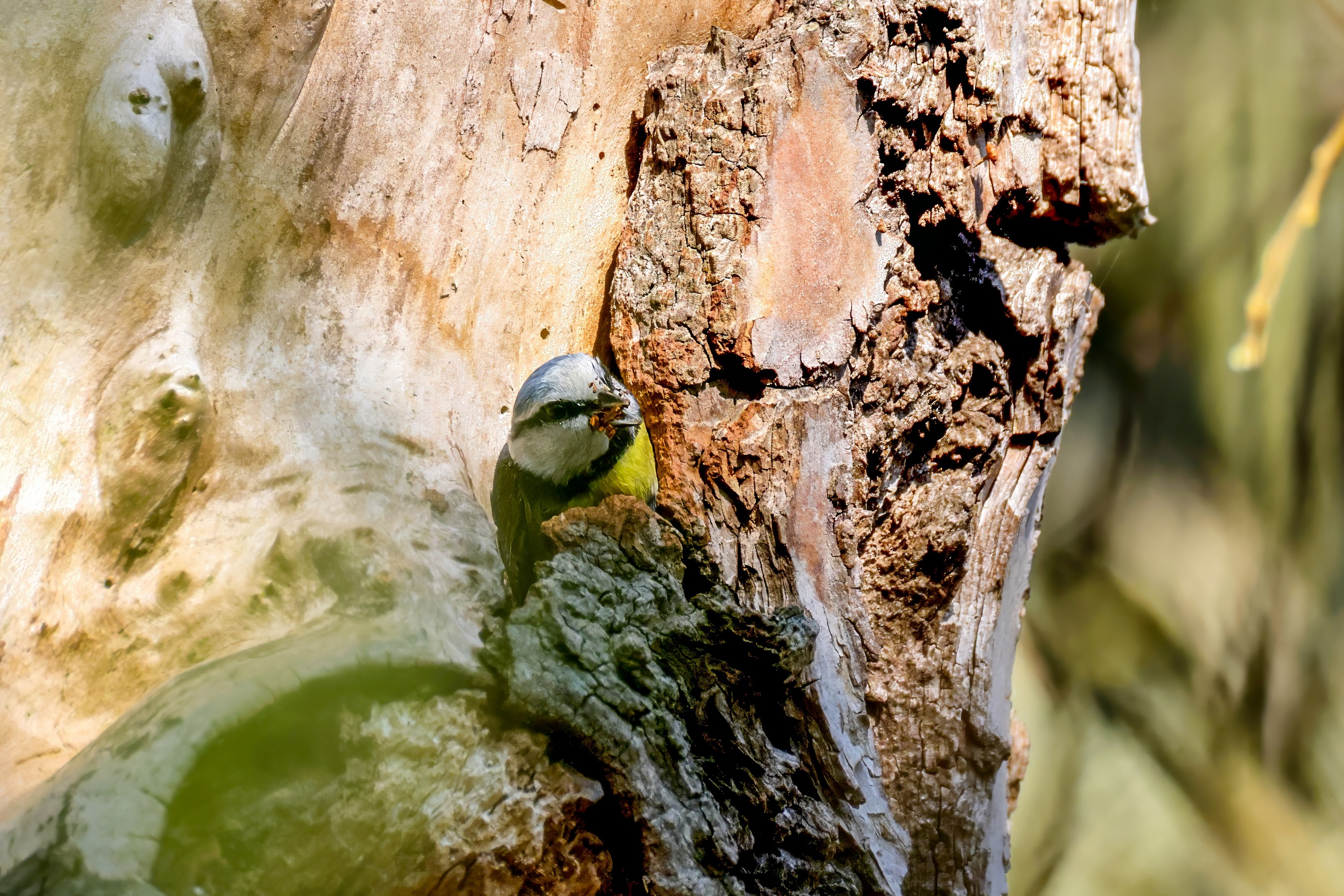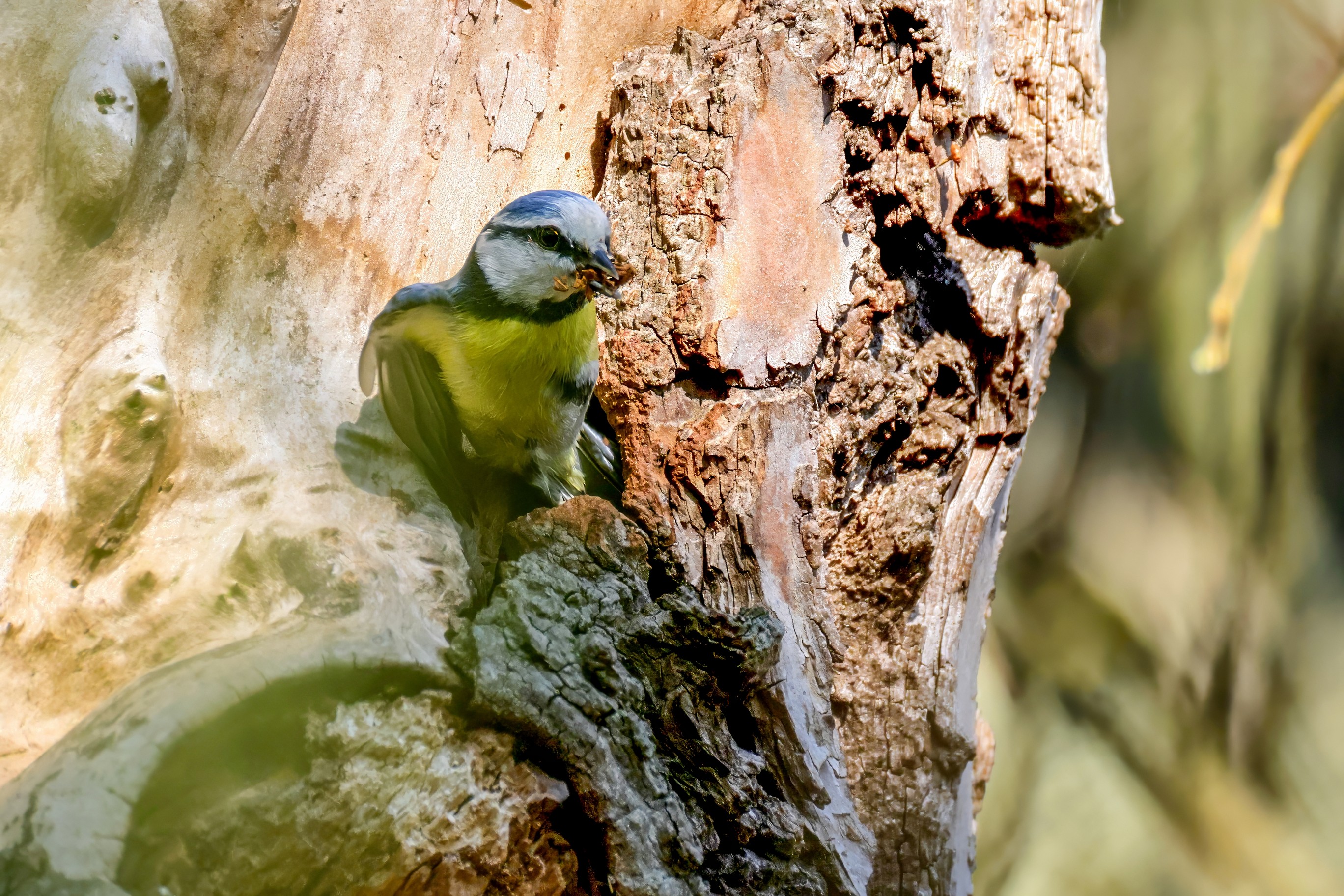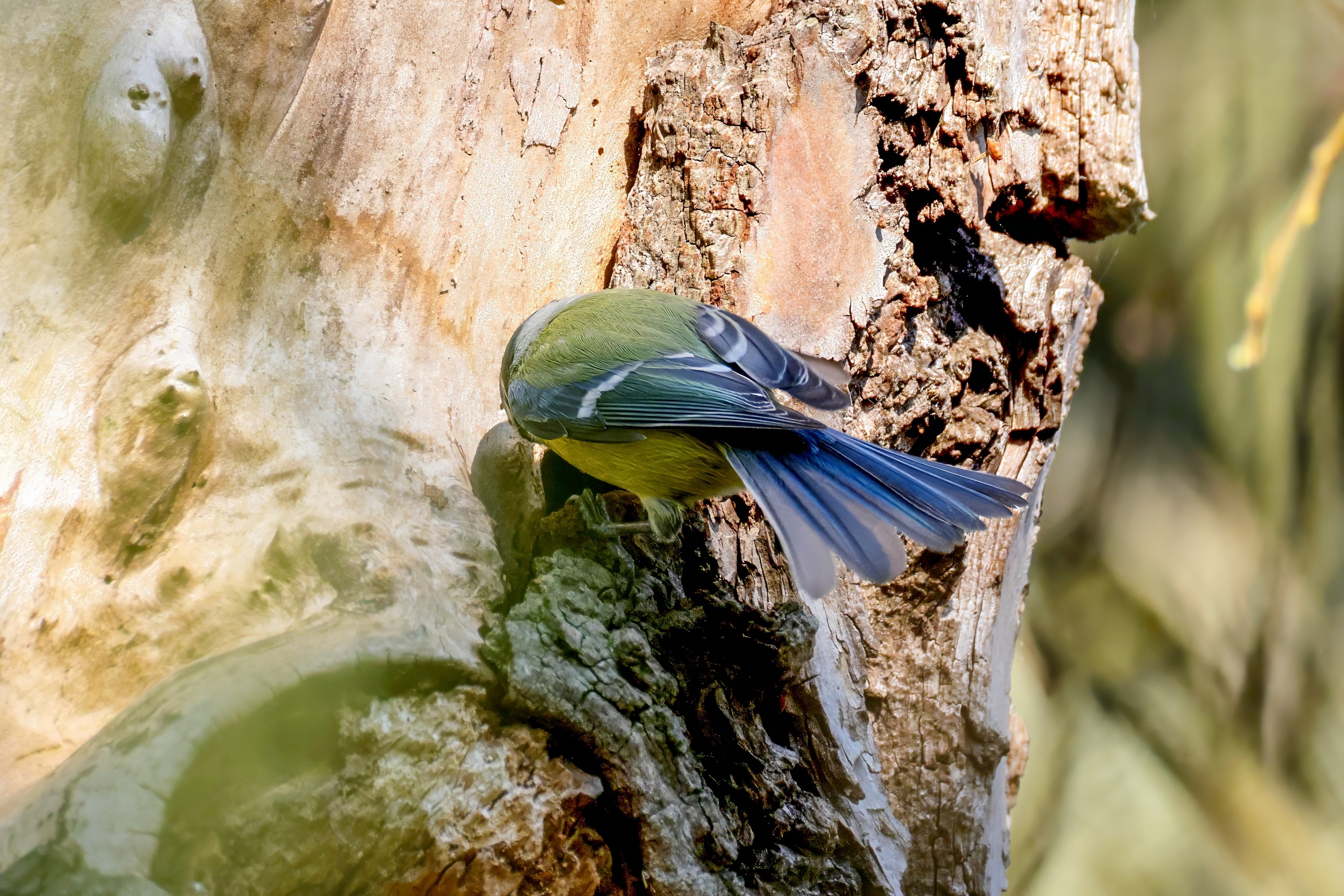 Blaumeisen bauen eine Bruthöhle