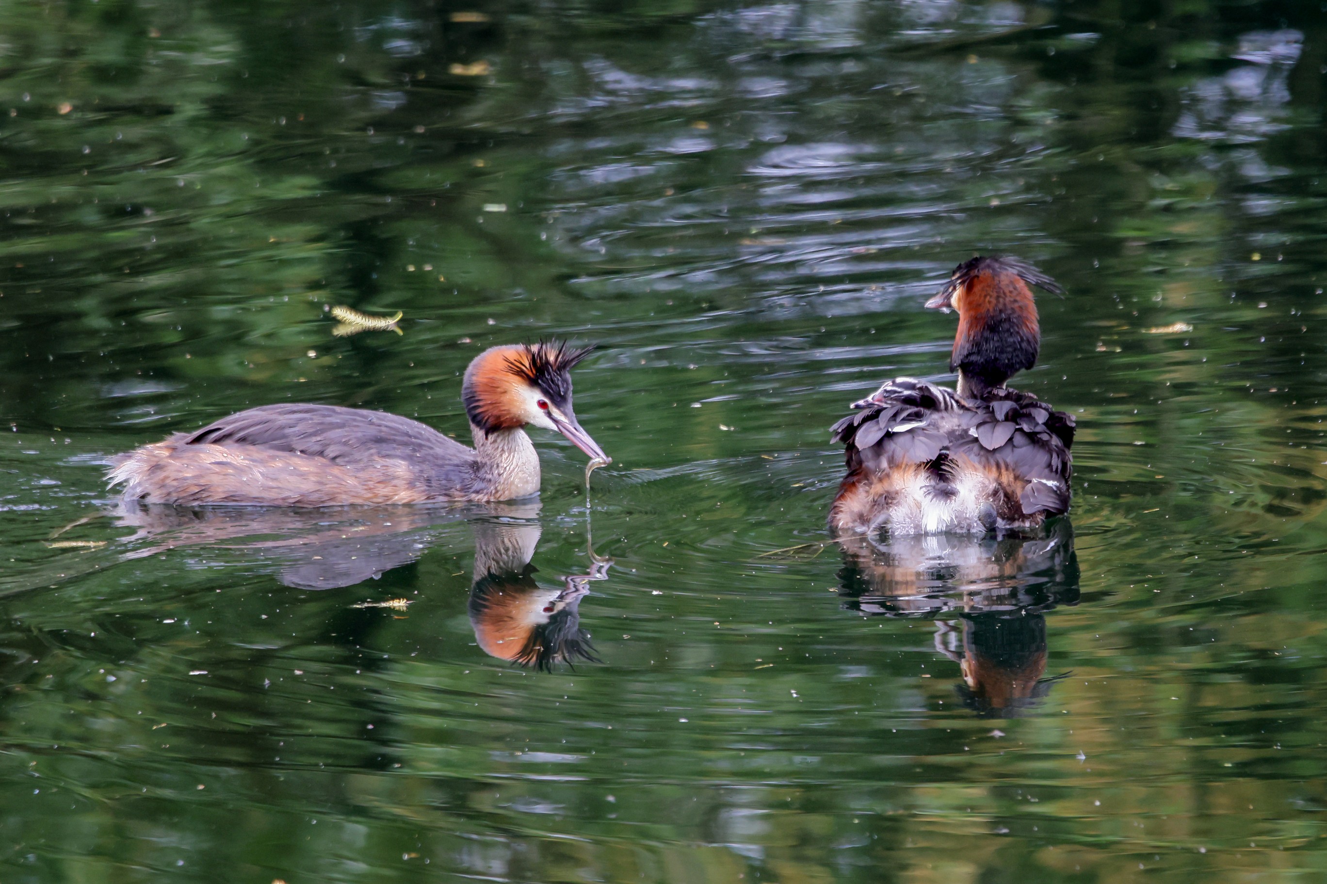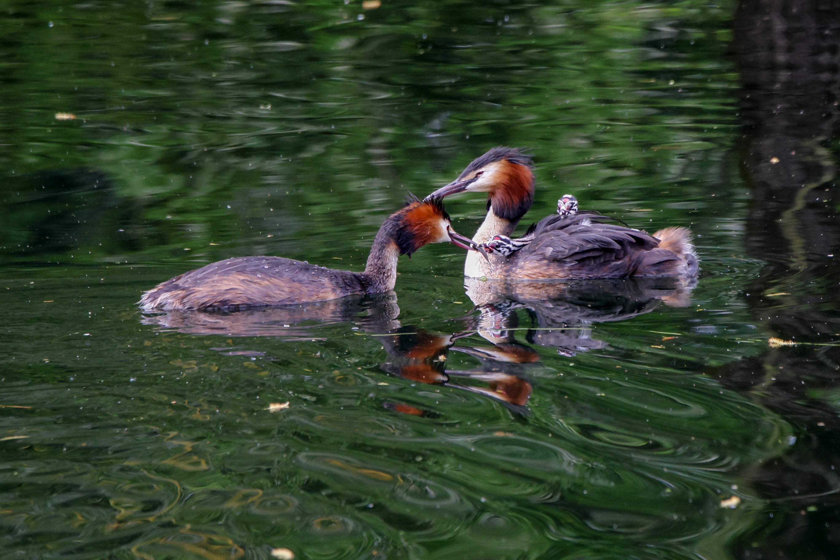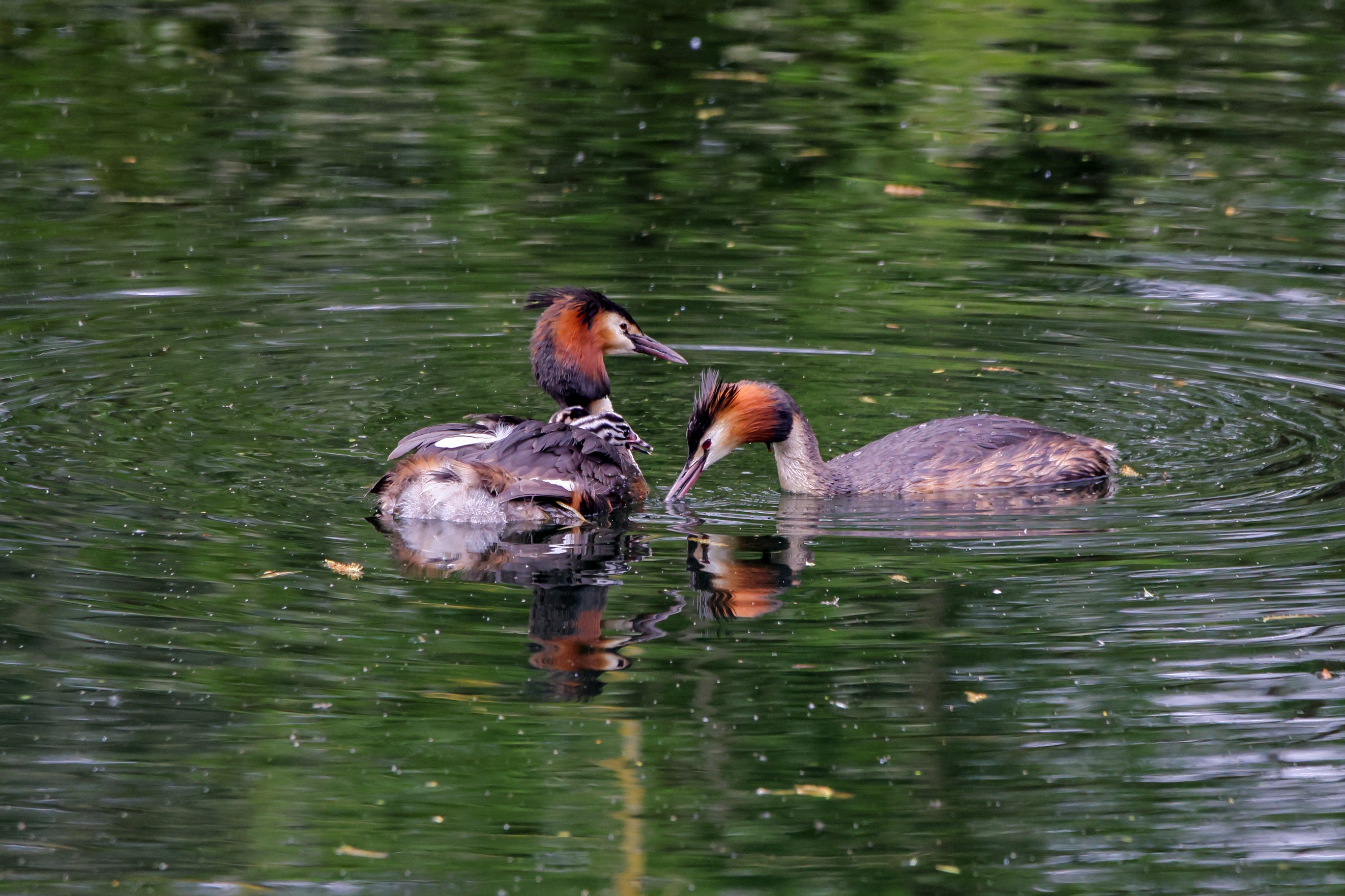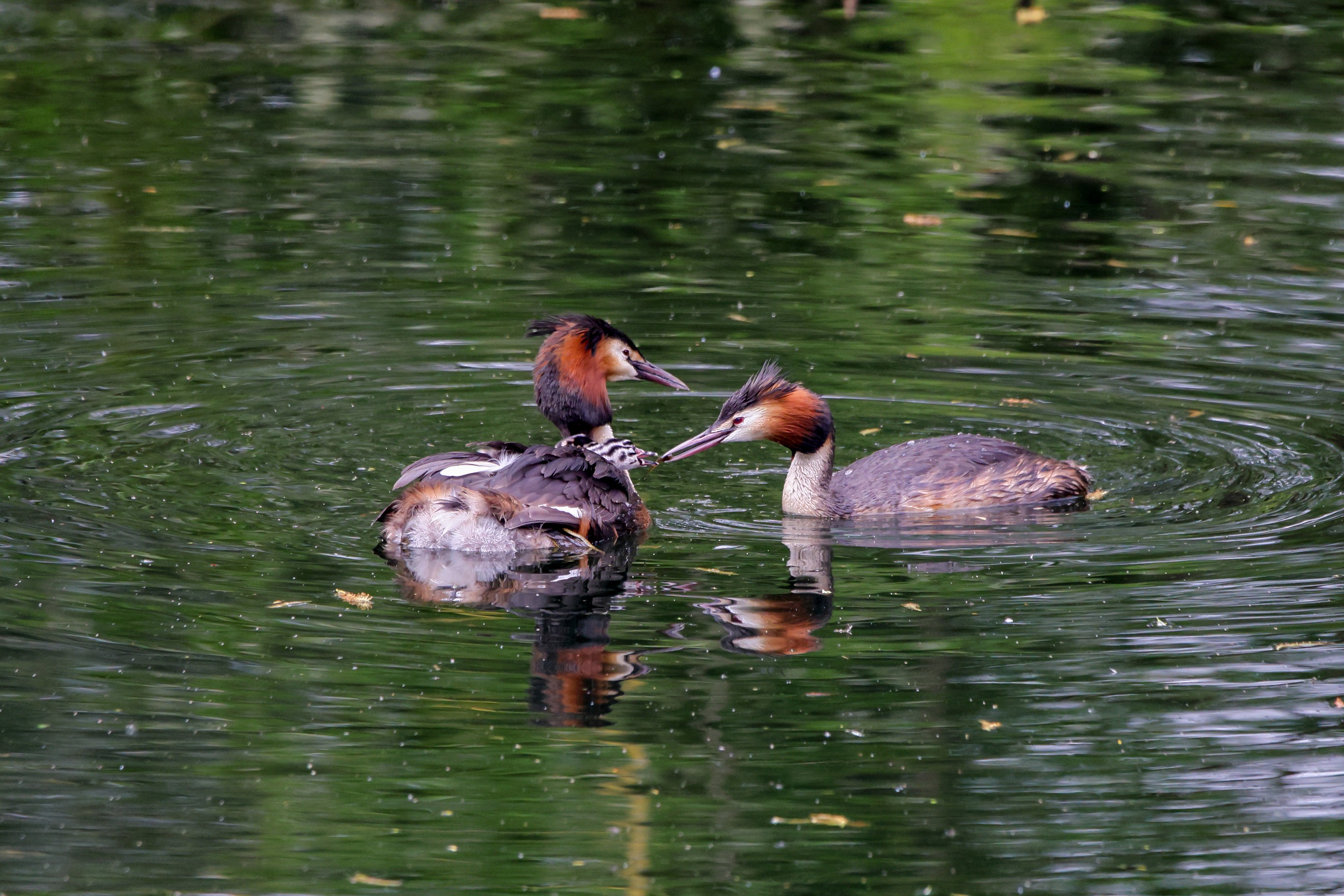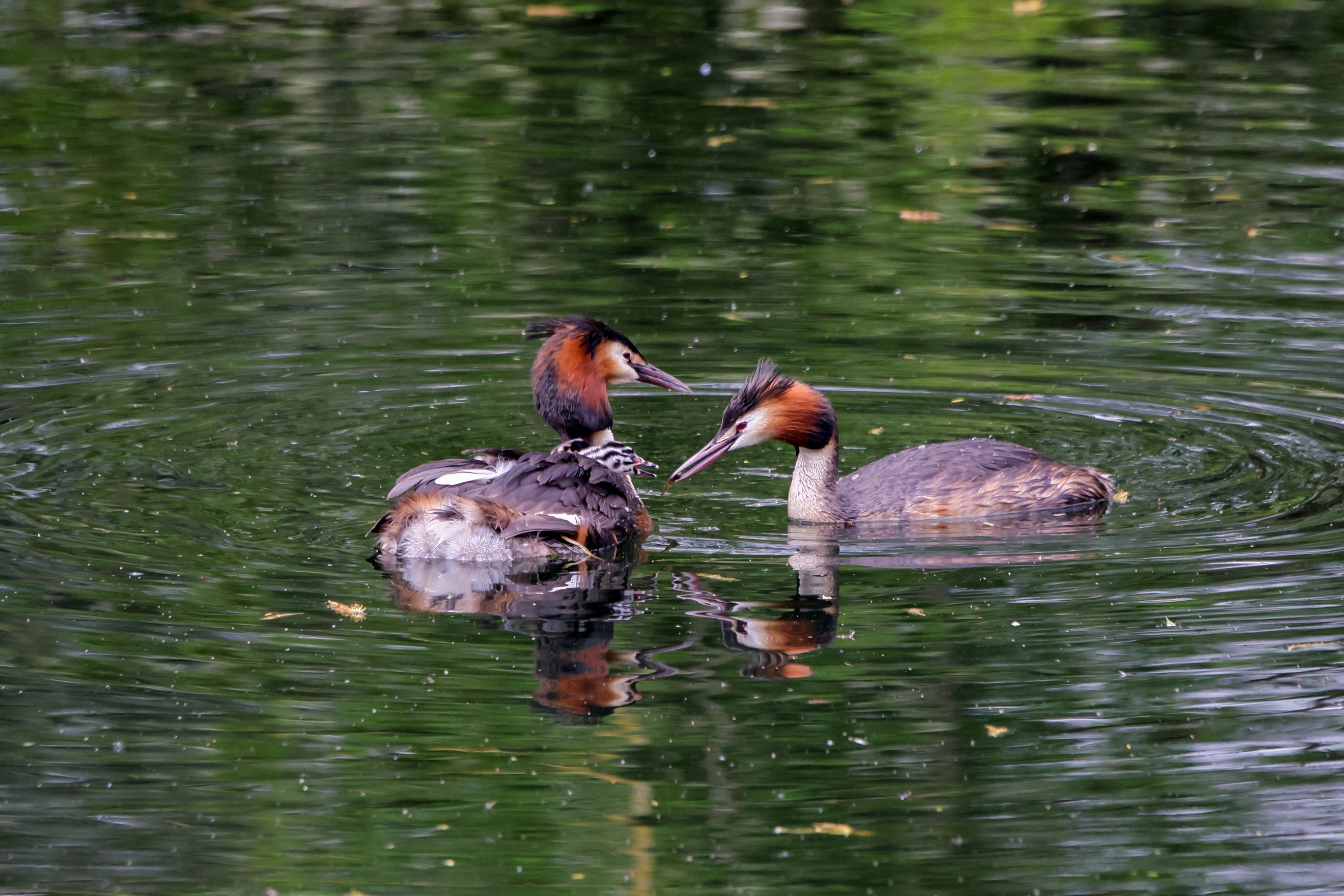 Die Haubentaucher präsentieren ihren Nachwuchs