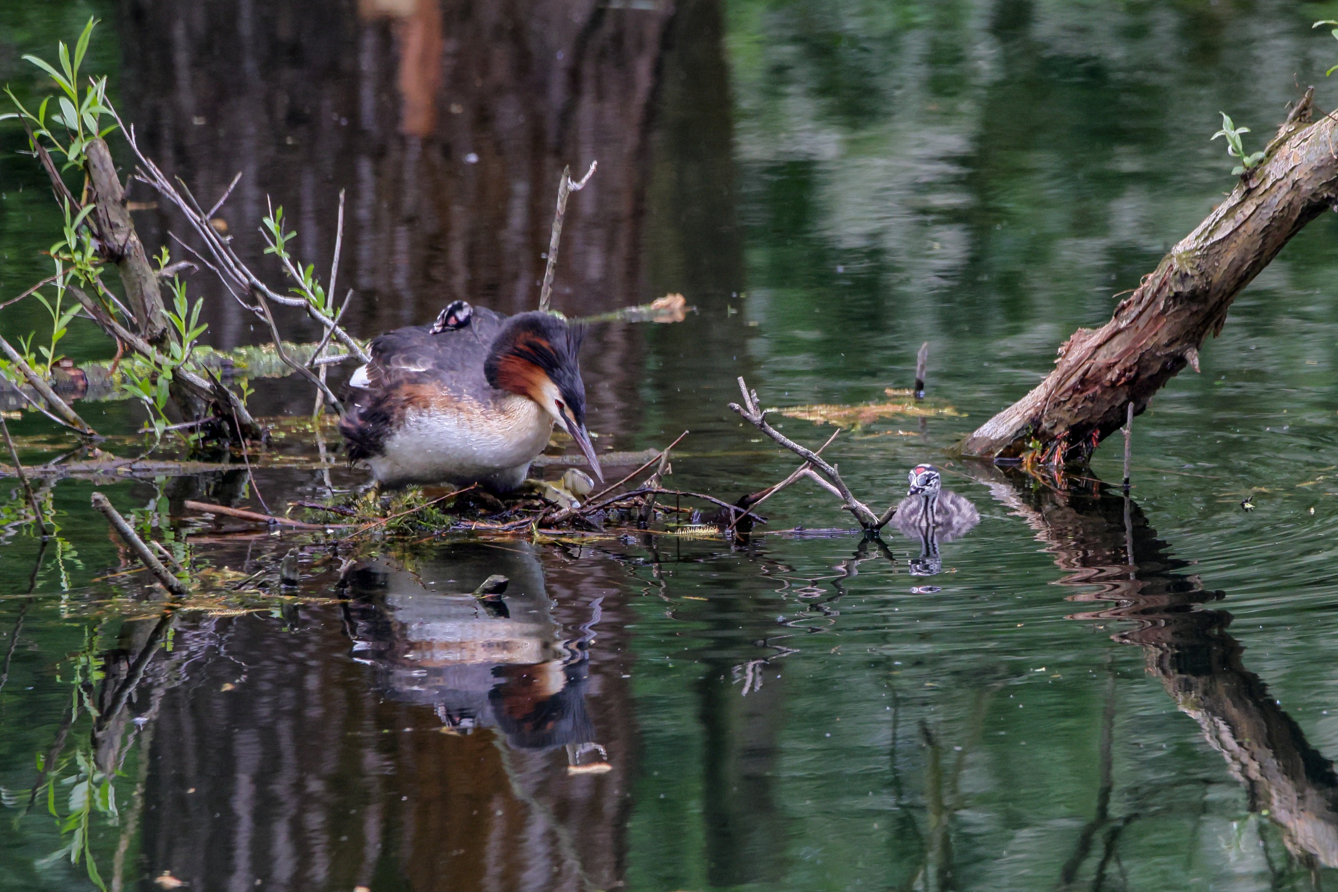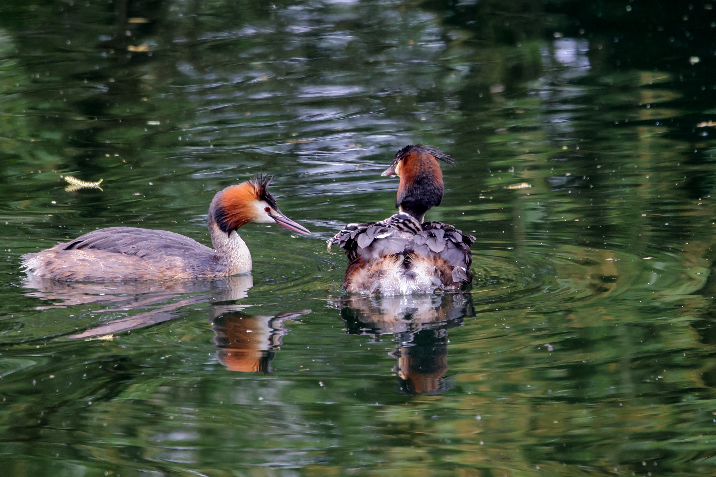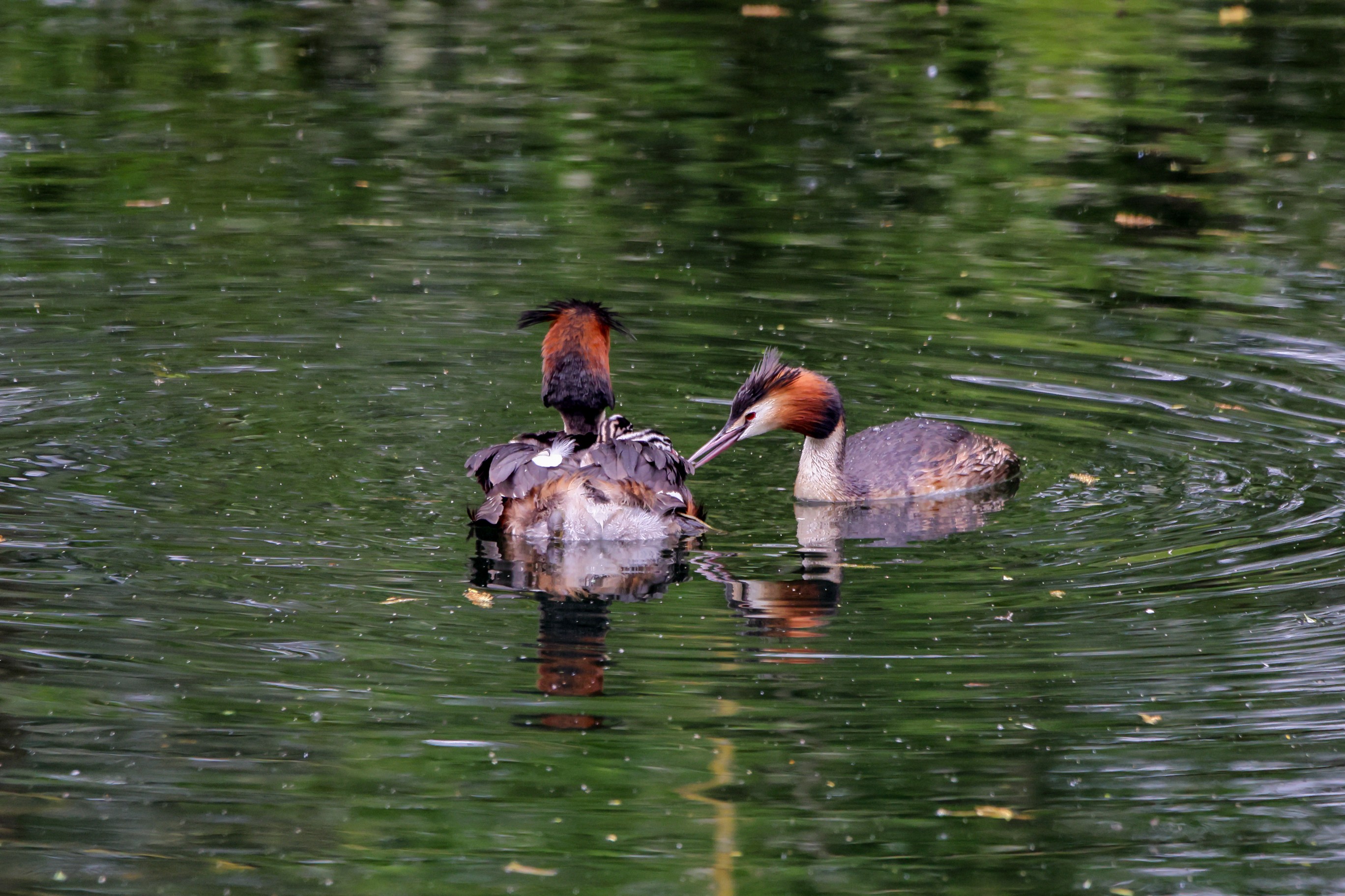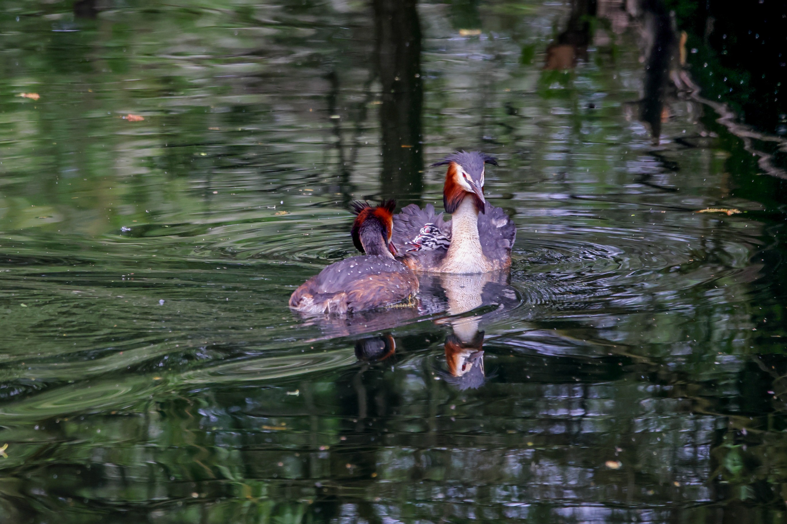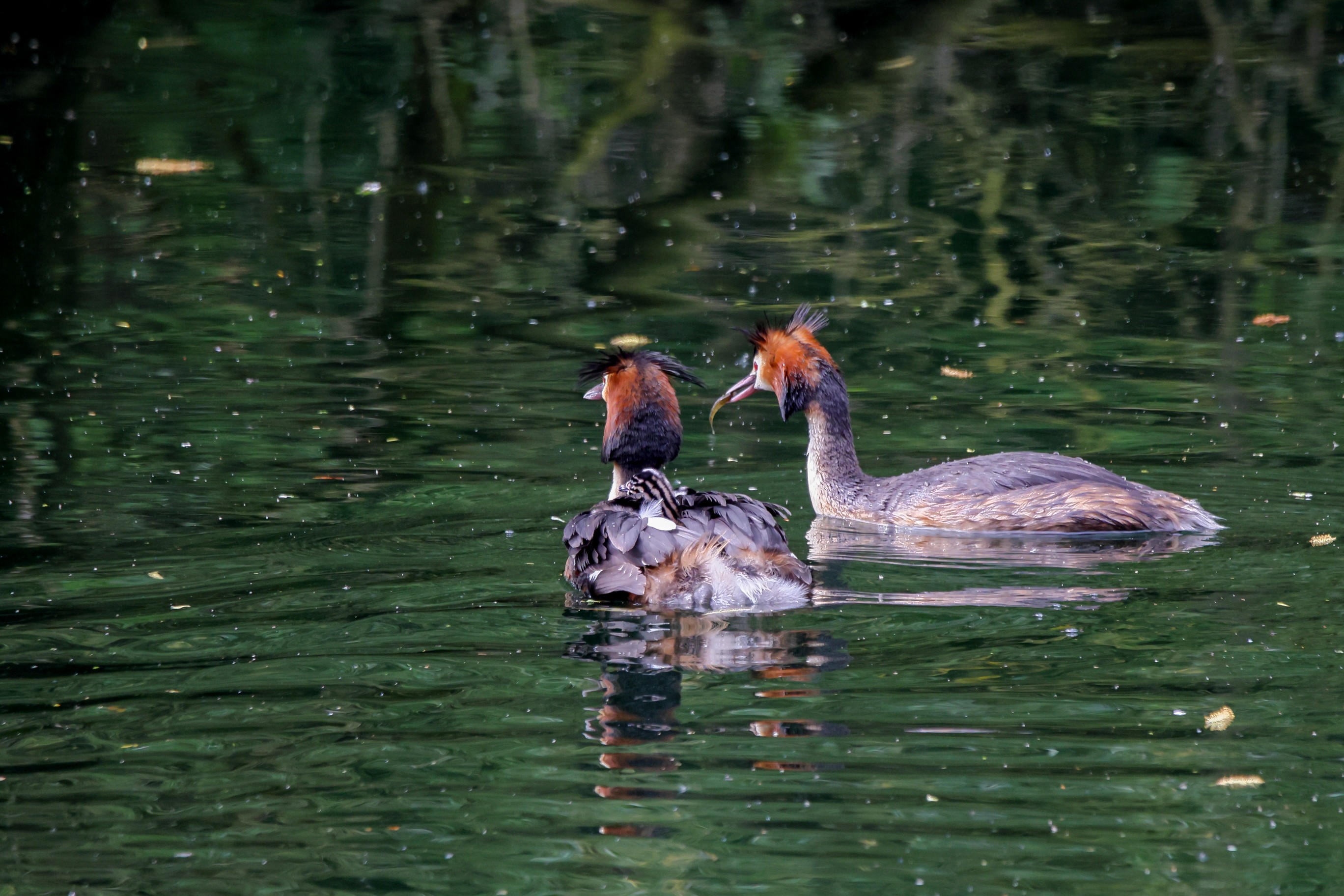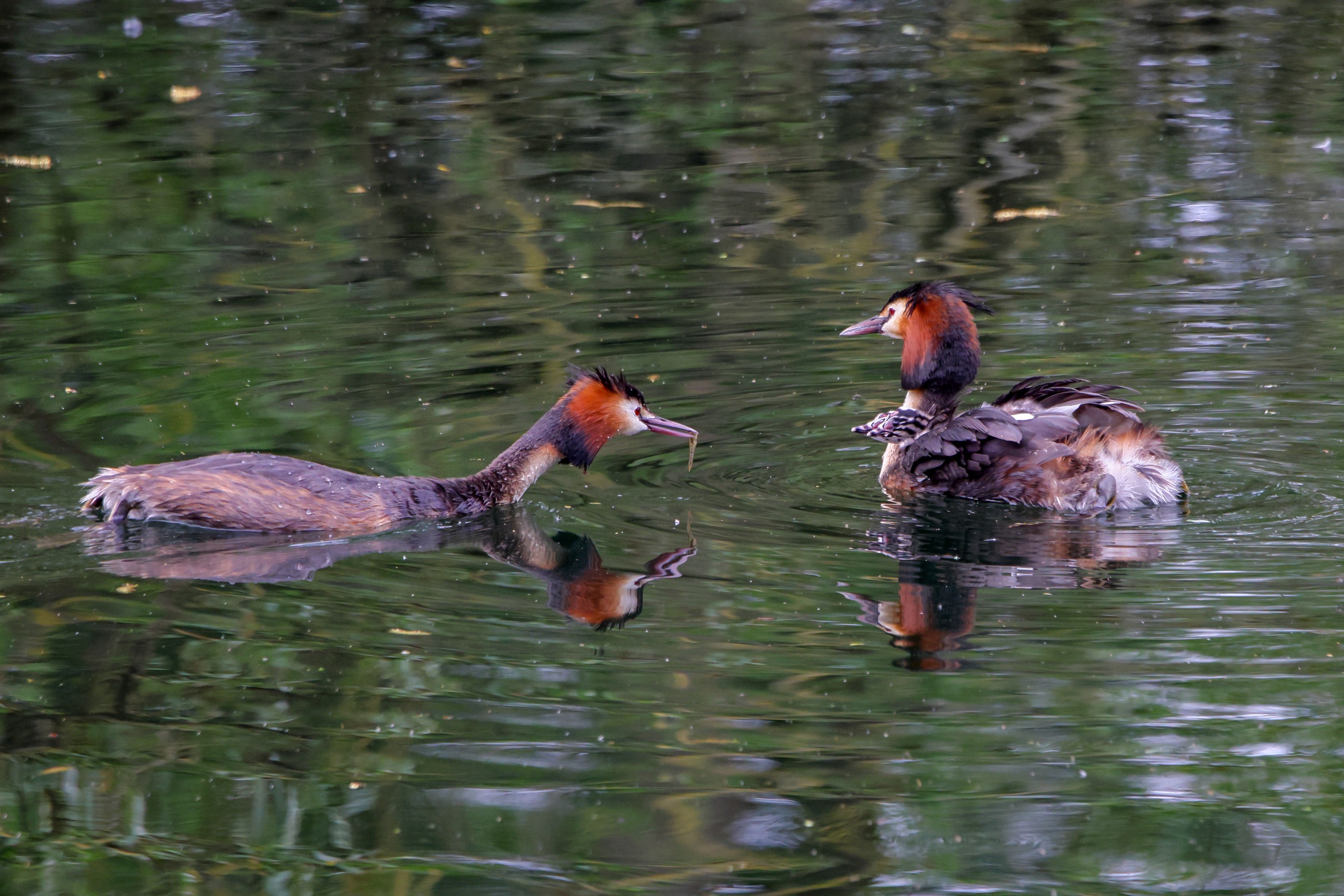 Die Haubentaucher präsentieren ihren Nachwuchs