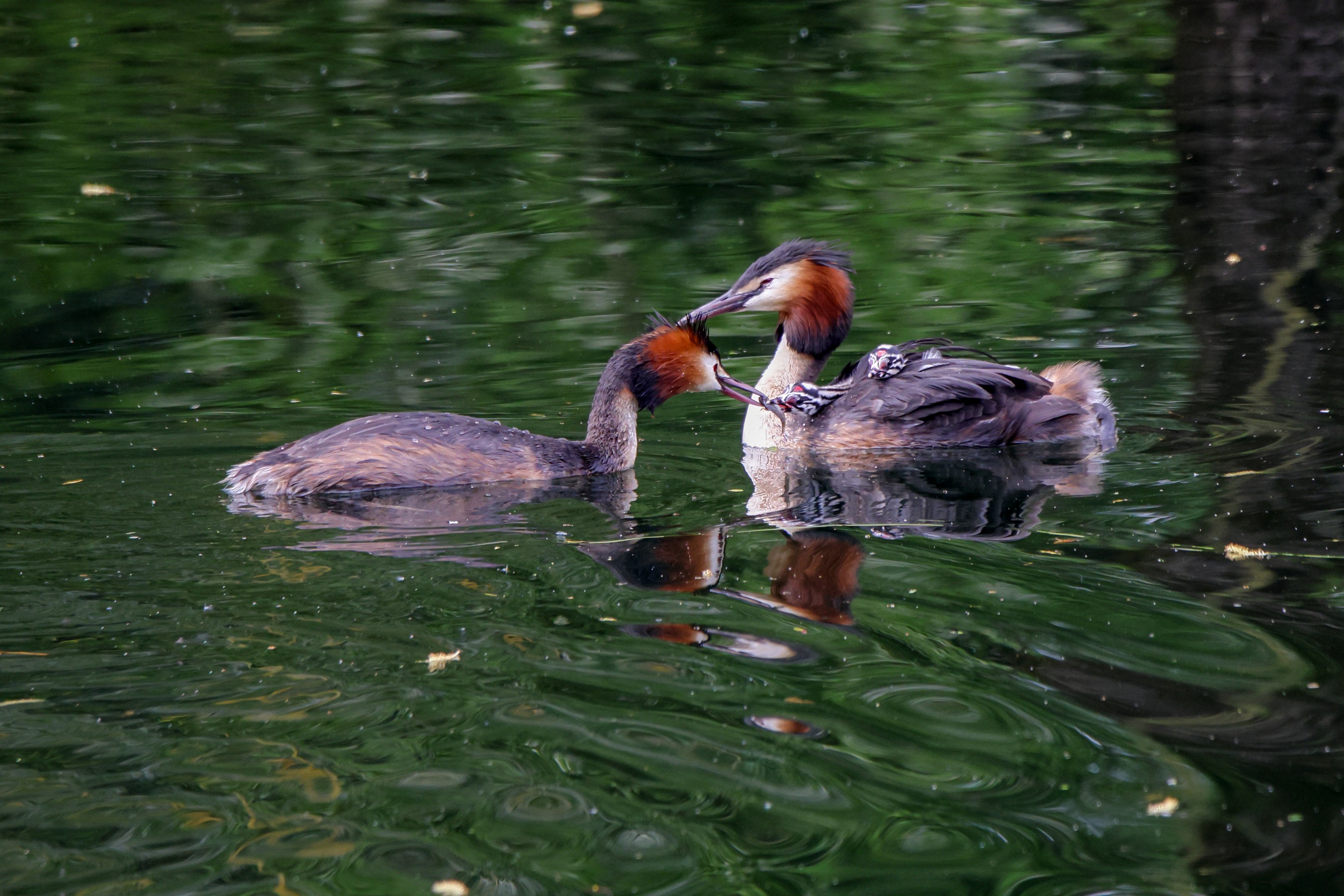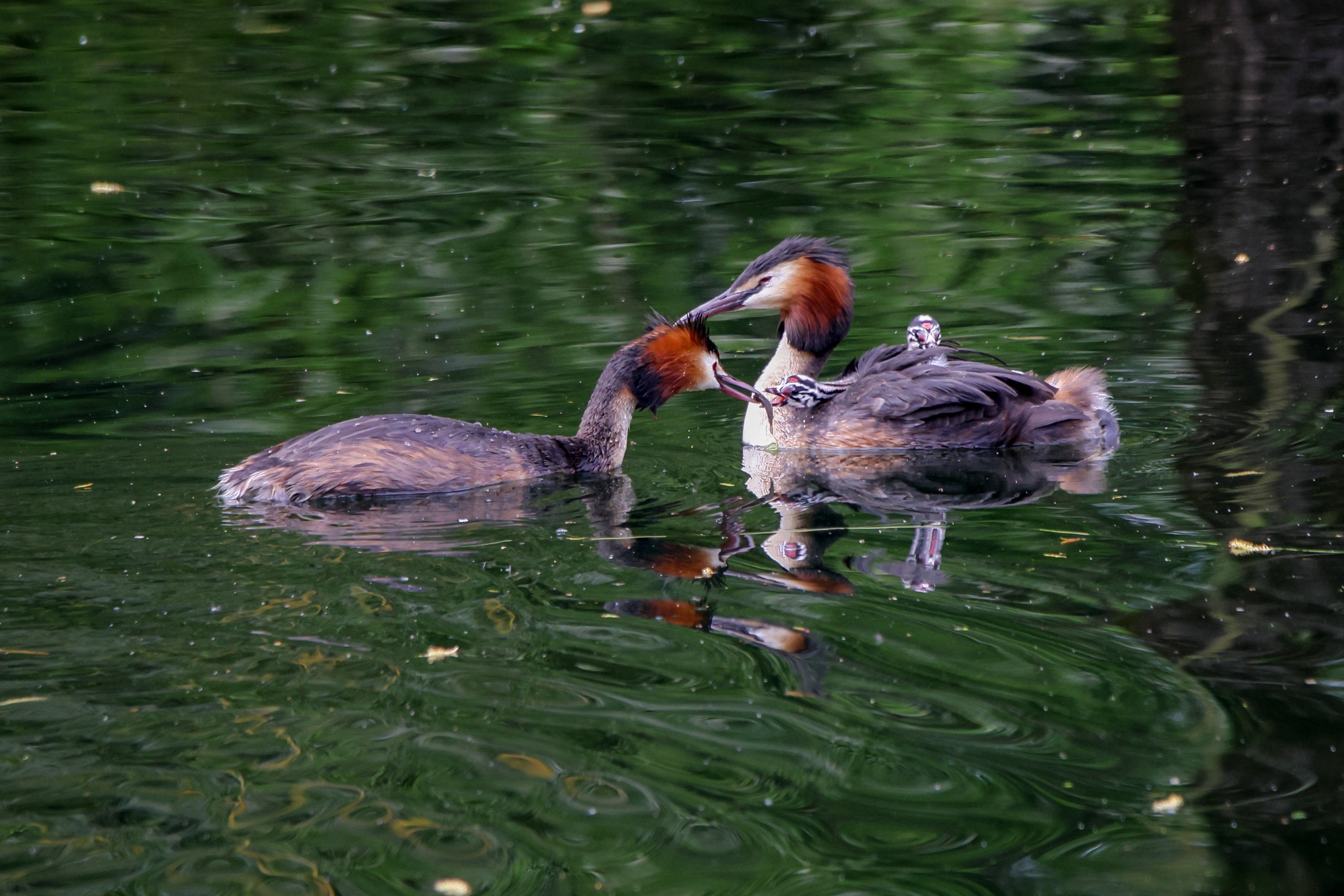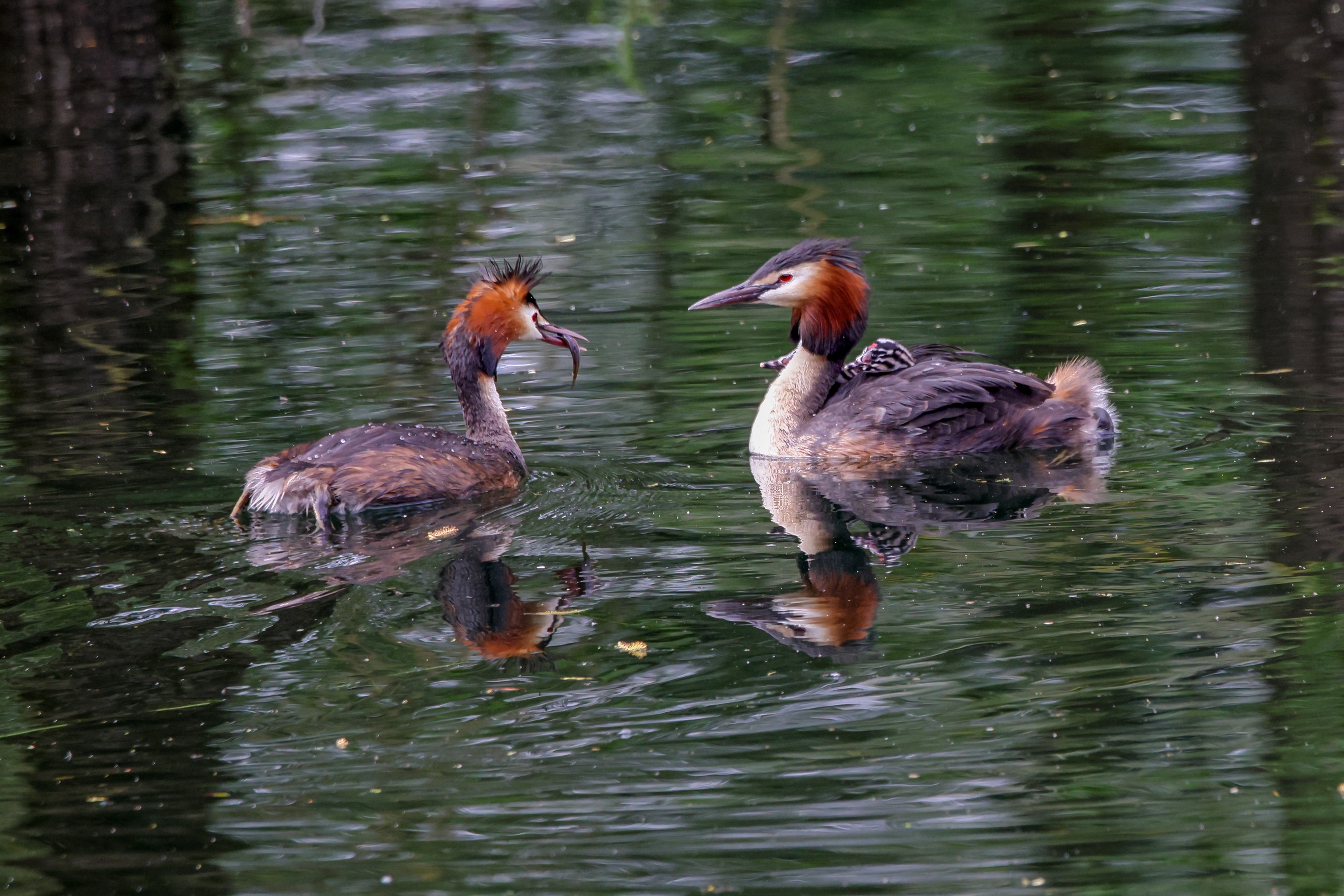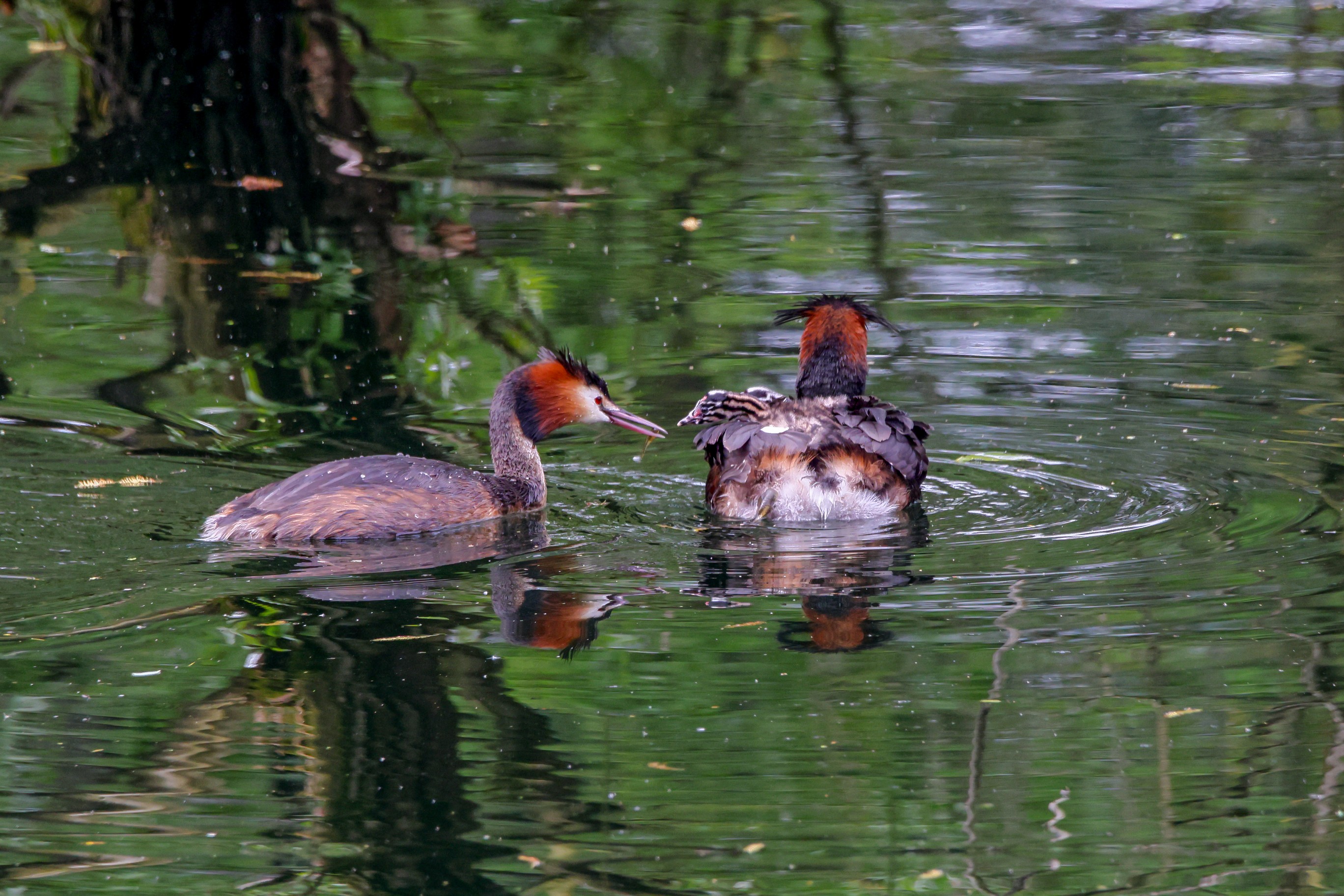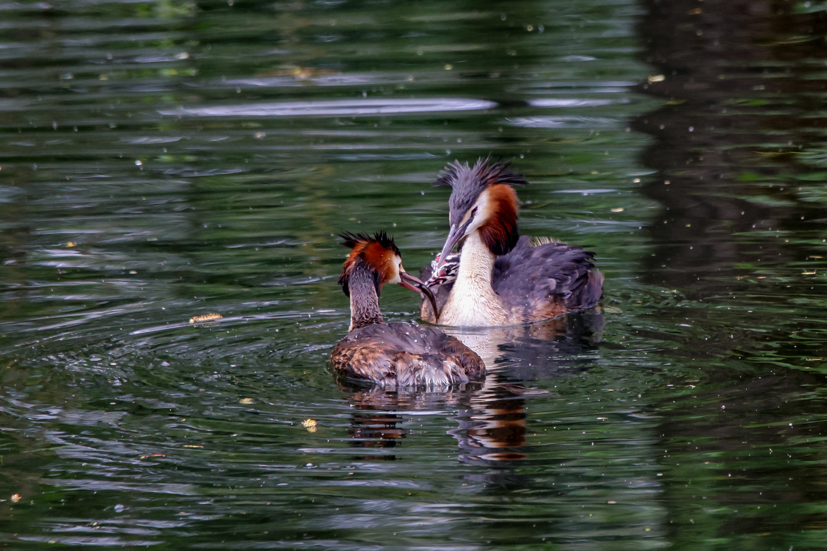Die Haubentaucher präsentieren ihren Nachwuchs