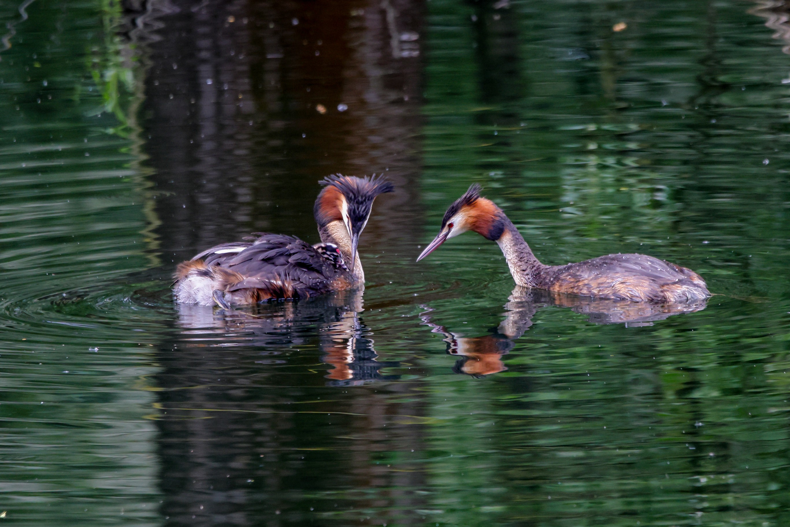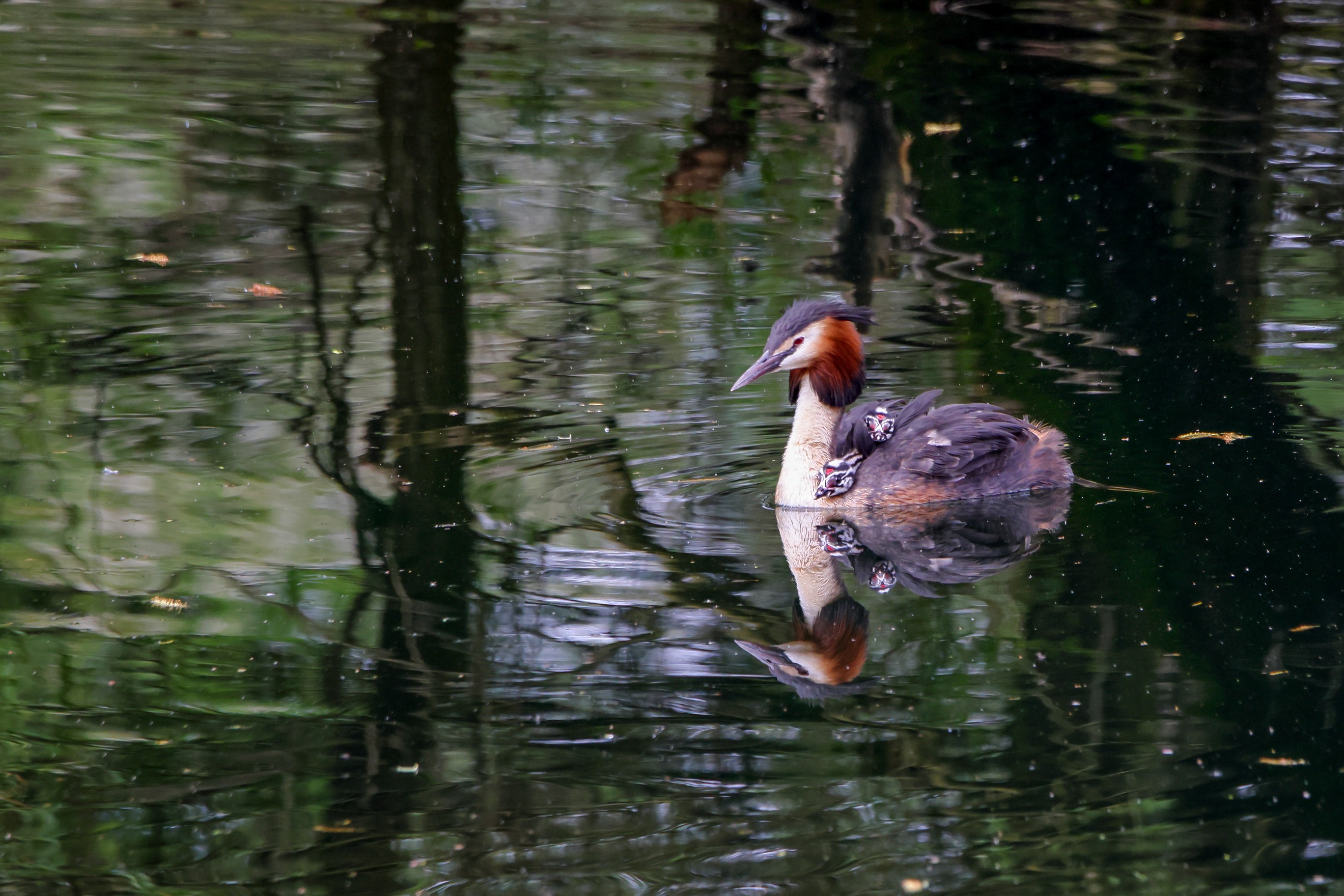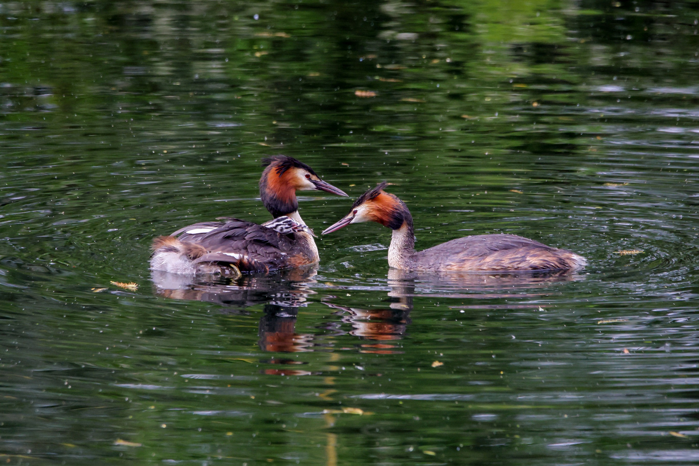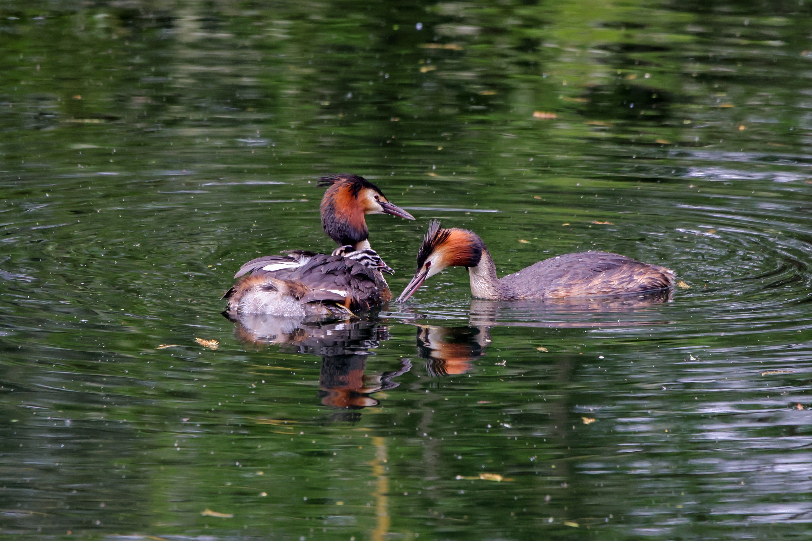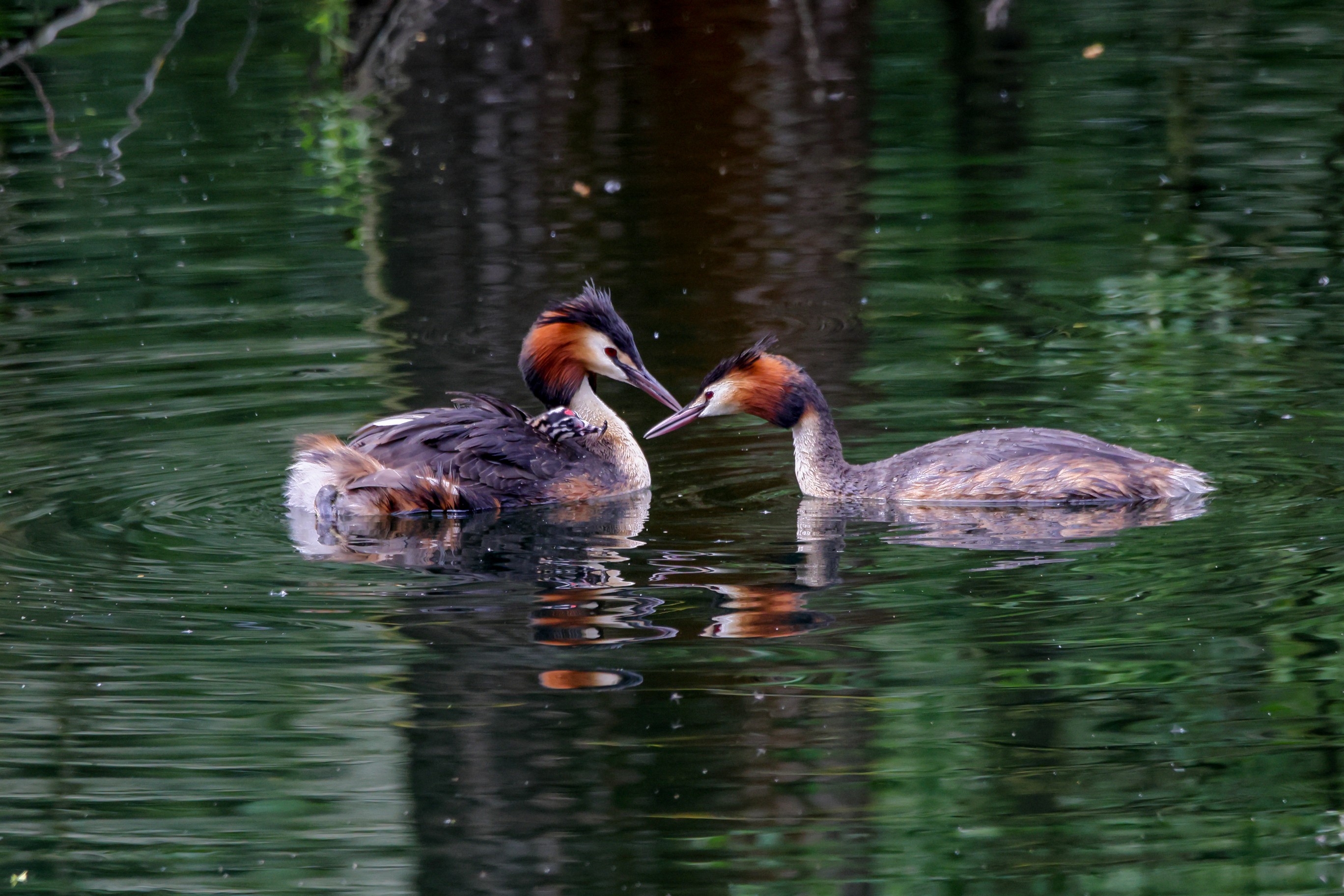 Die Haubentaucher präsentieren ihren Nachwuchs