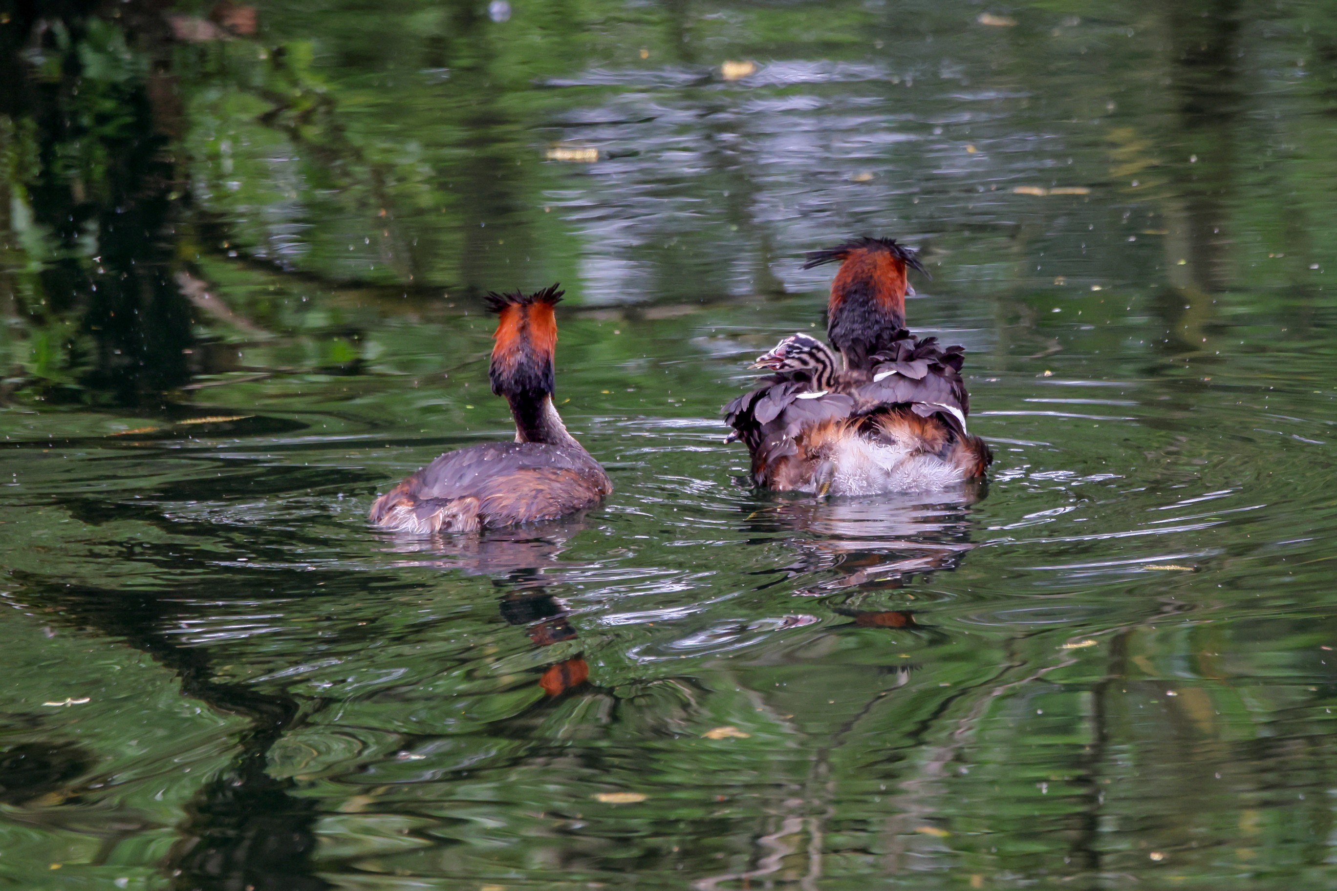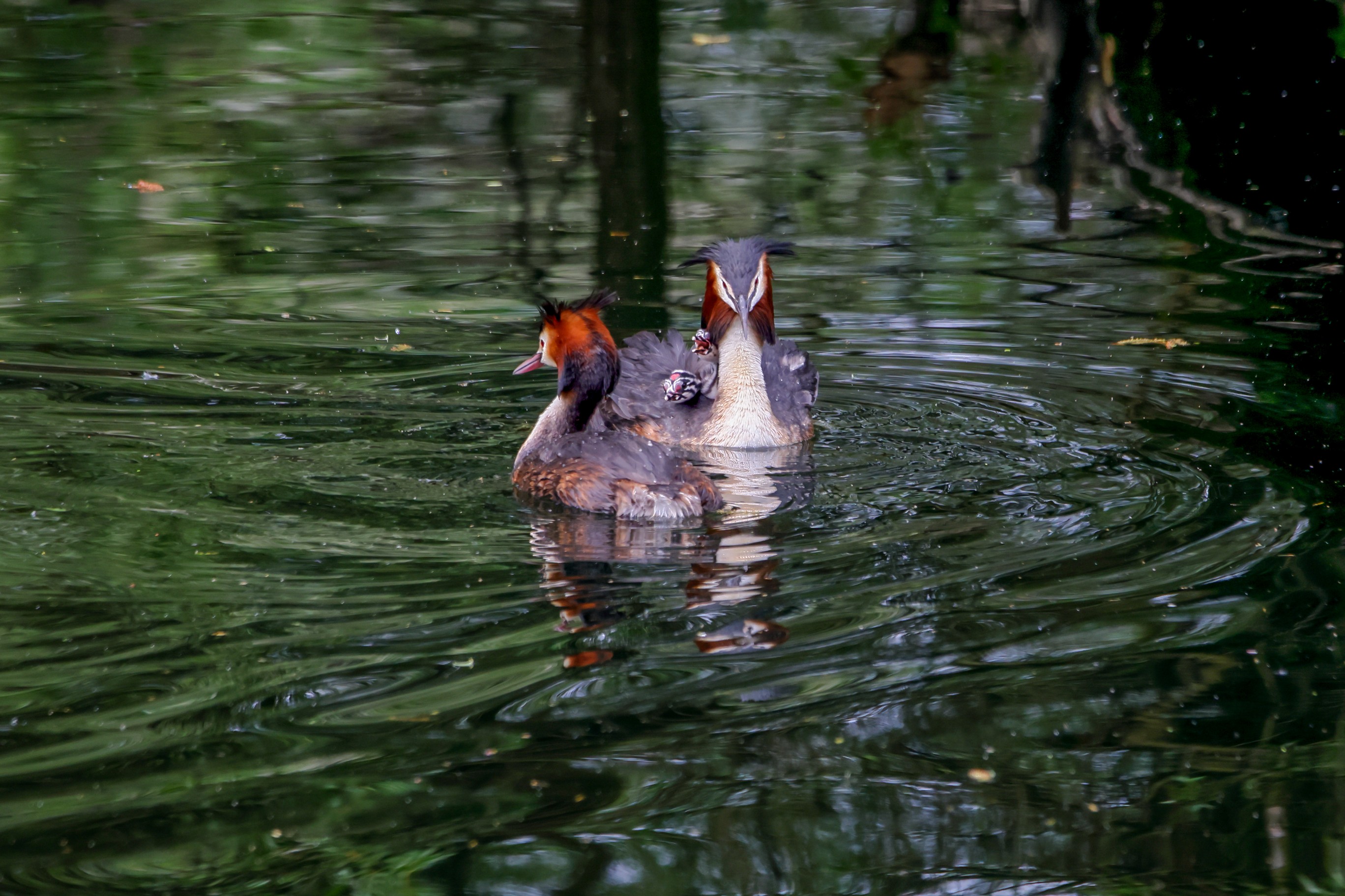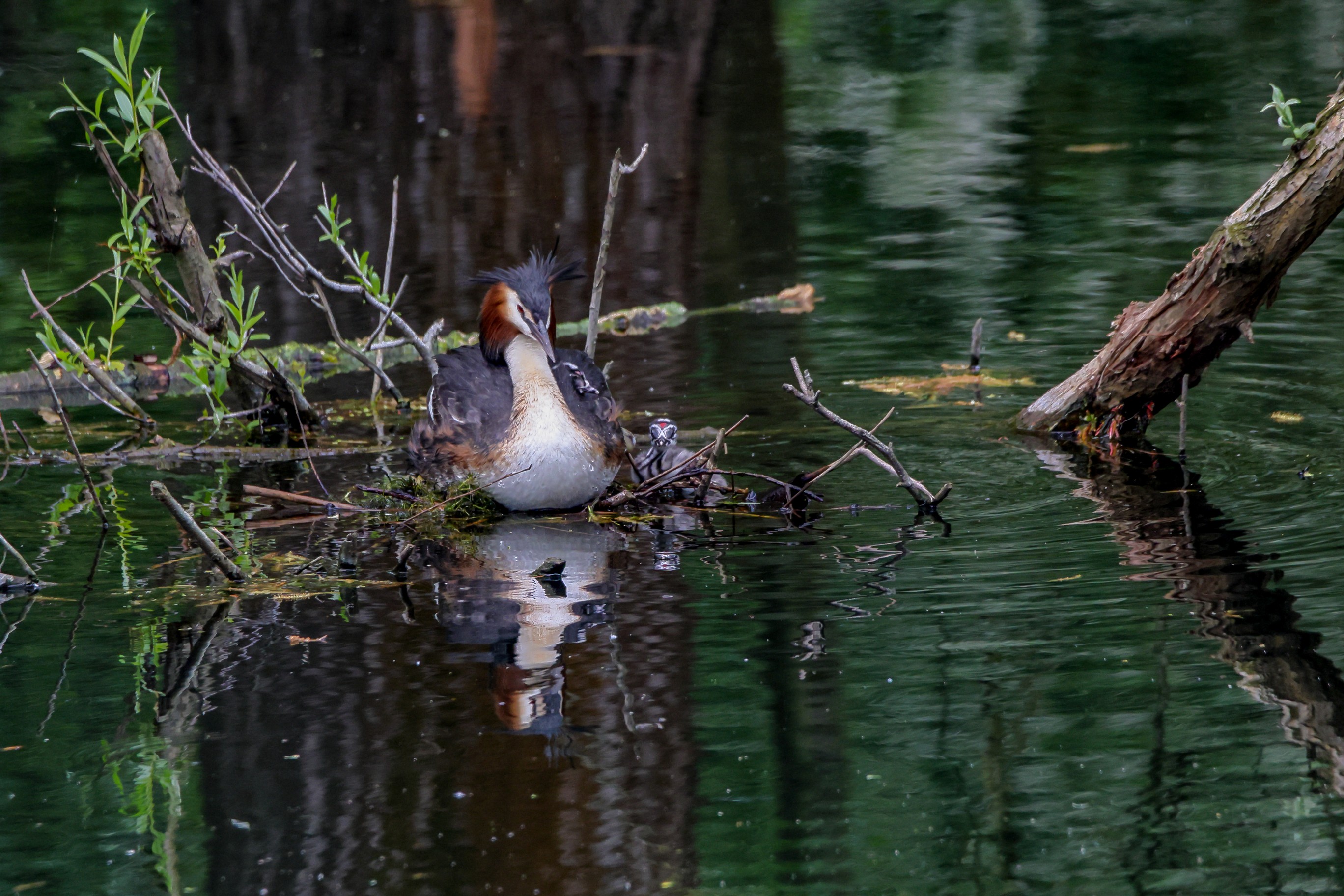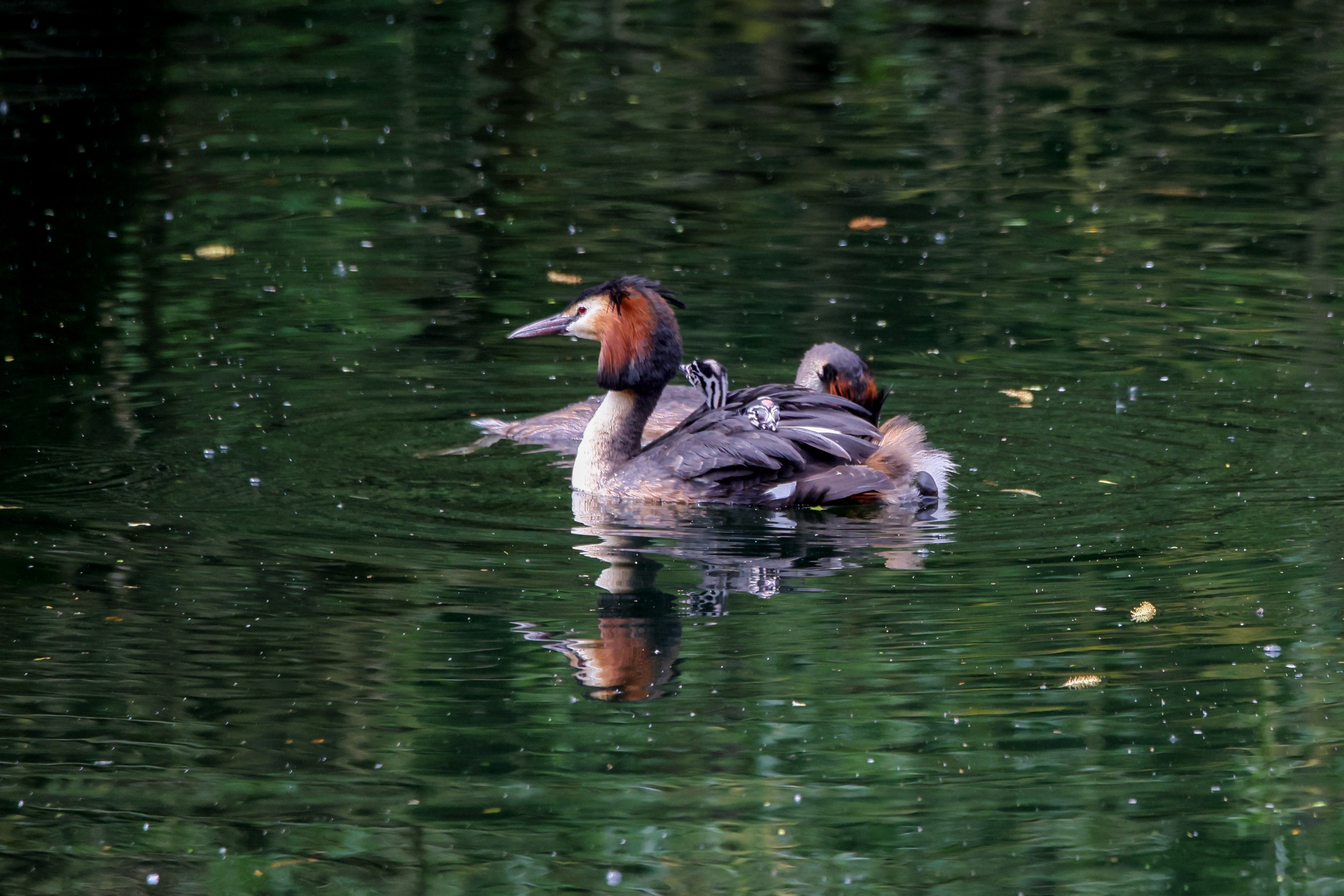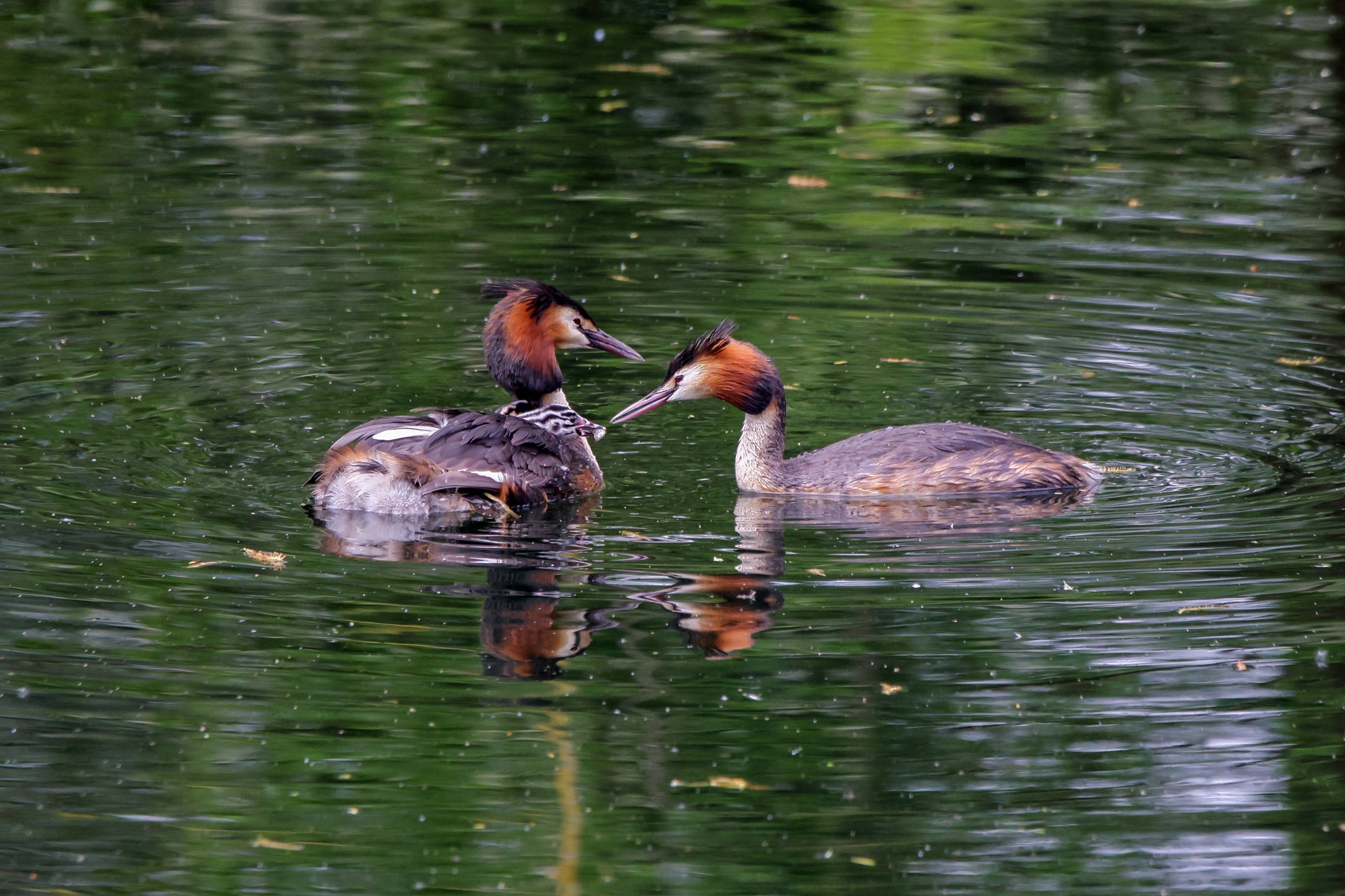 Die Haubentaucher präsentieren ihren Nachwuchs
