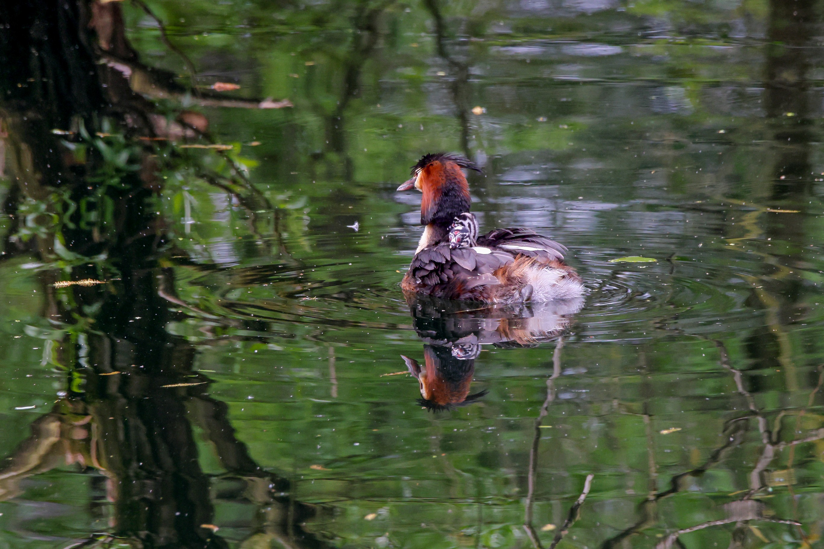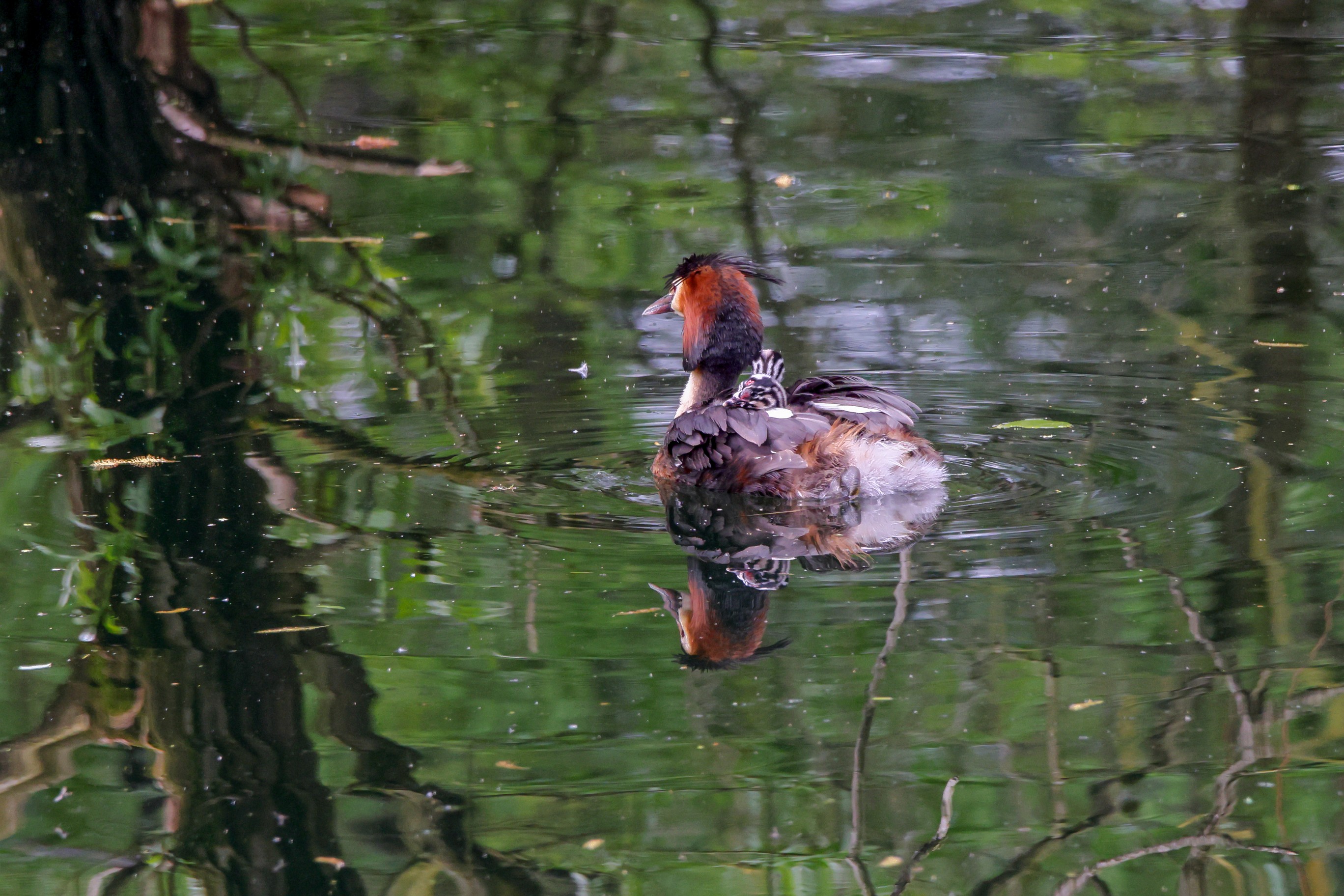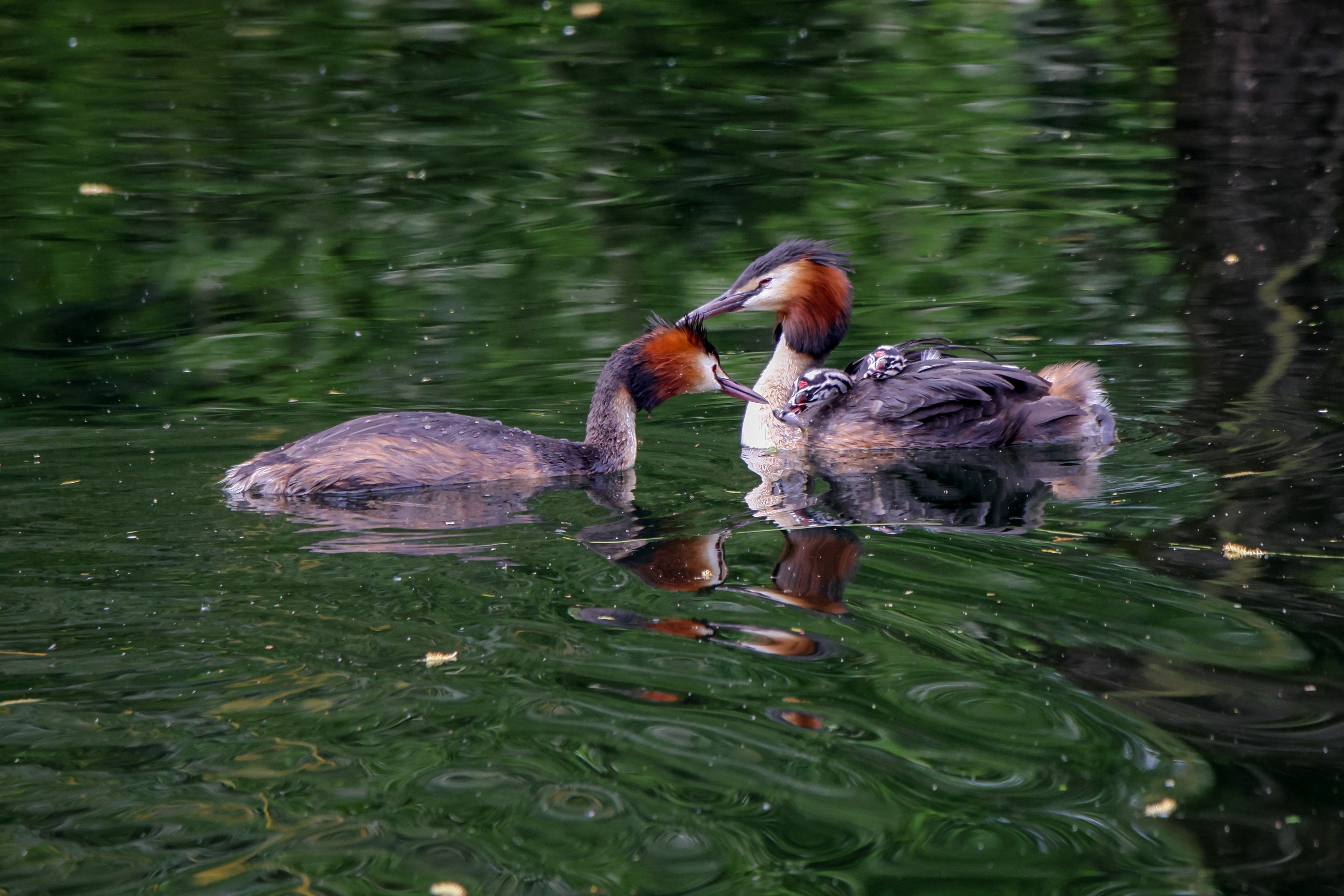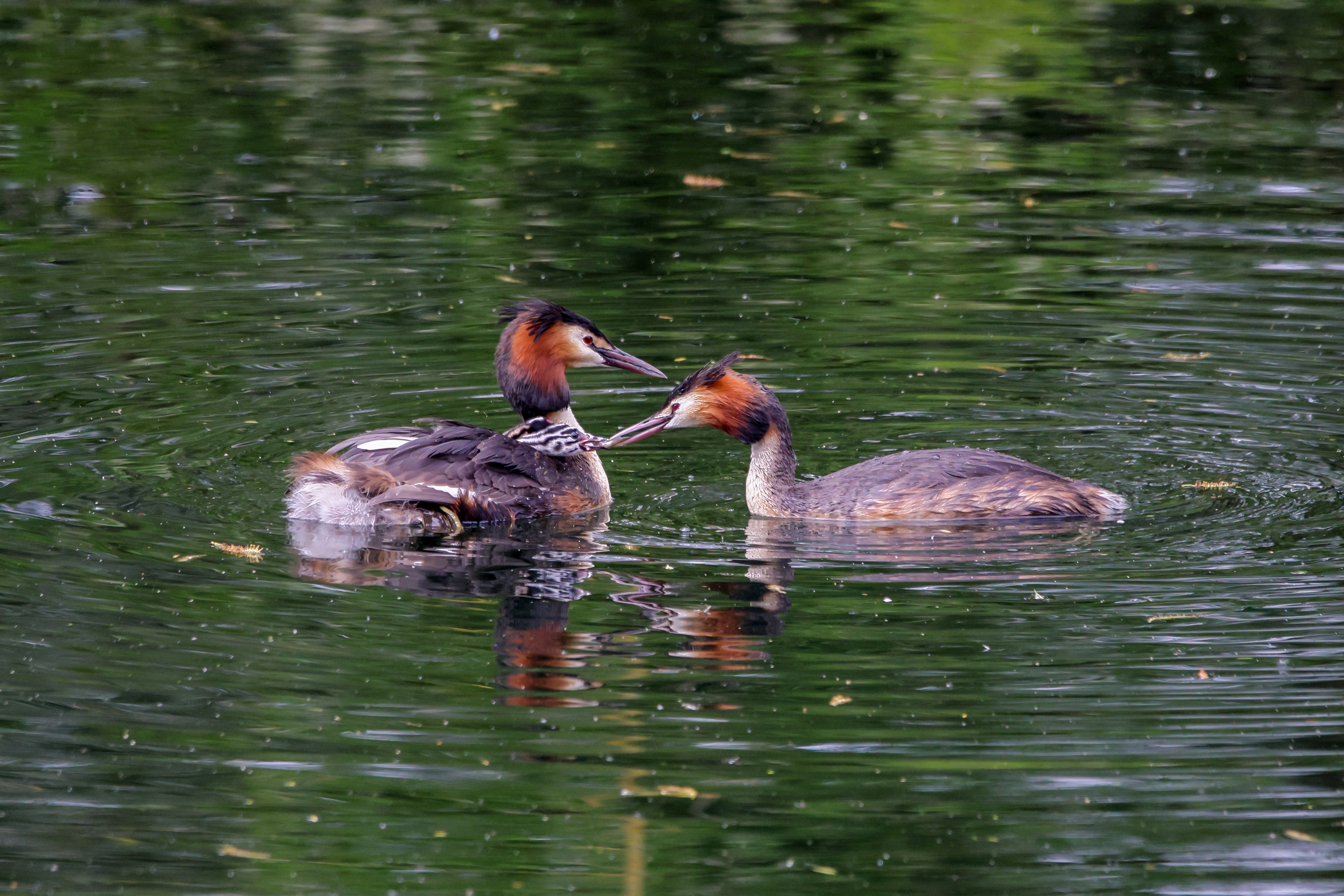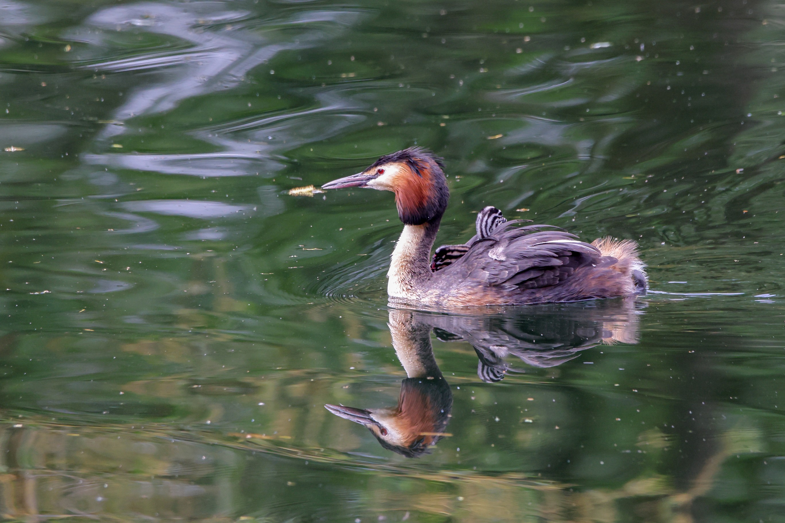 Die Haubentaucher präsentieren ihren Nachwuchs
