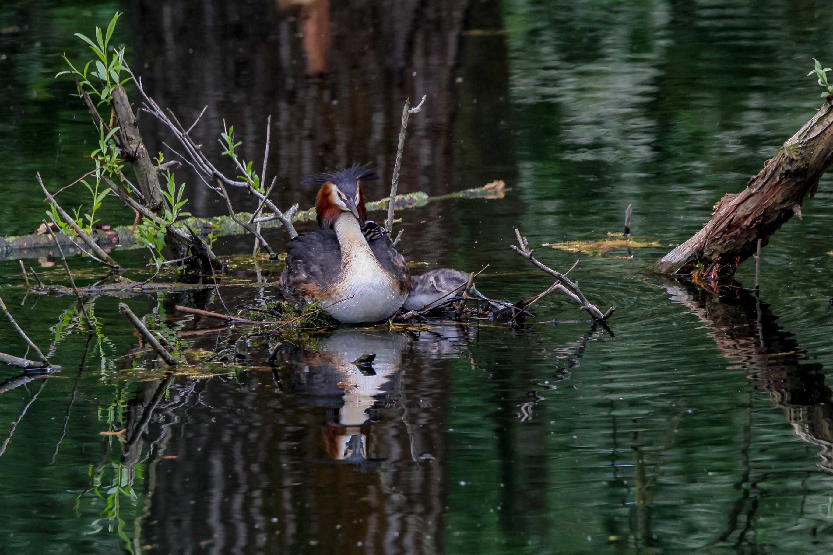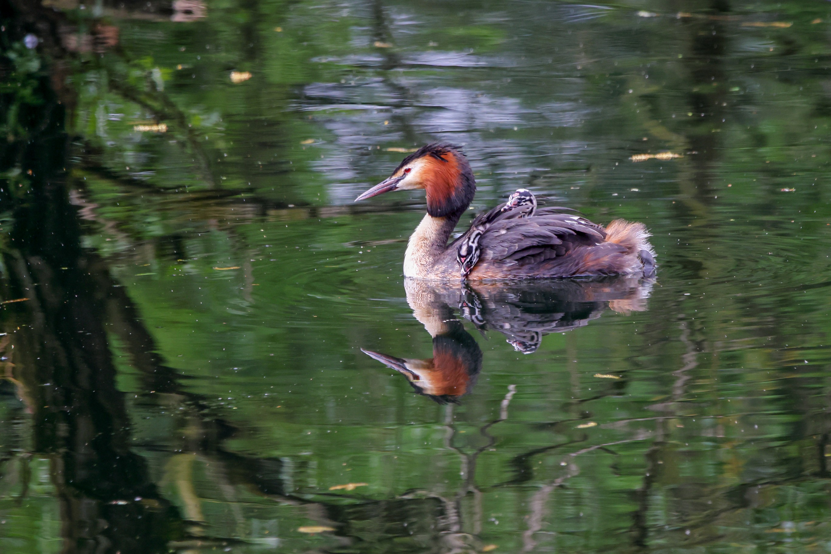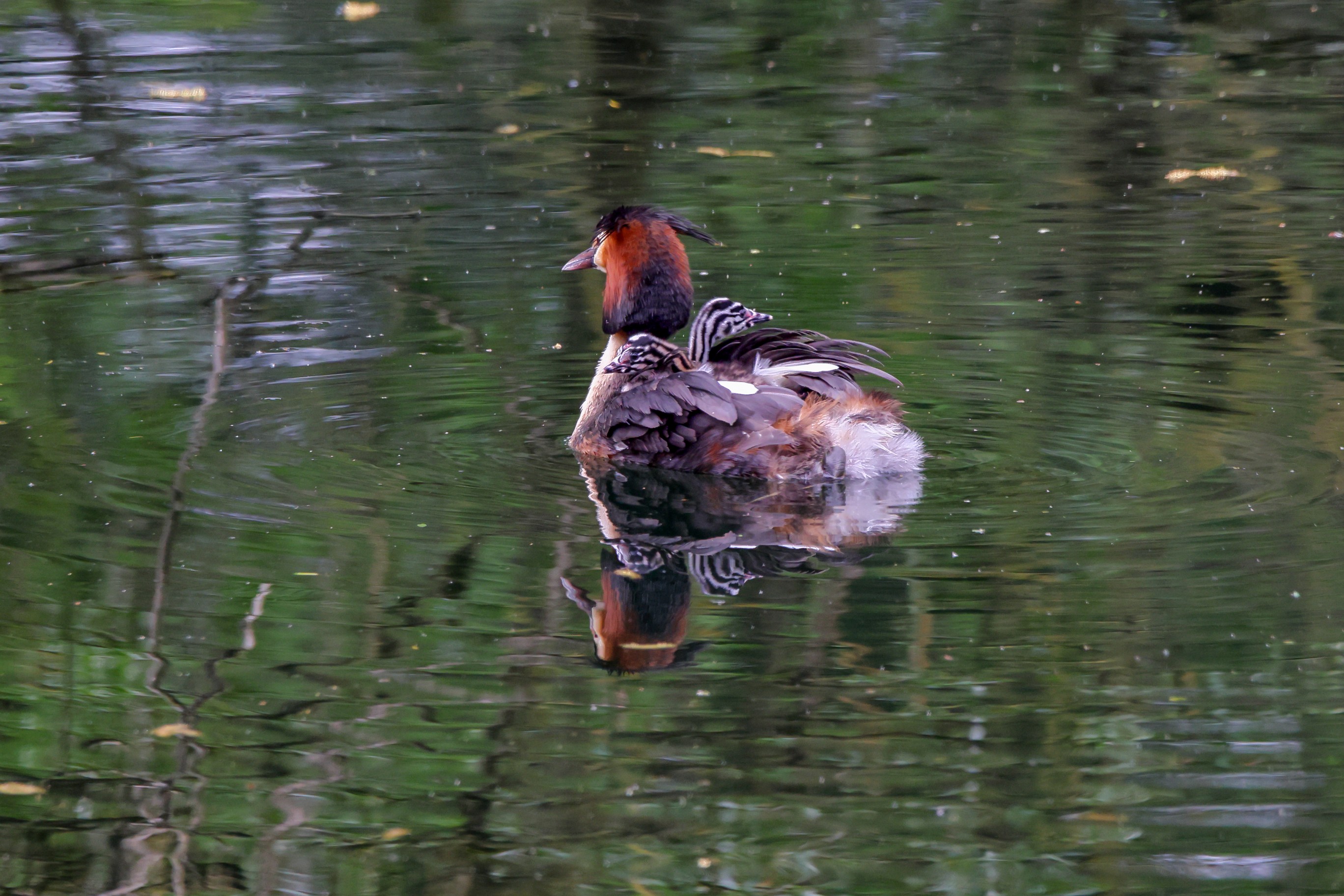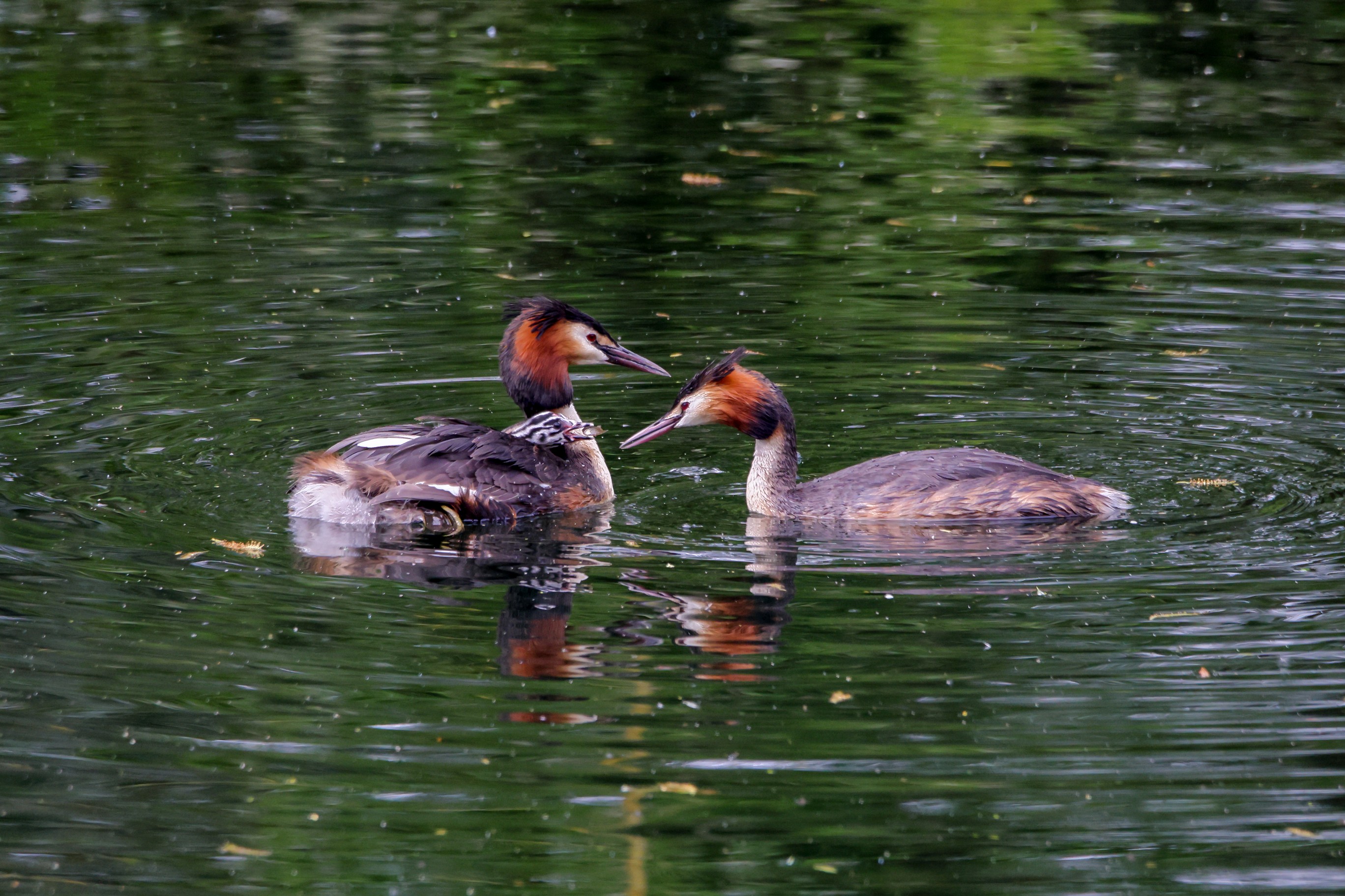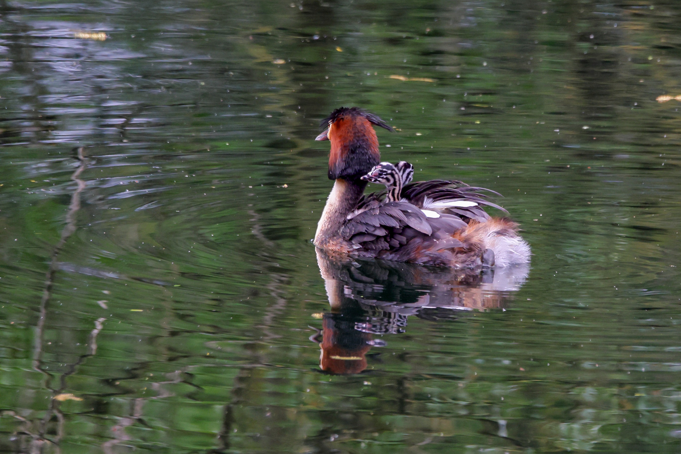 Die Haubentaucher präsentieren ihren Nachwuchs