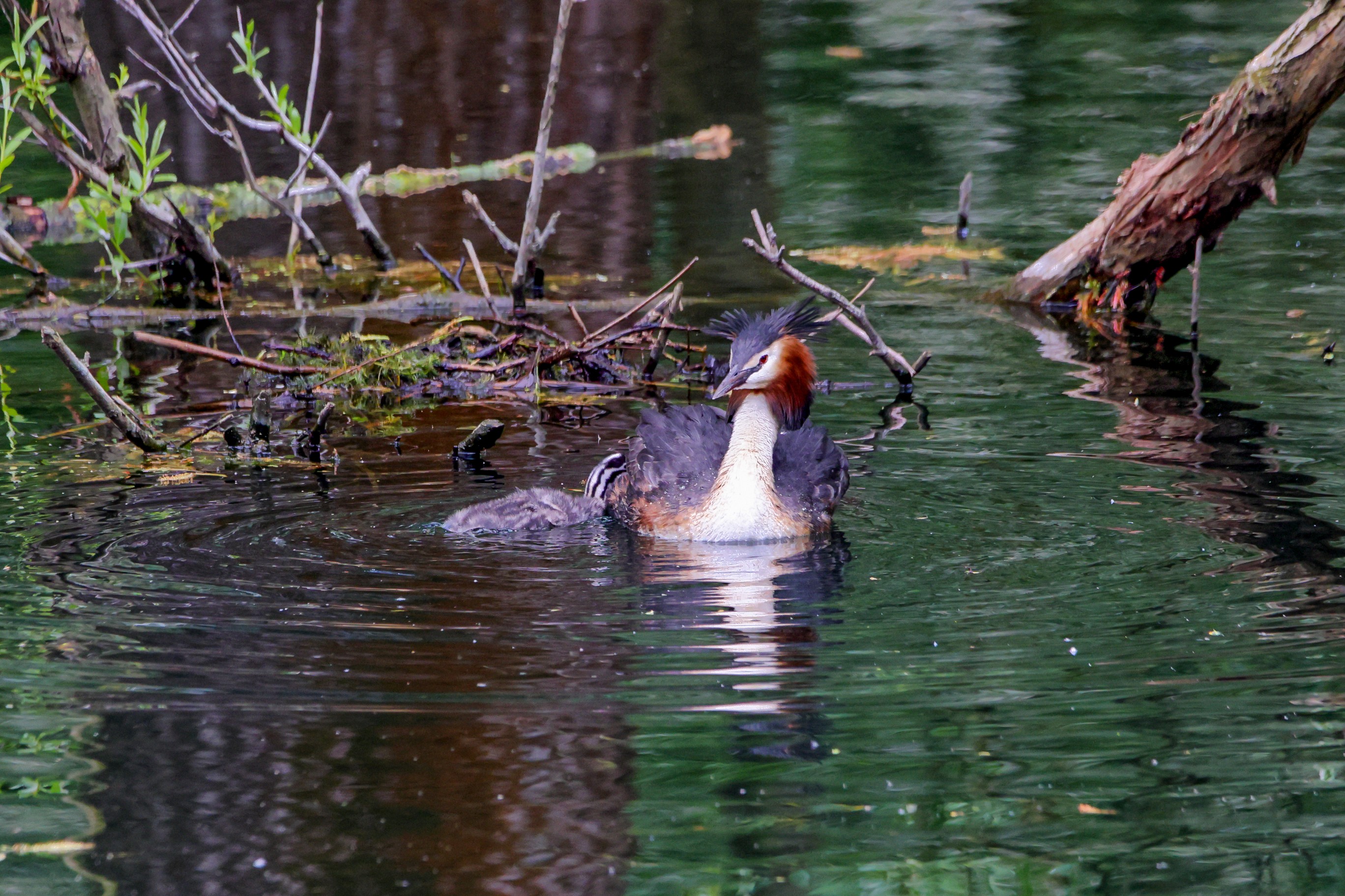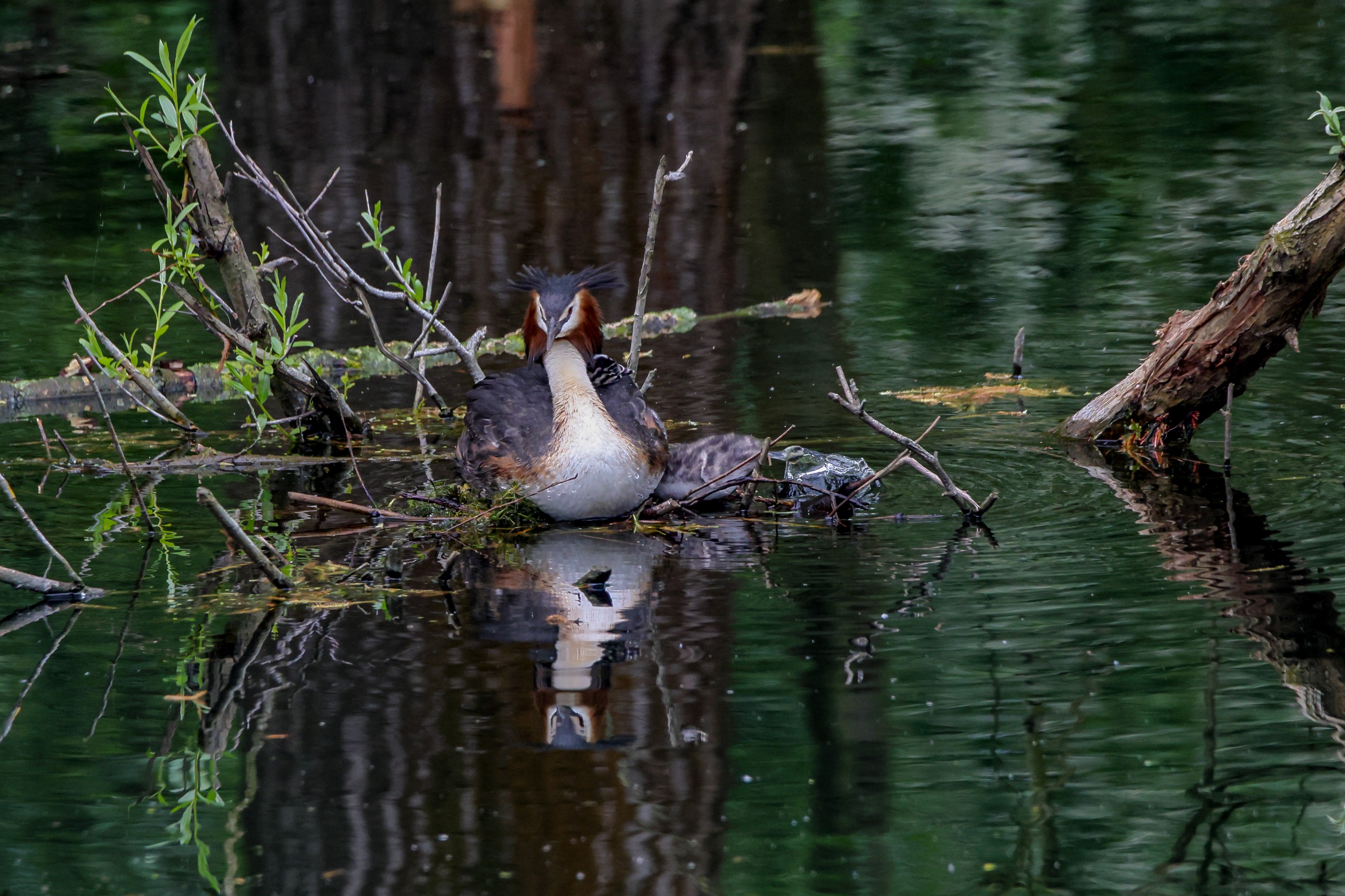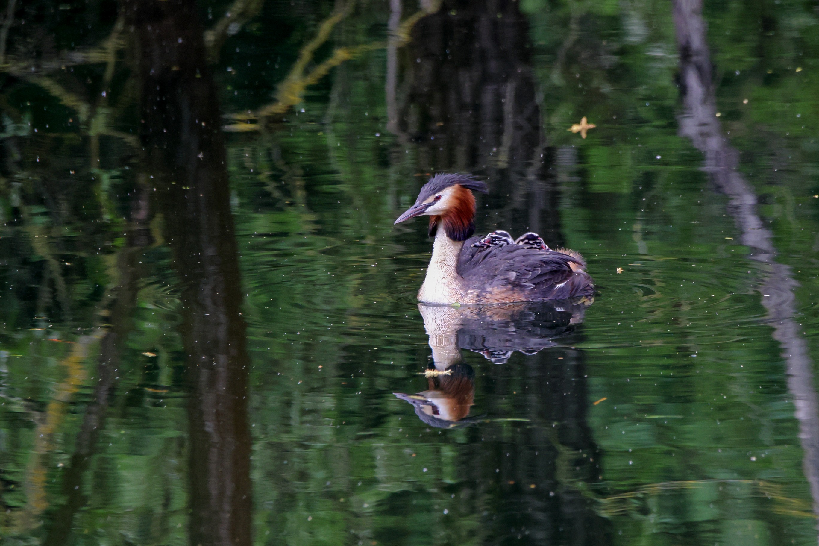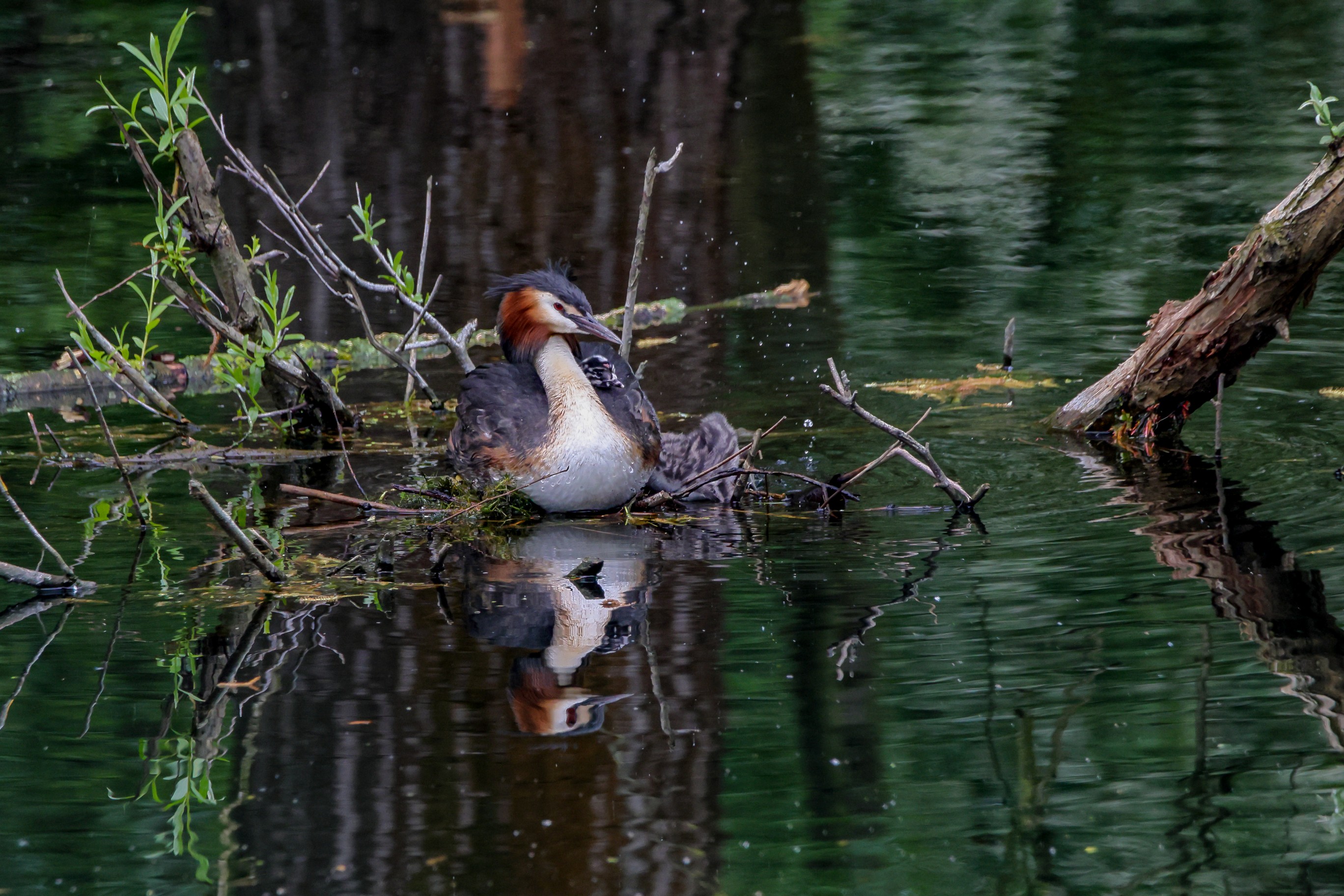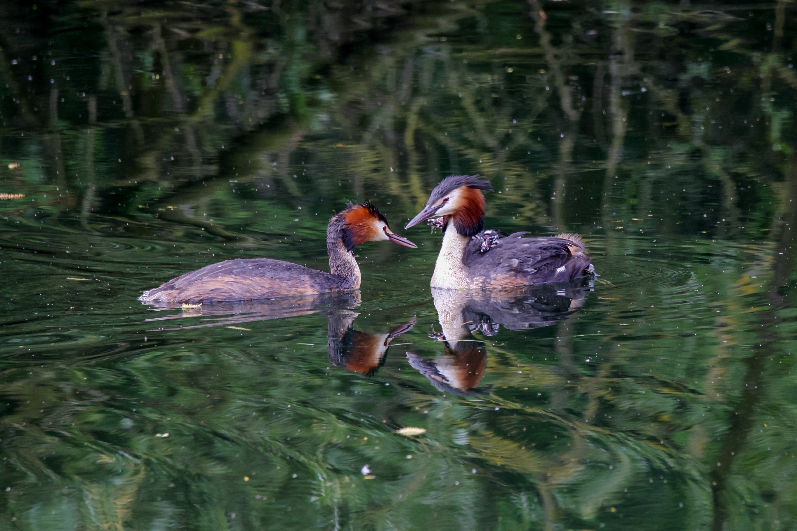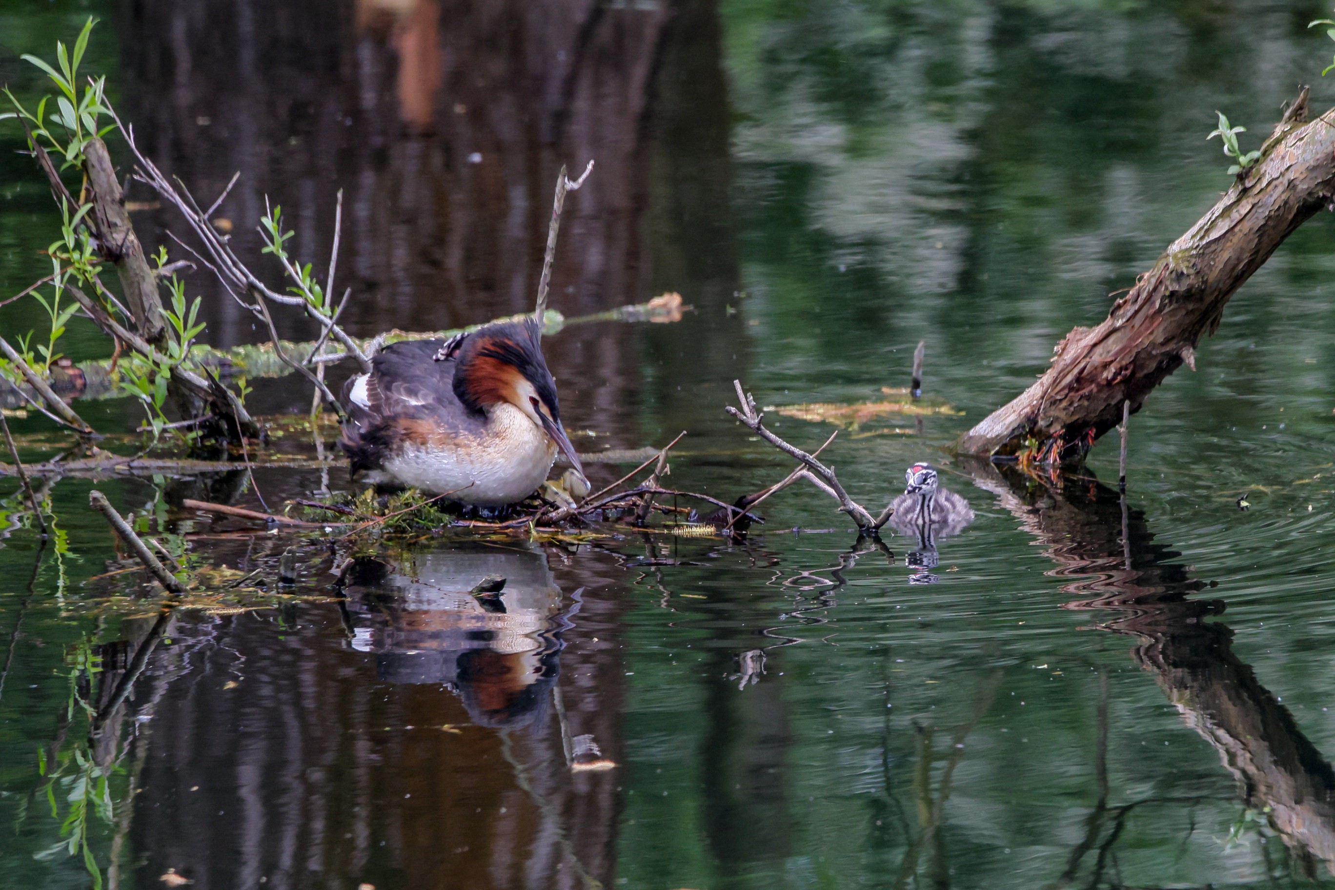 Die Haubentaucher präsentieren ihren Nachwuchs