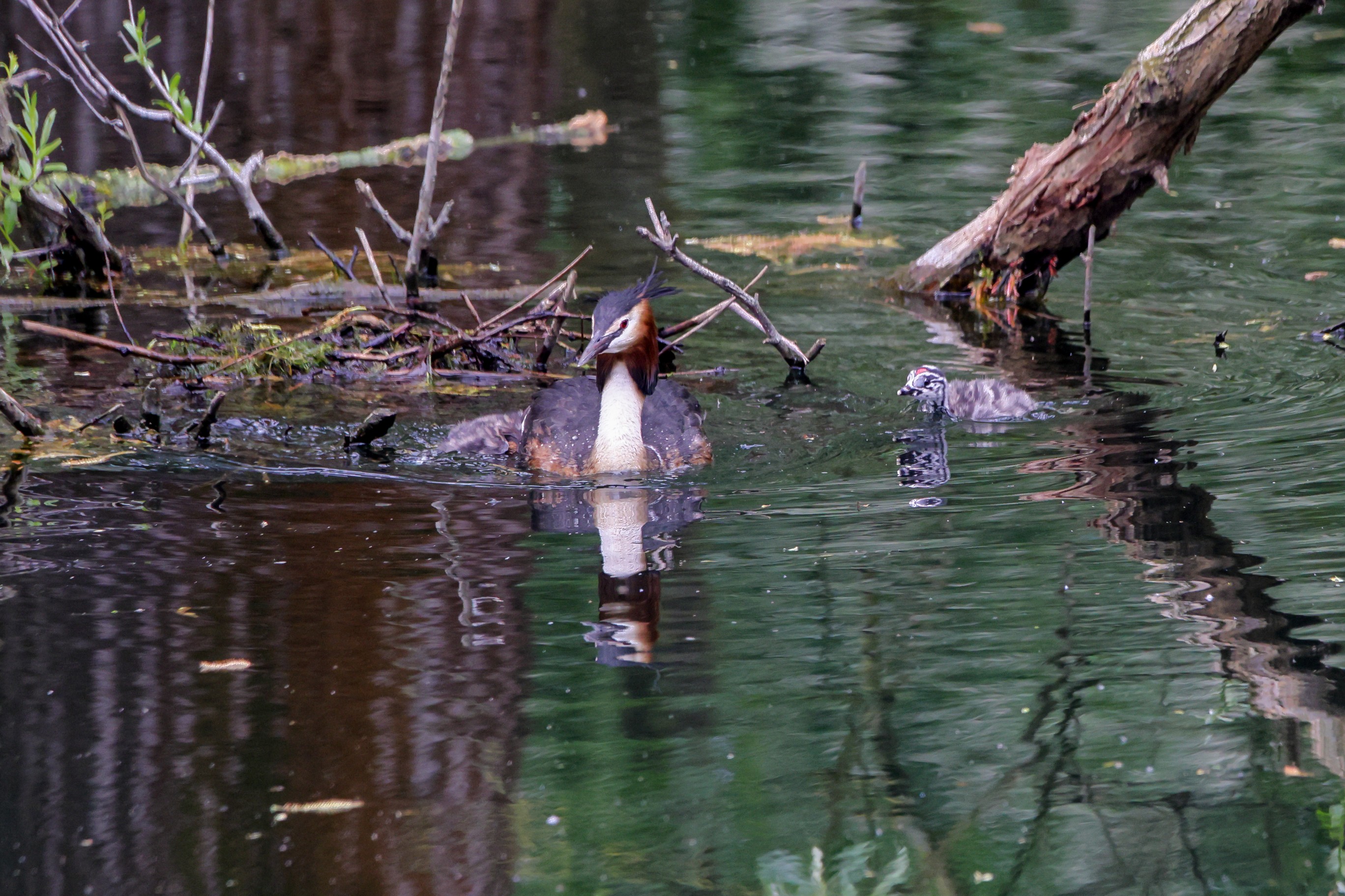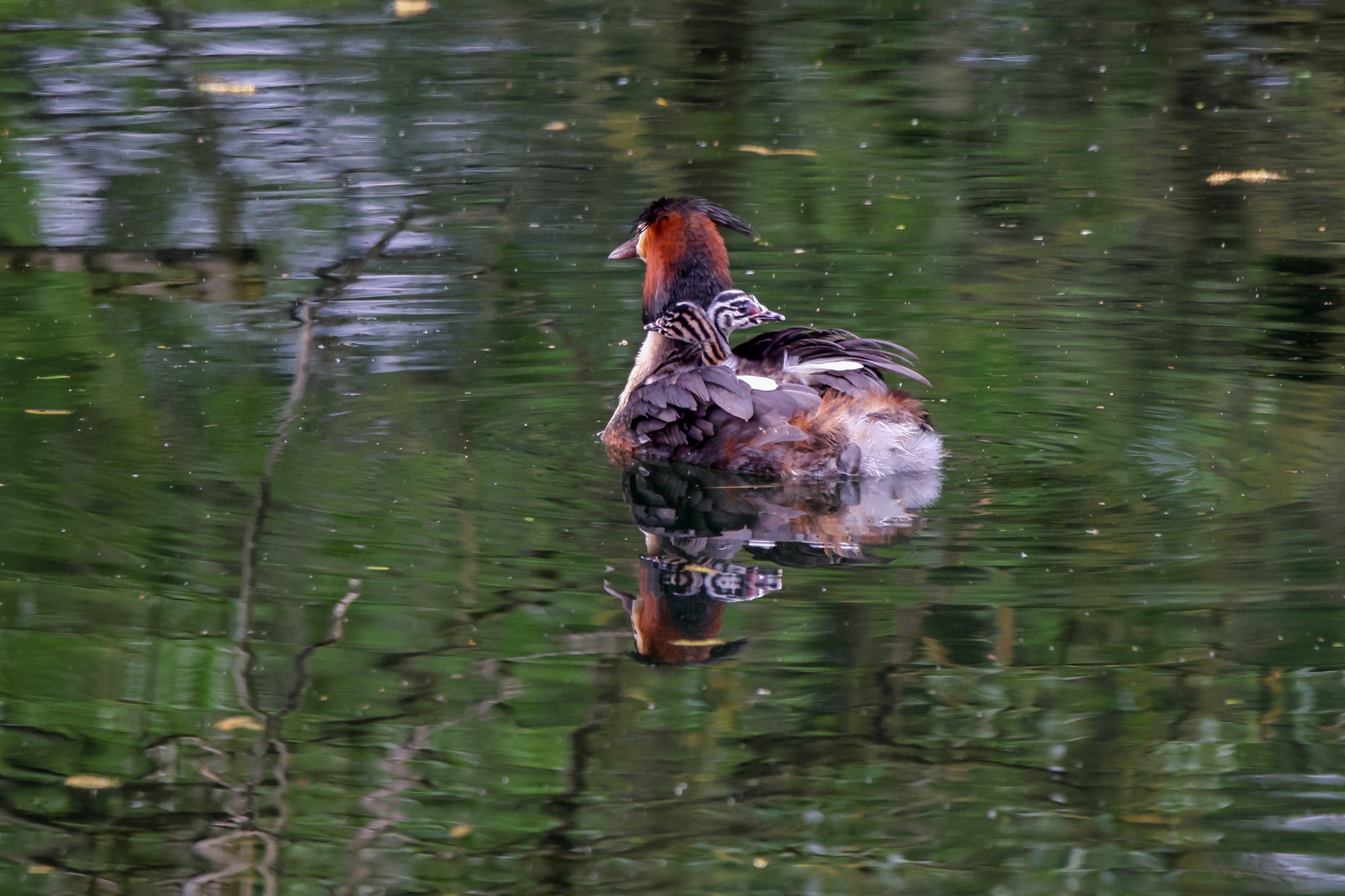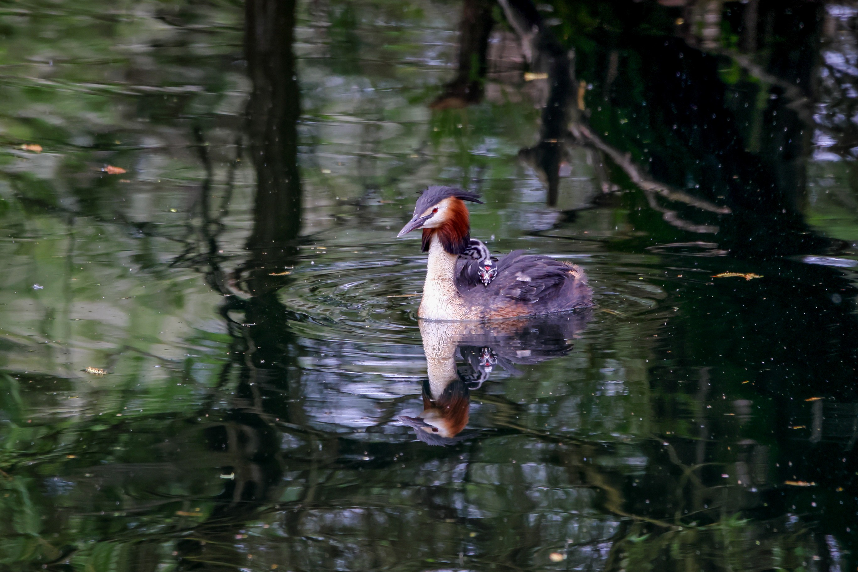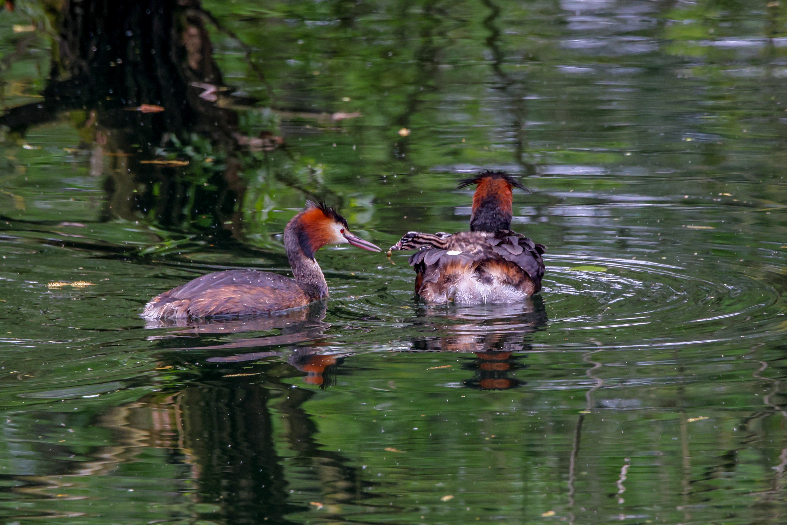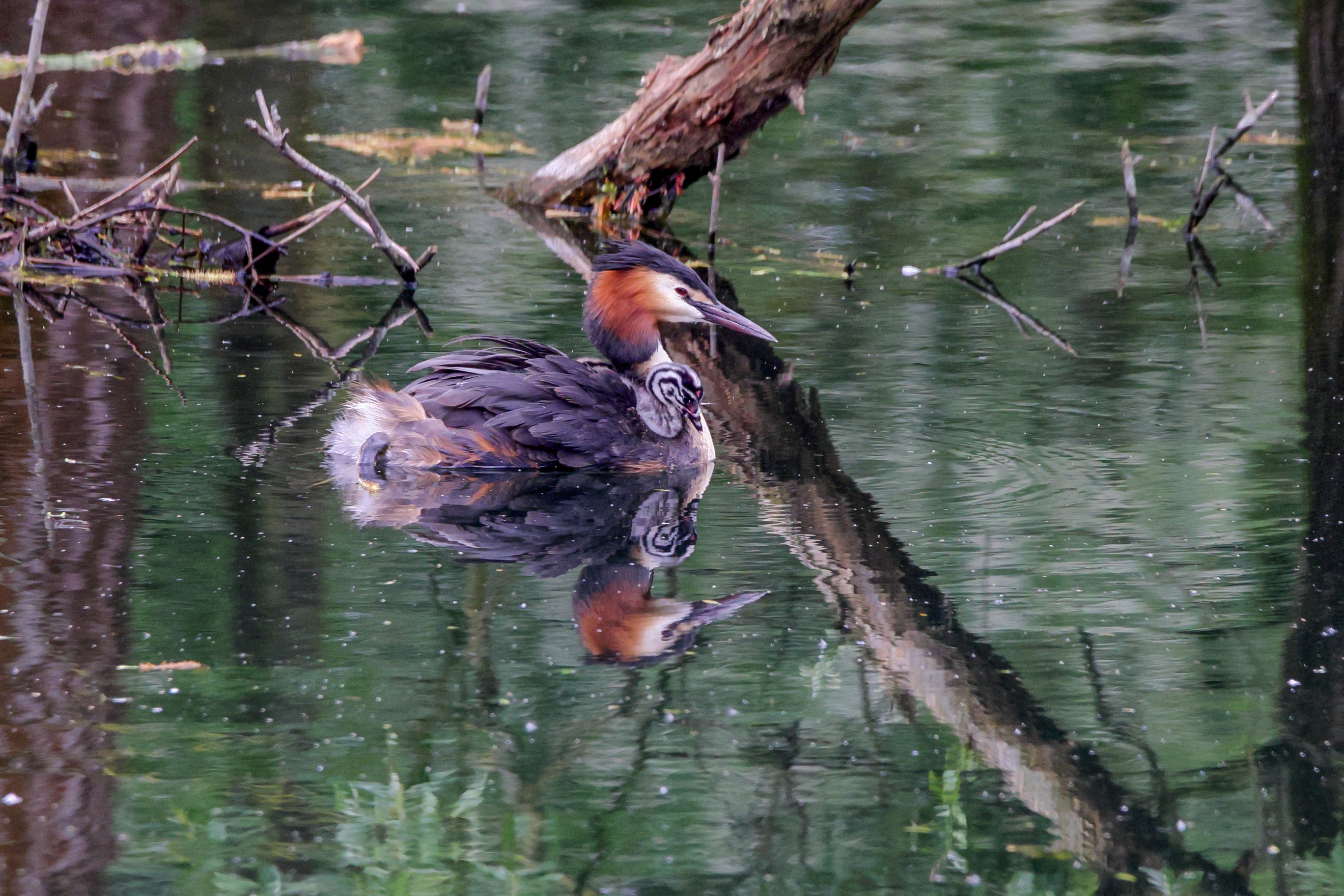 Die Haubentaucher präsentieren ihren Nachwuchs