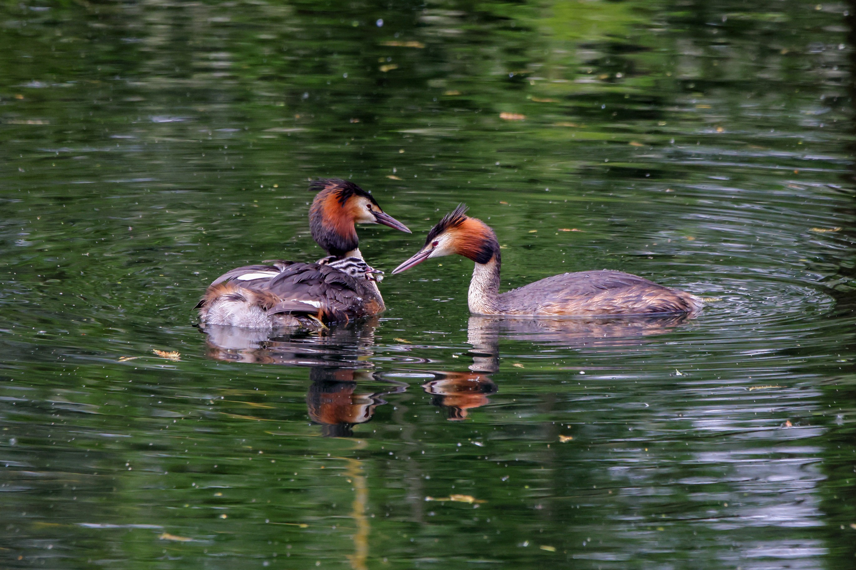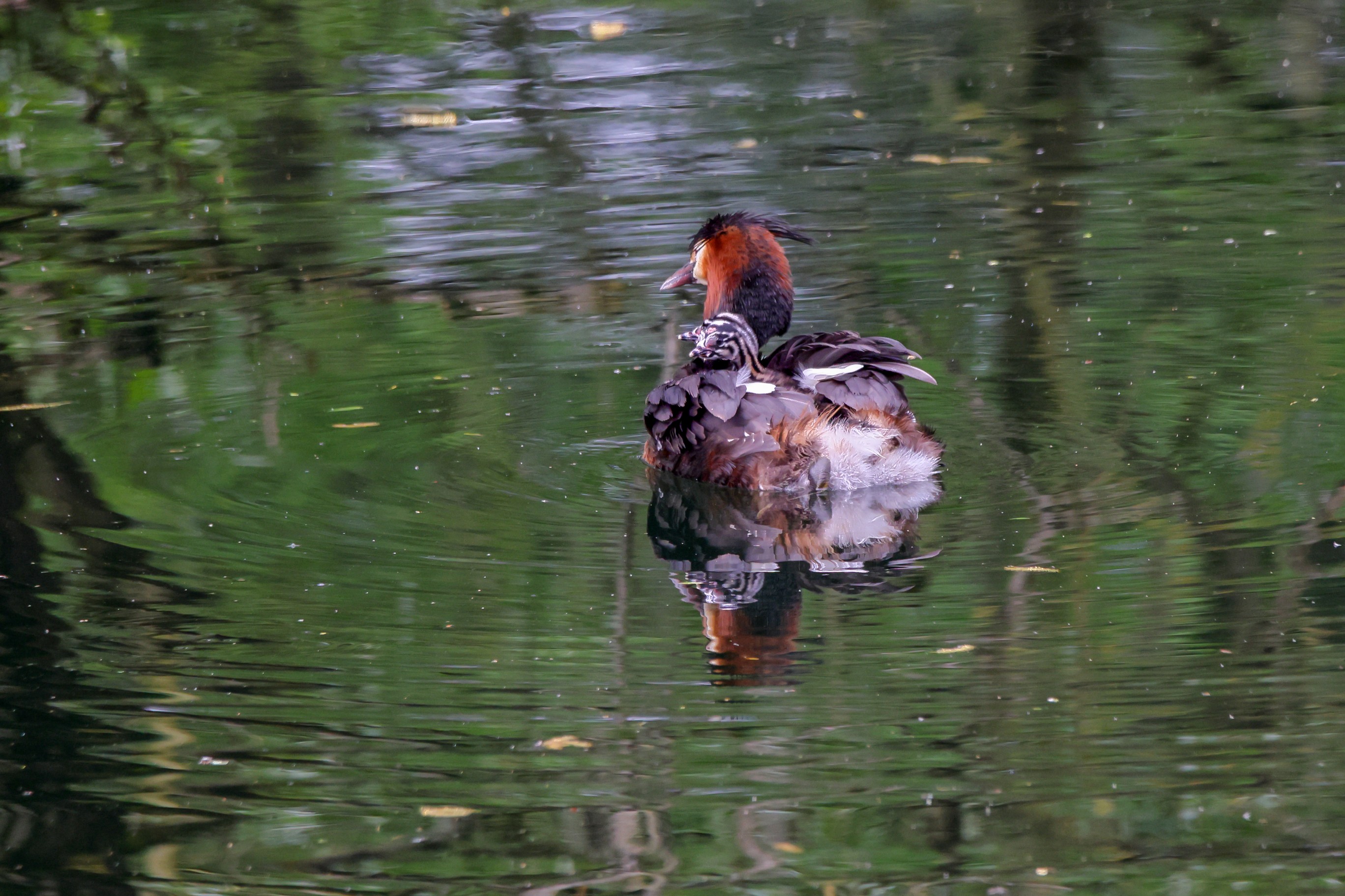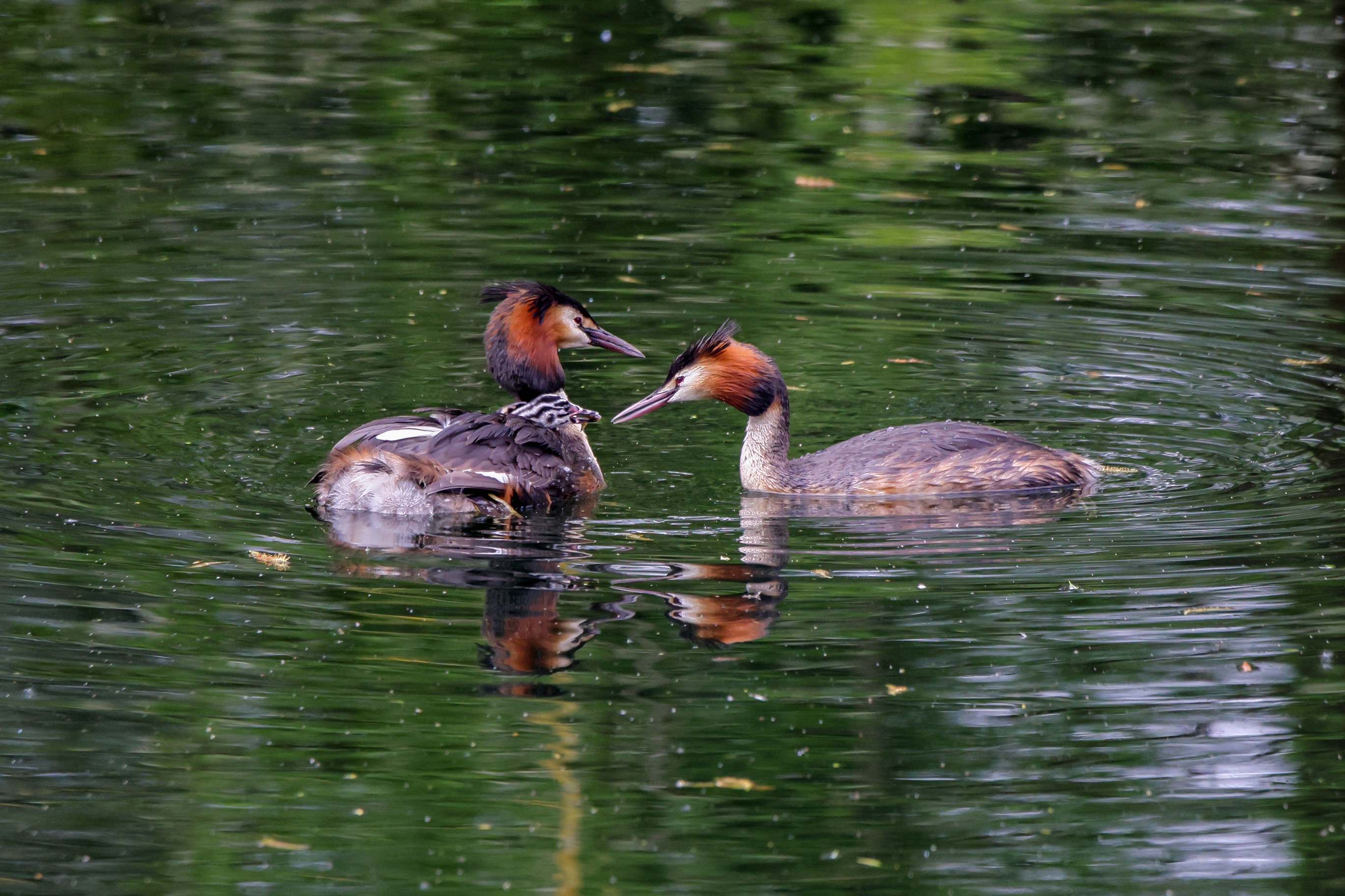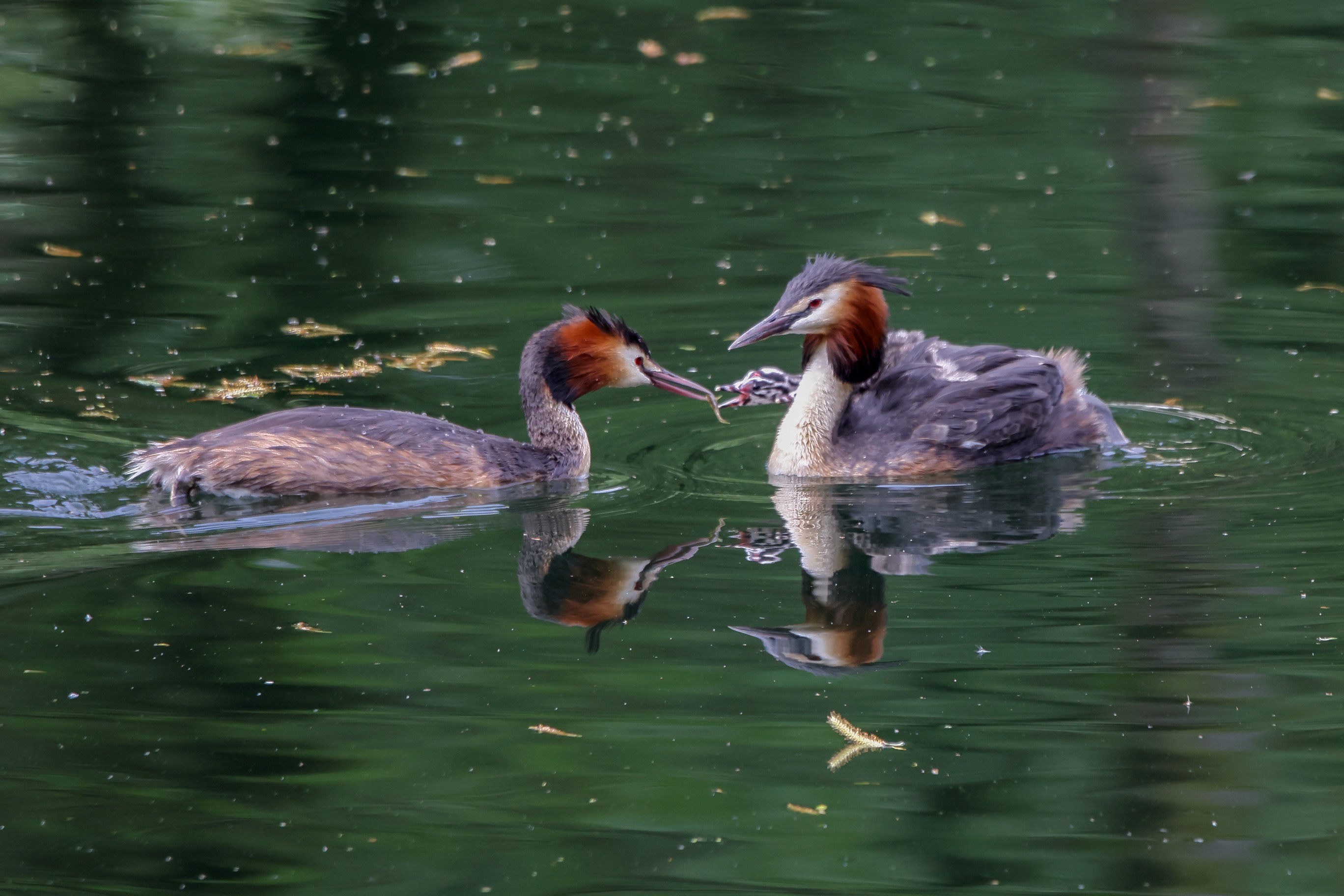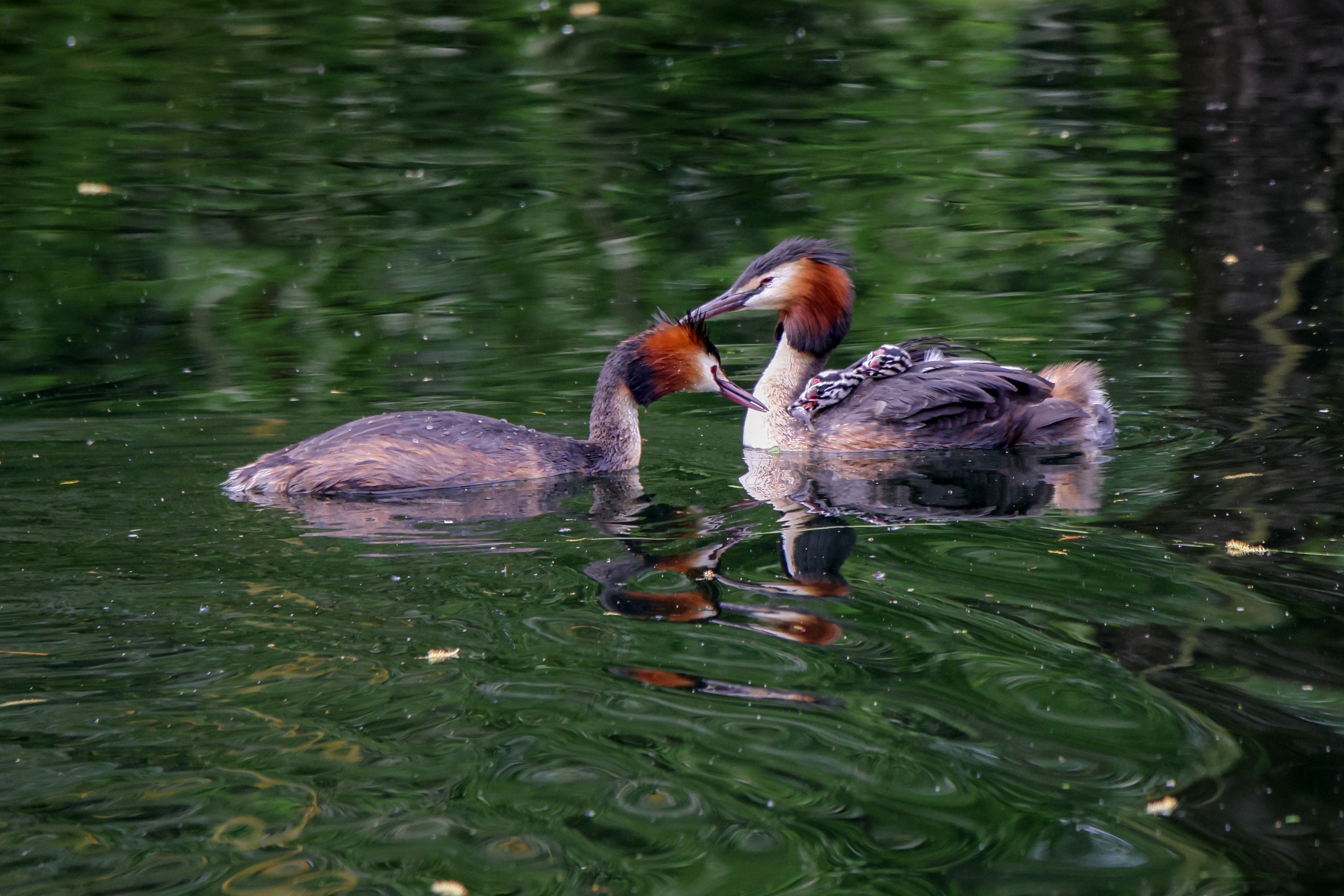 Die Haubentaucher präsentieren ihren Nachwuchs