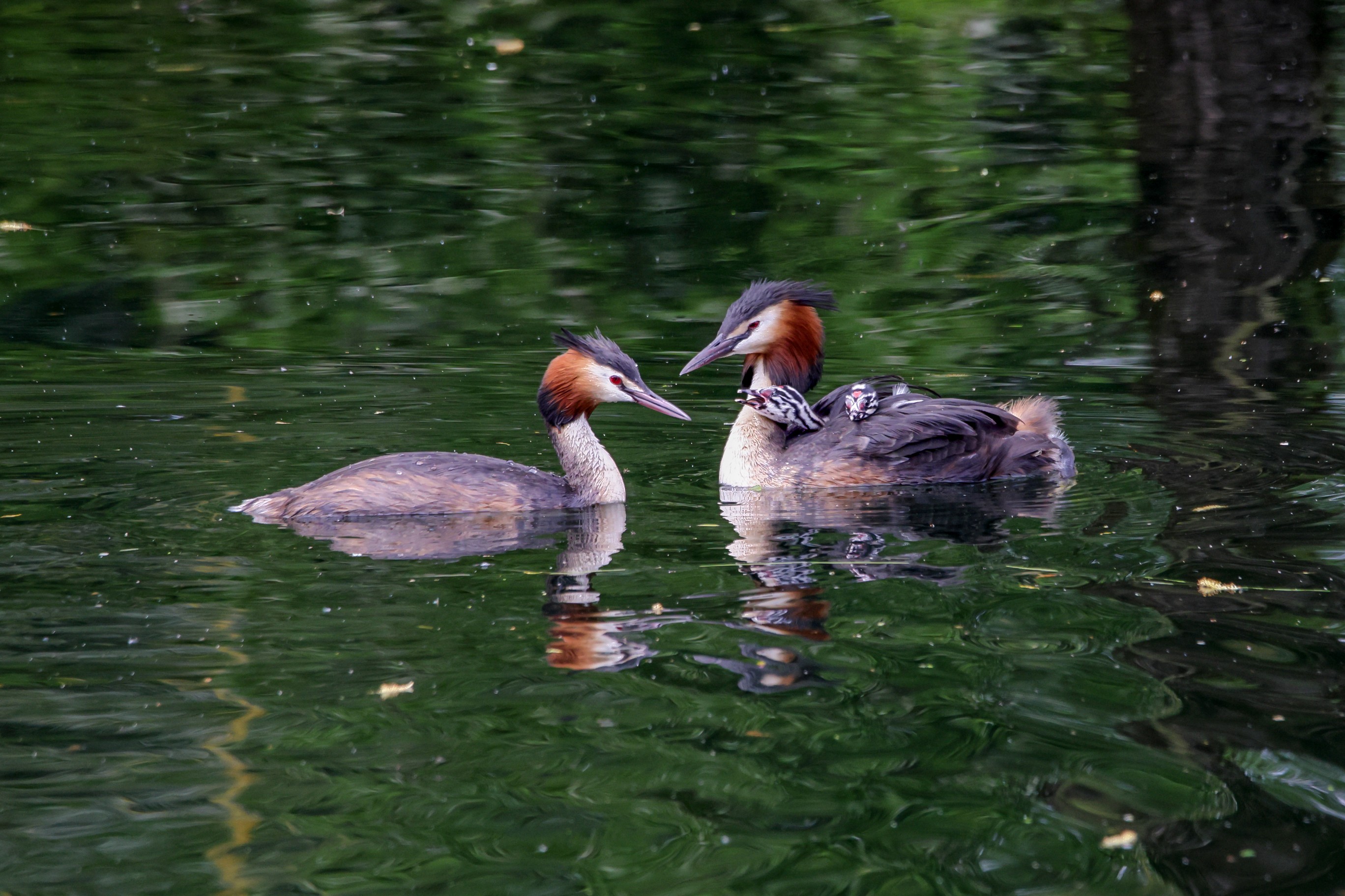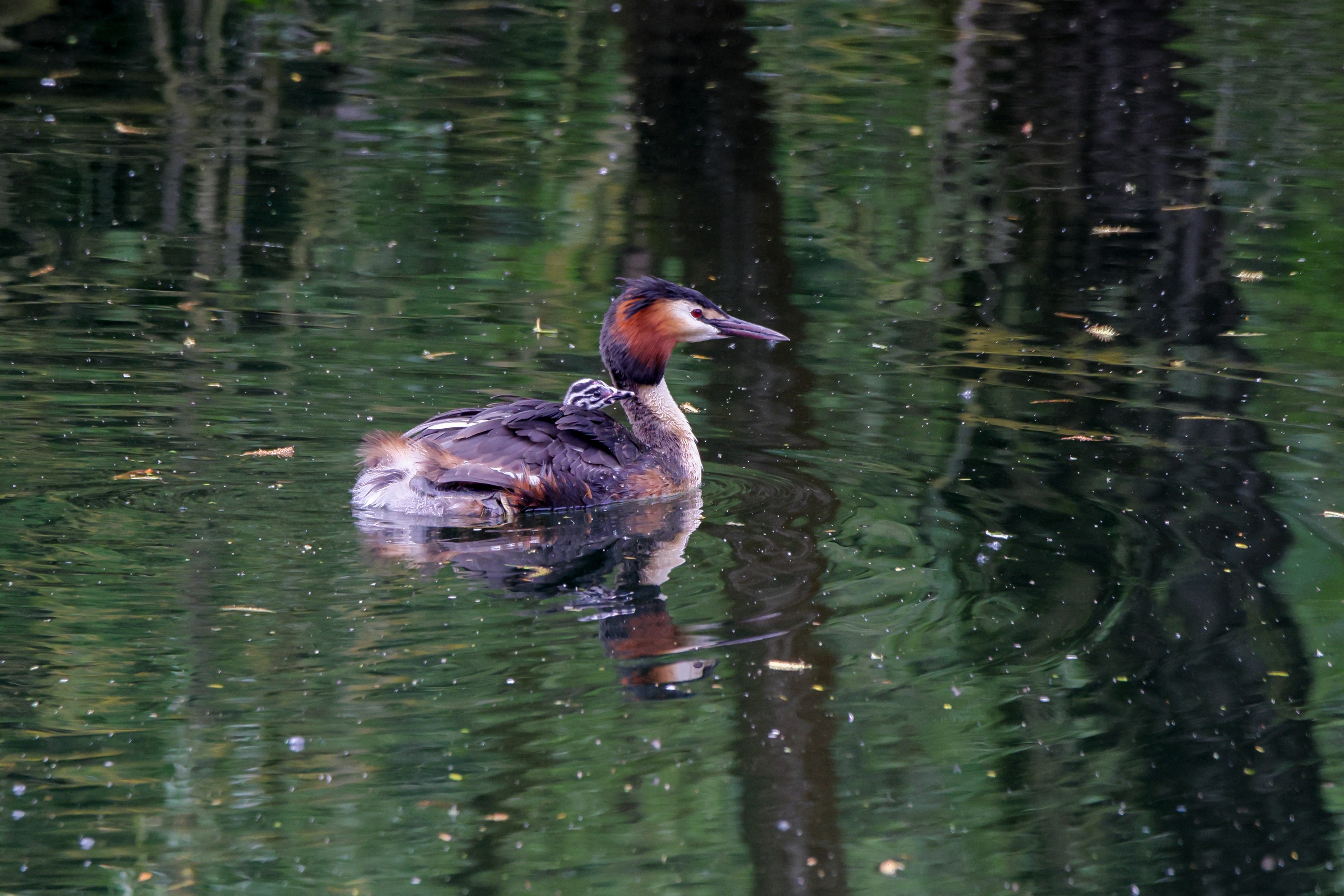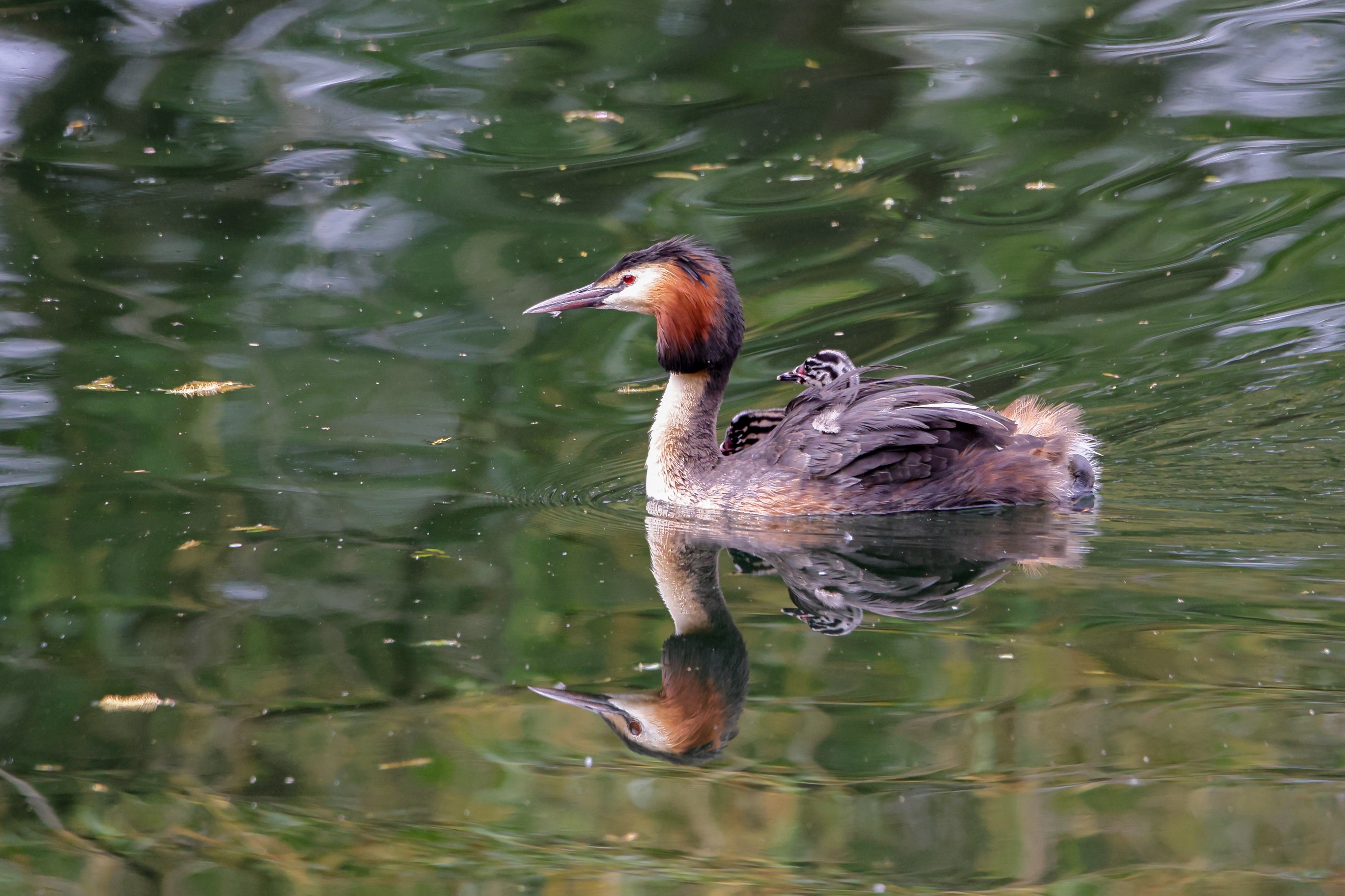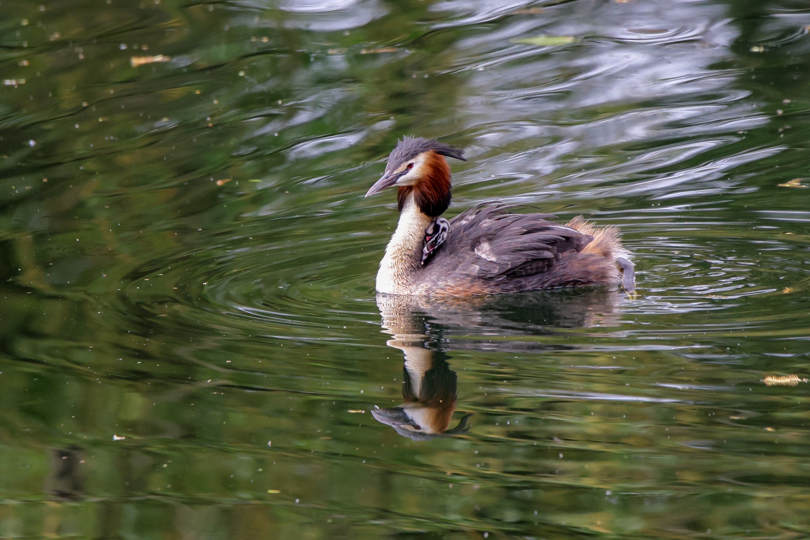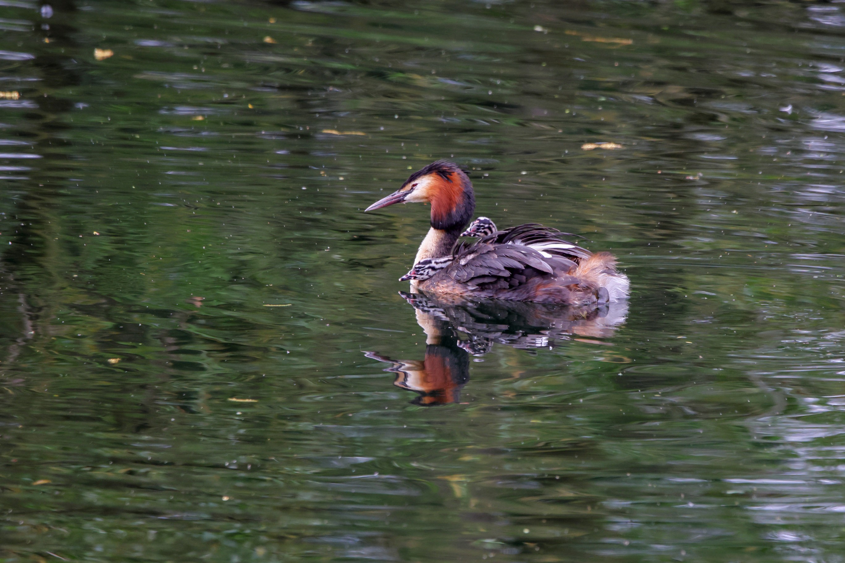 Die Haubentaucher präsentieren ihren Nachwuchs