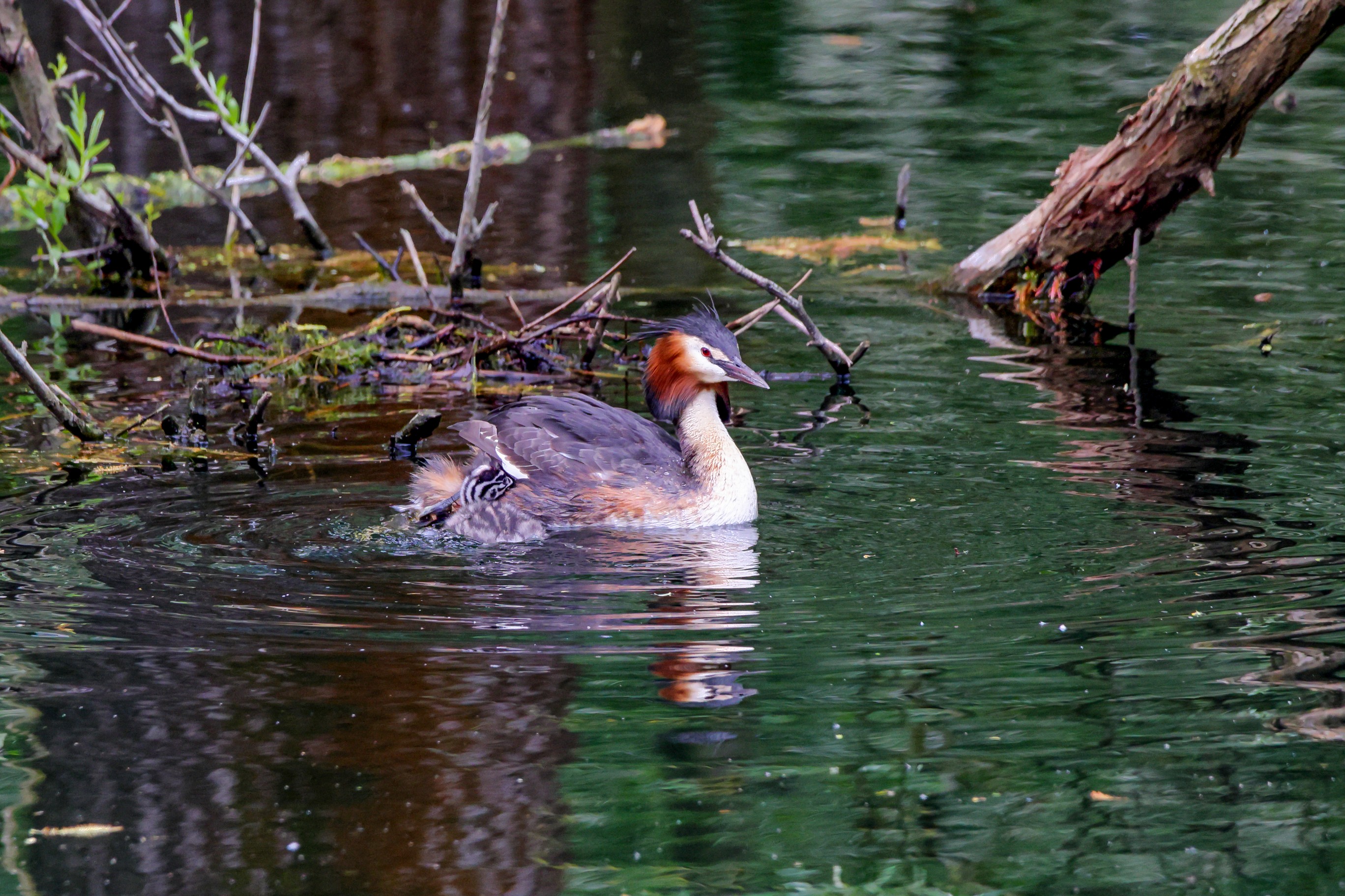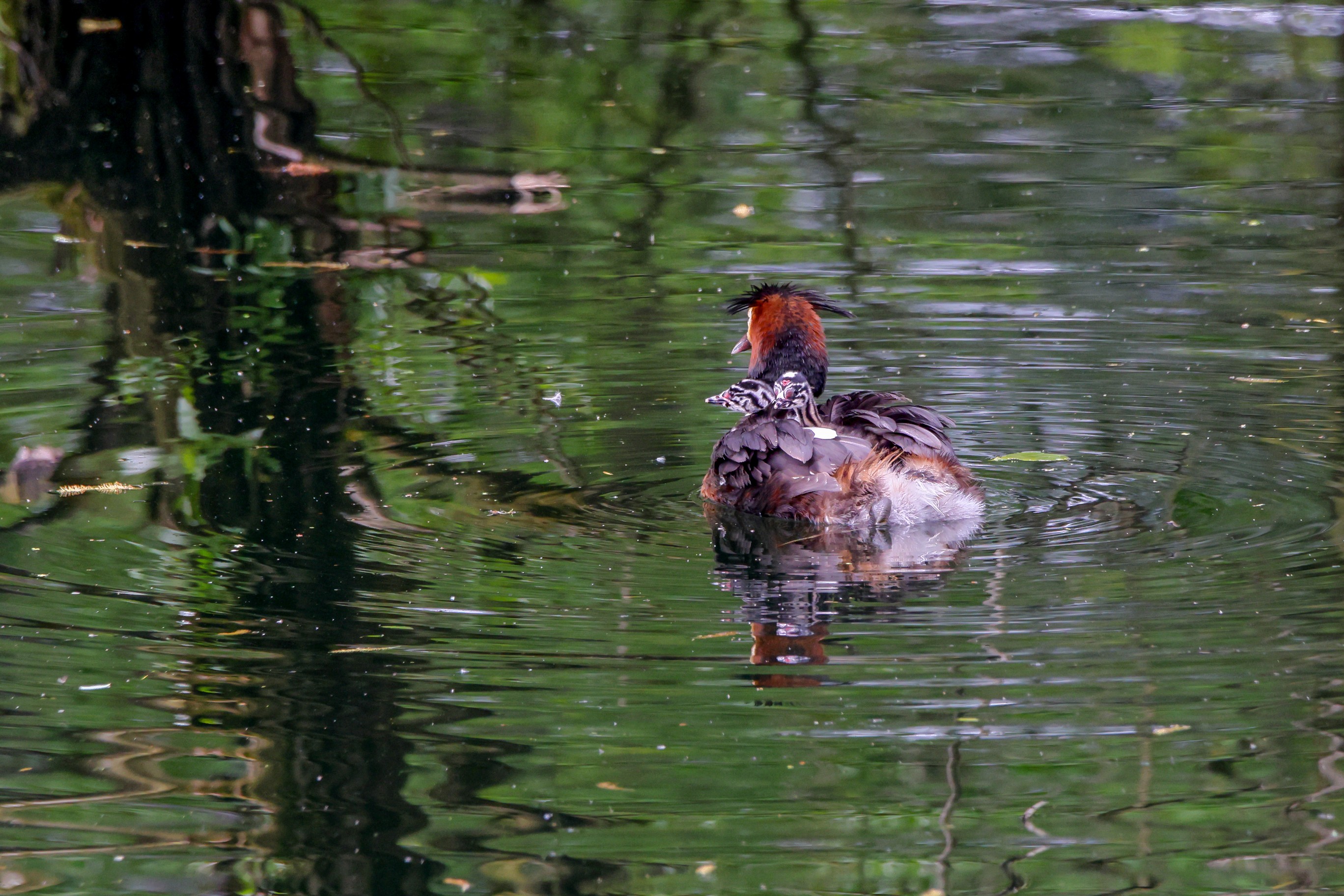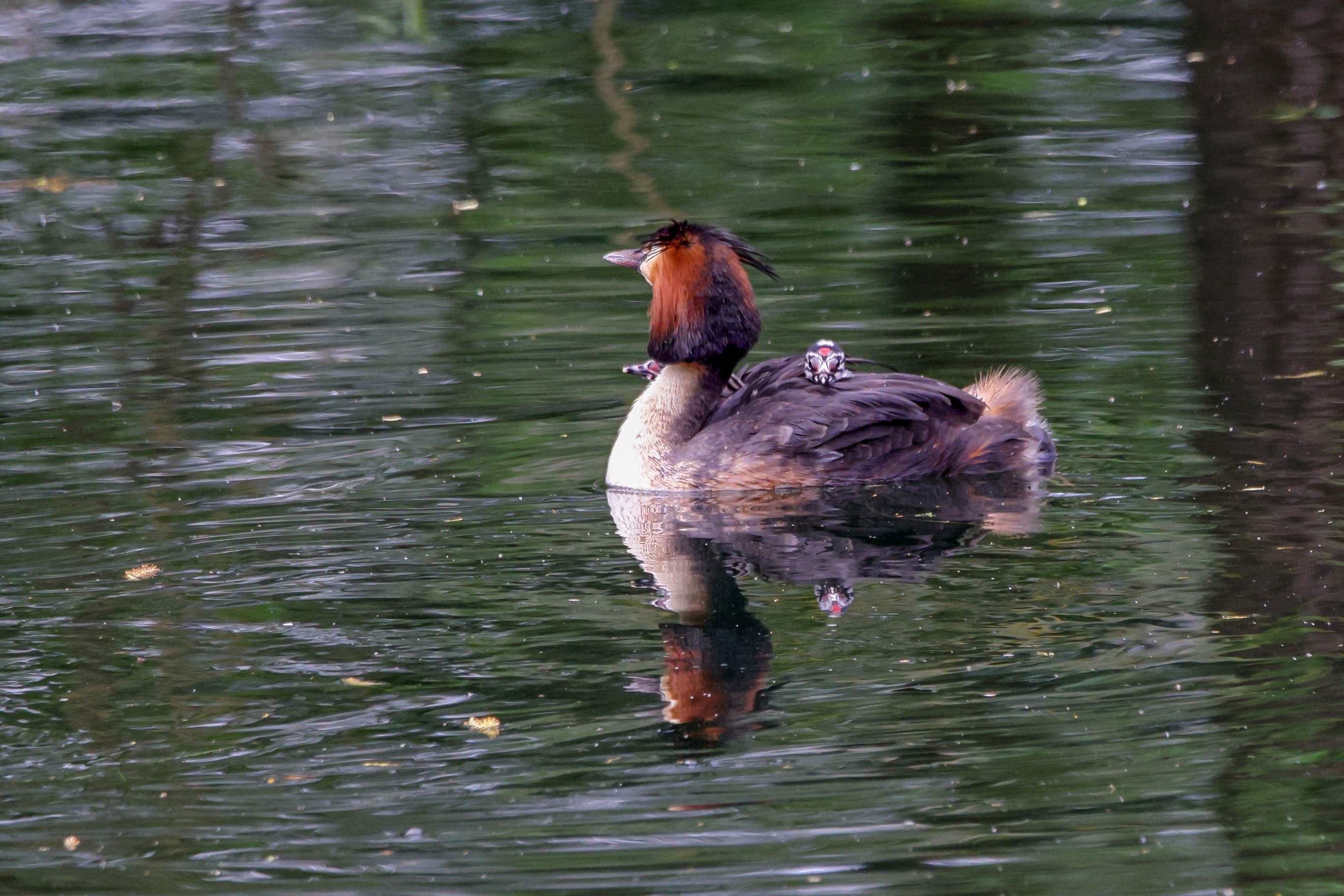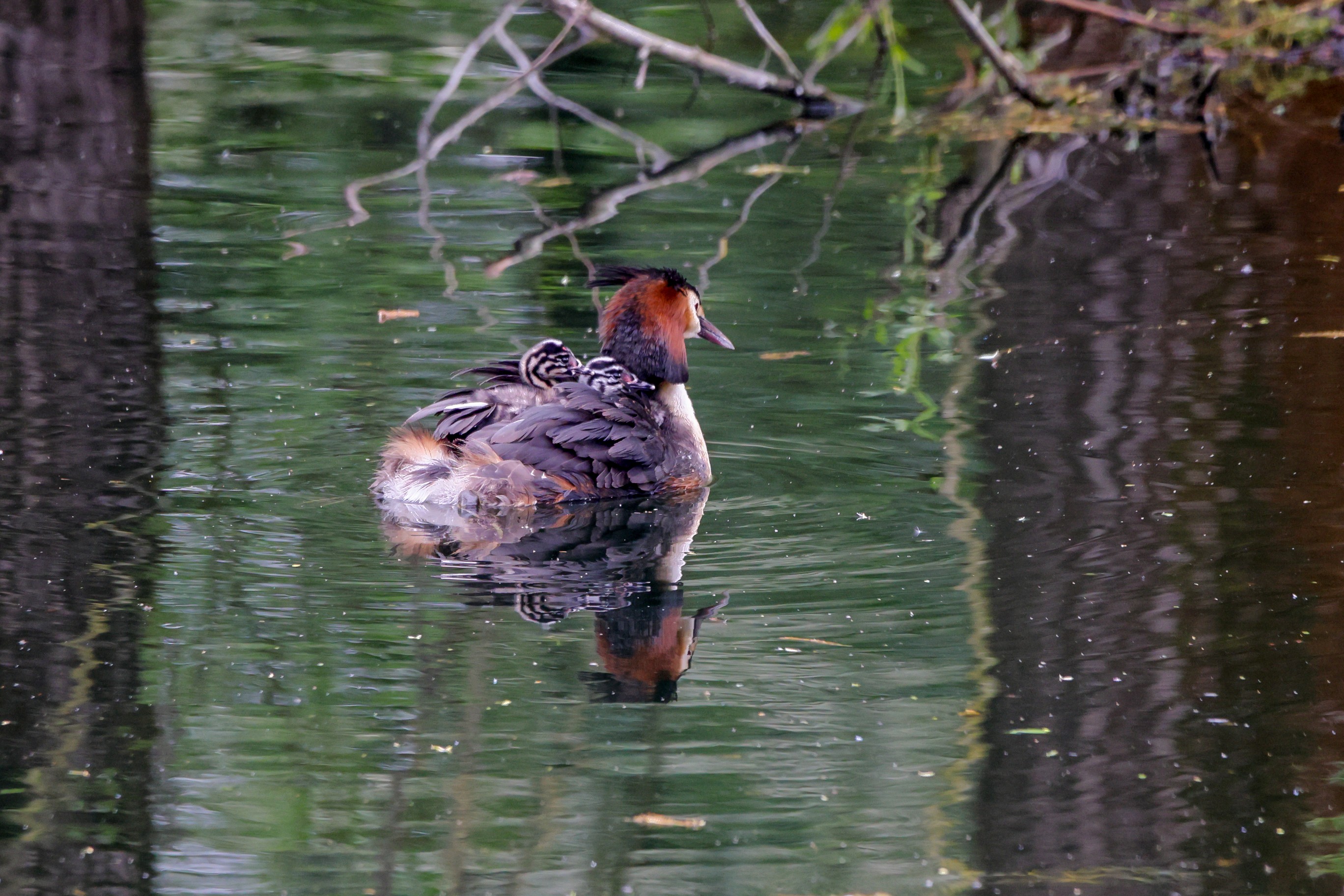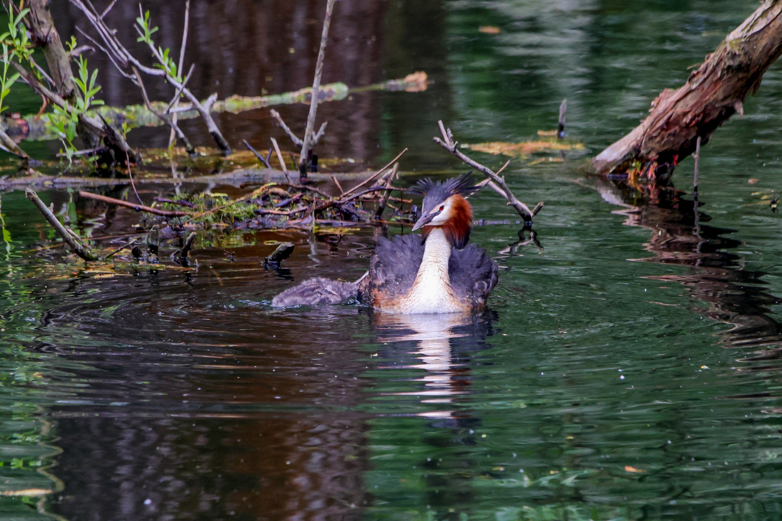 Die Haubentaucher präsentieren ihren Nachwuchs