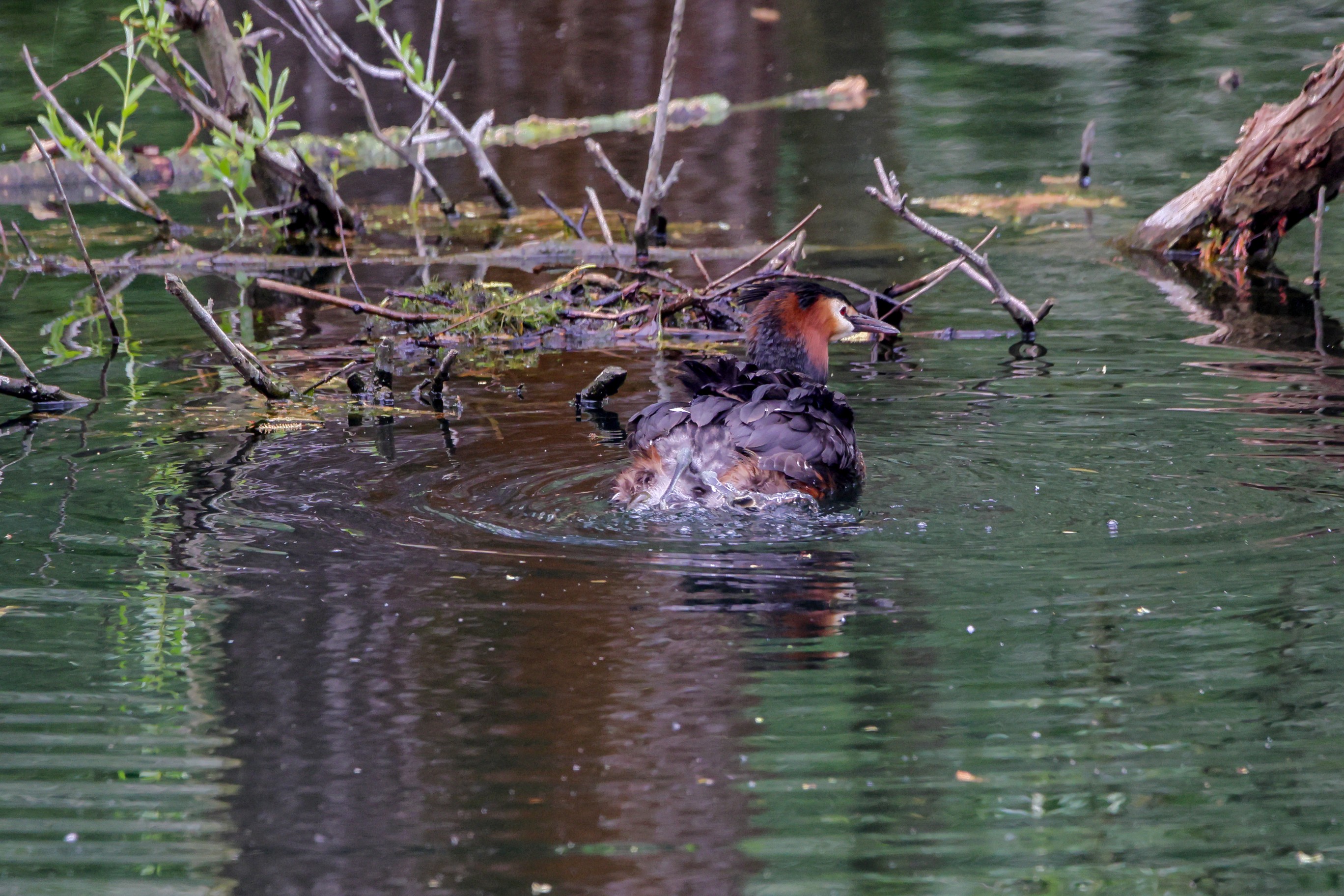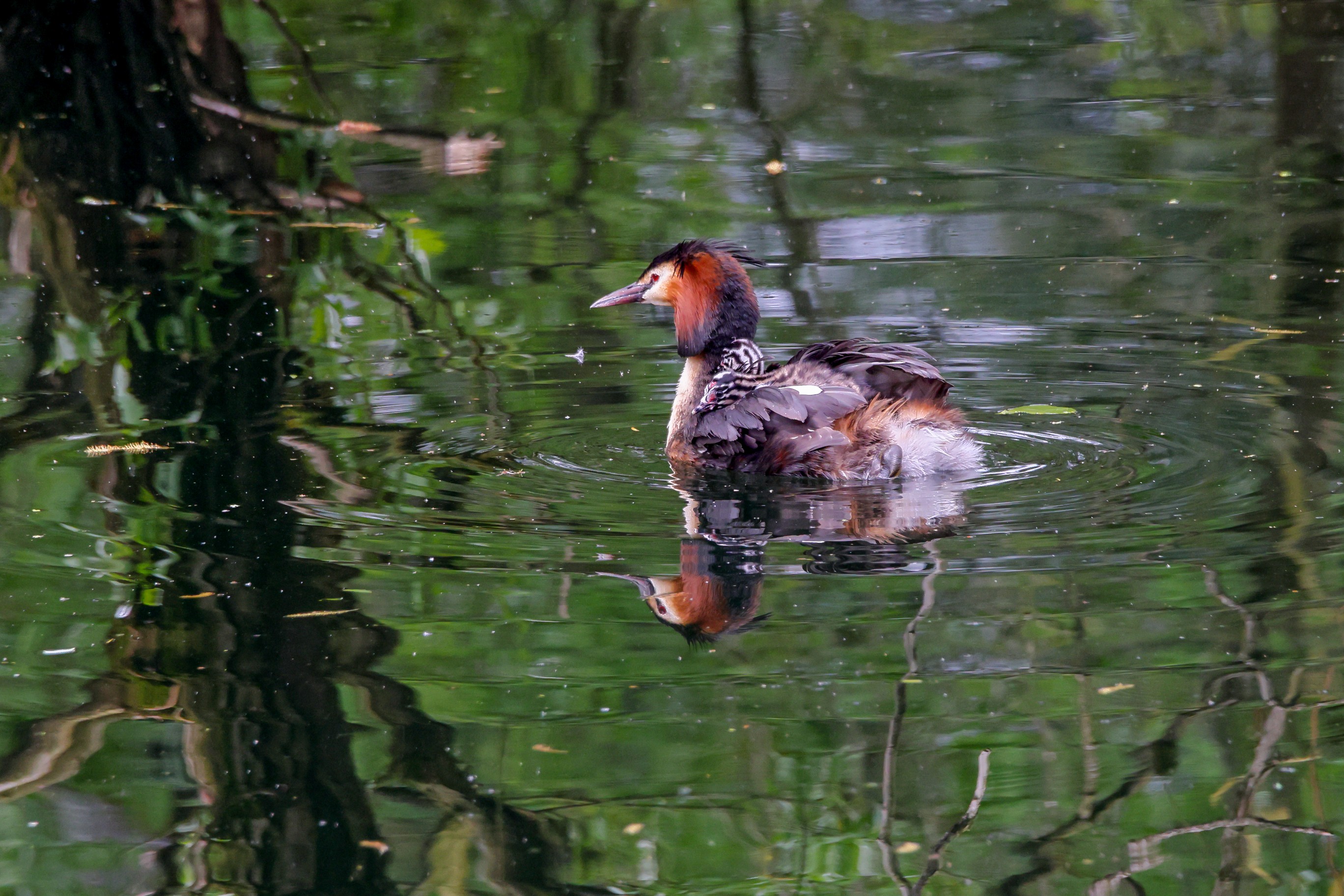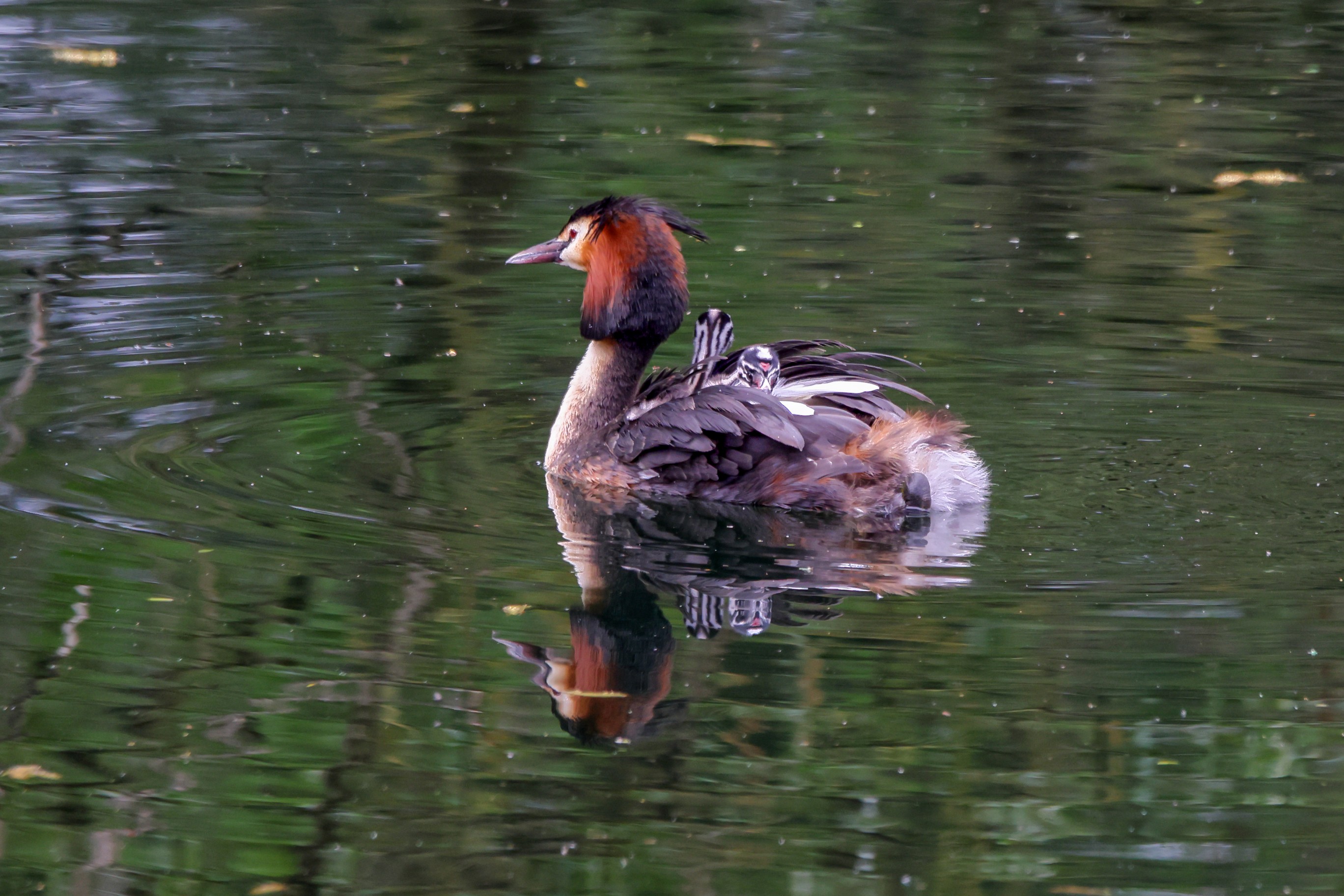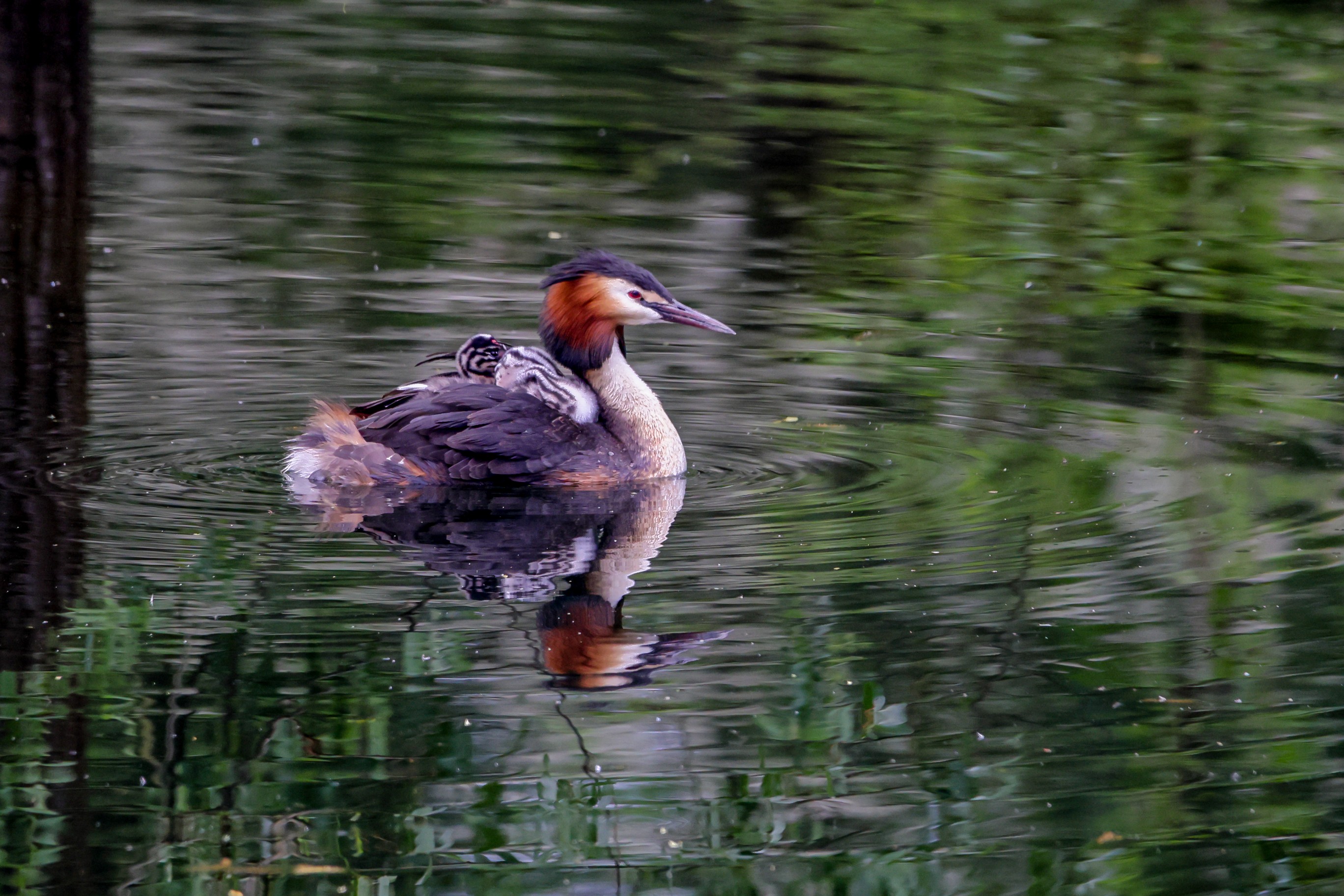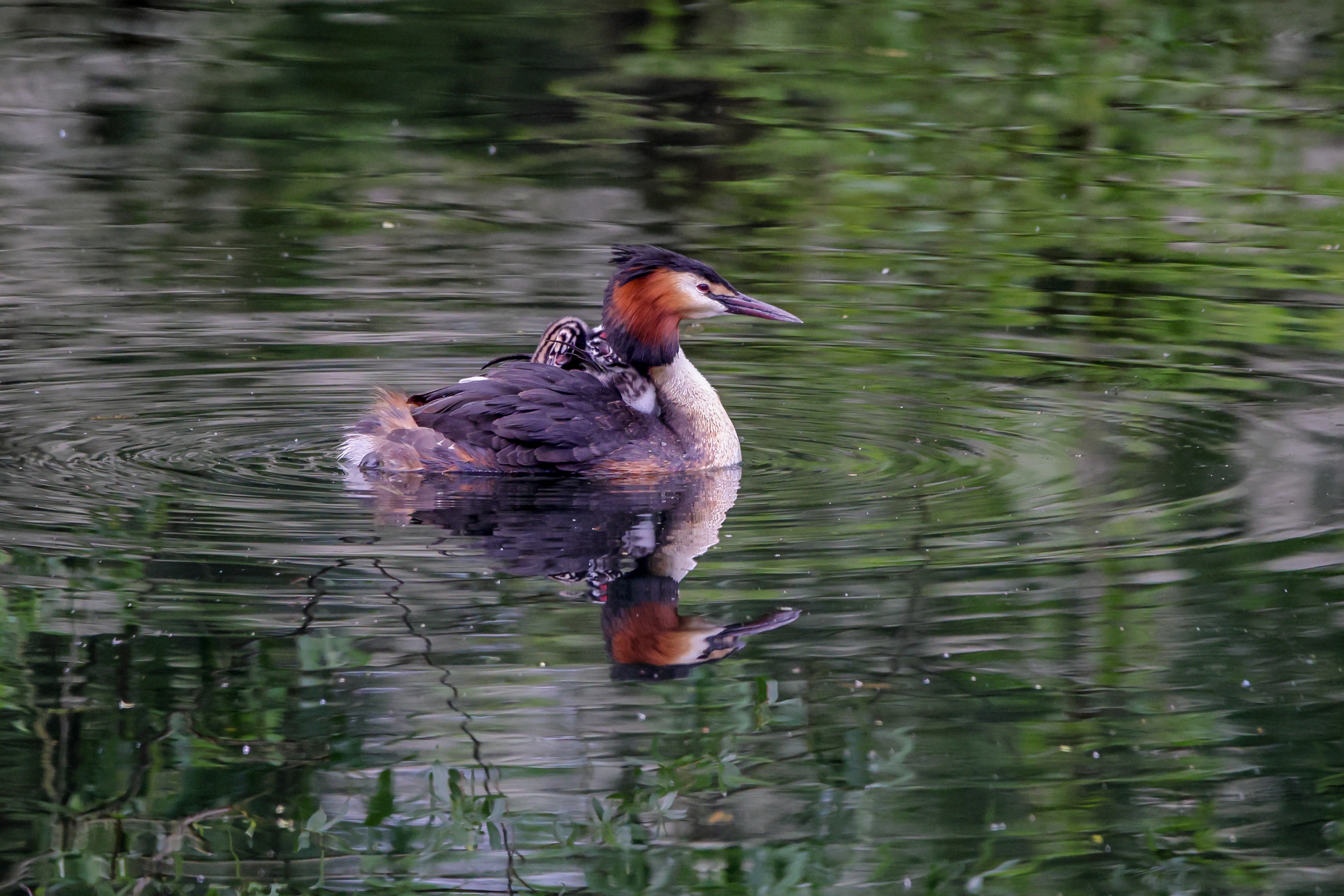Die Haubentaucher präsentieren ihren Nachwuchs