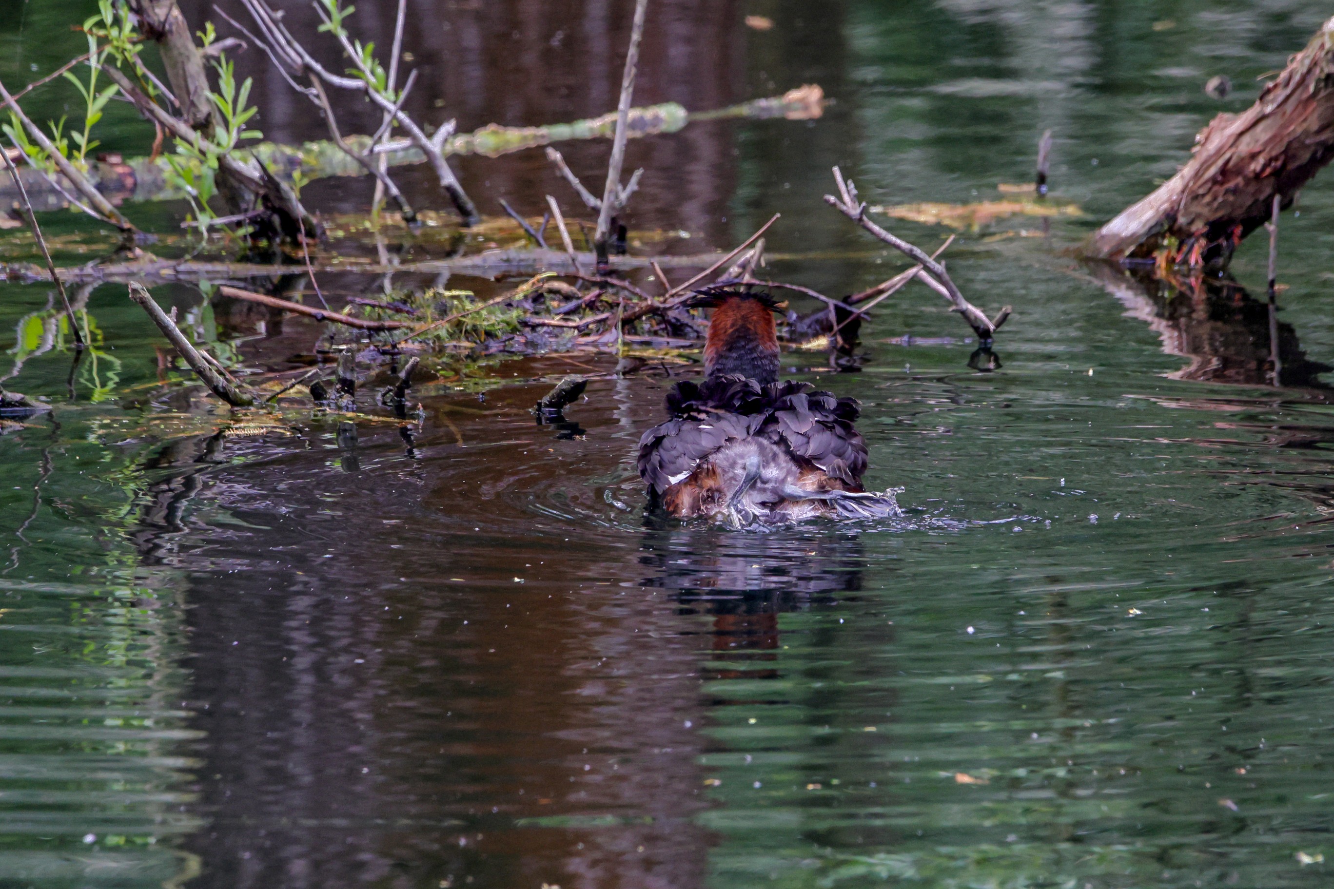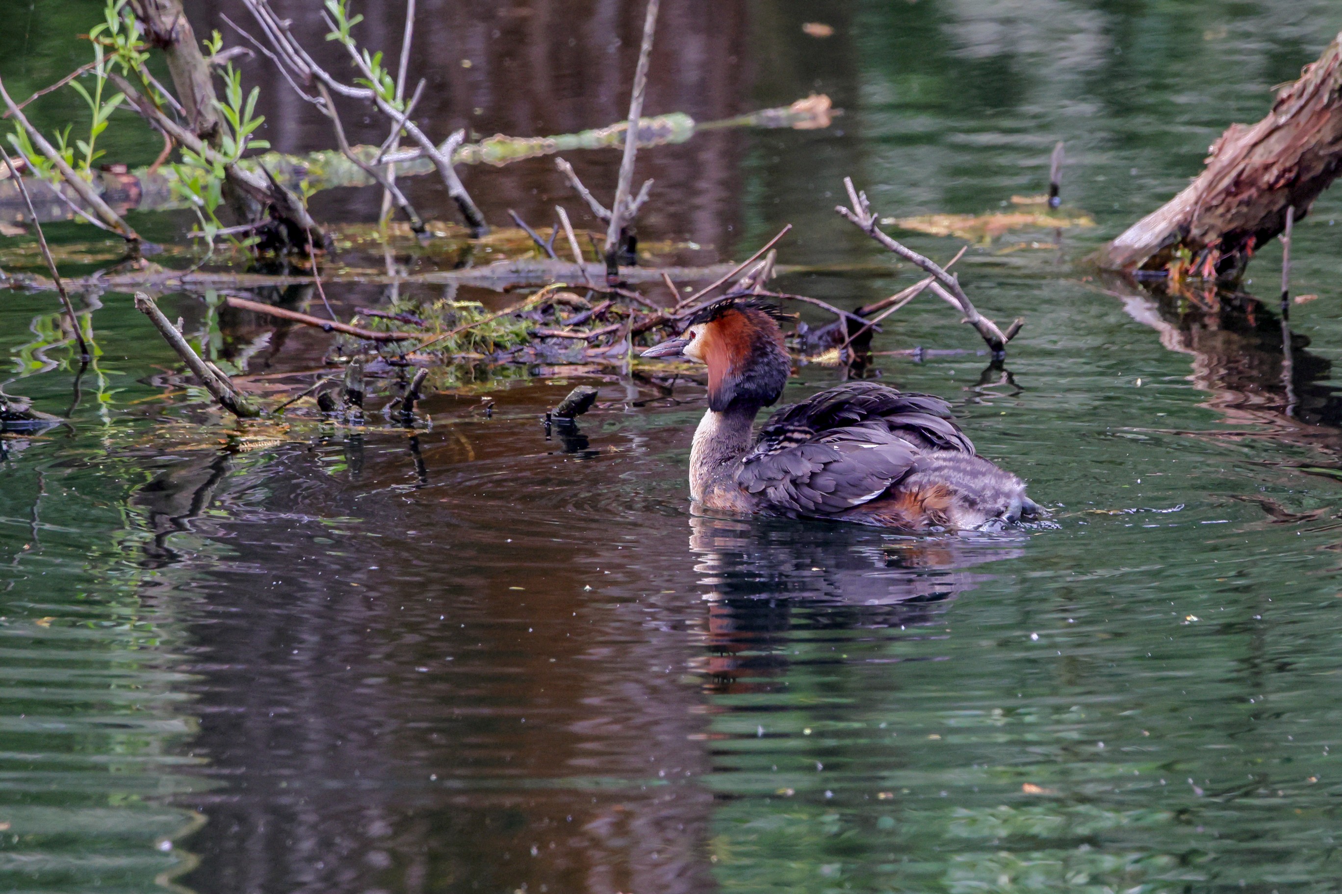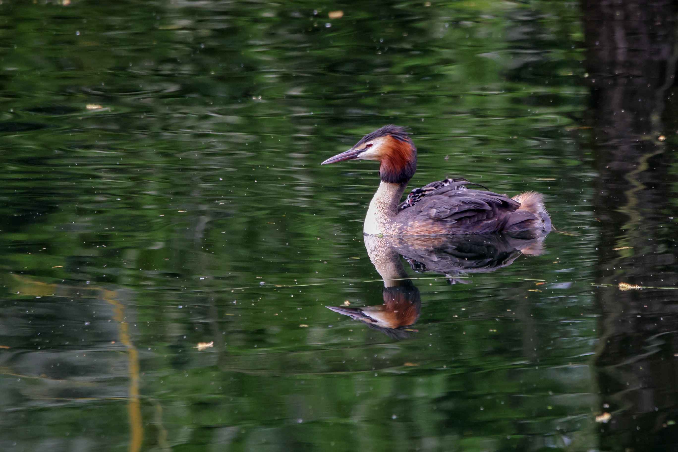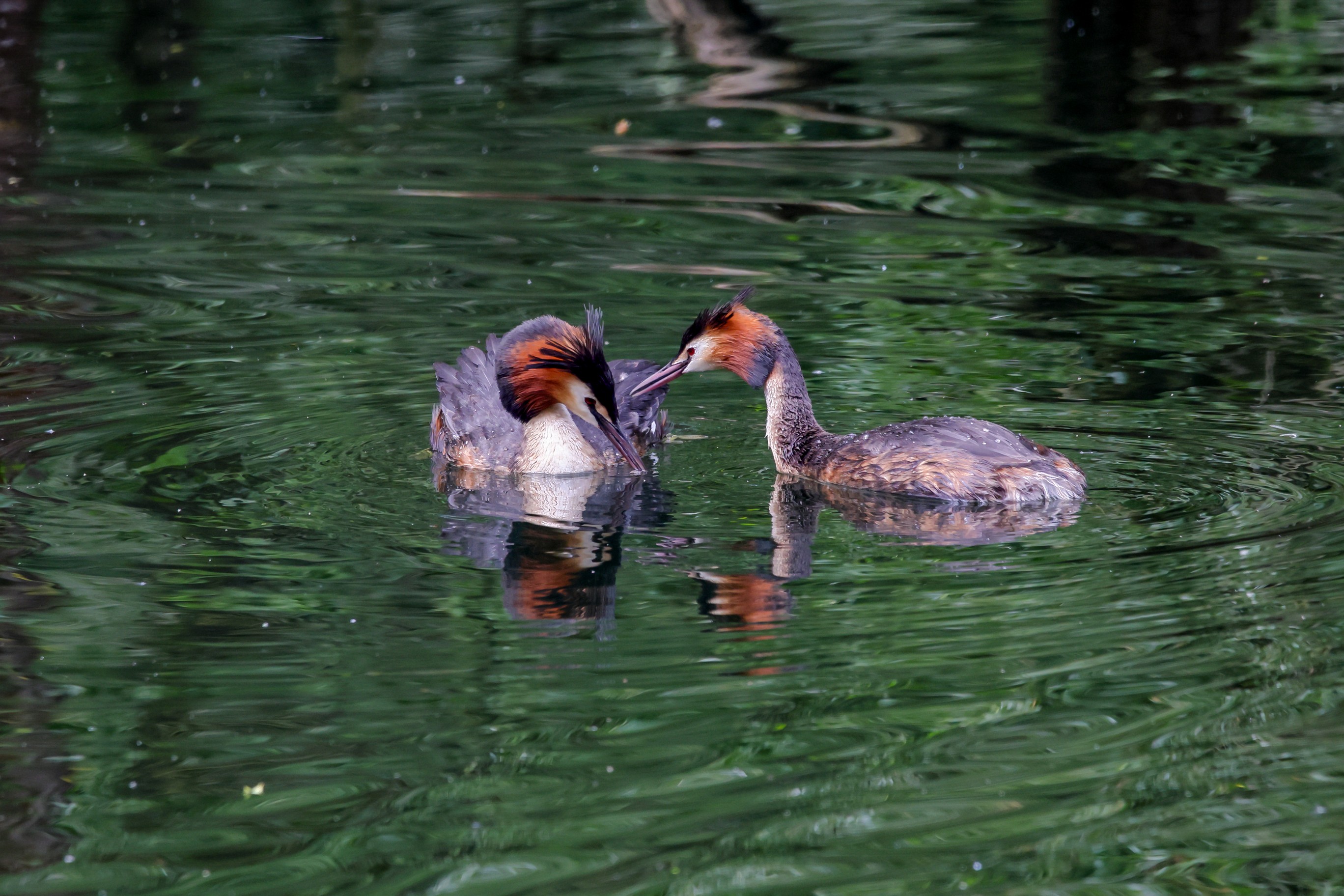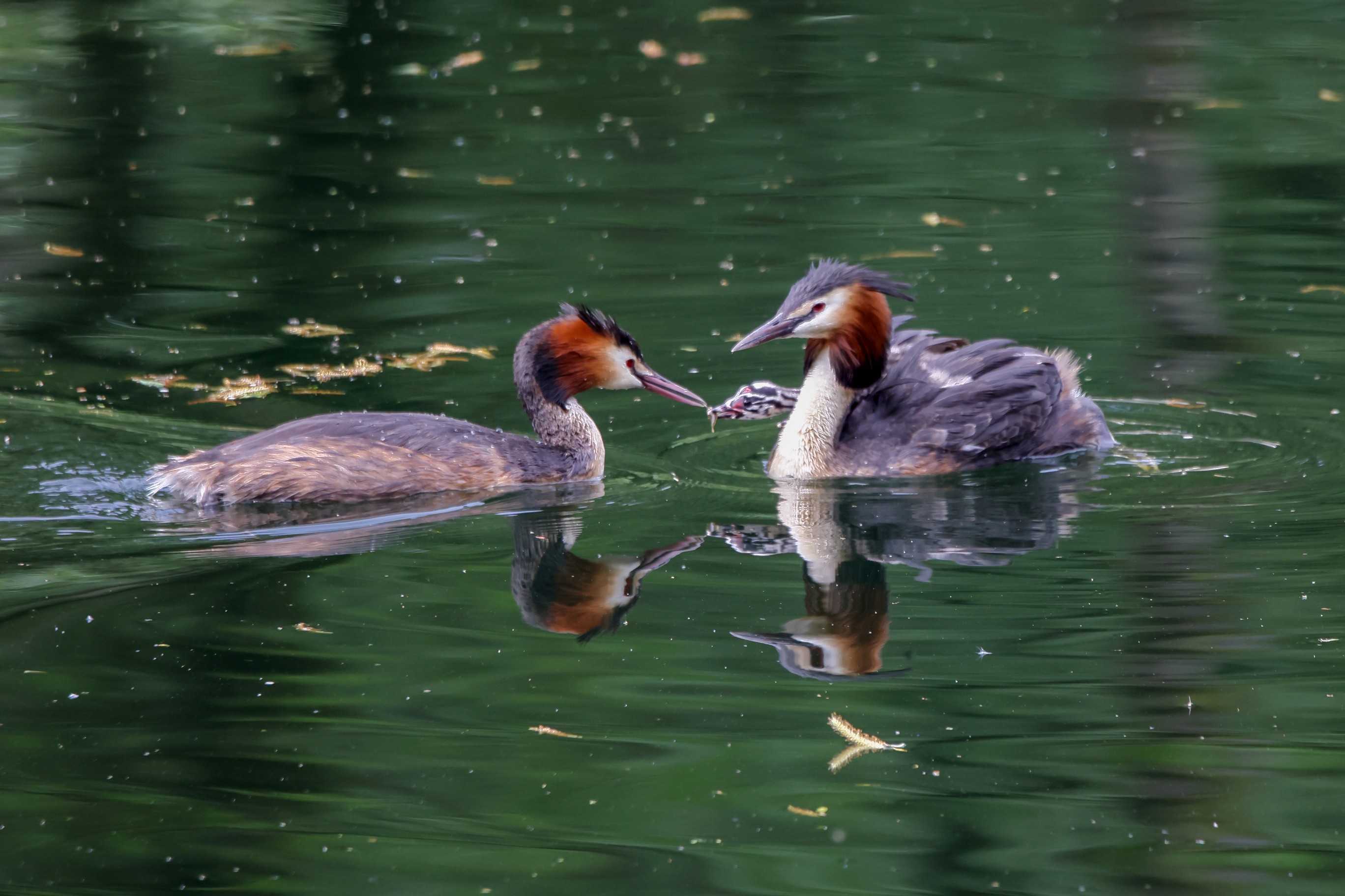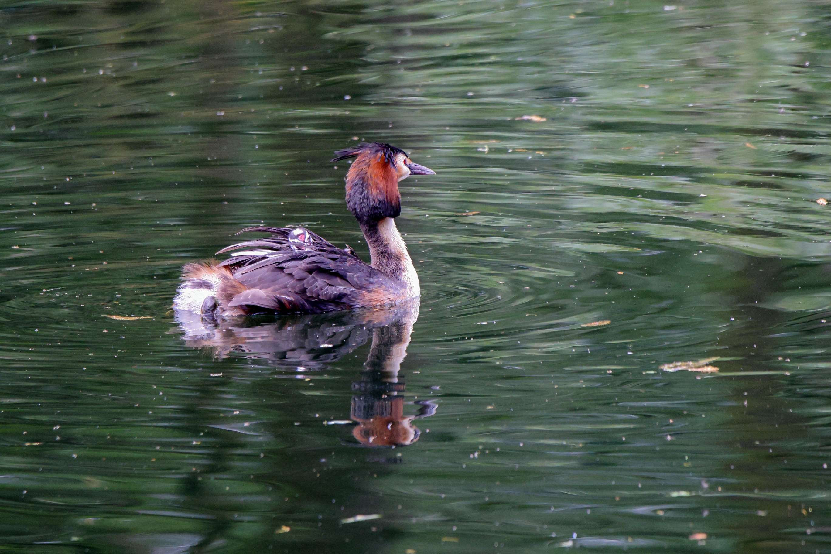 Die Haubentaucher präsentieren ihren Nachwuchs