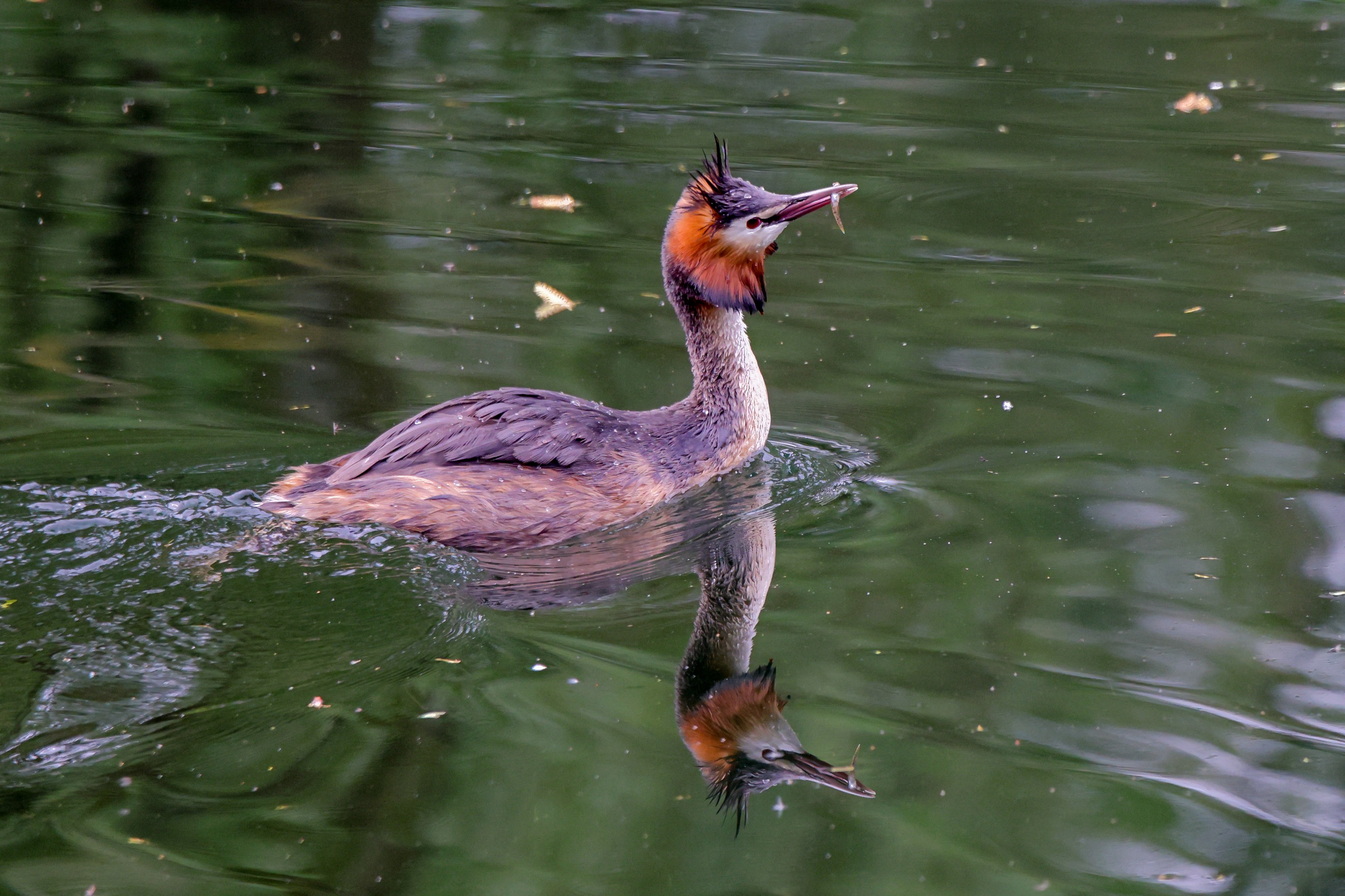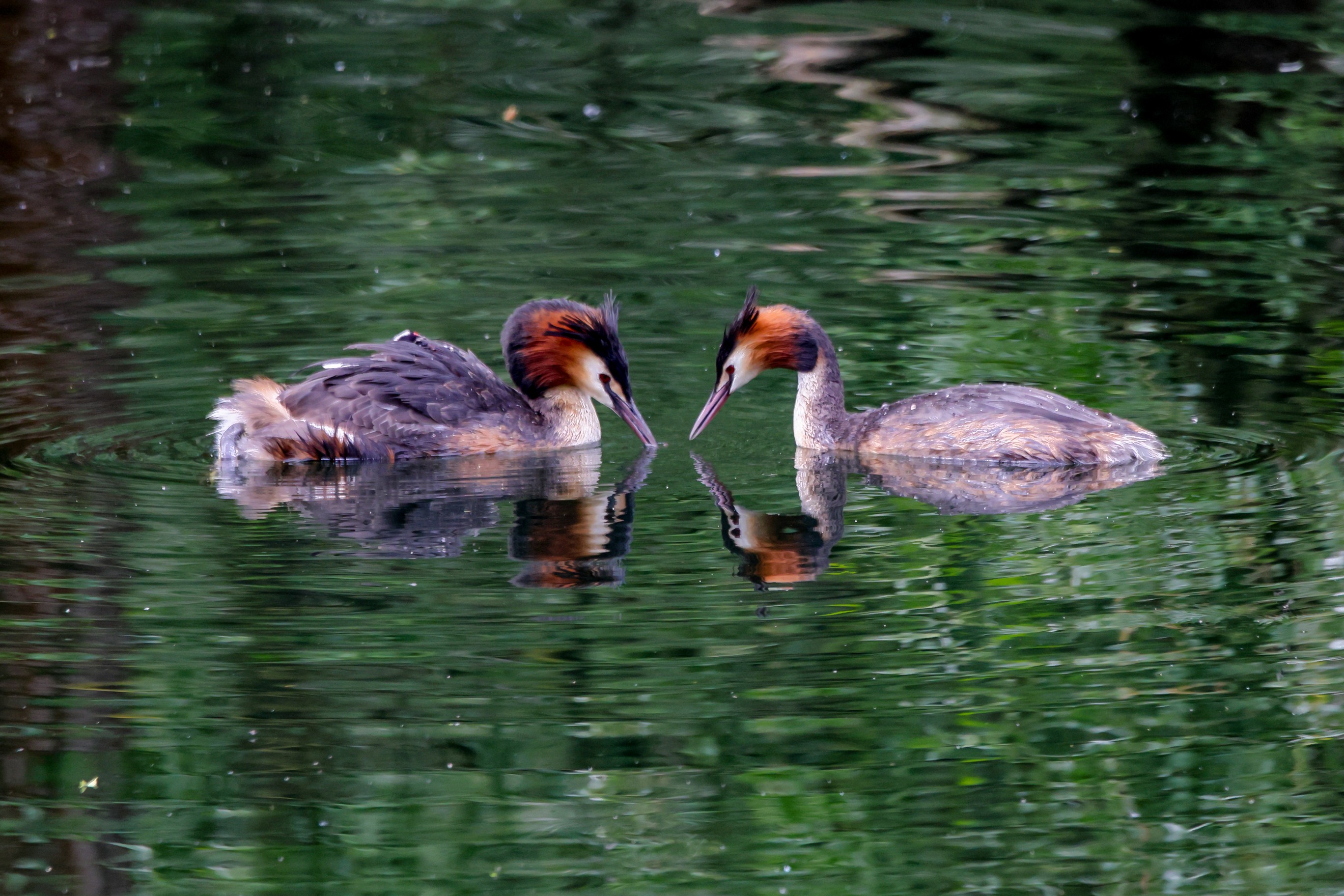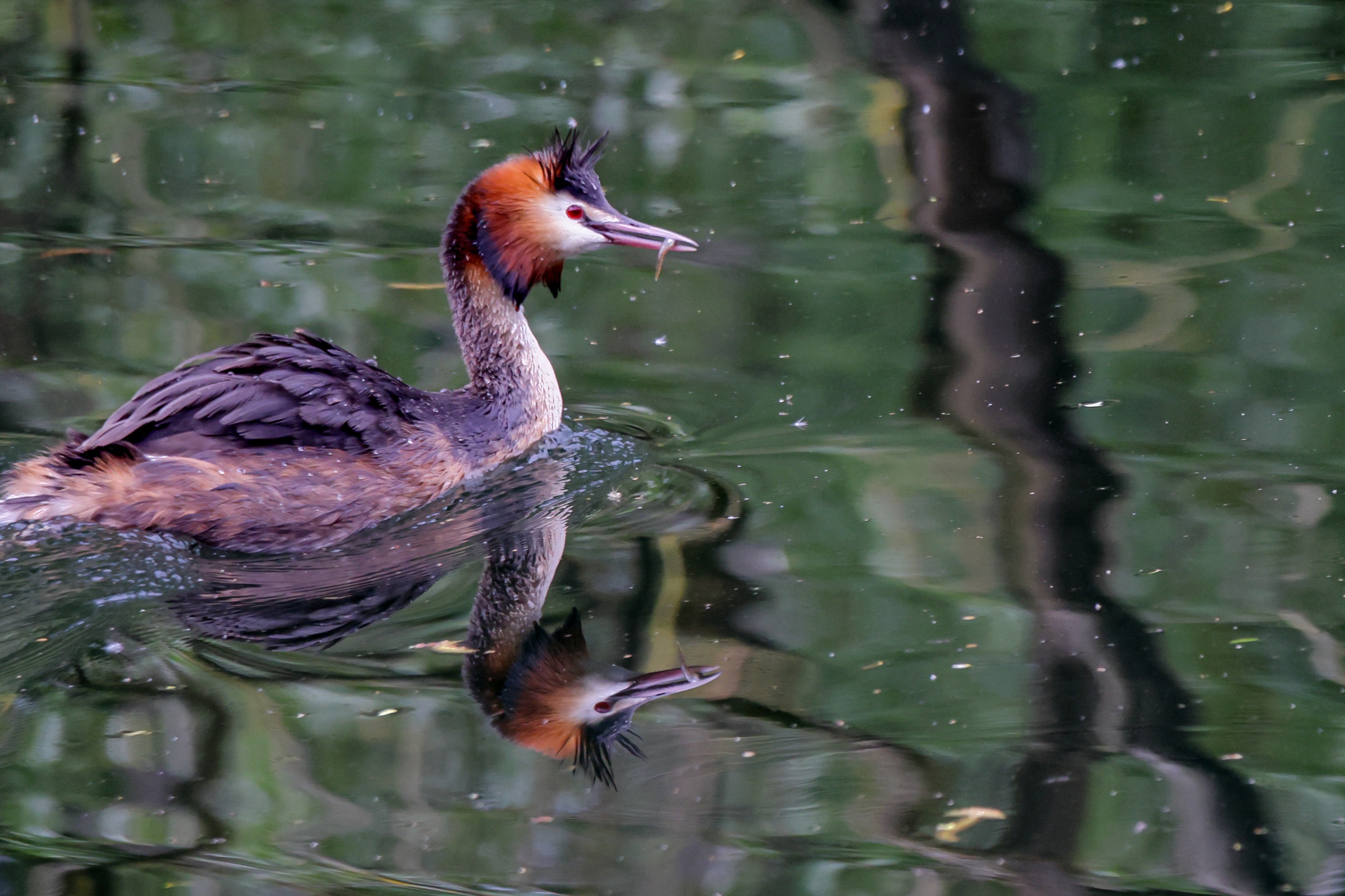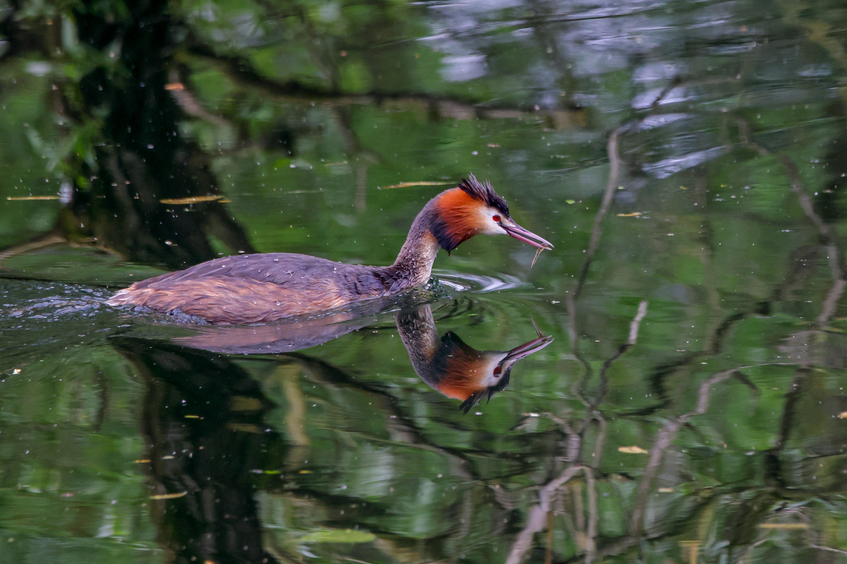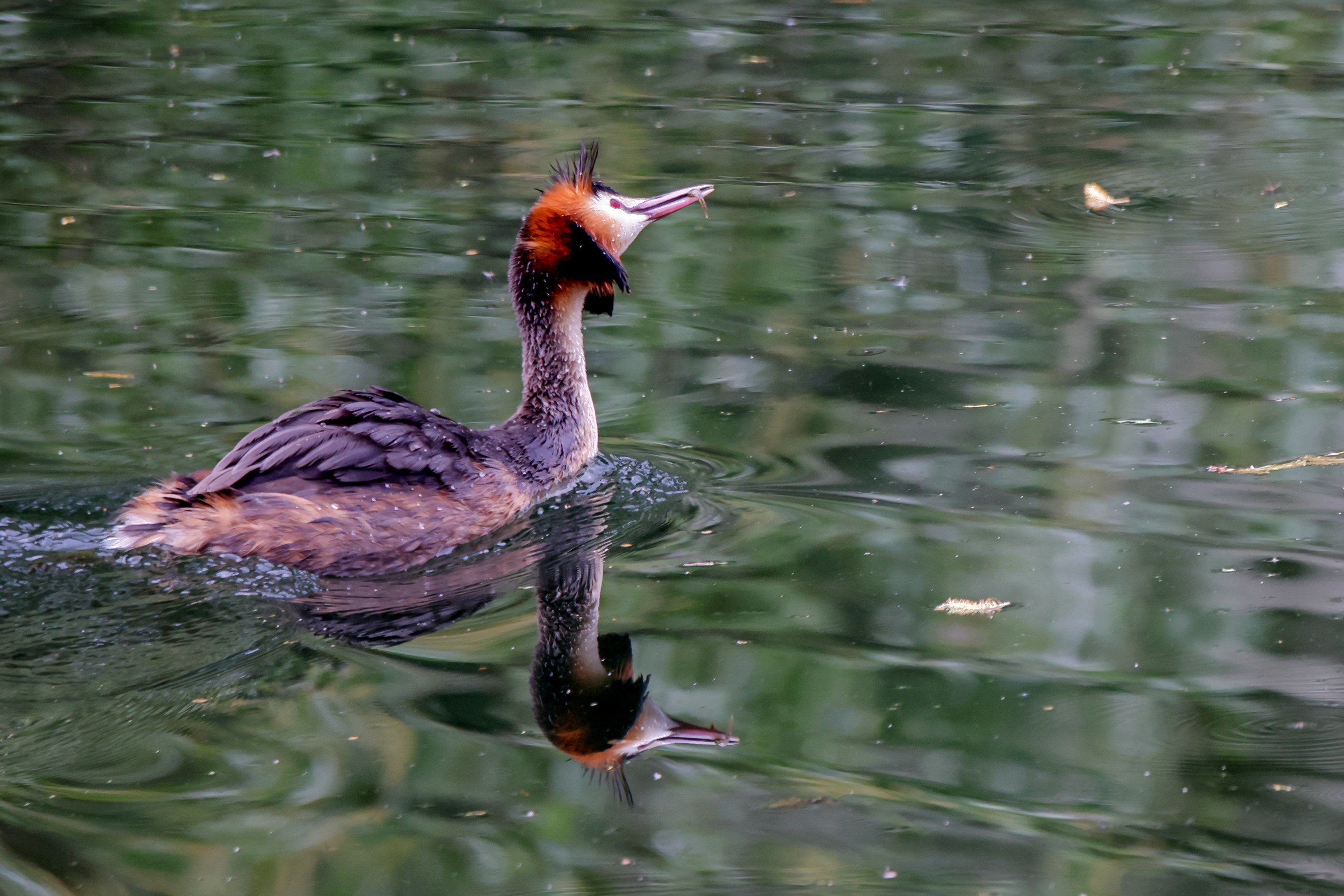 Die Haubentaucher präsentieren ihren Nachwuchs