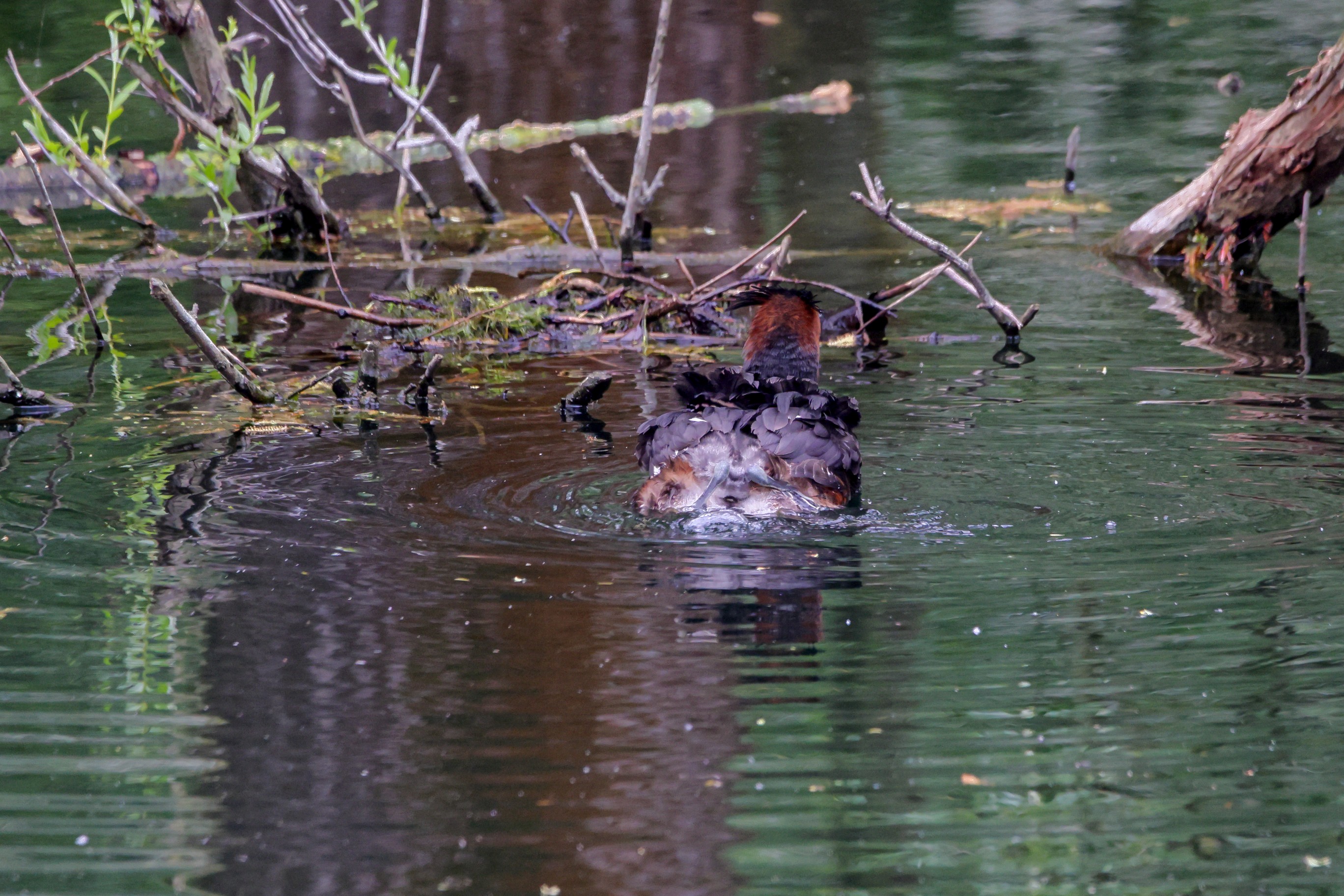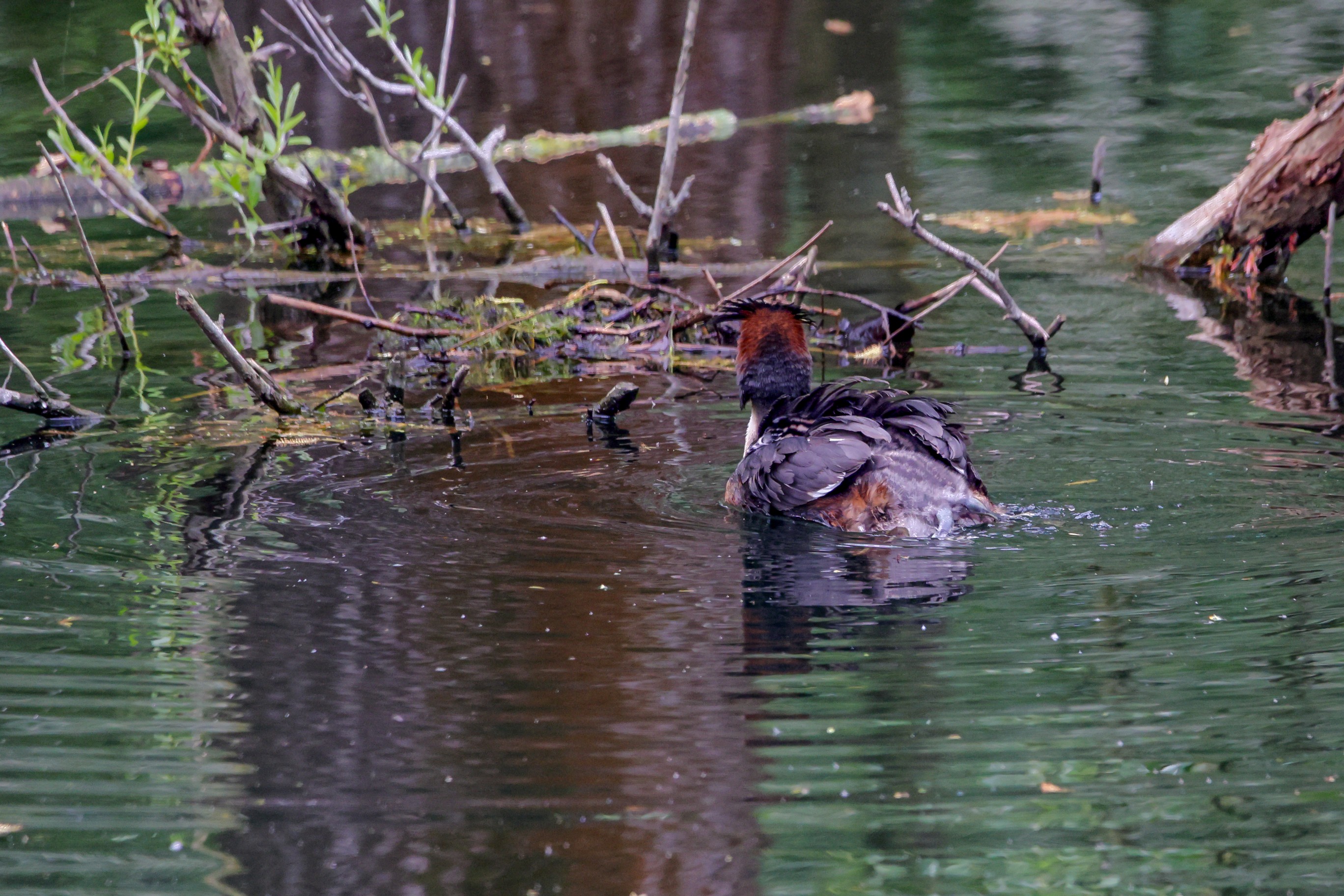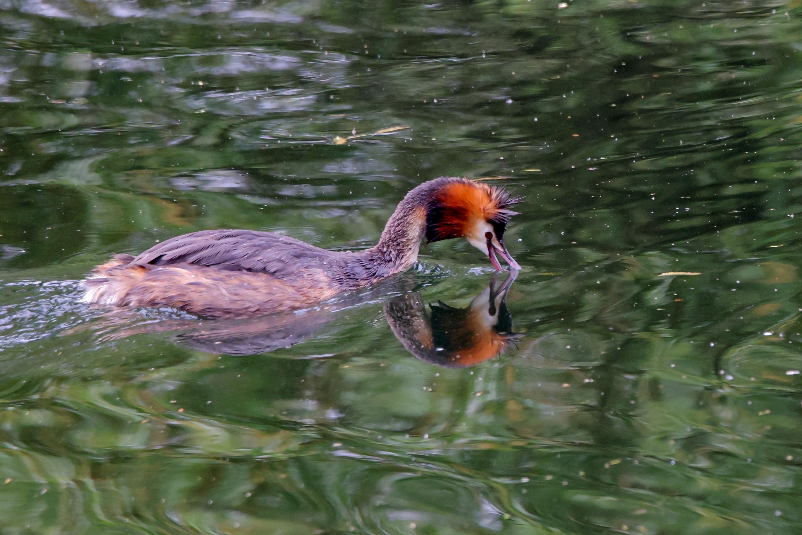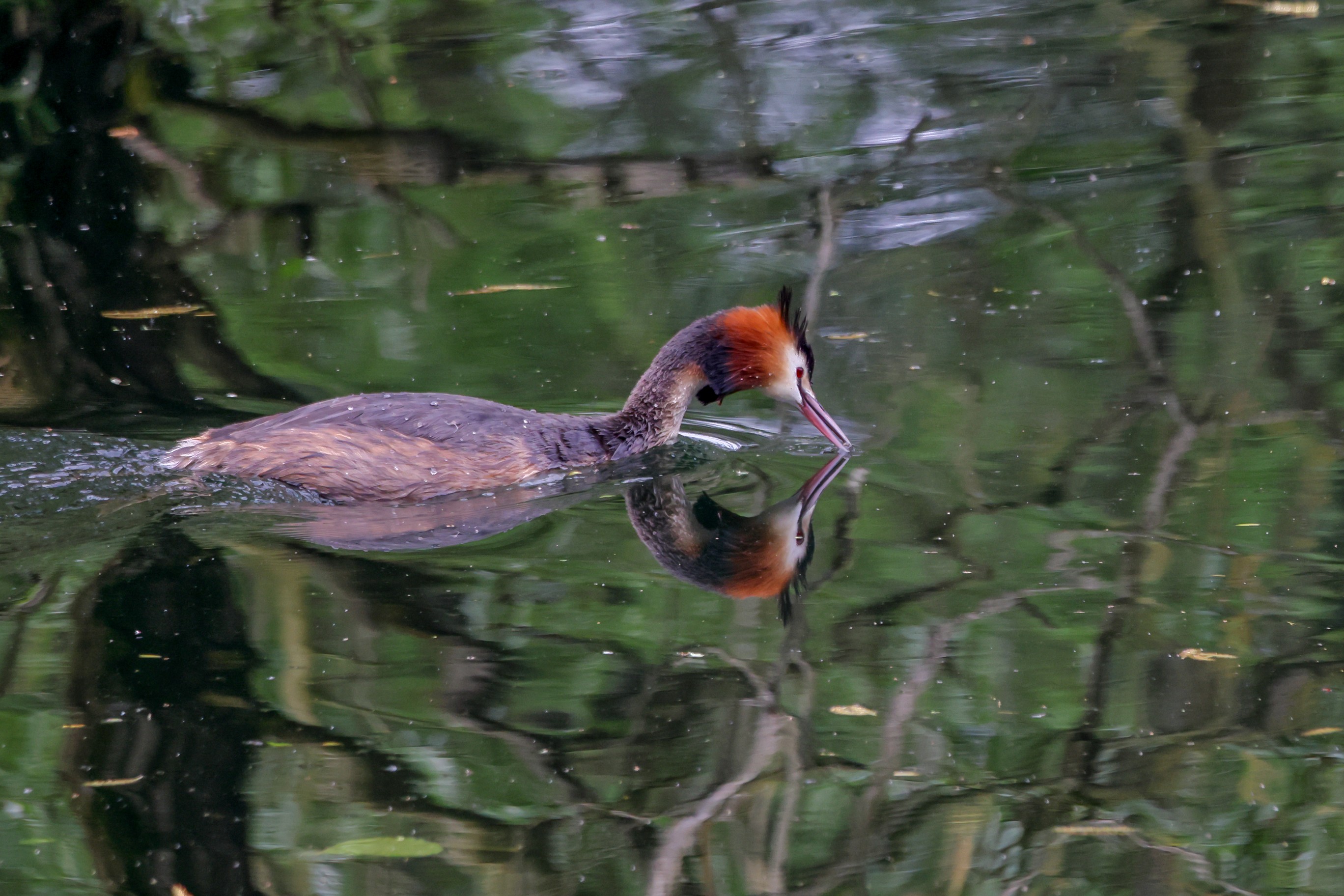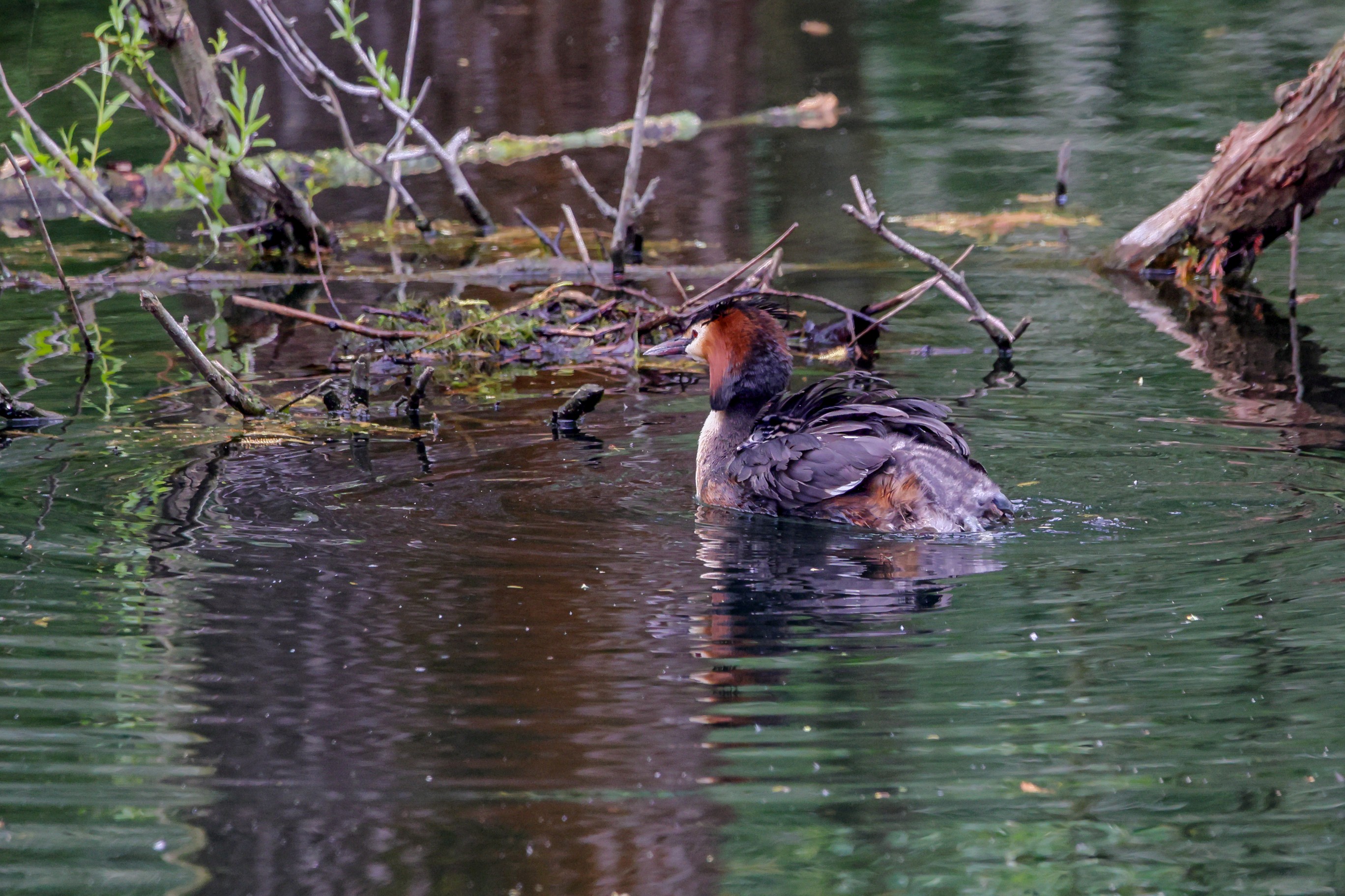 Die Haubentaucher präsentieren ihren Nachwuchs