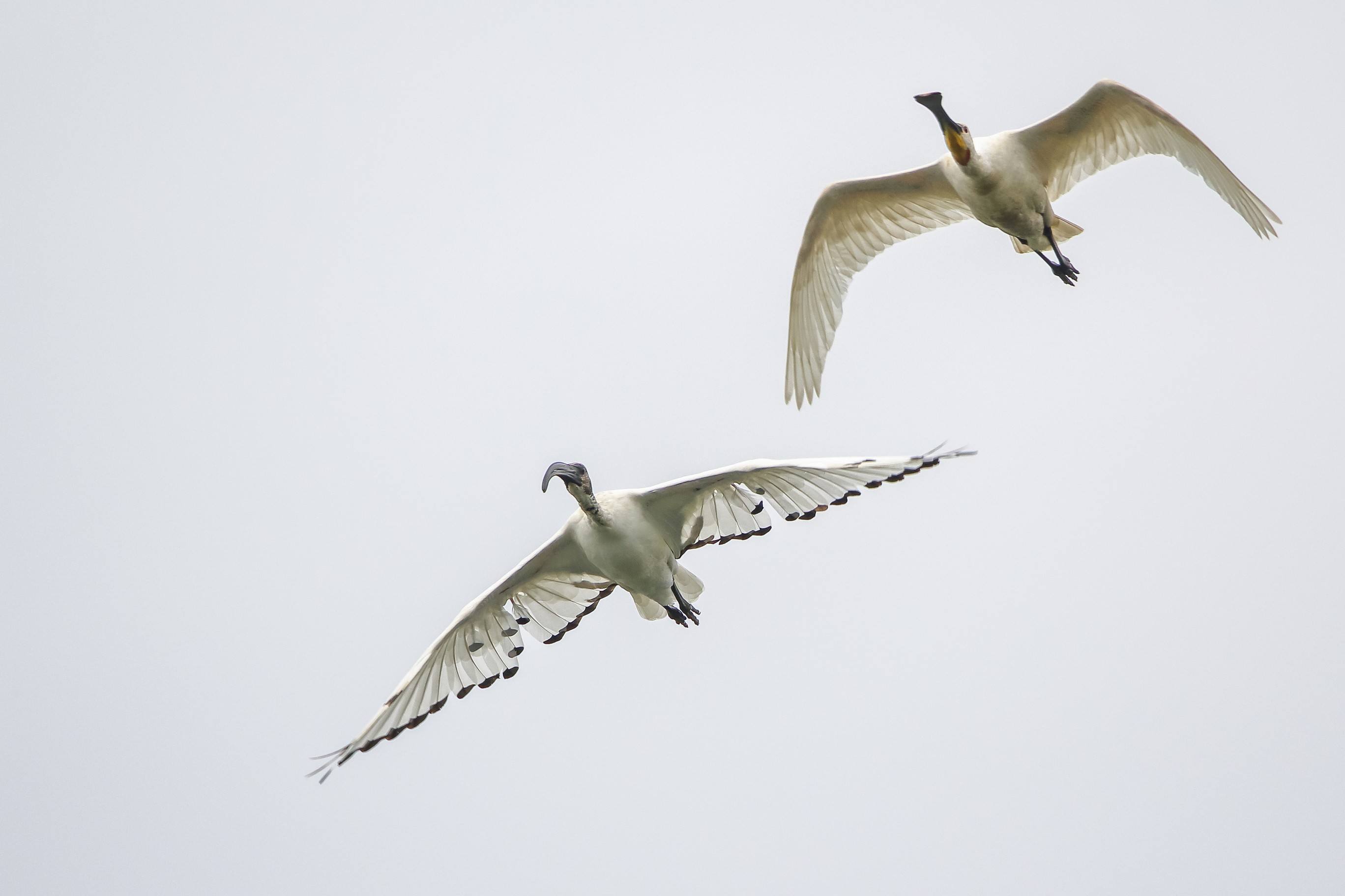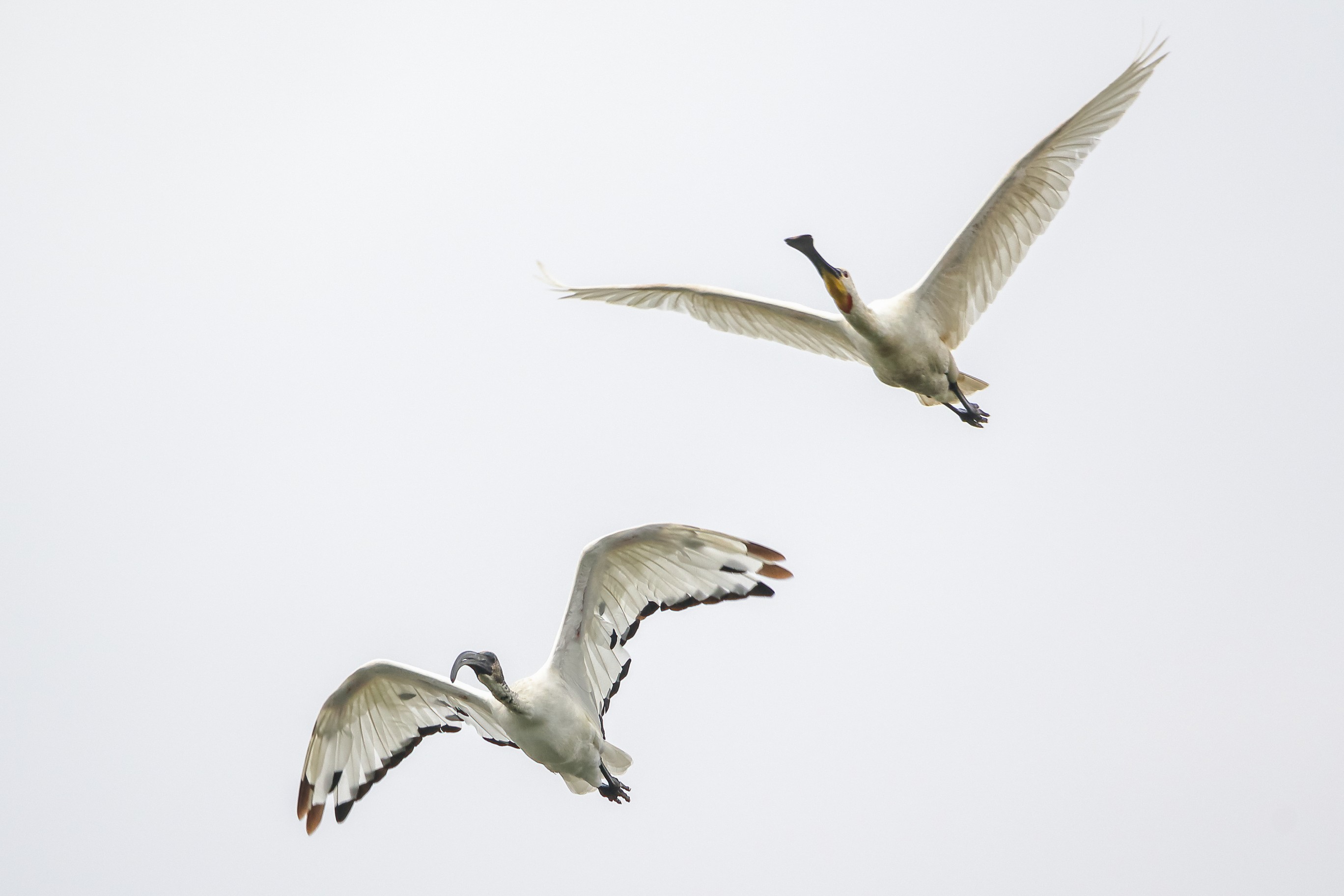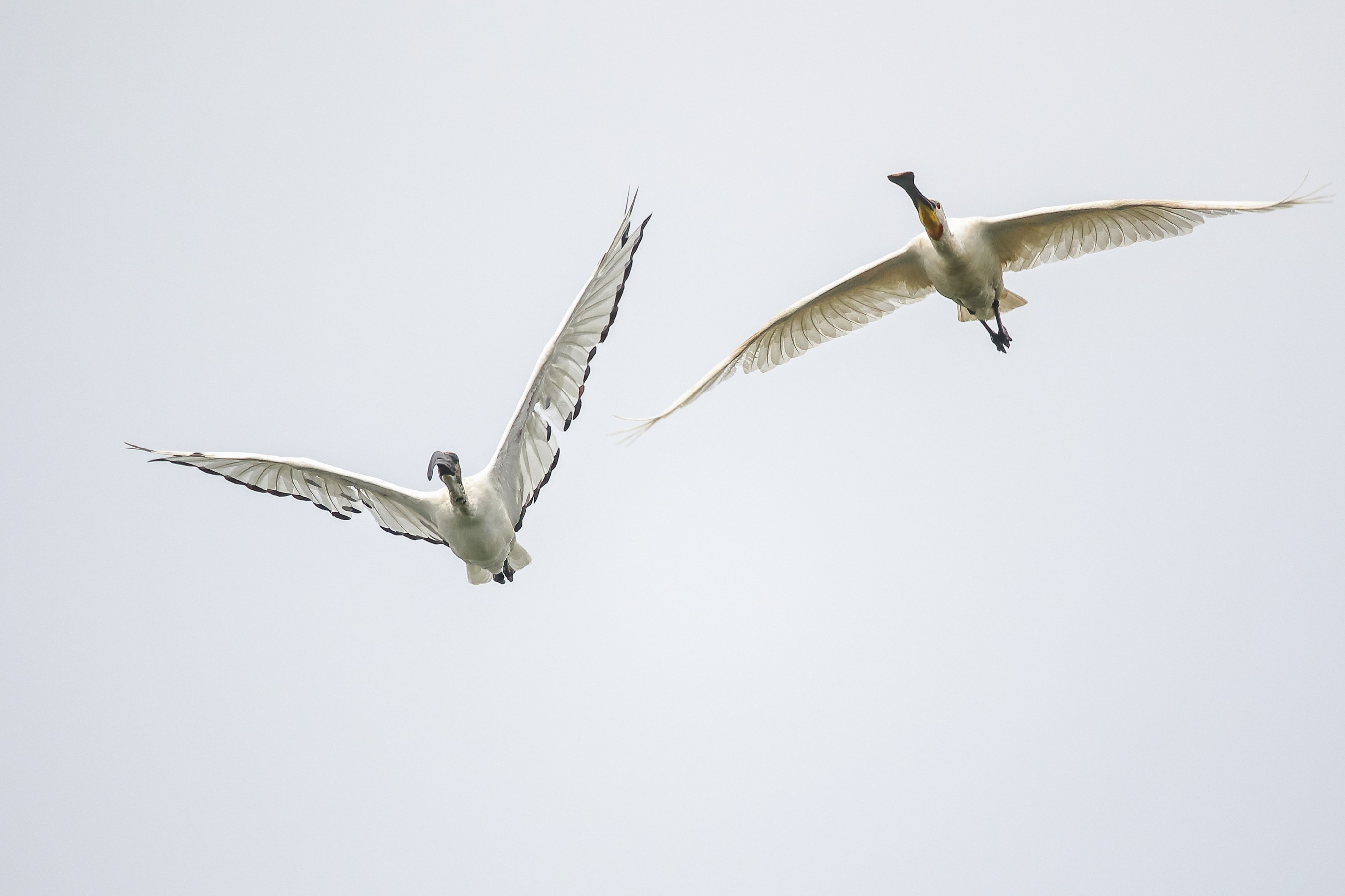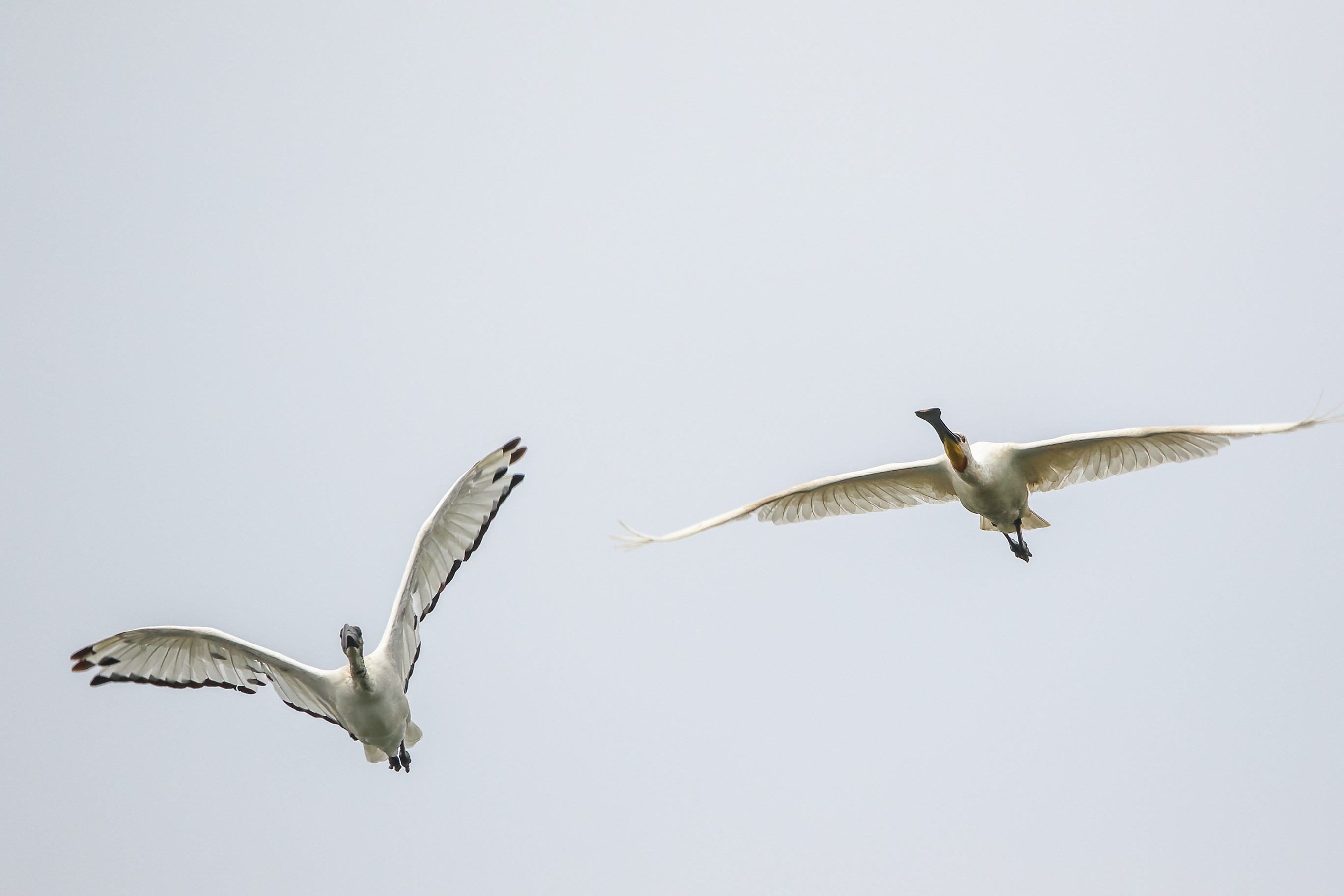 Abendlicher Rundflug der jungen Löffler