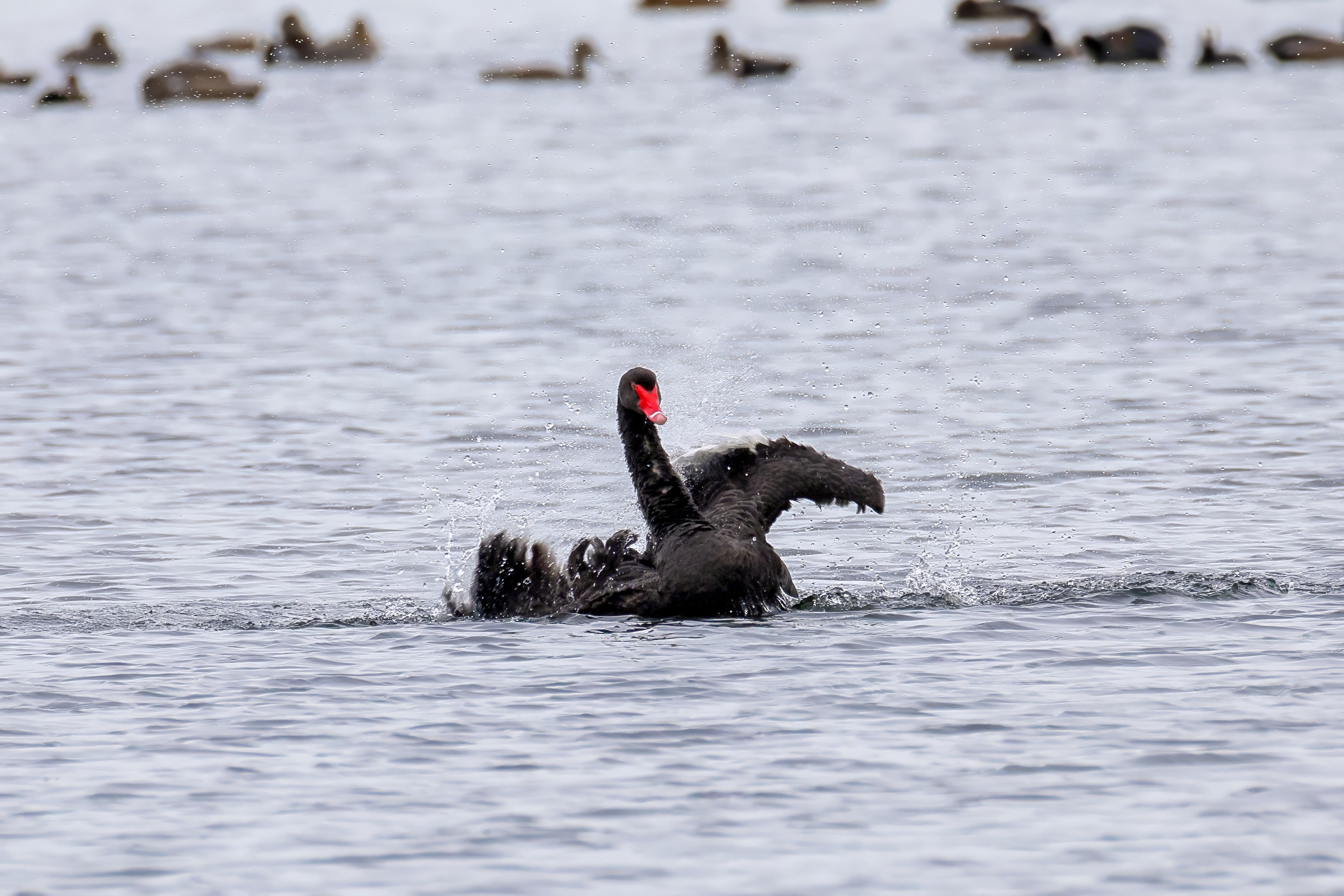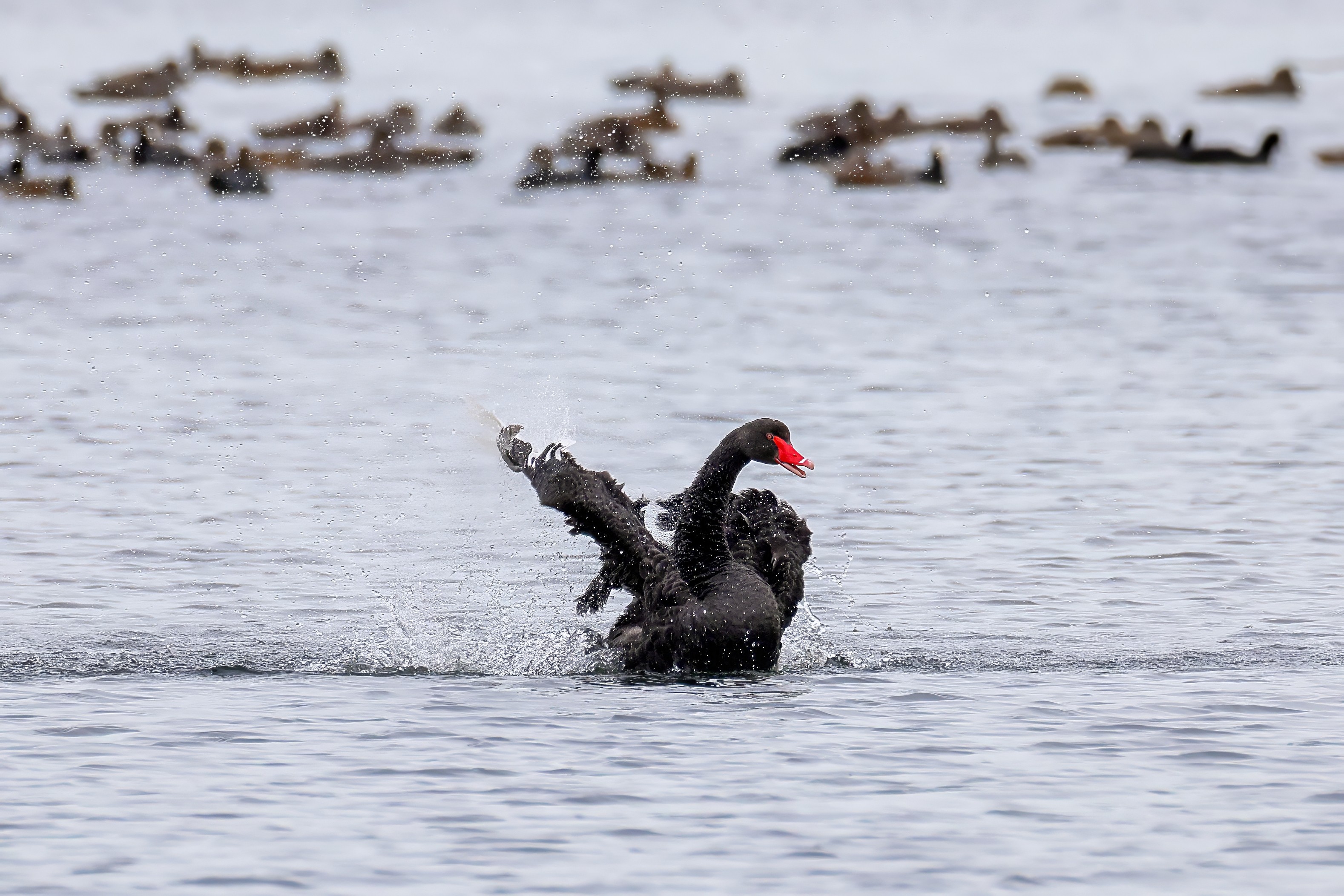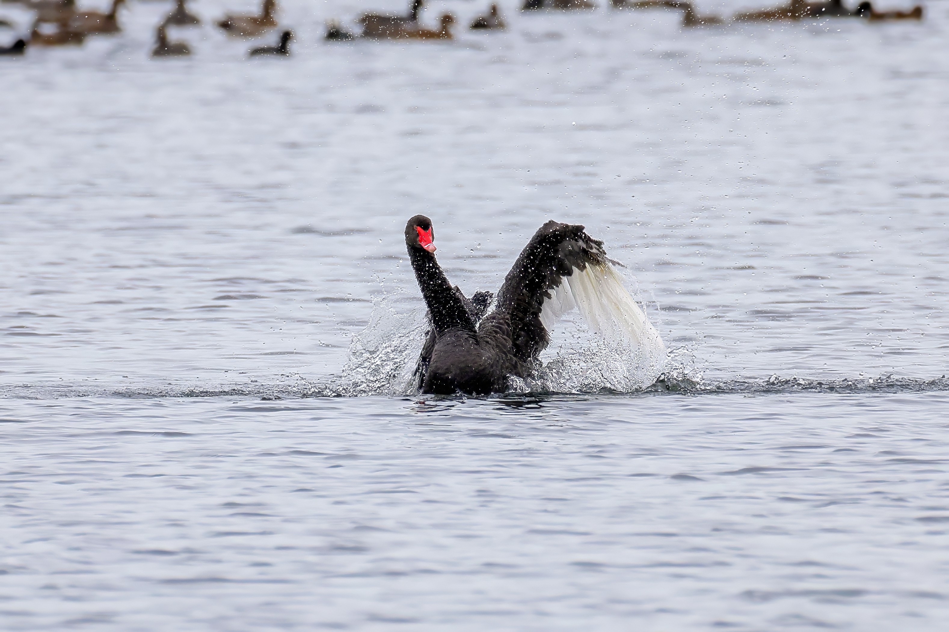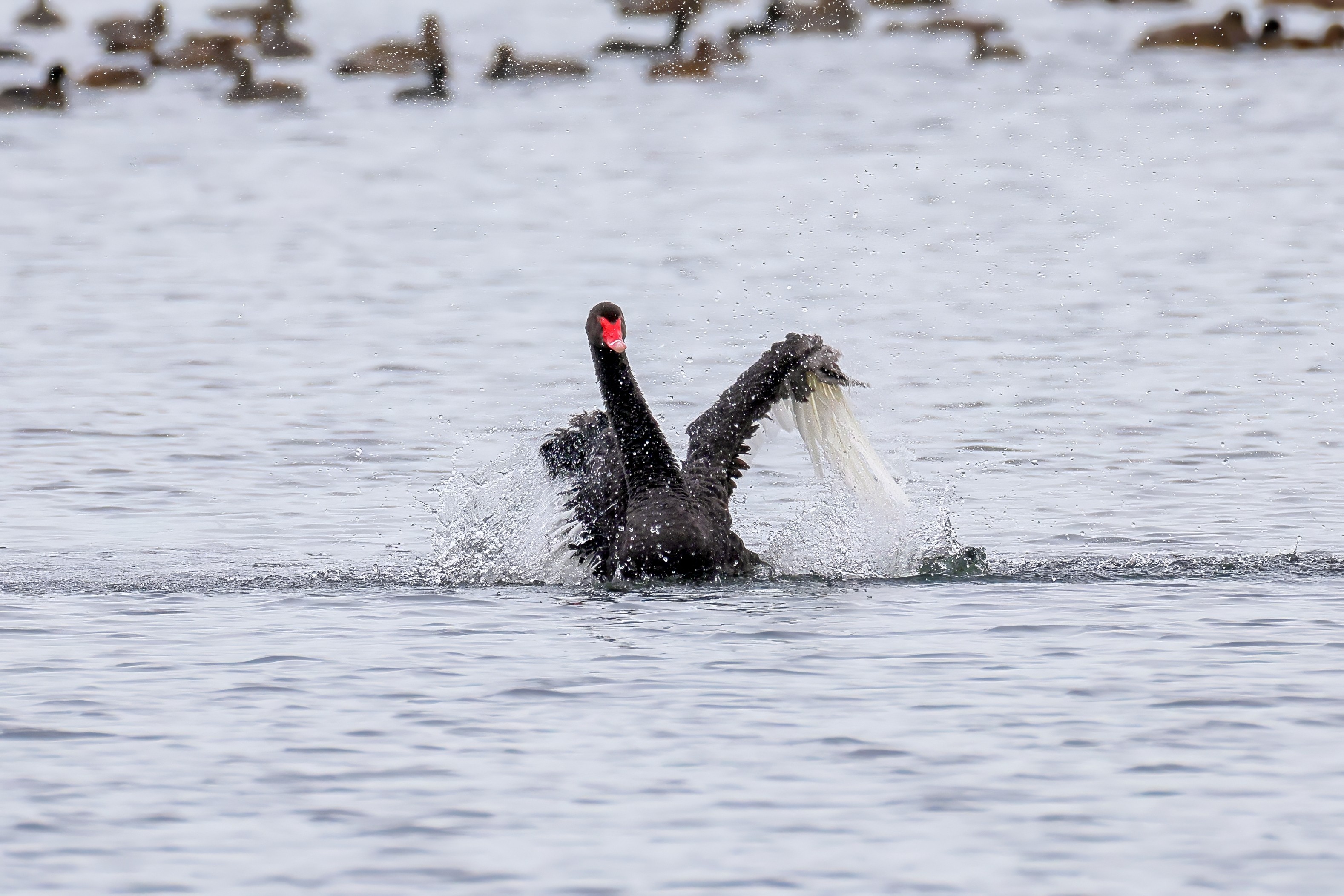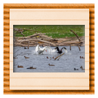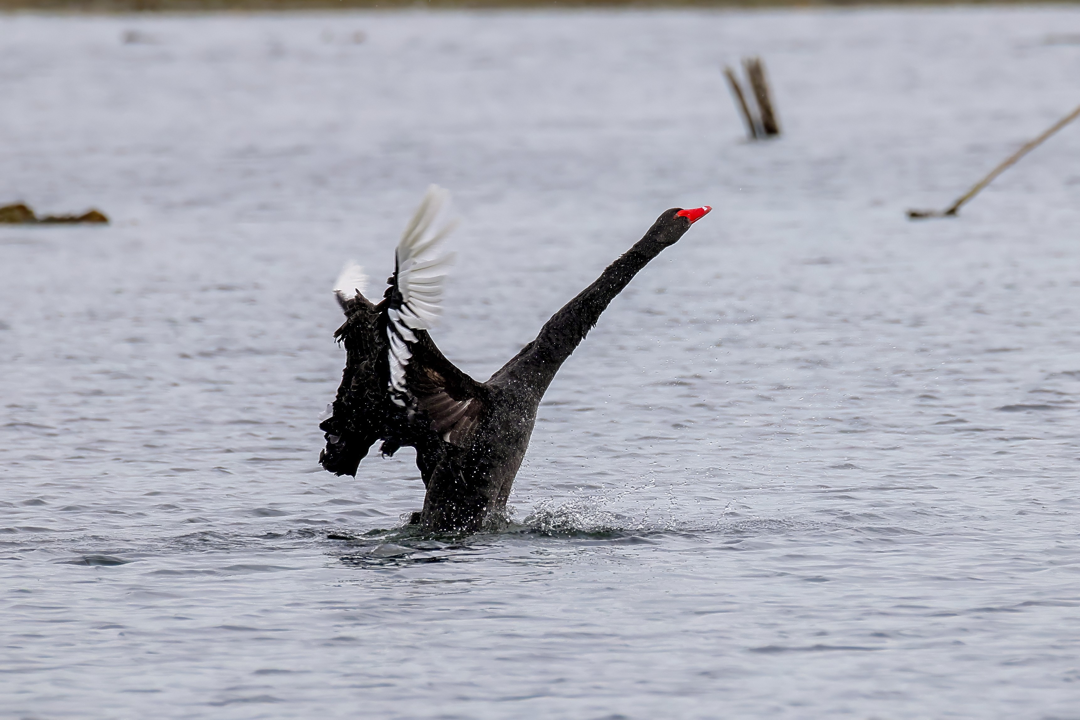 Höckerschwan vertreibt Trauerschwan - Rheingold Natur- und Tierfotografie
