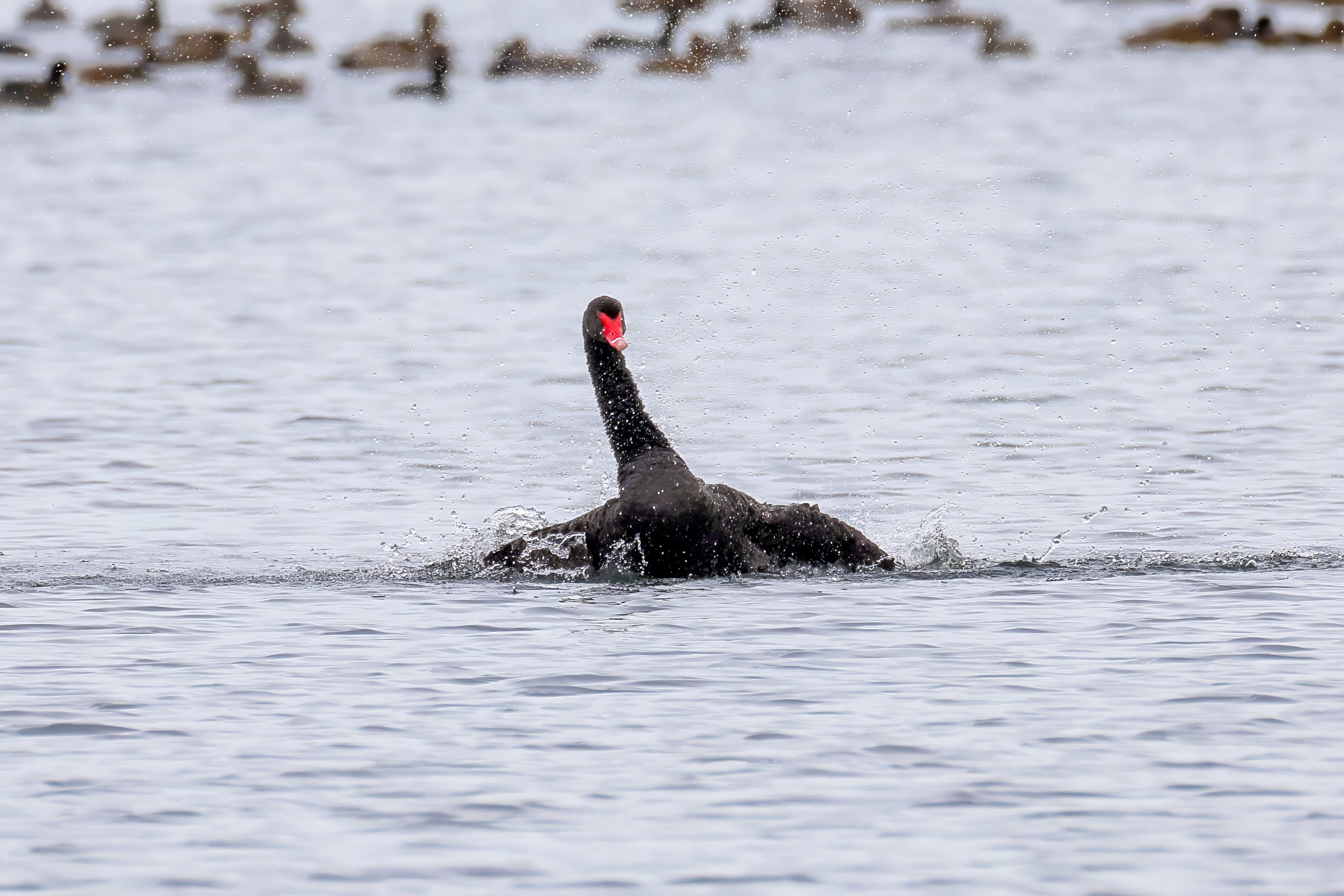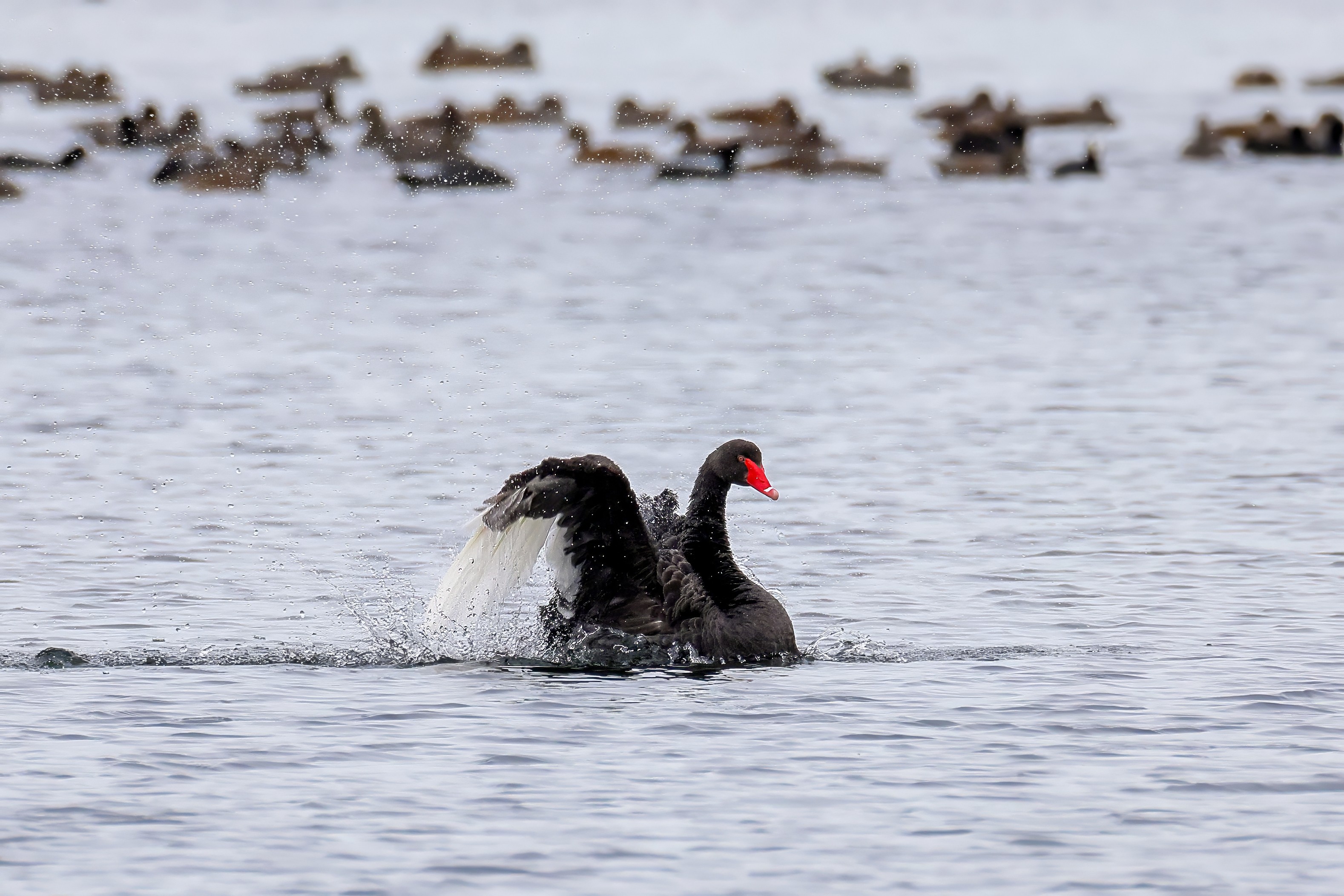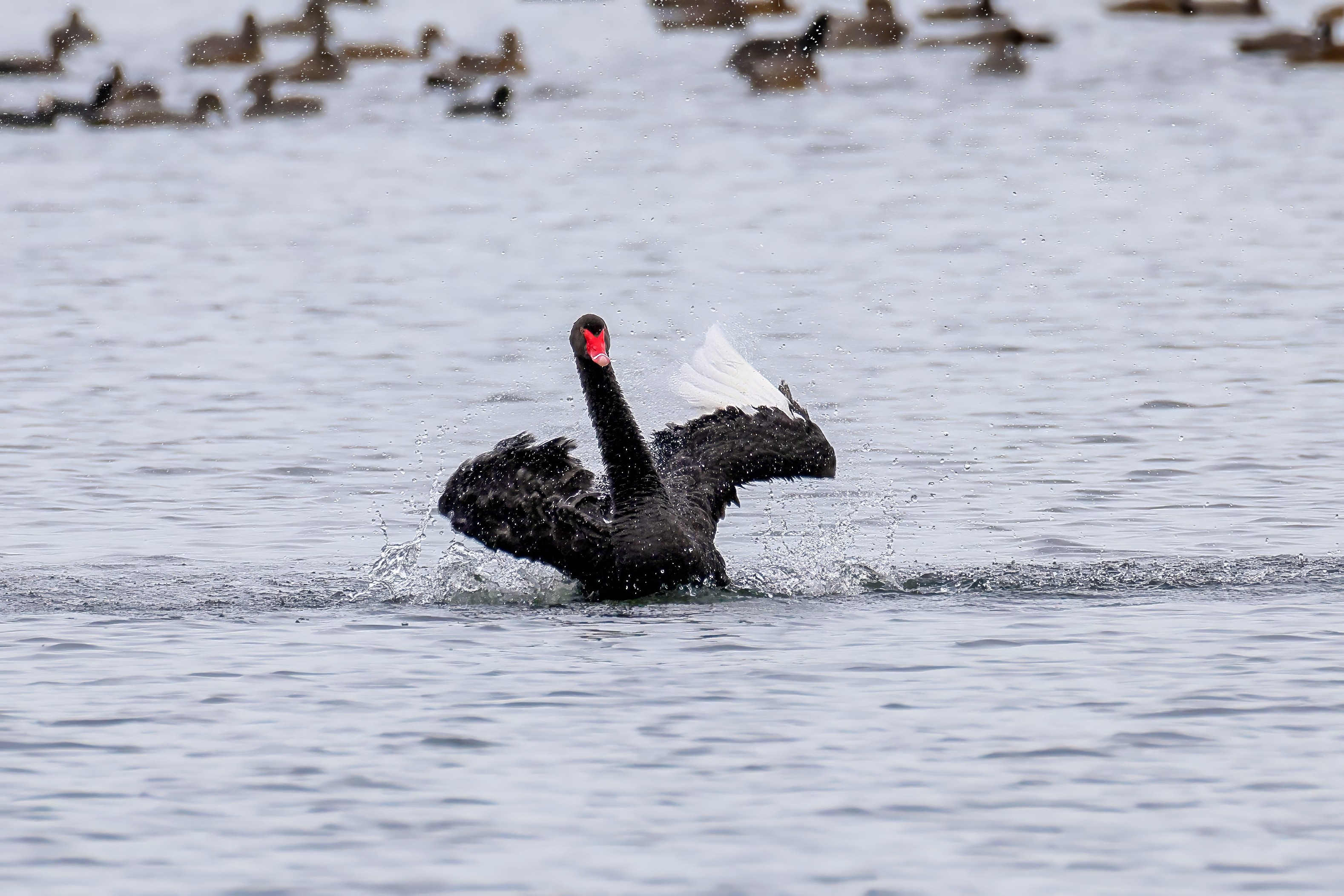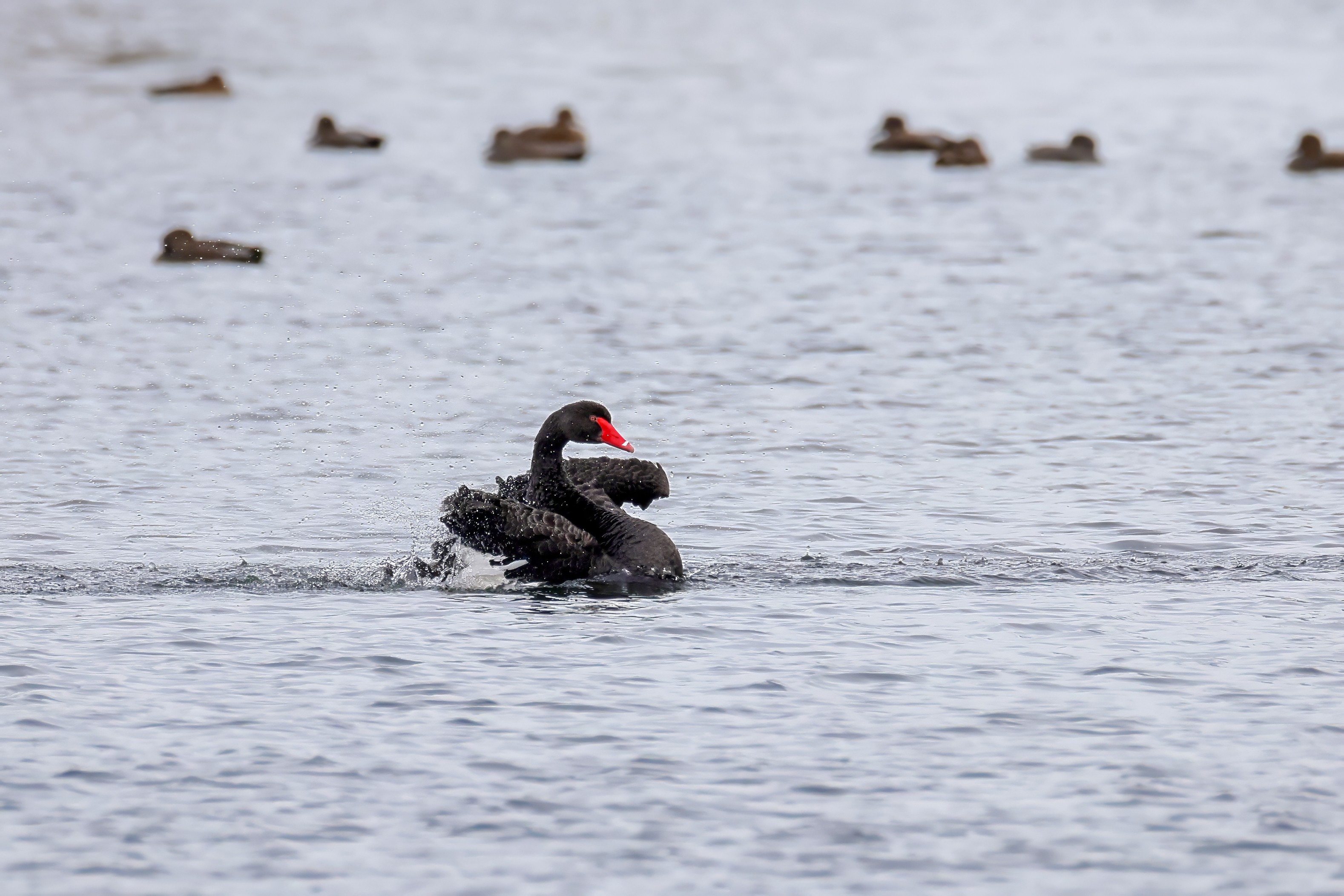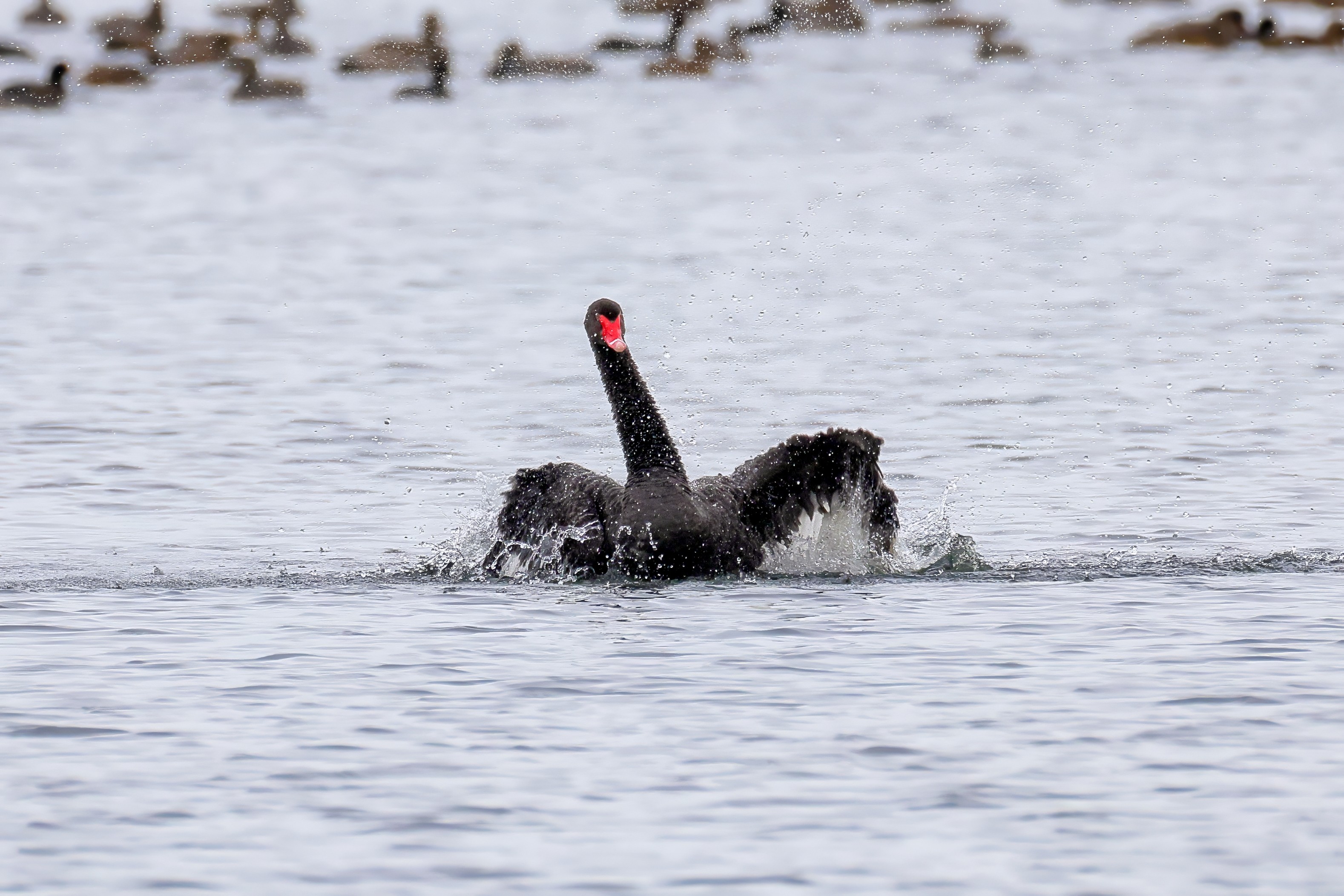Höckerschwan vertreibt Trauerschwan - Rheingold Natur- und Tierfotografie
