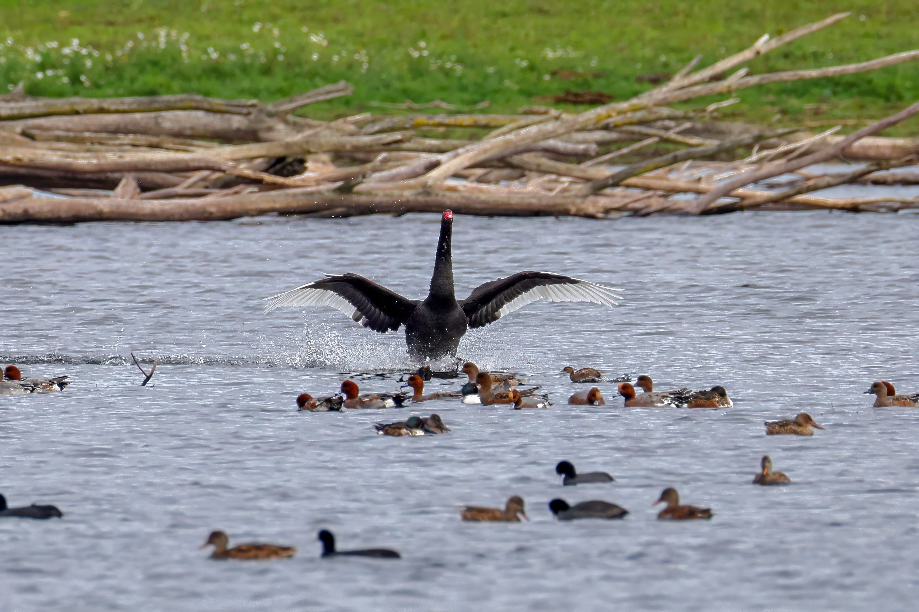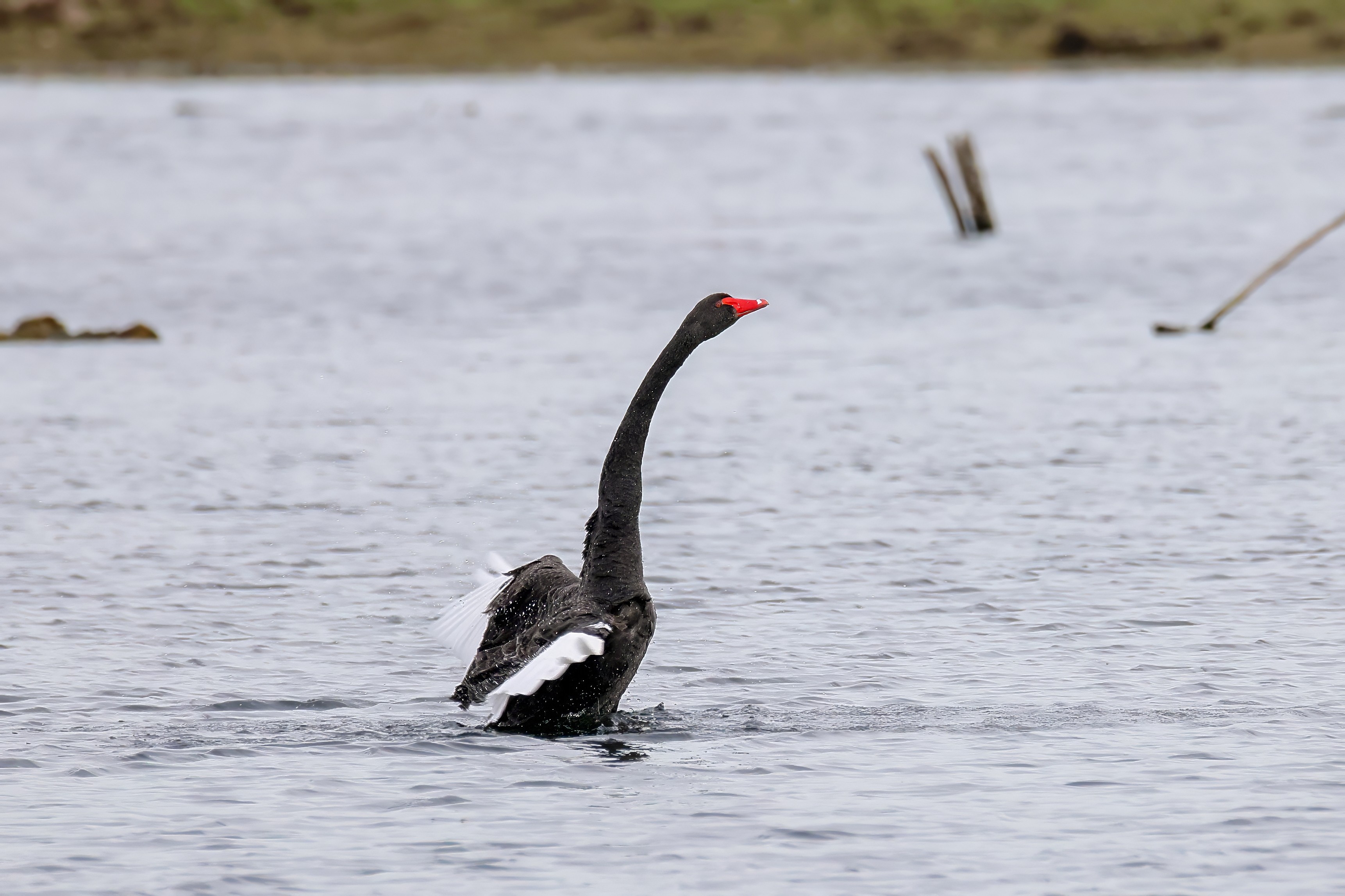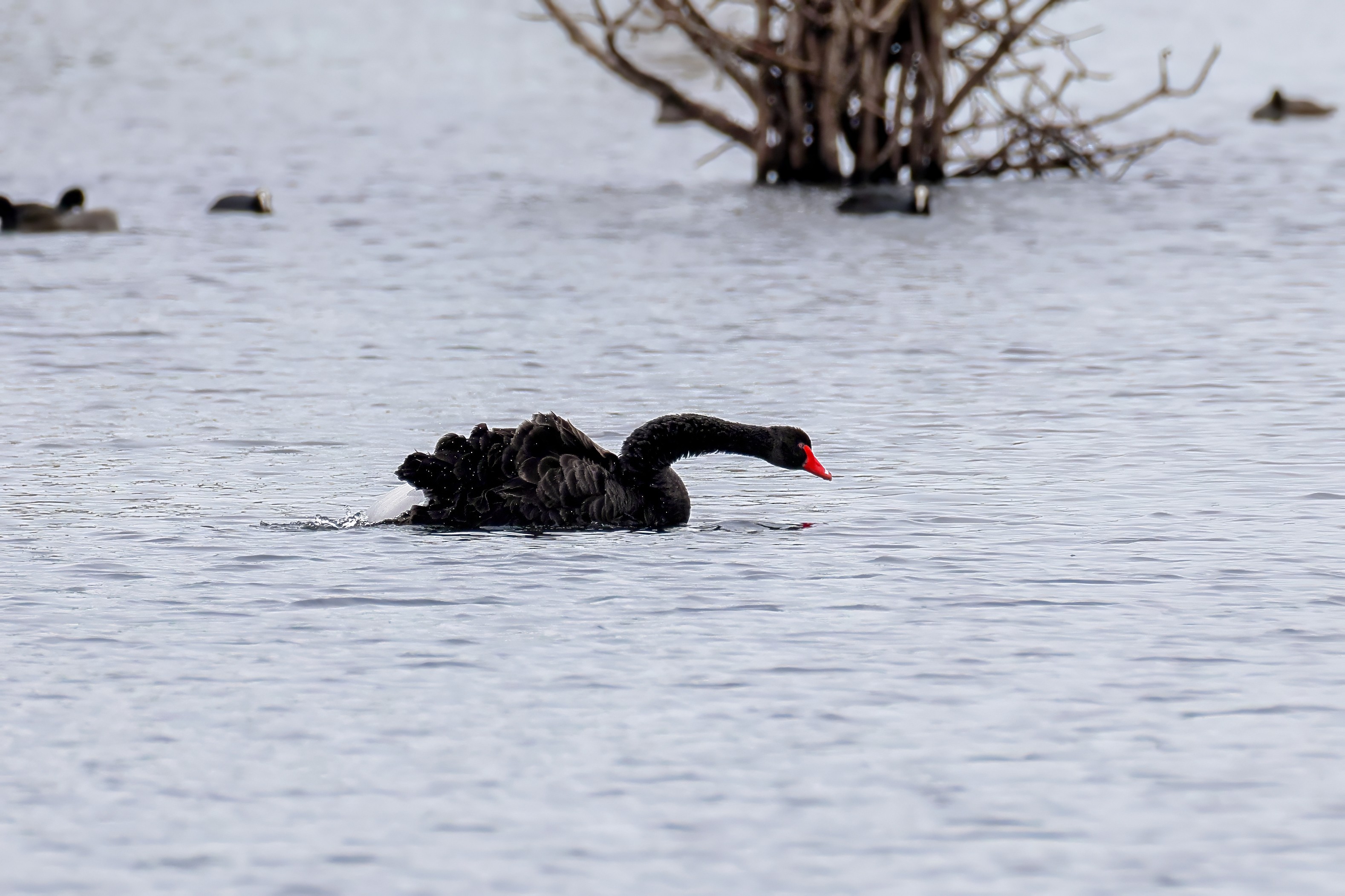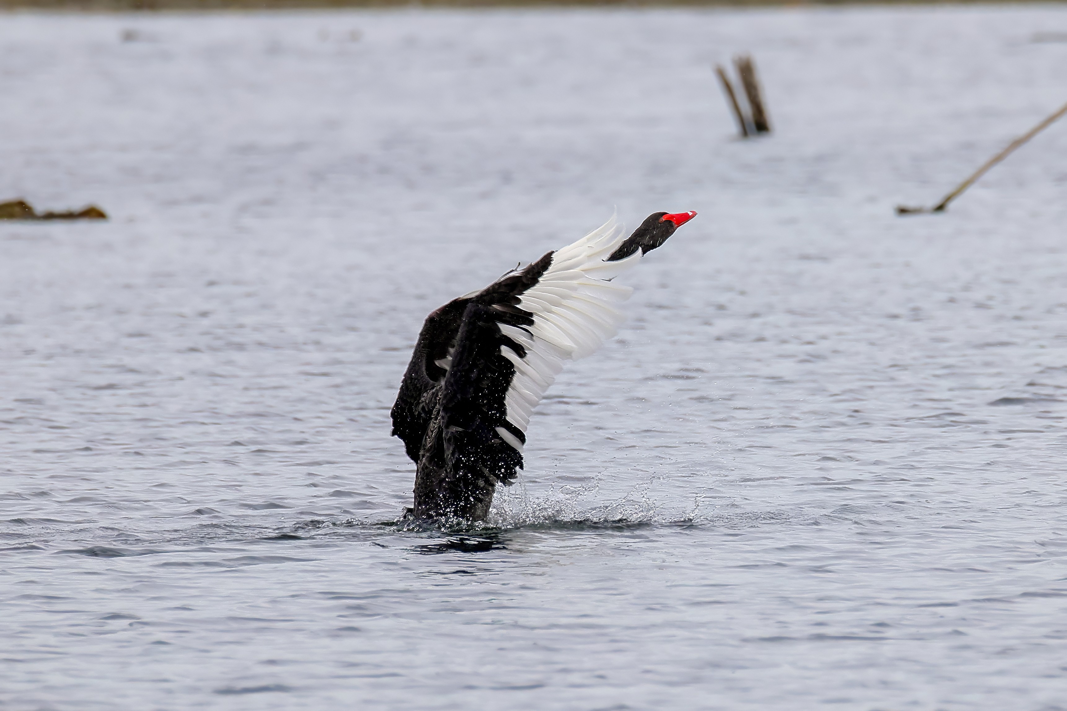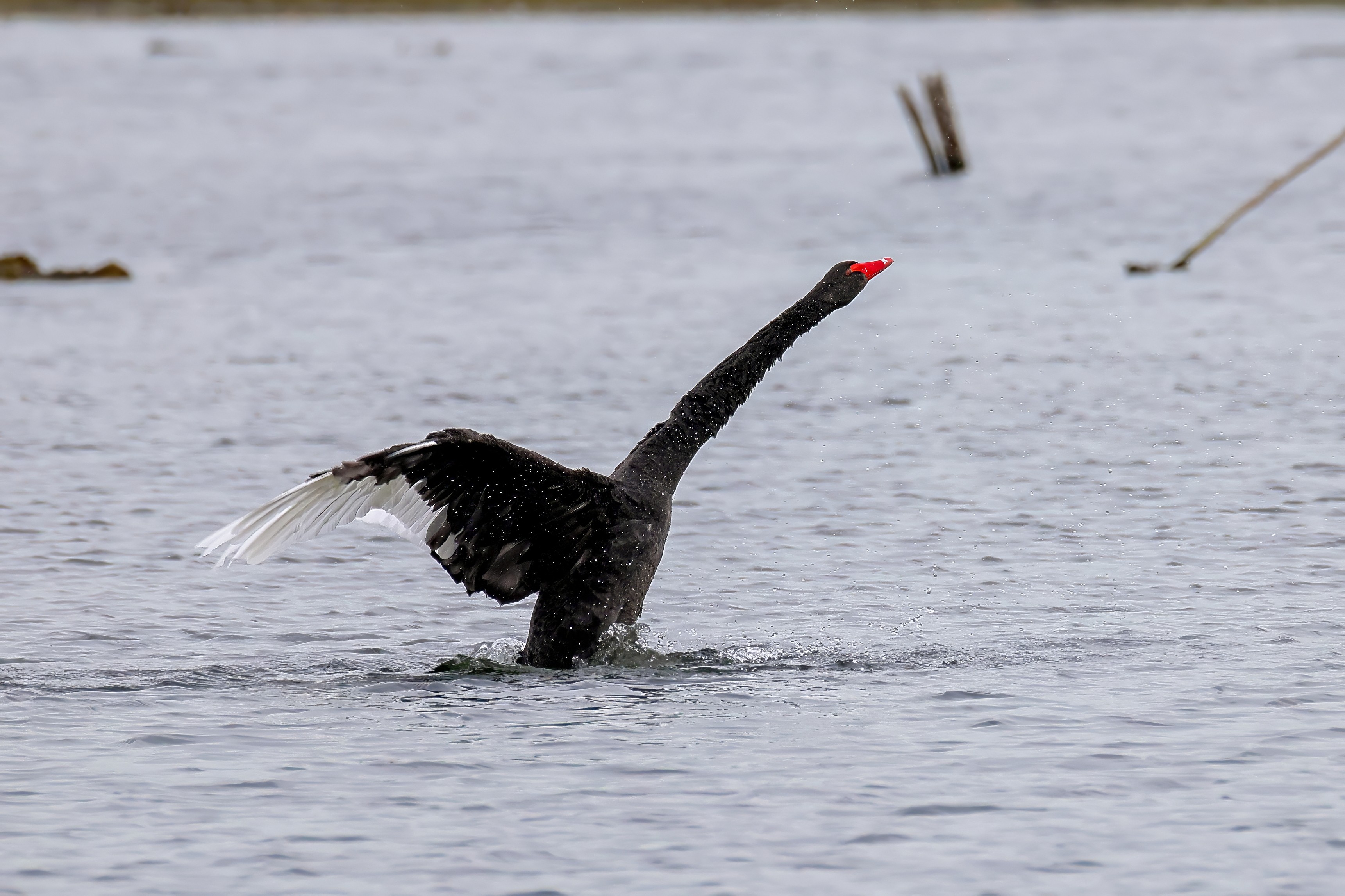 Höckerschwan vertreibt Trauerschwan - Rheingold Natur- und Tierfotografie