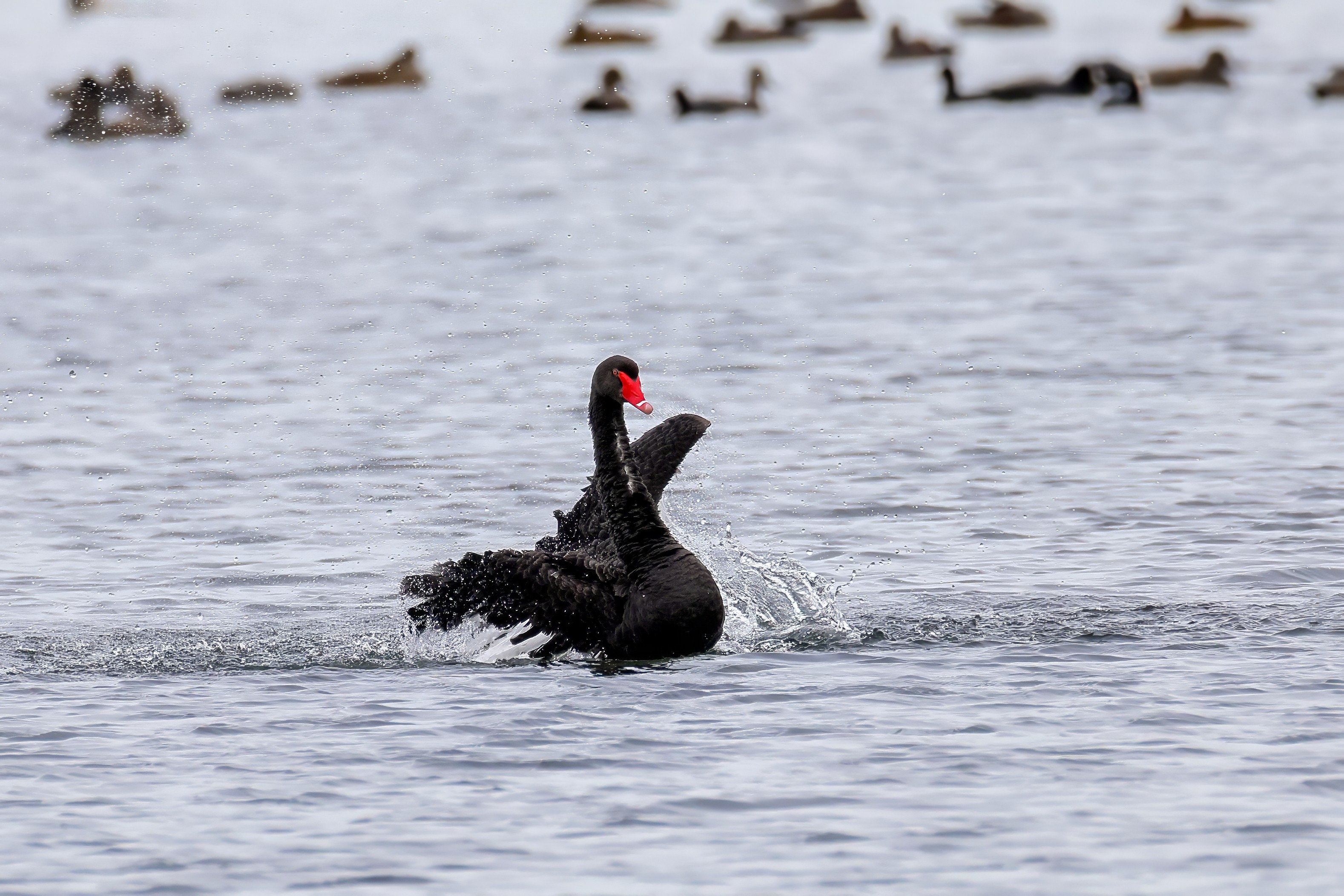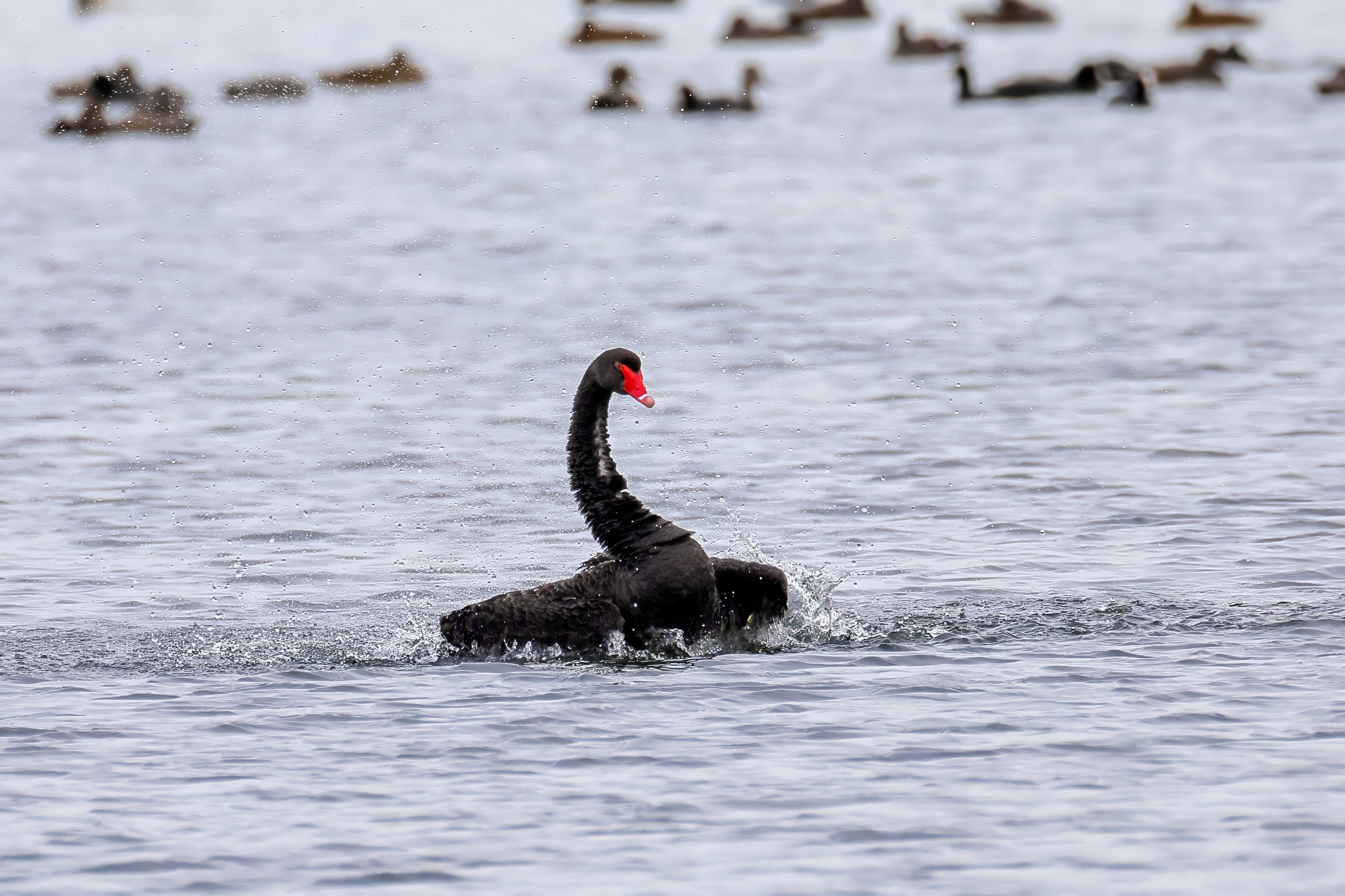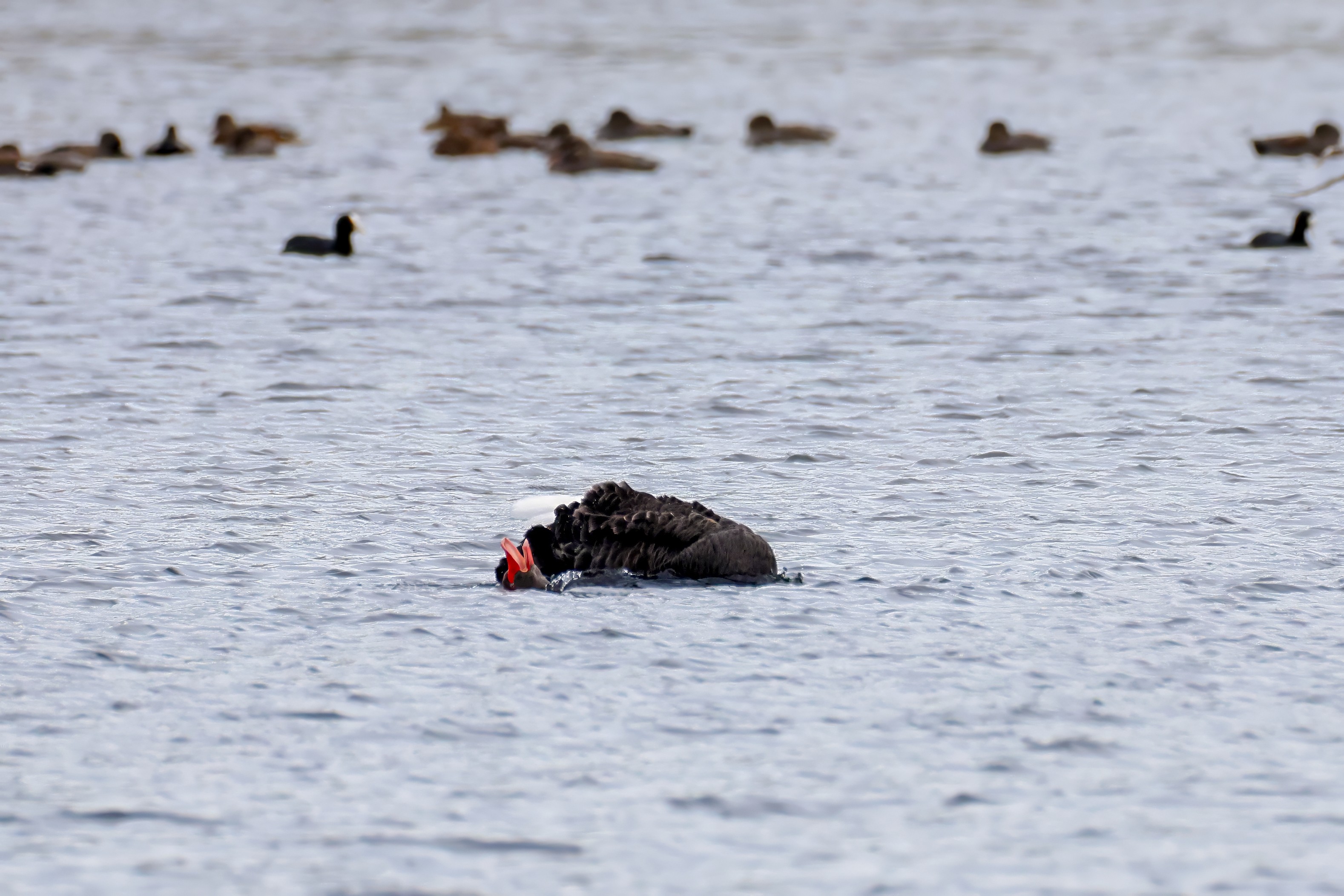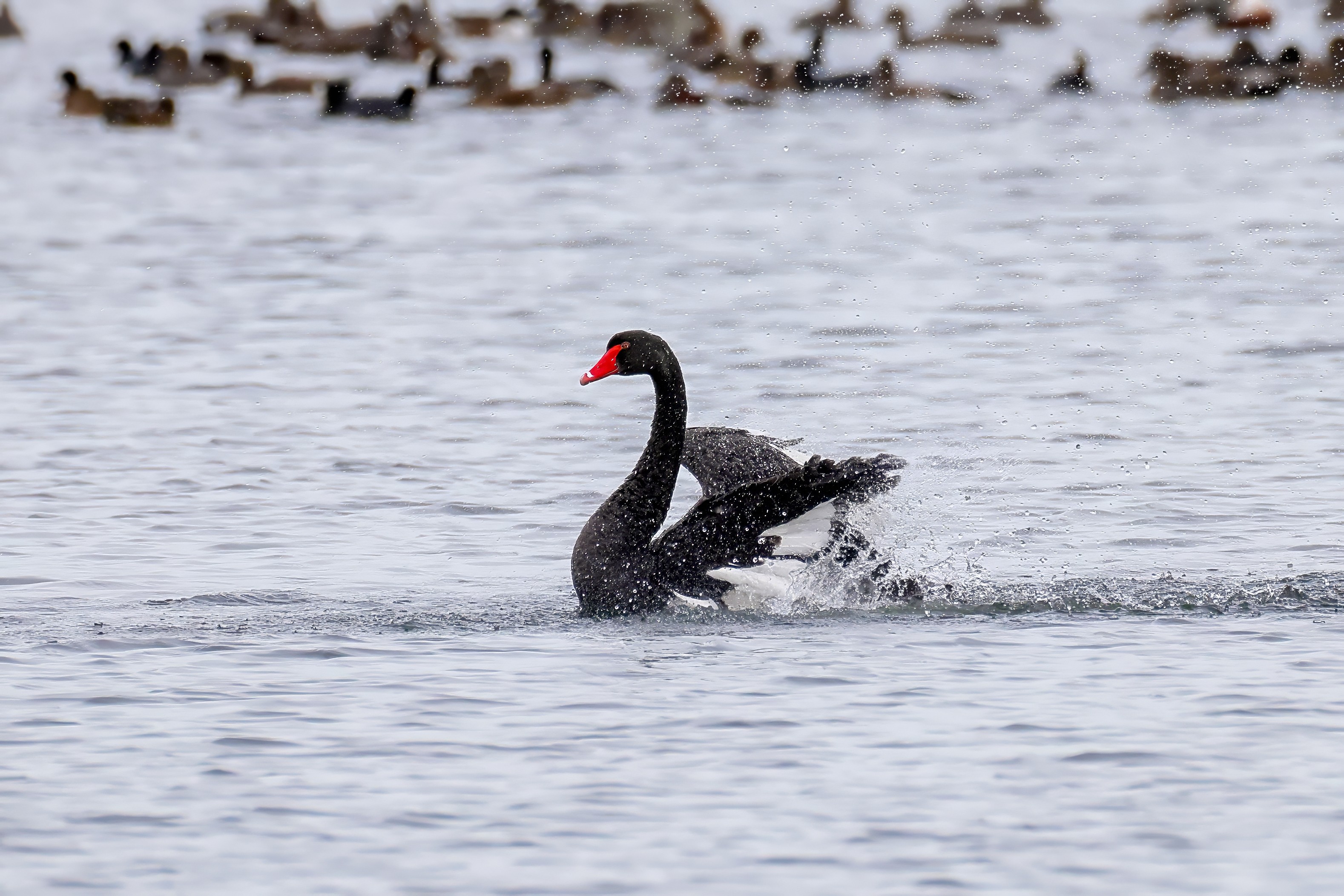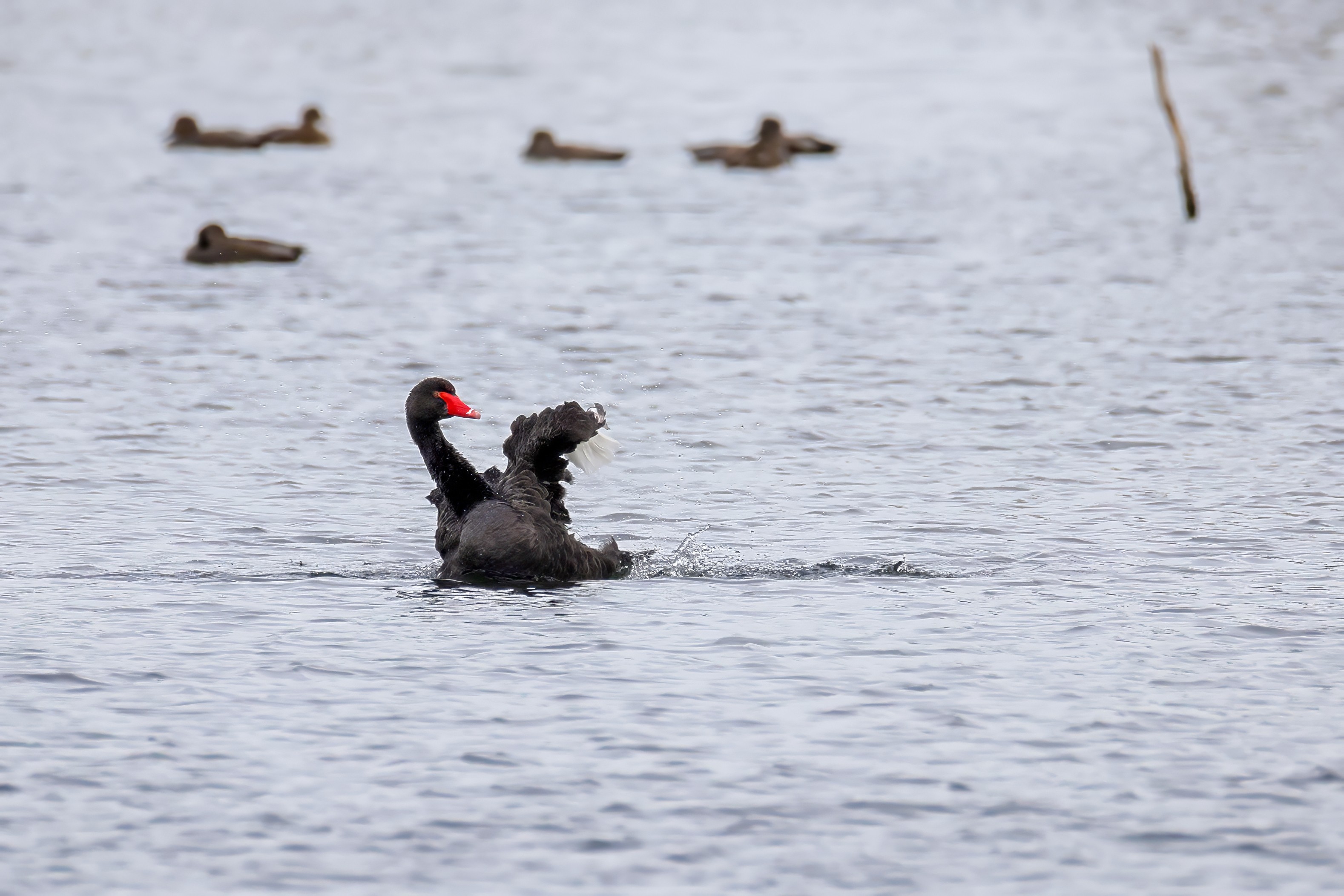 Höckerschwan vertreibt Trauerschwan - Rheingold Natur- und Tierfotografie