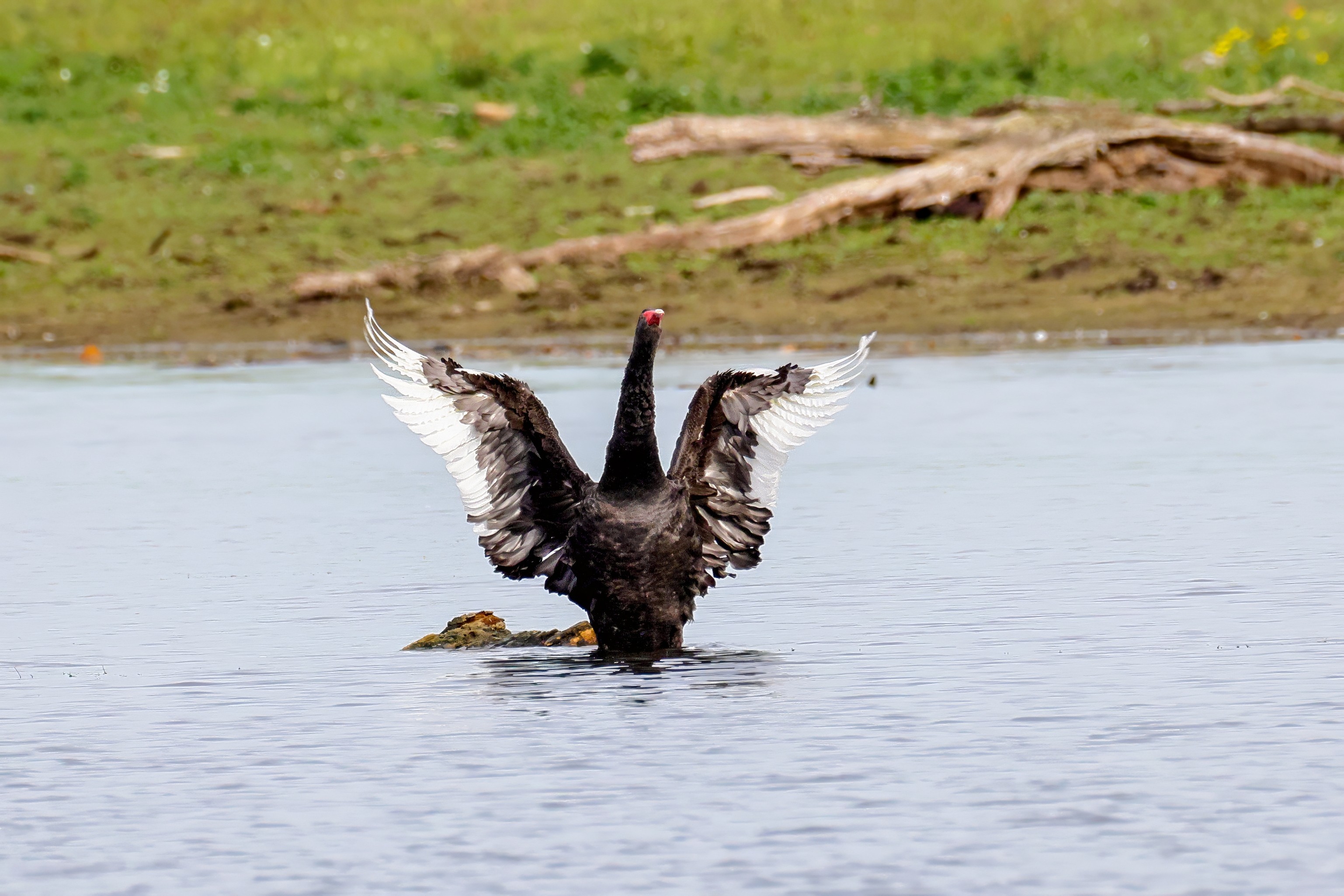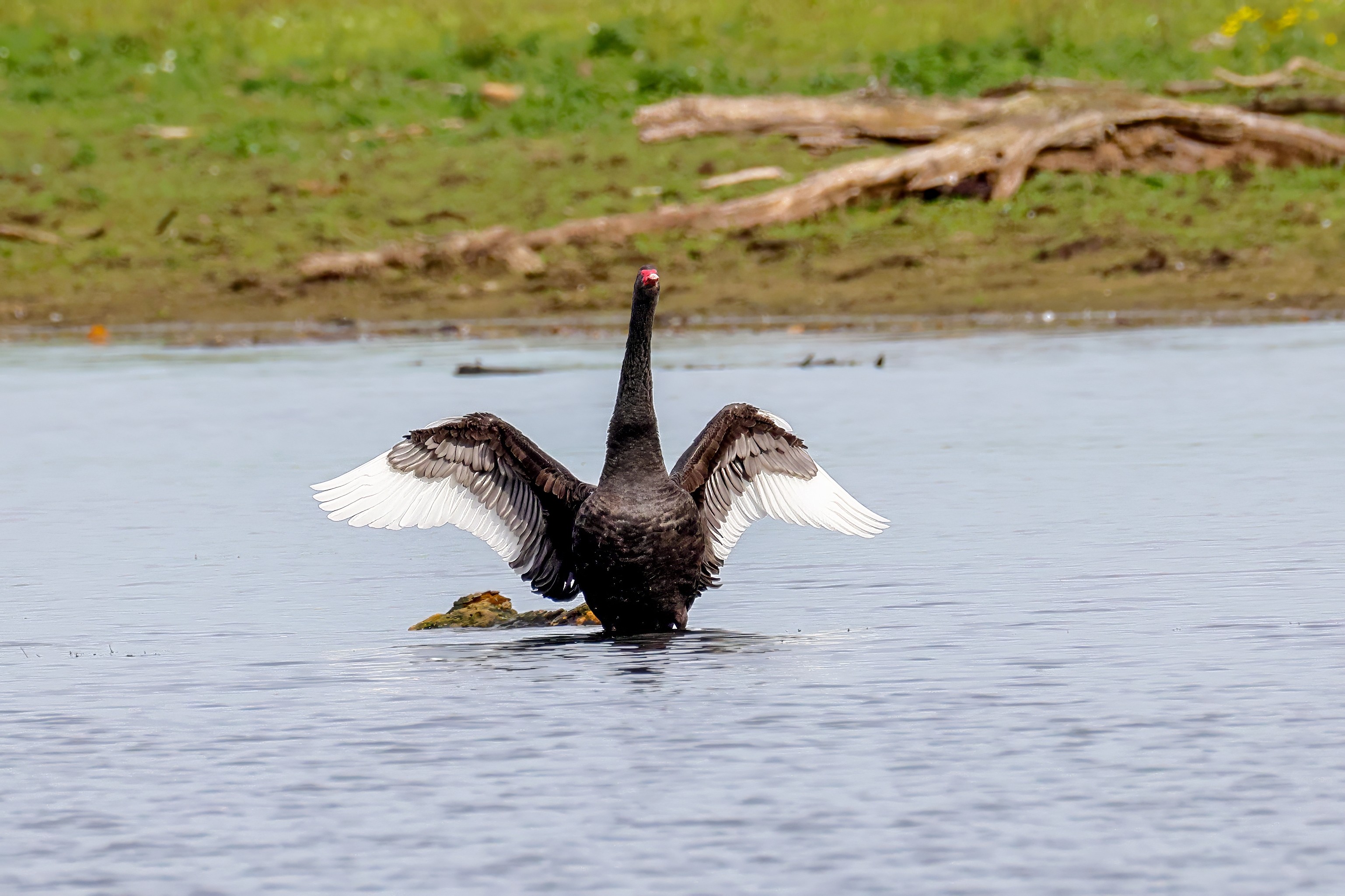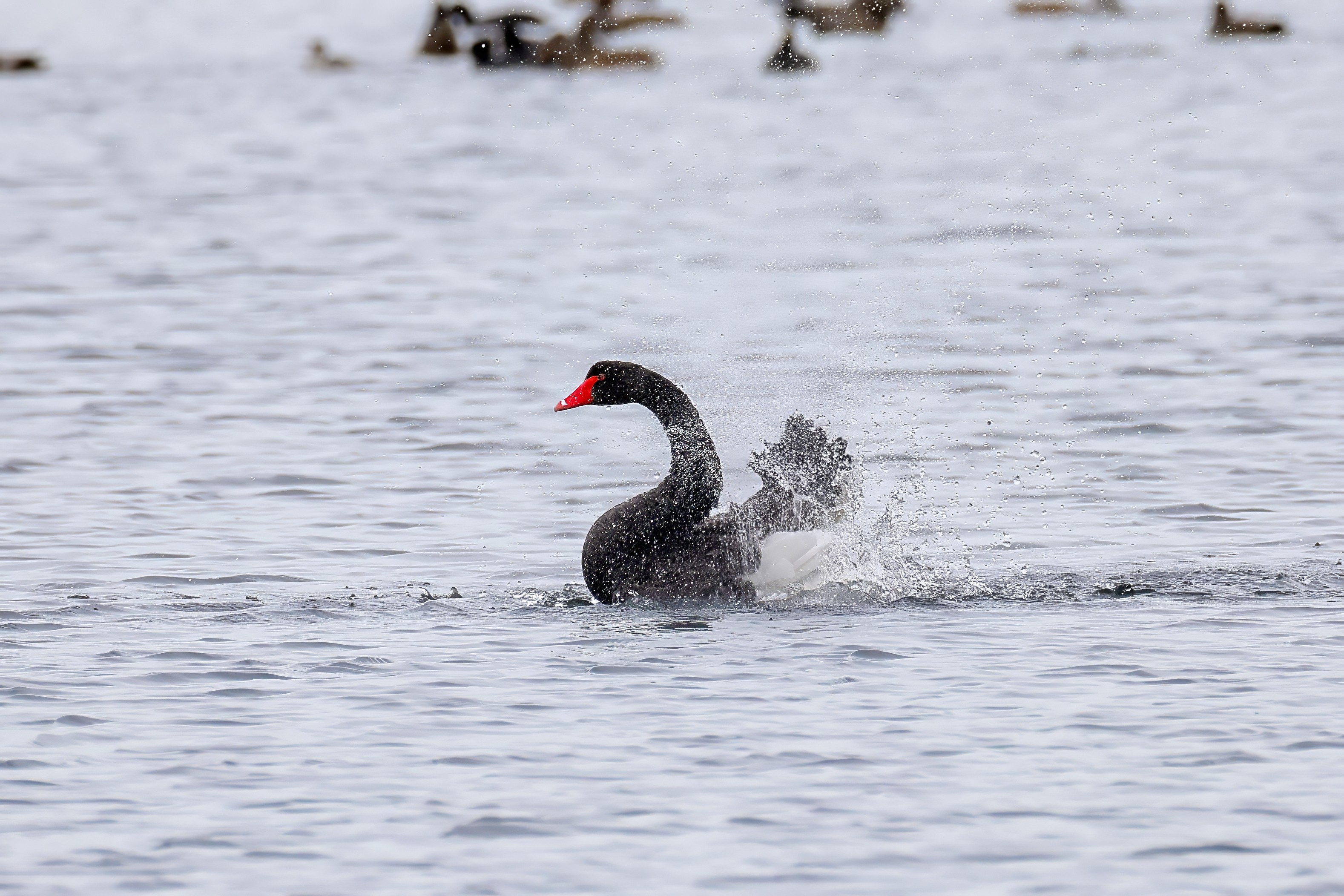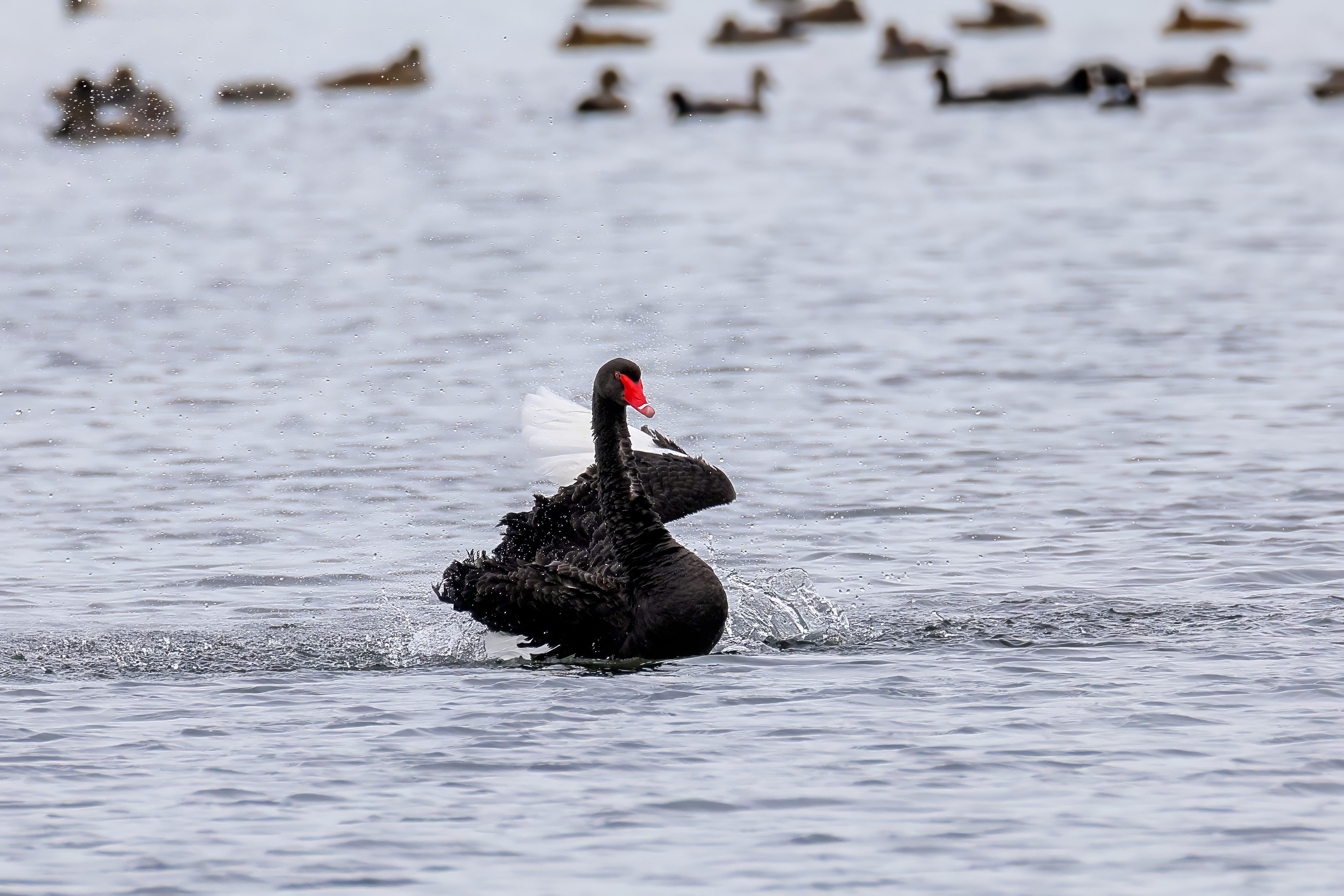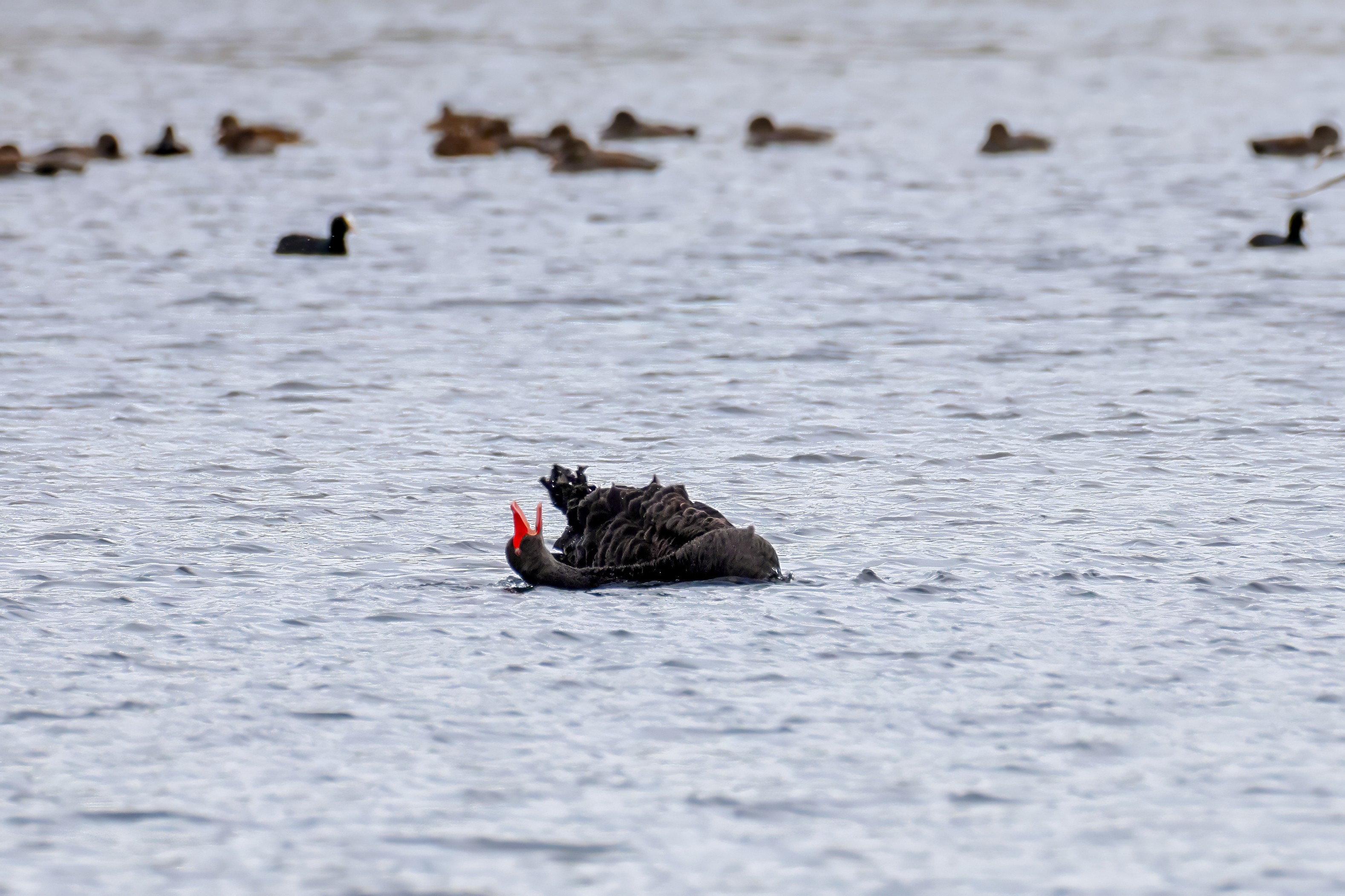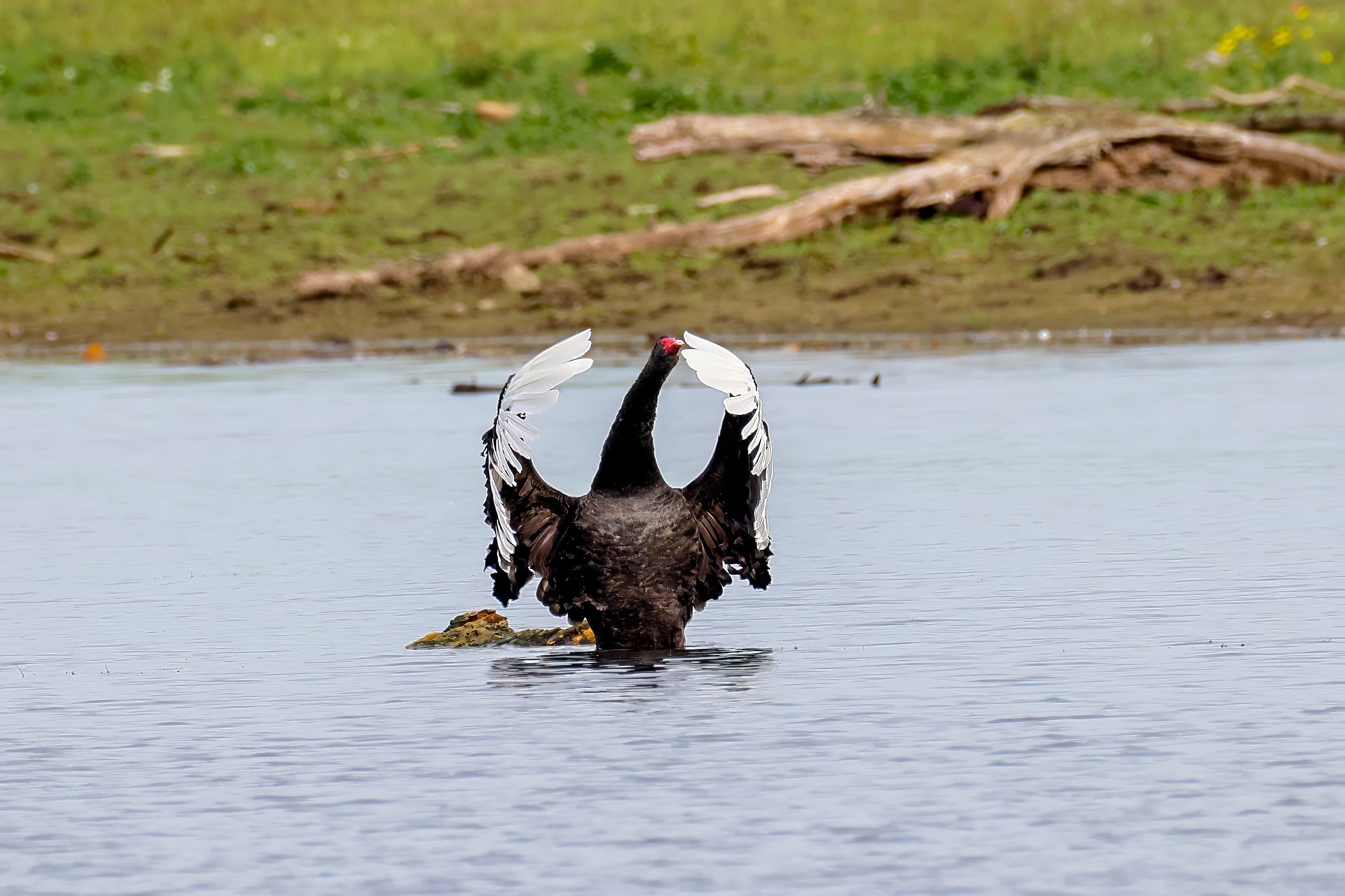 Höckerschwan vertreibt Trauerschwan - Rheingold Natur- und Tierfotografie