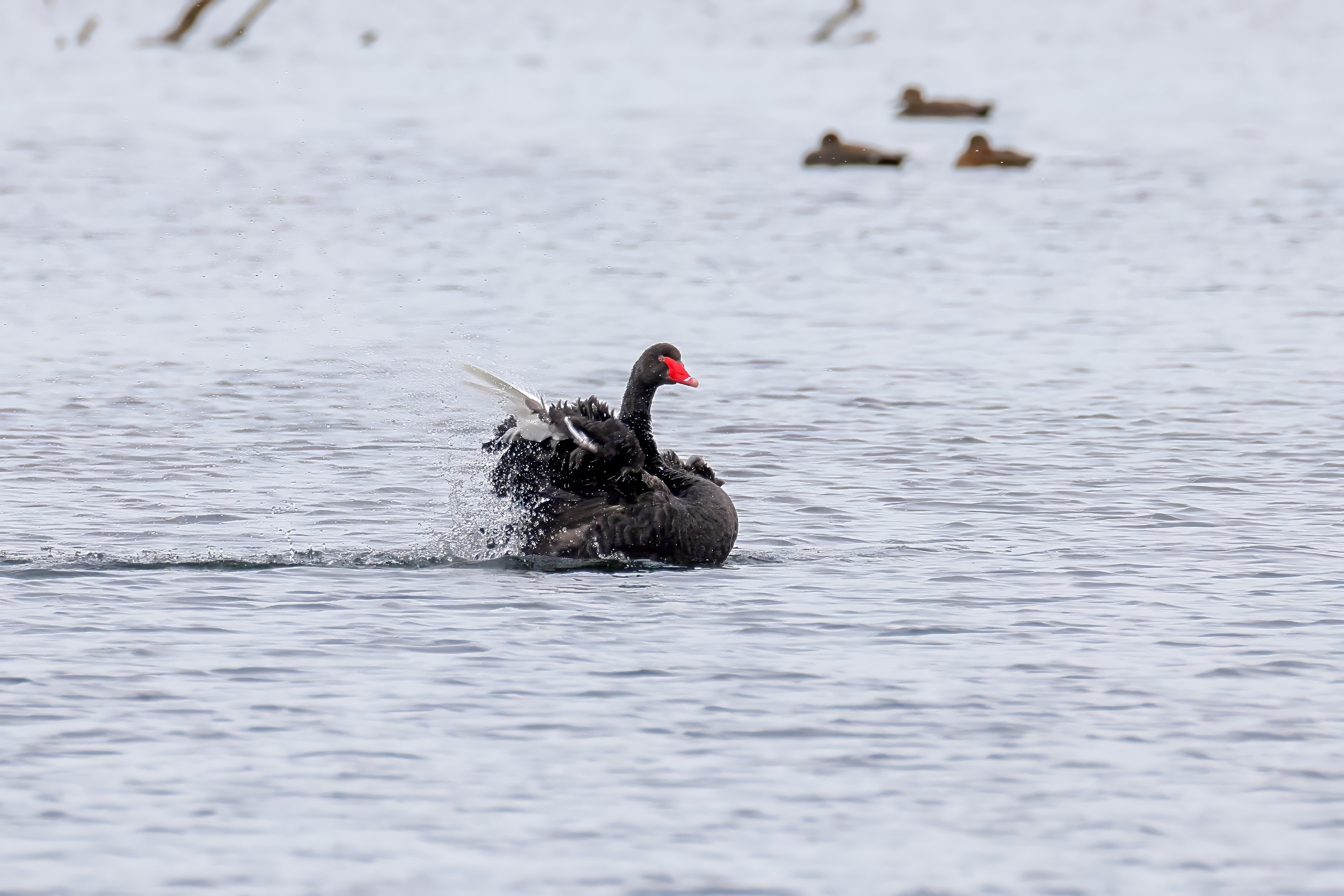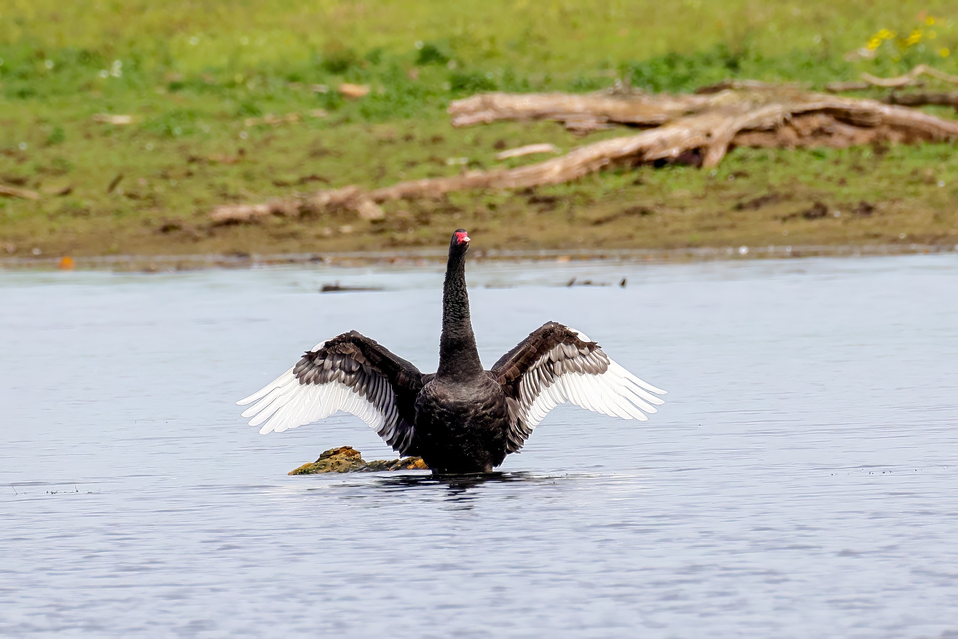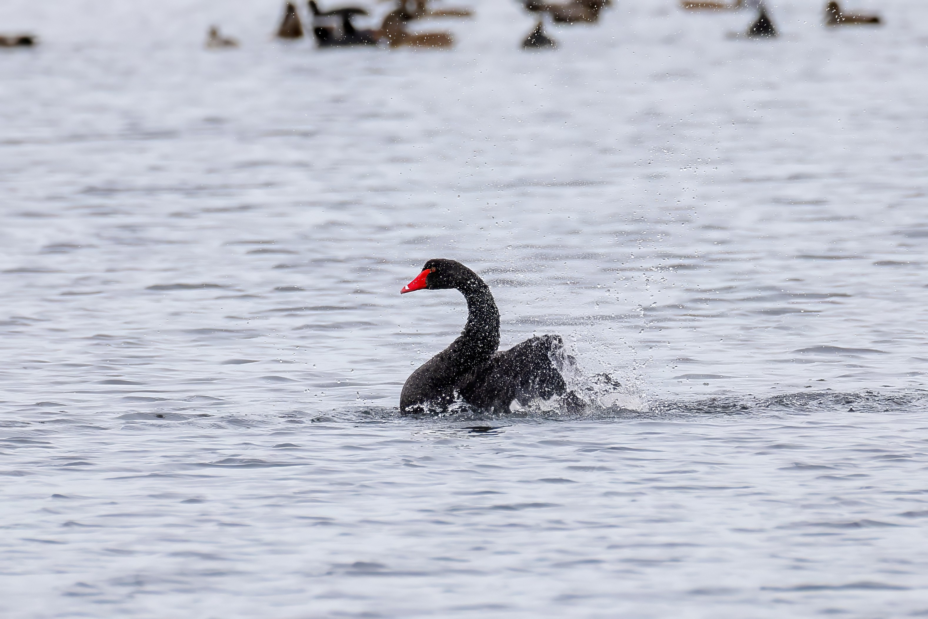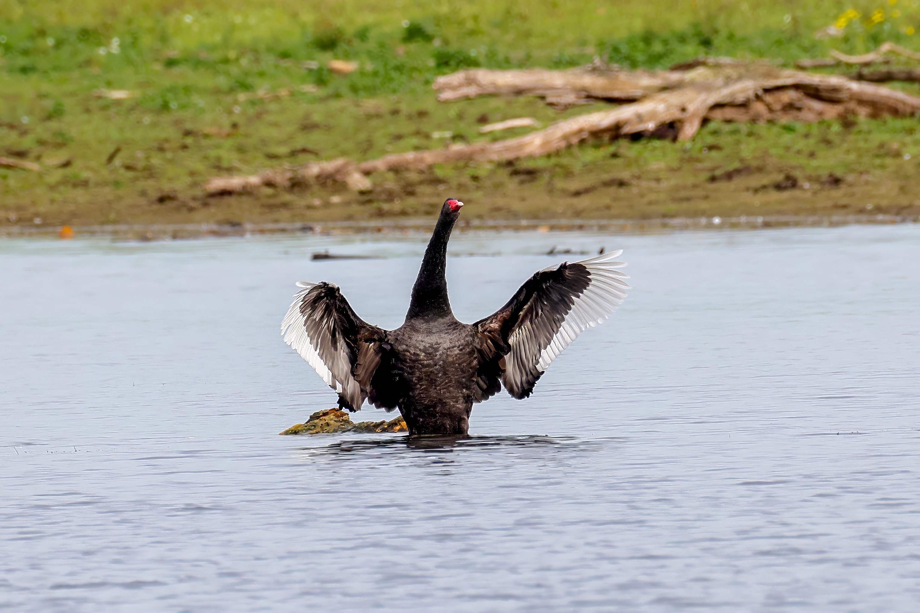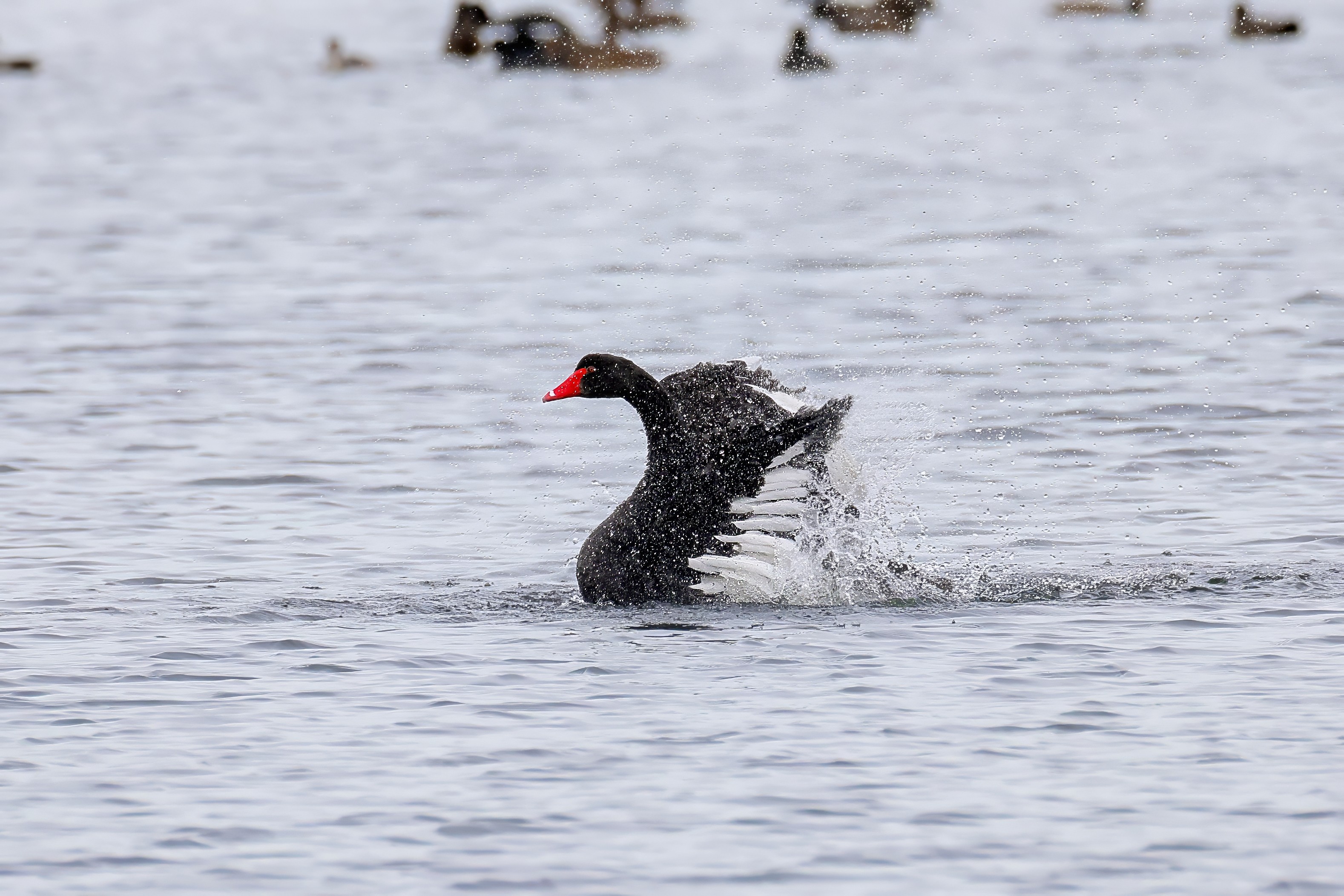 Höckerschwan vertreibt Trauerschwan - Rheingold Natur- und Tierfotografie