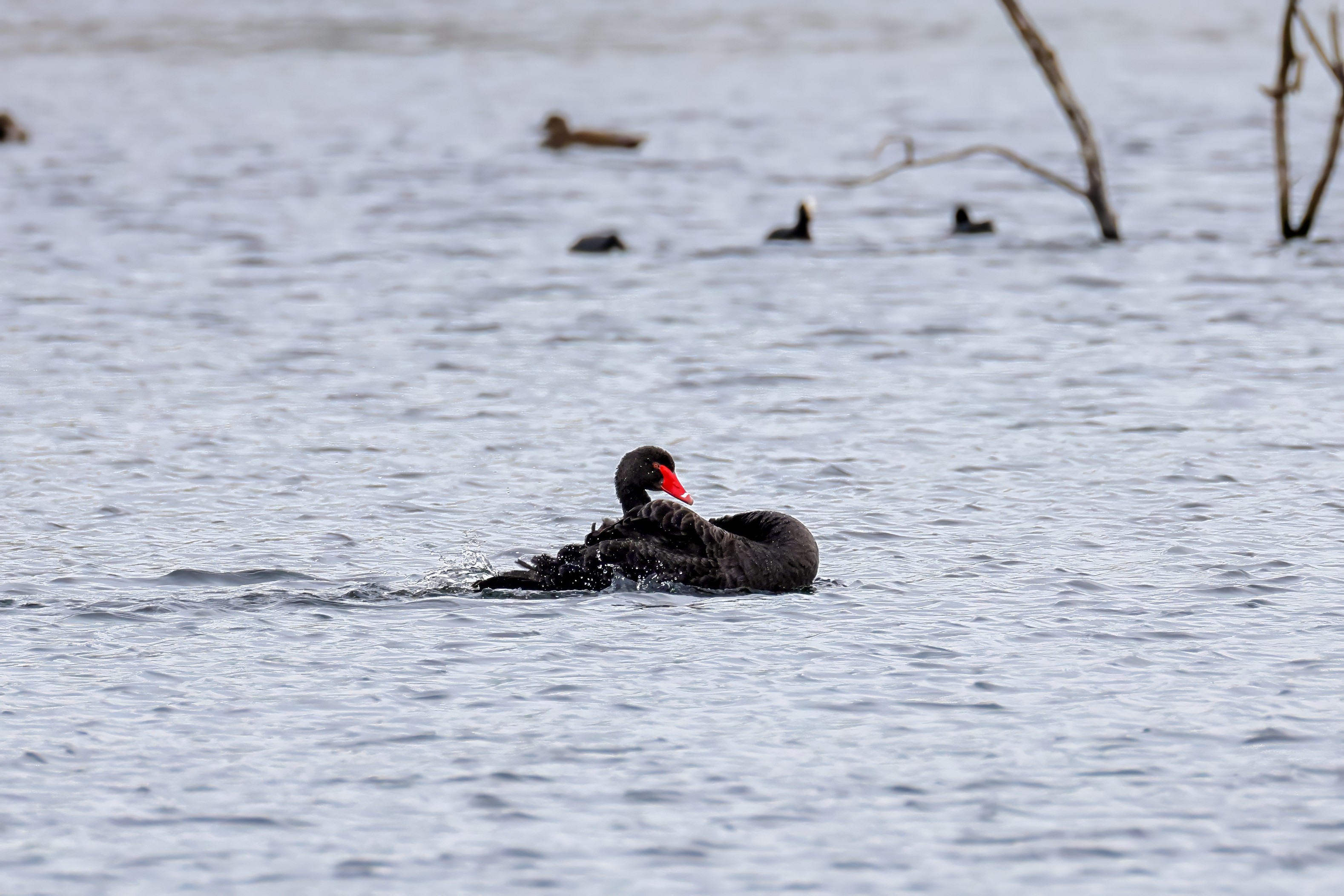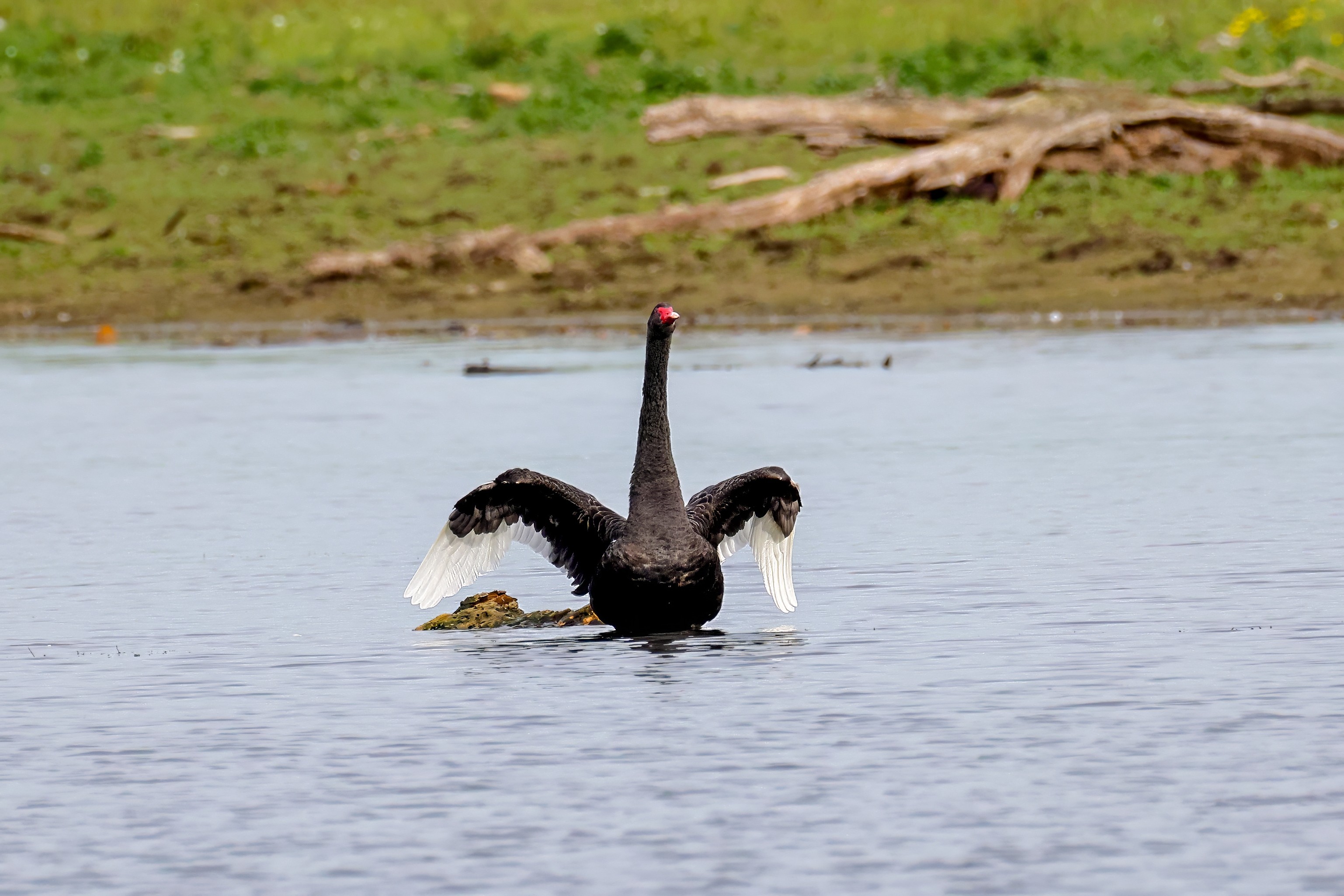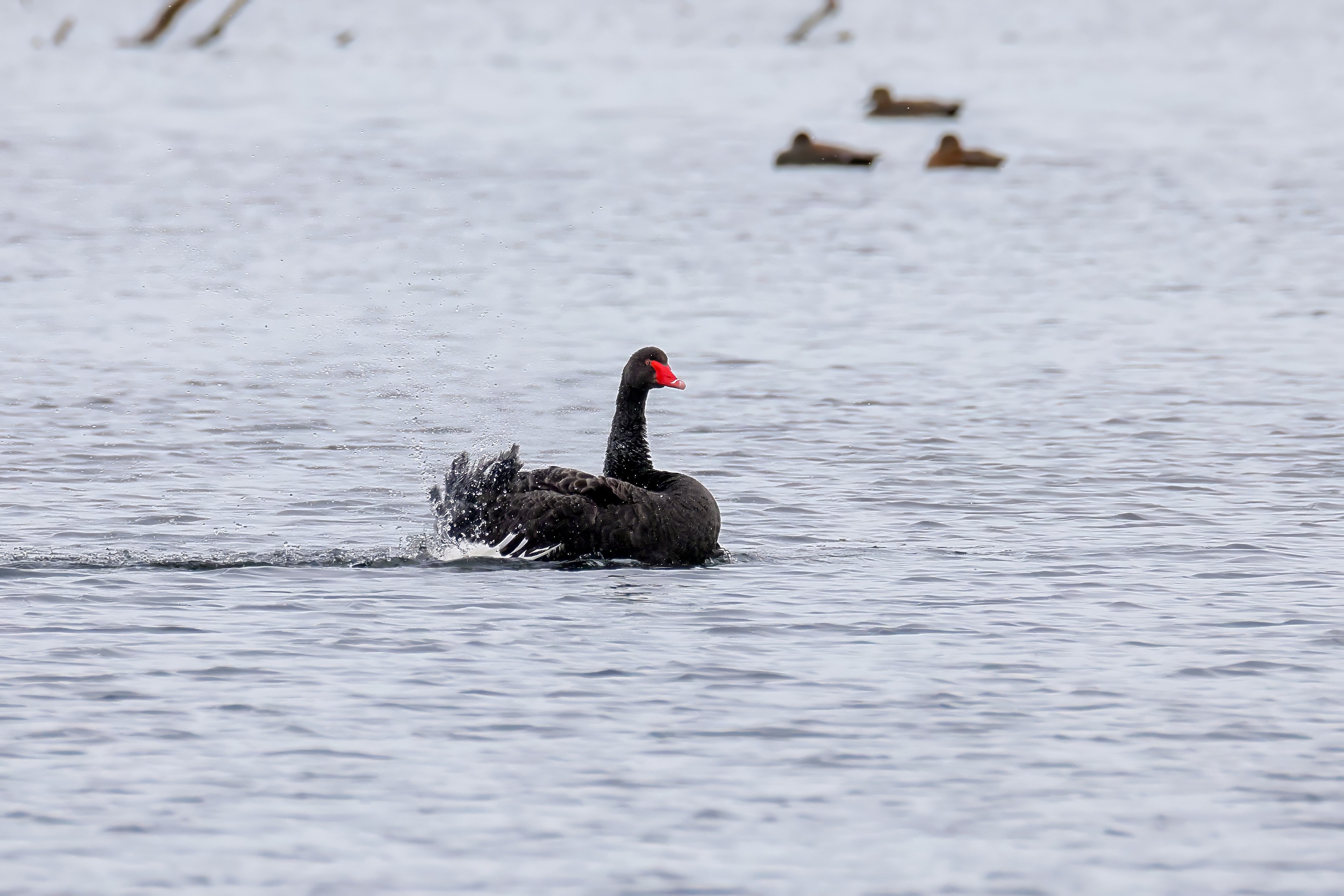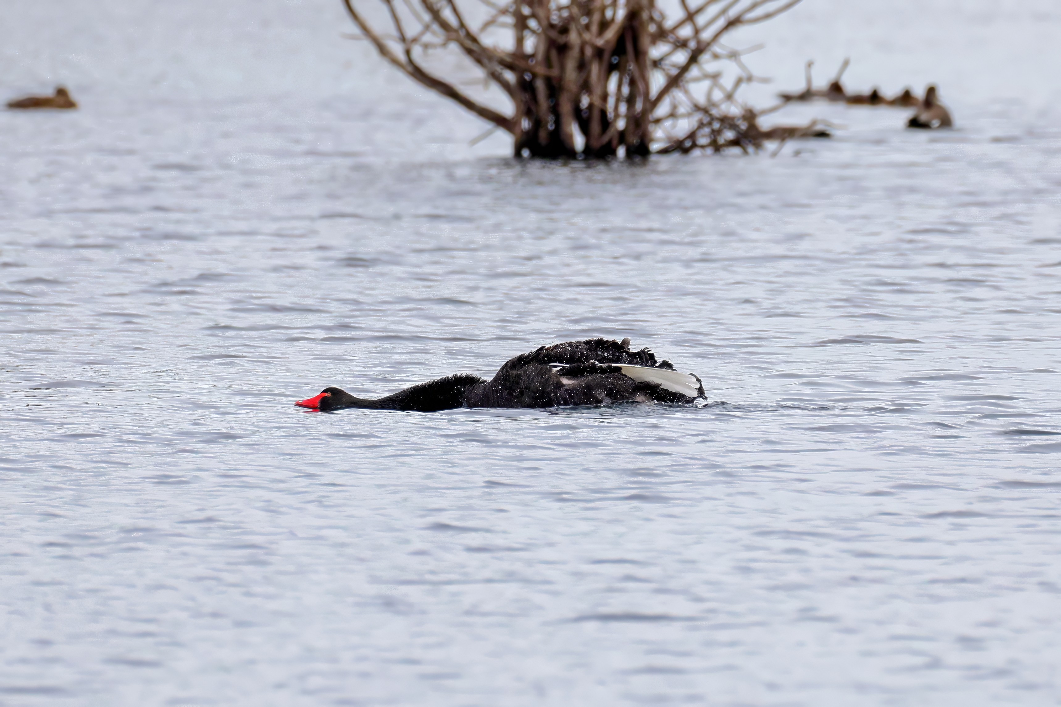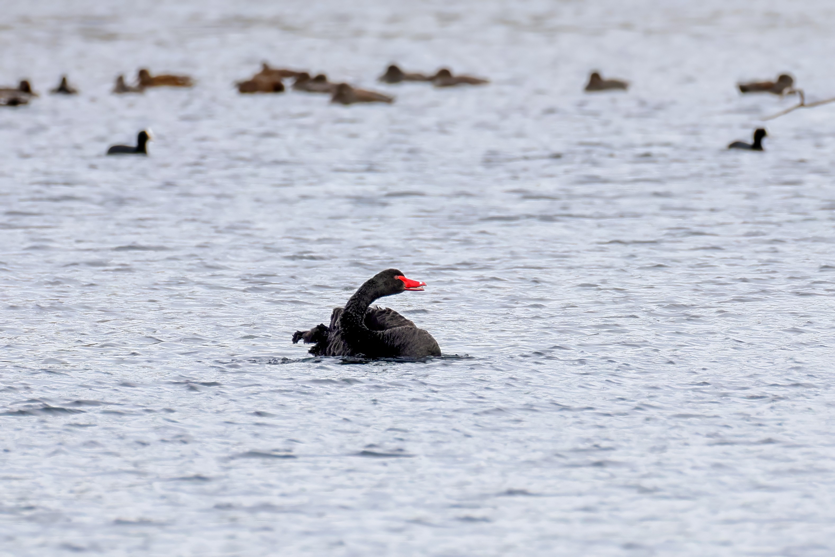 Höckerschwan vertreibt Trauerschwan - Rheingold Natur- und Tierfotografie