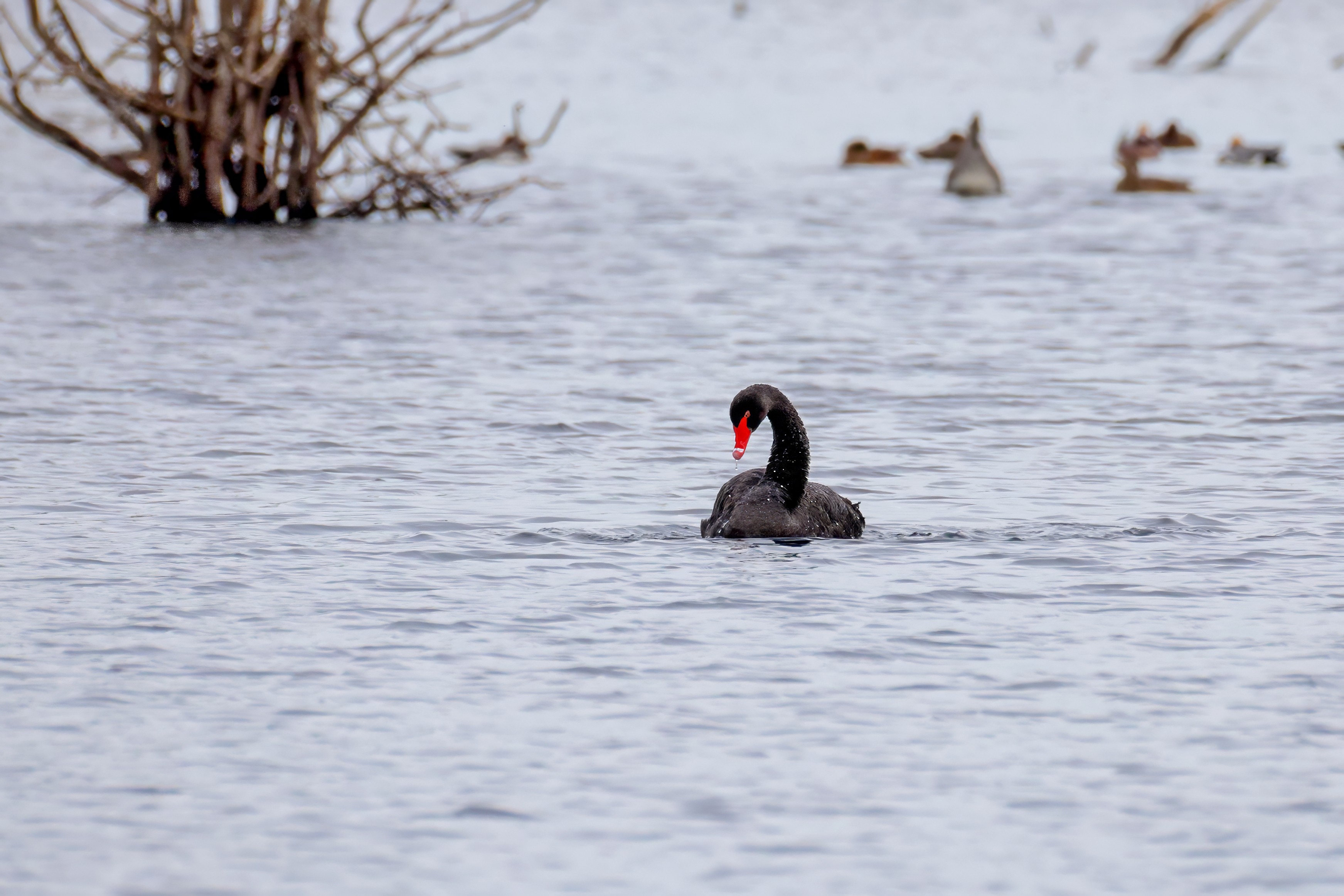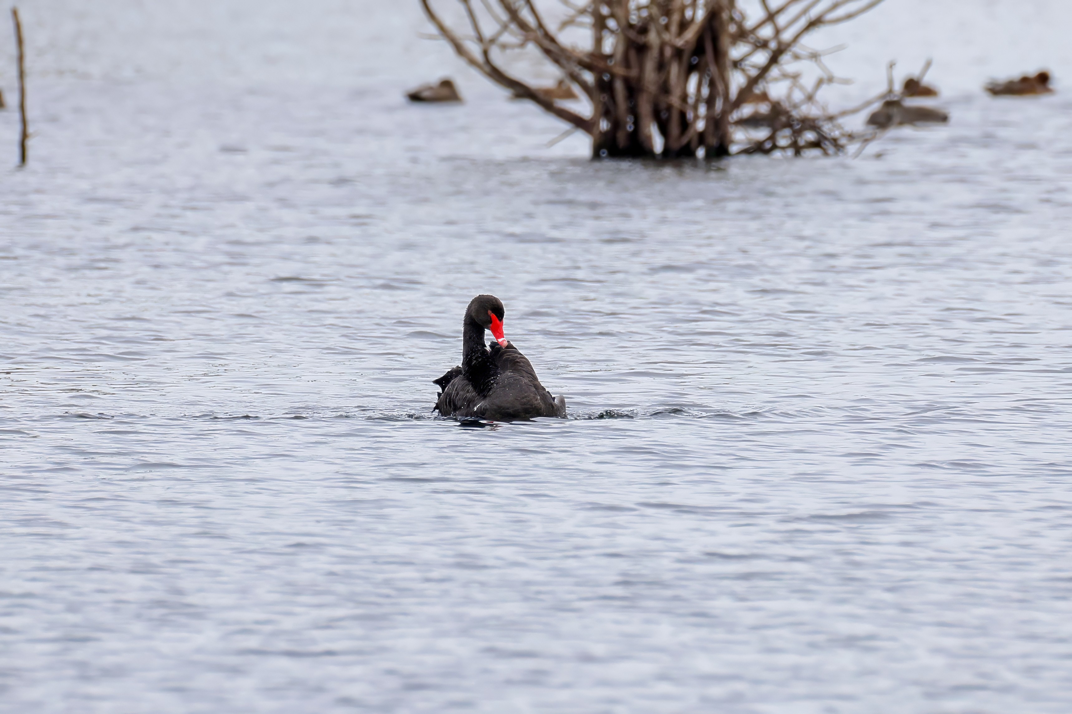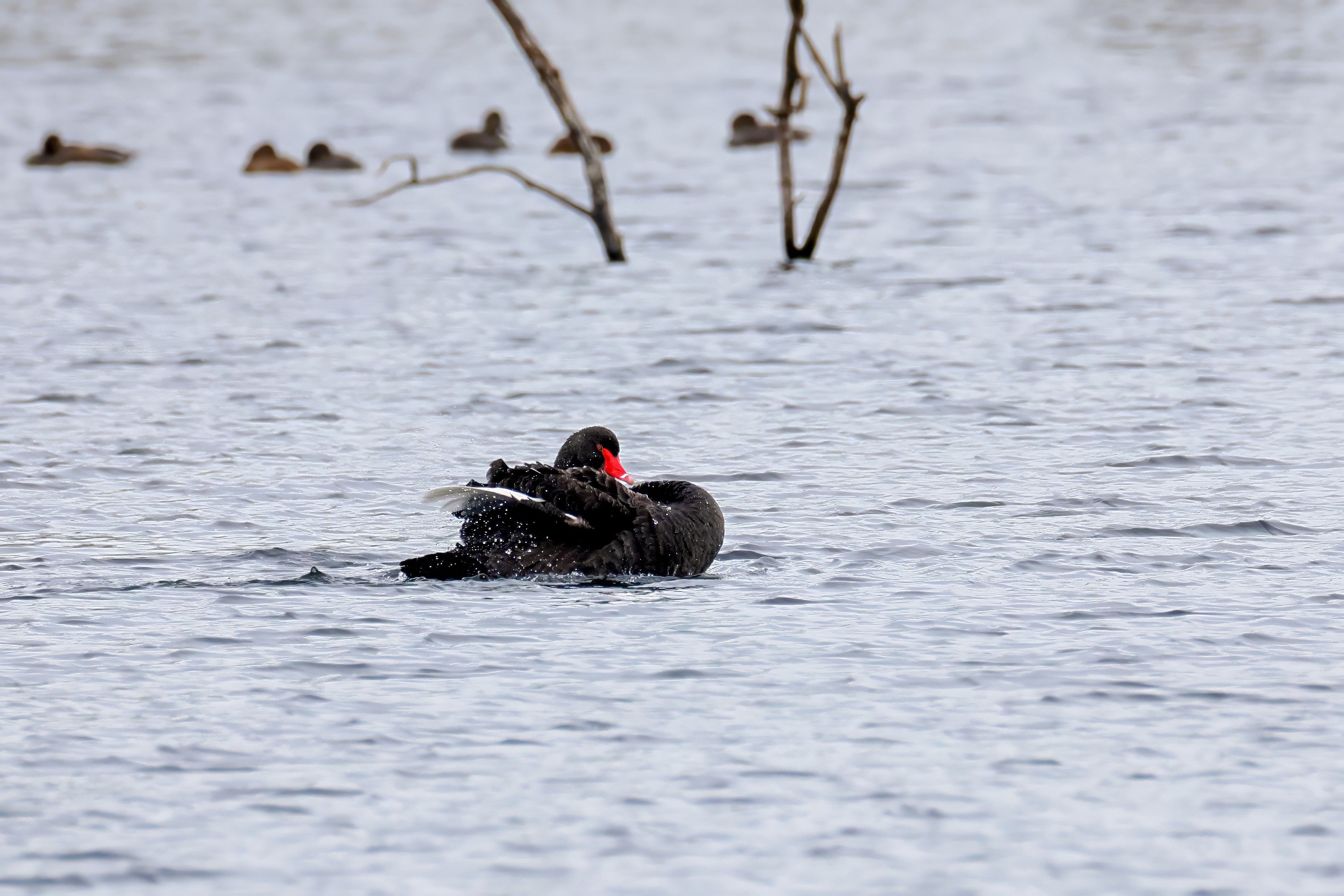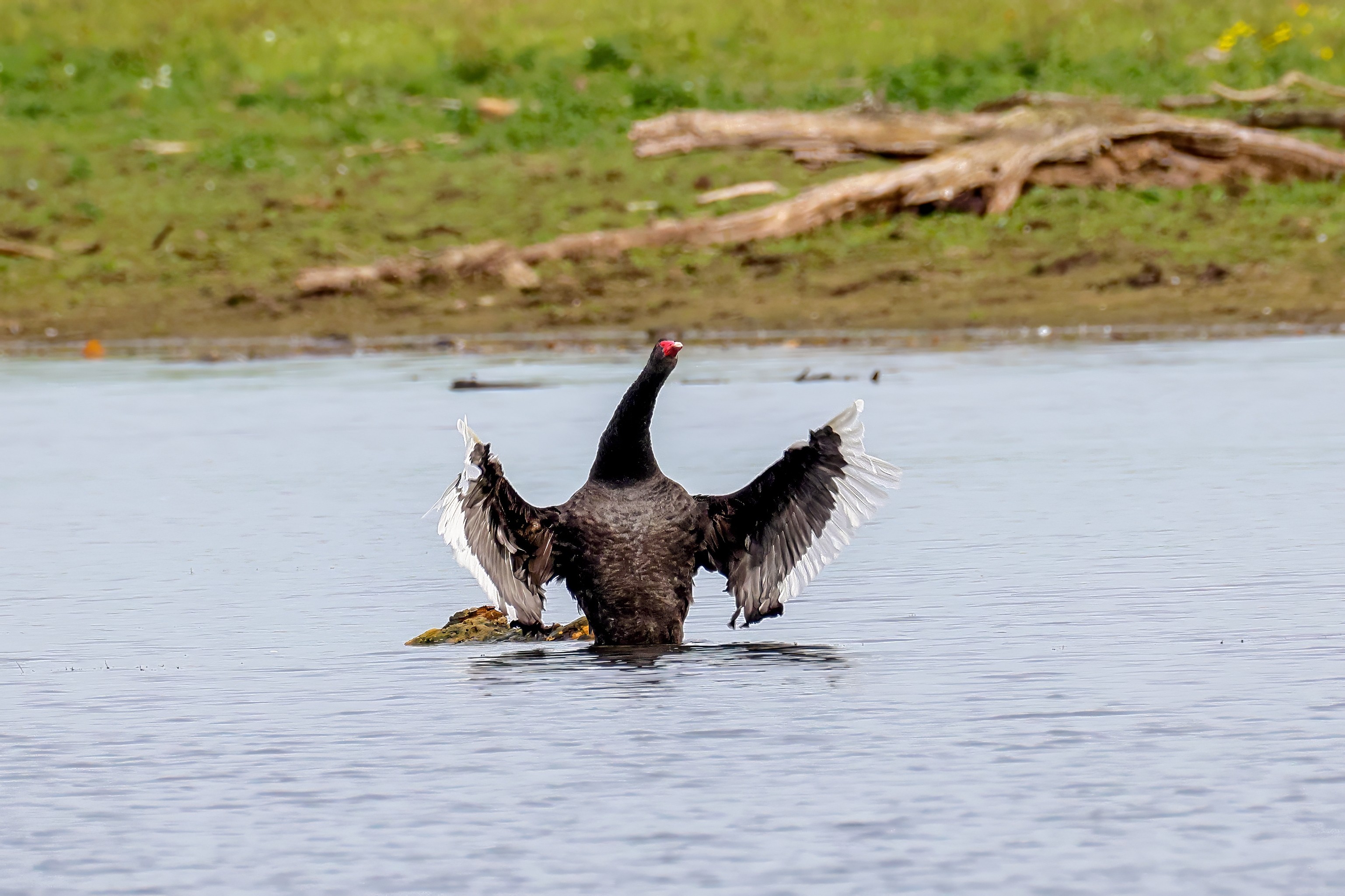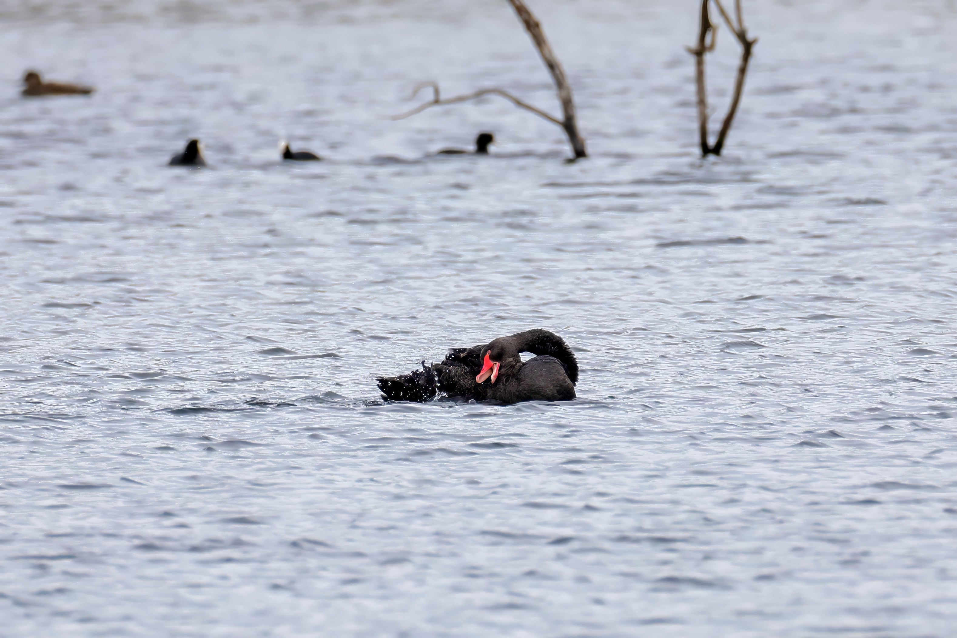 Höckerschwan vertreibt Trauerschwan - Rheingold Natur- und Tierfotografie