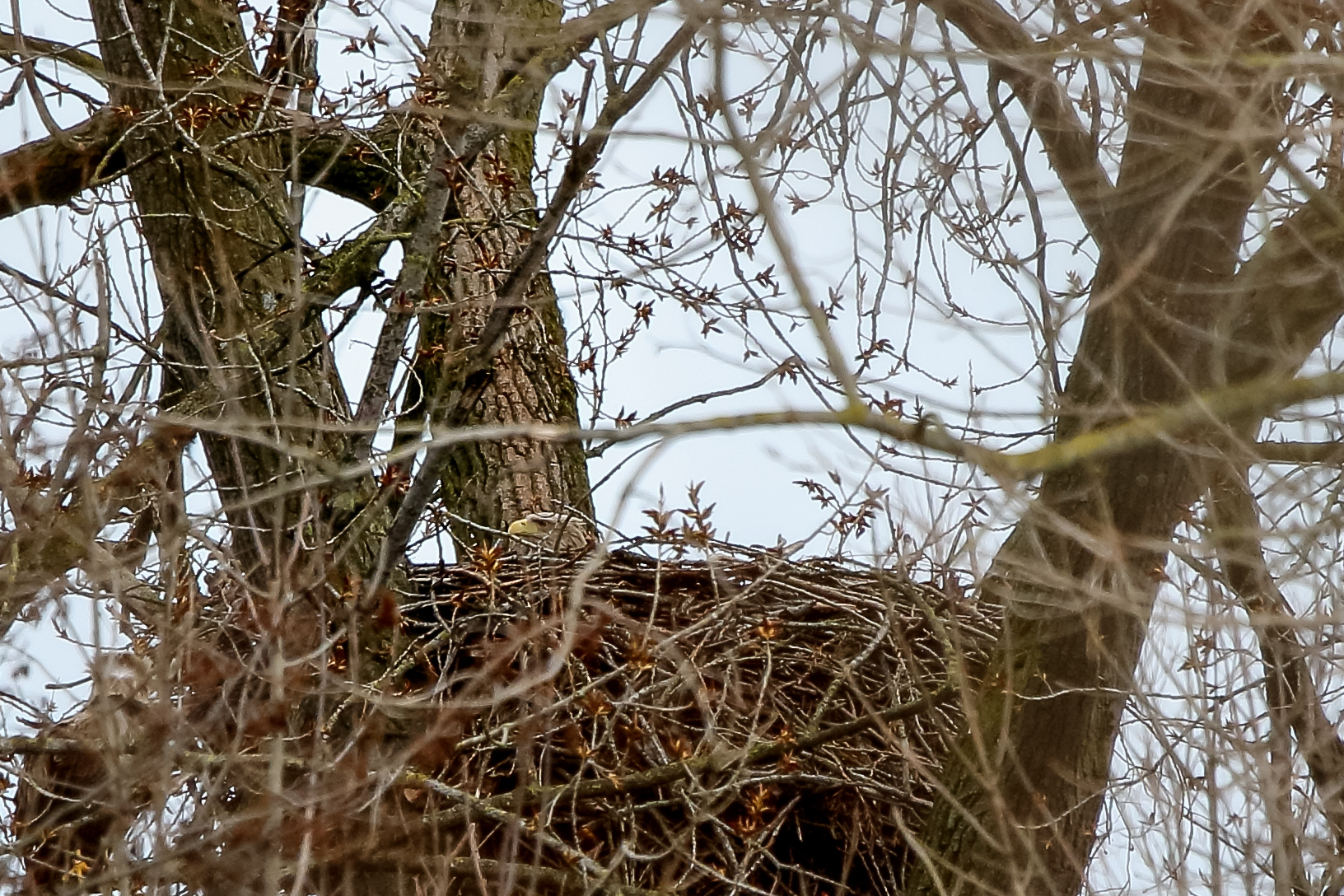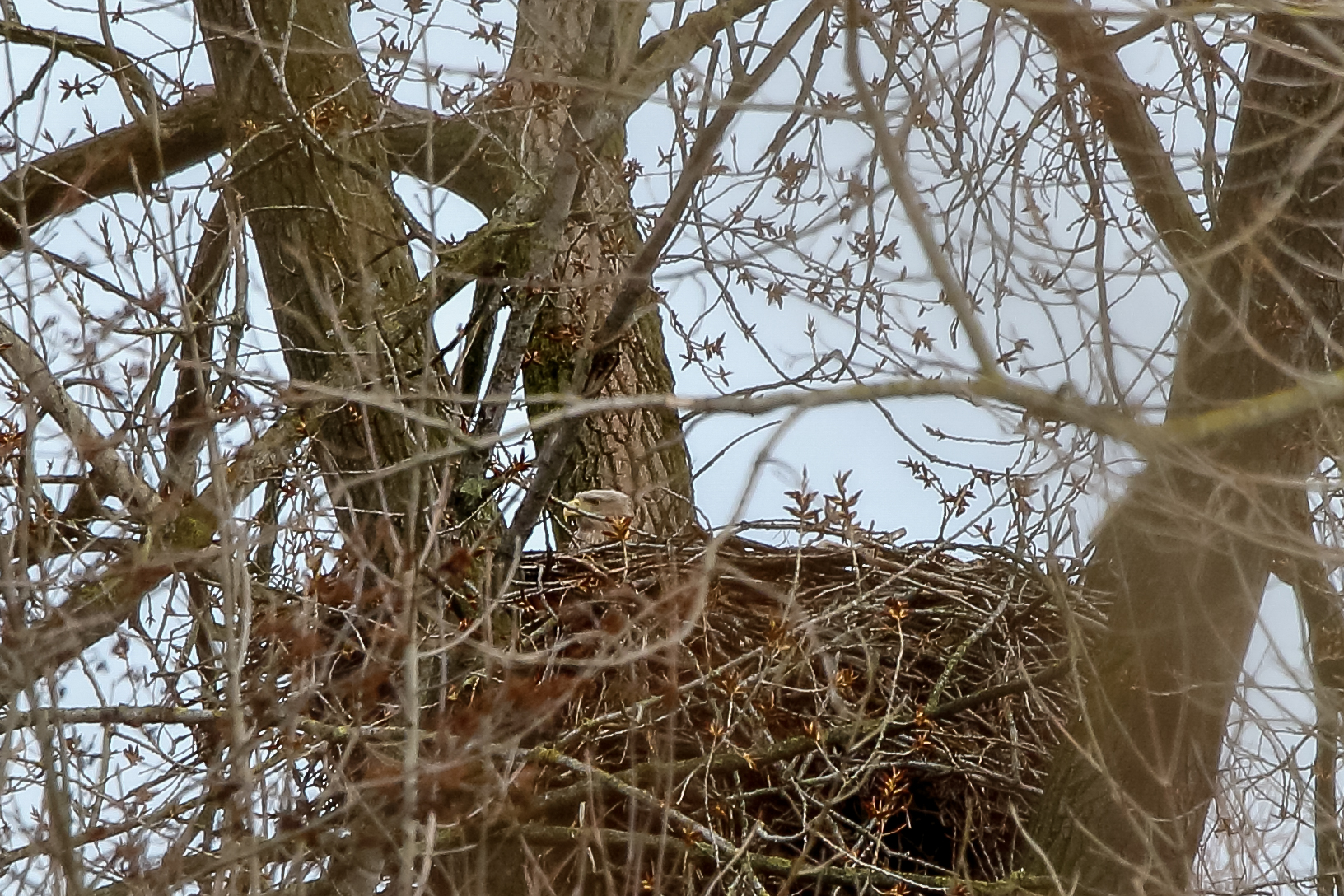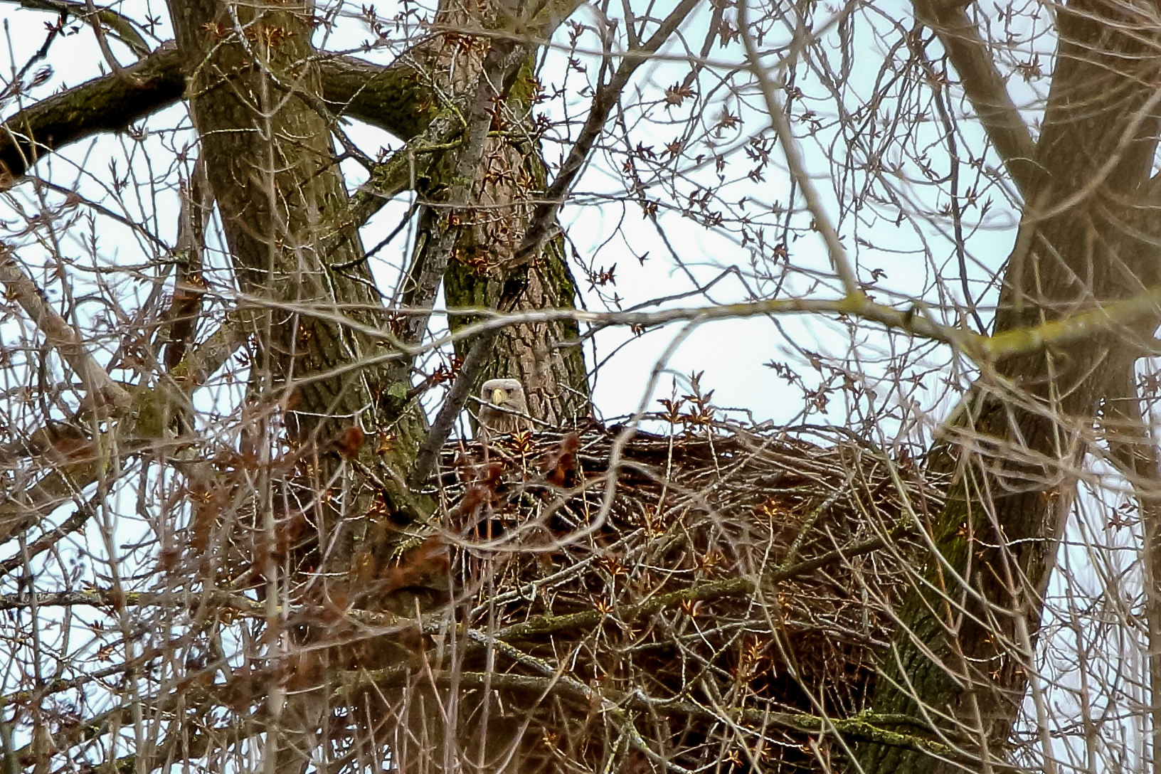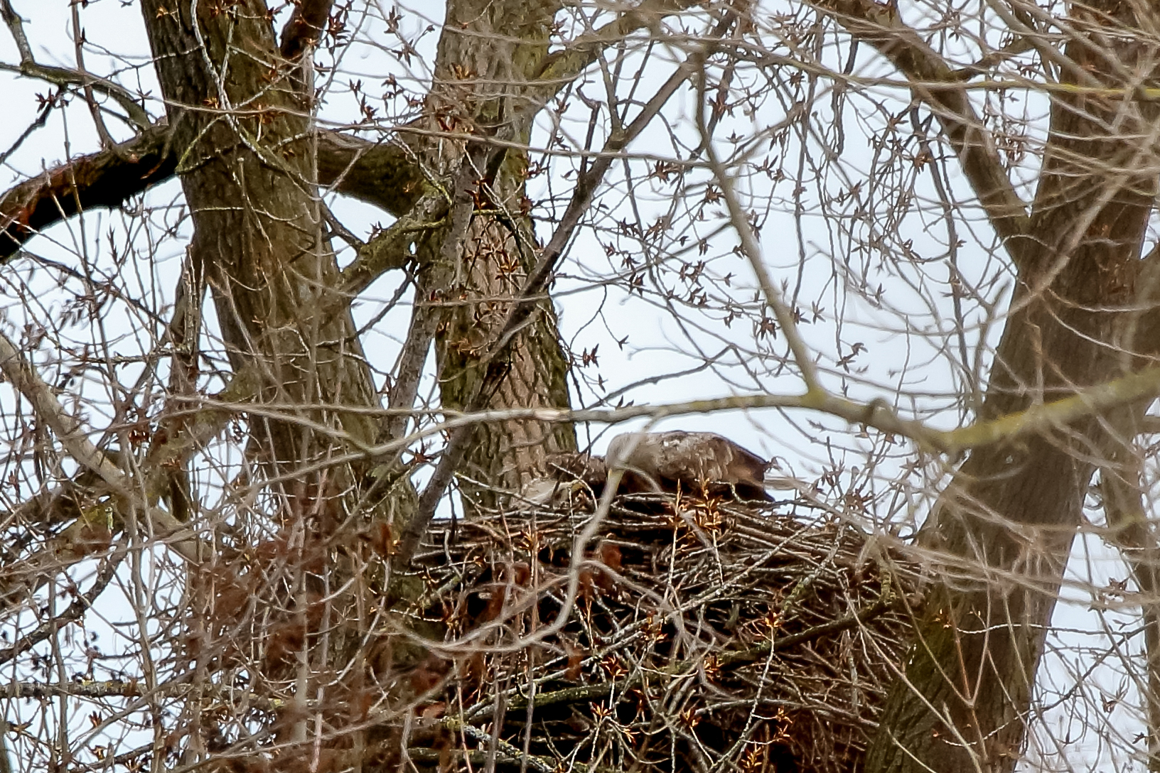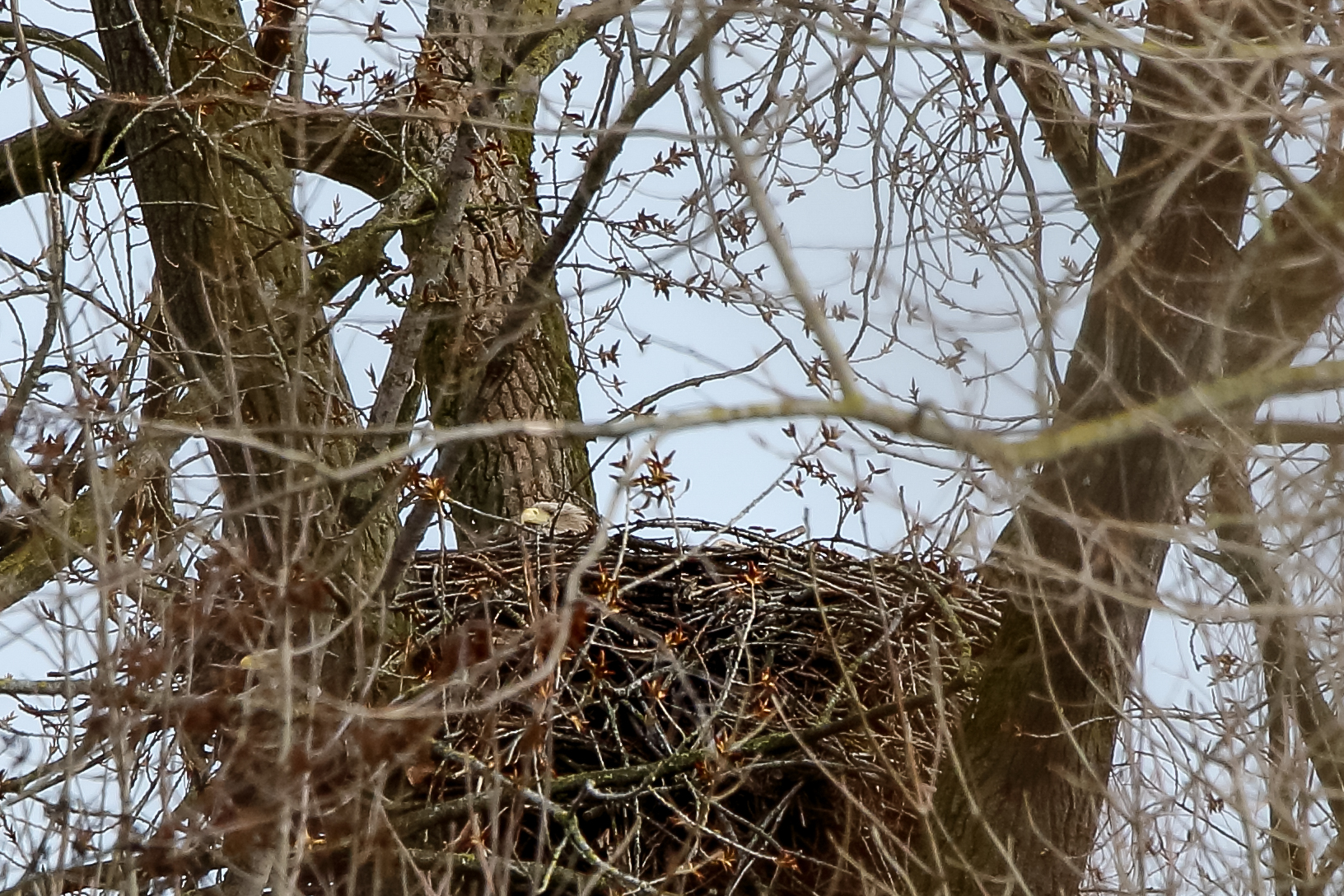 Anfang März wurde der Niederrhein durch ein Sturmtief mit heftigen Orkanböen heimgesucht. Der Horst sowie die Seeadler haben das Wetter gut überstanden.