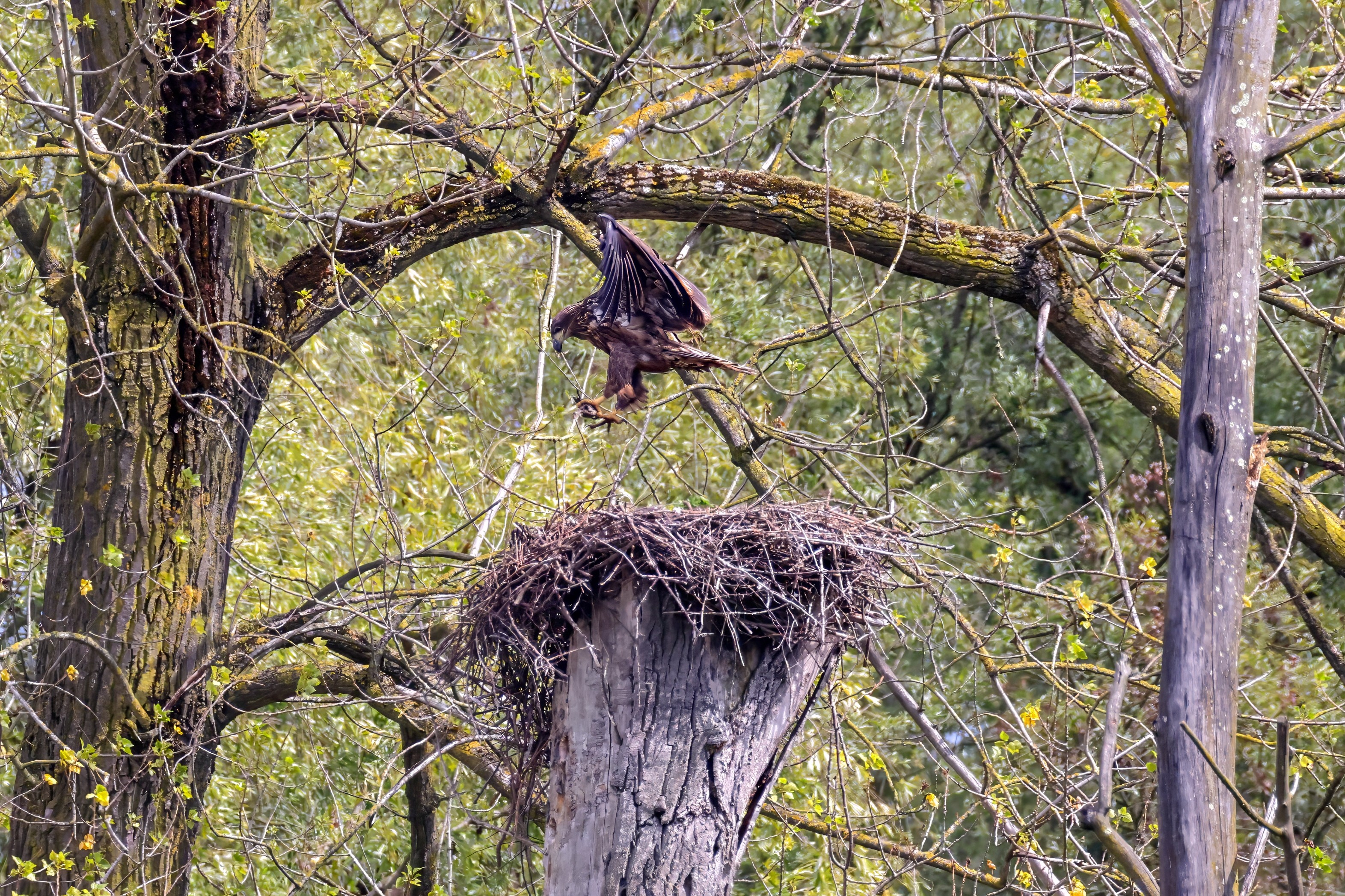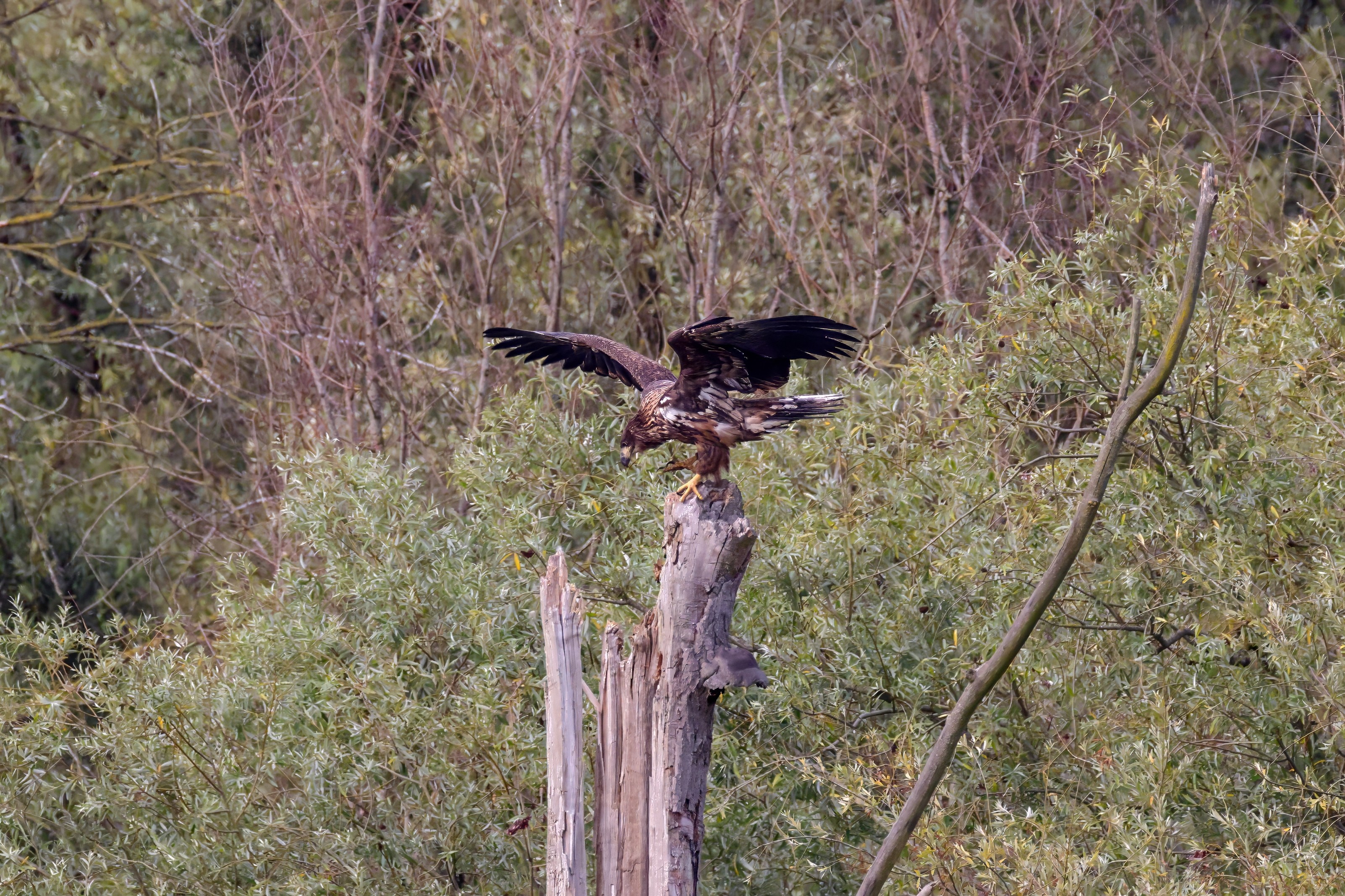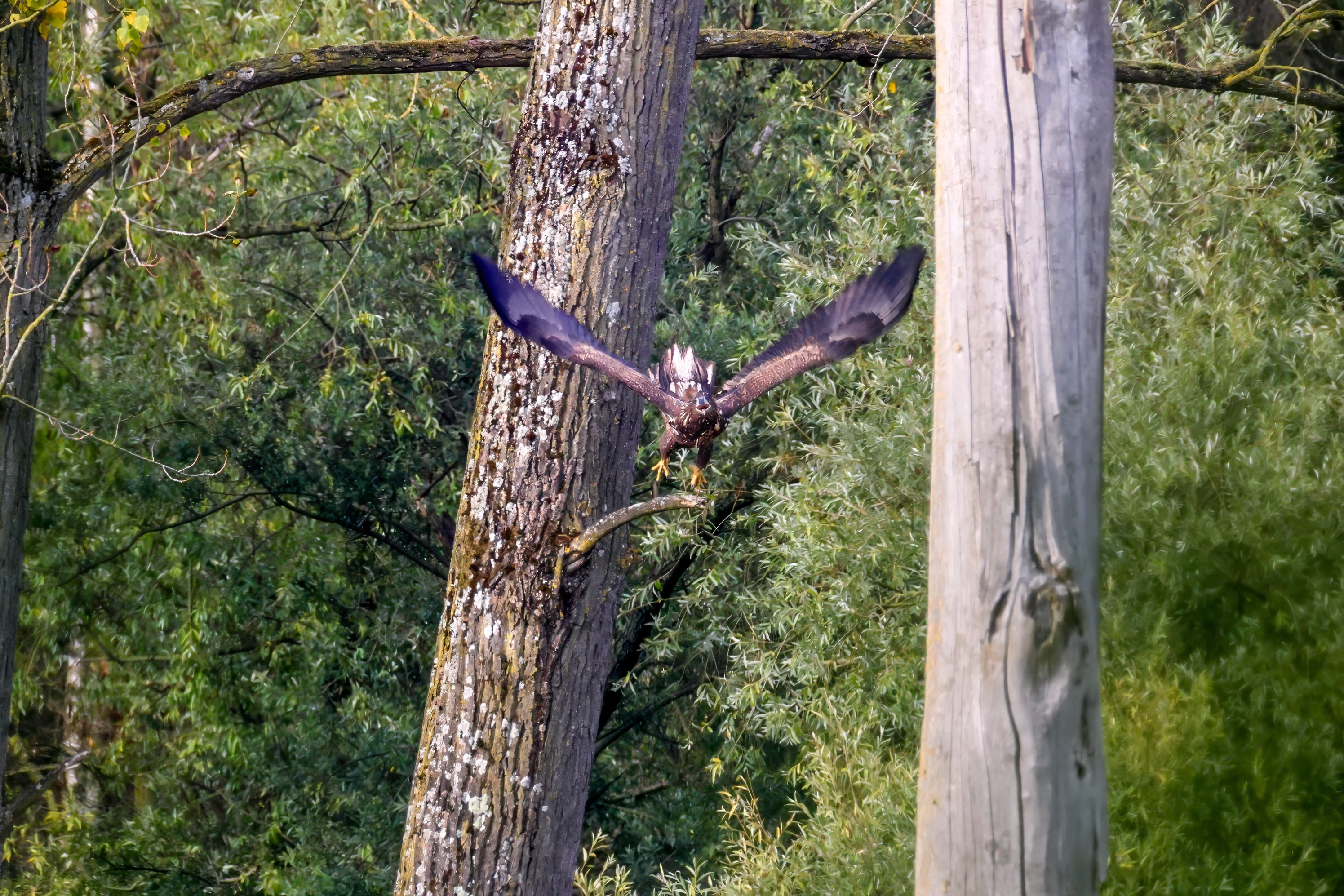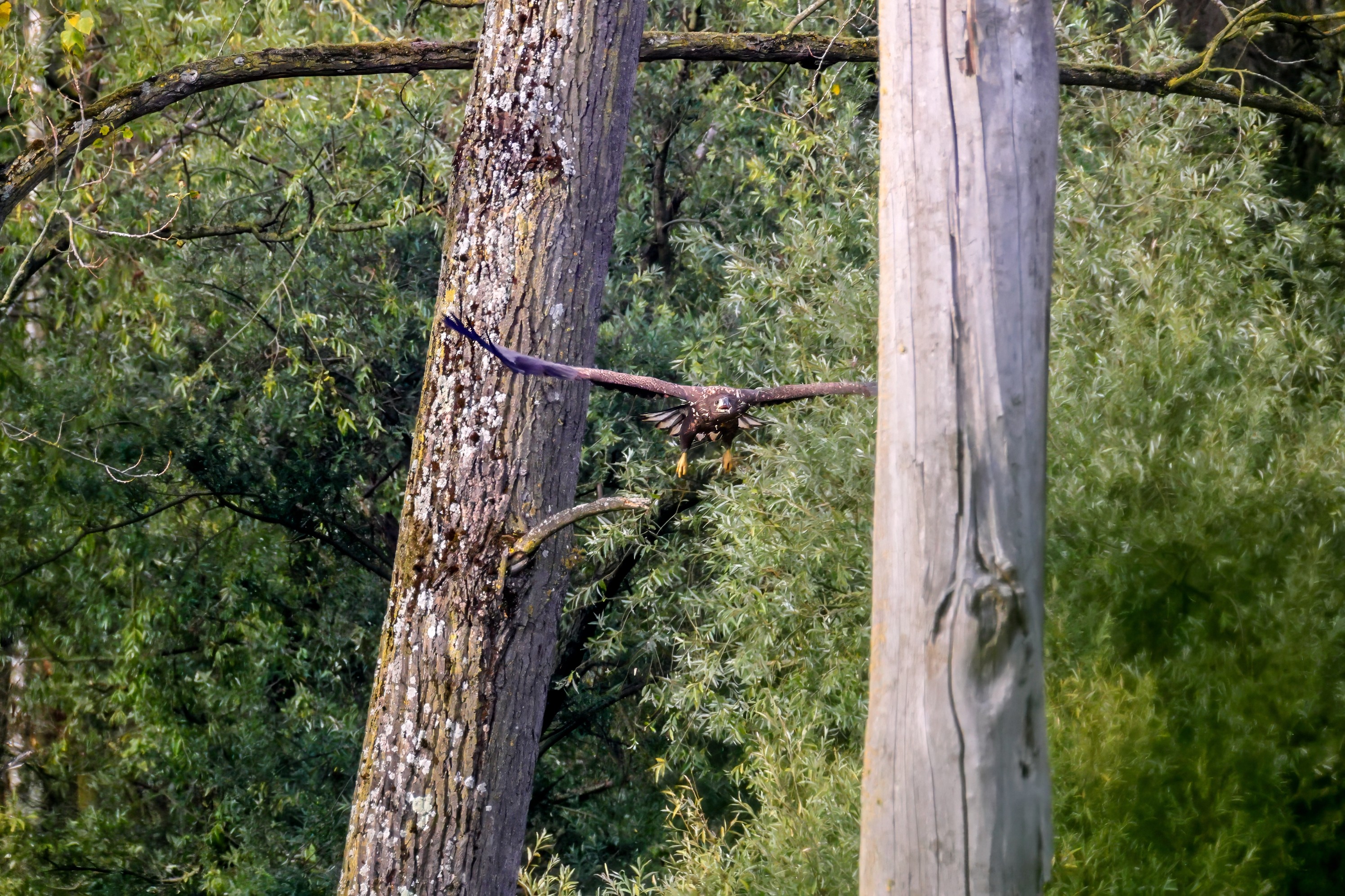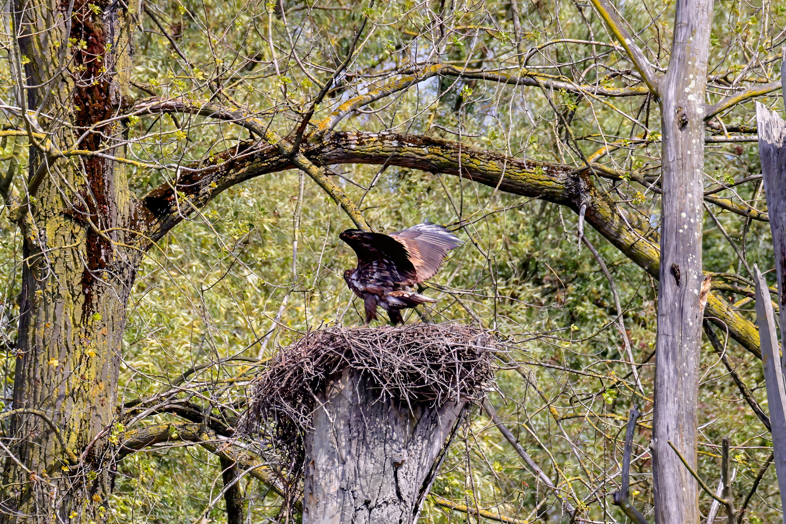 In der warmen Jahreszeit lohnt sich ein genauer Blick auf die Jungseeadler der Bislicher Insel. Sie haben sich prächtig entwickelt und zeigen inzwischen beeindruckende Flugkünste.