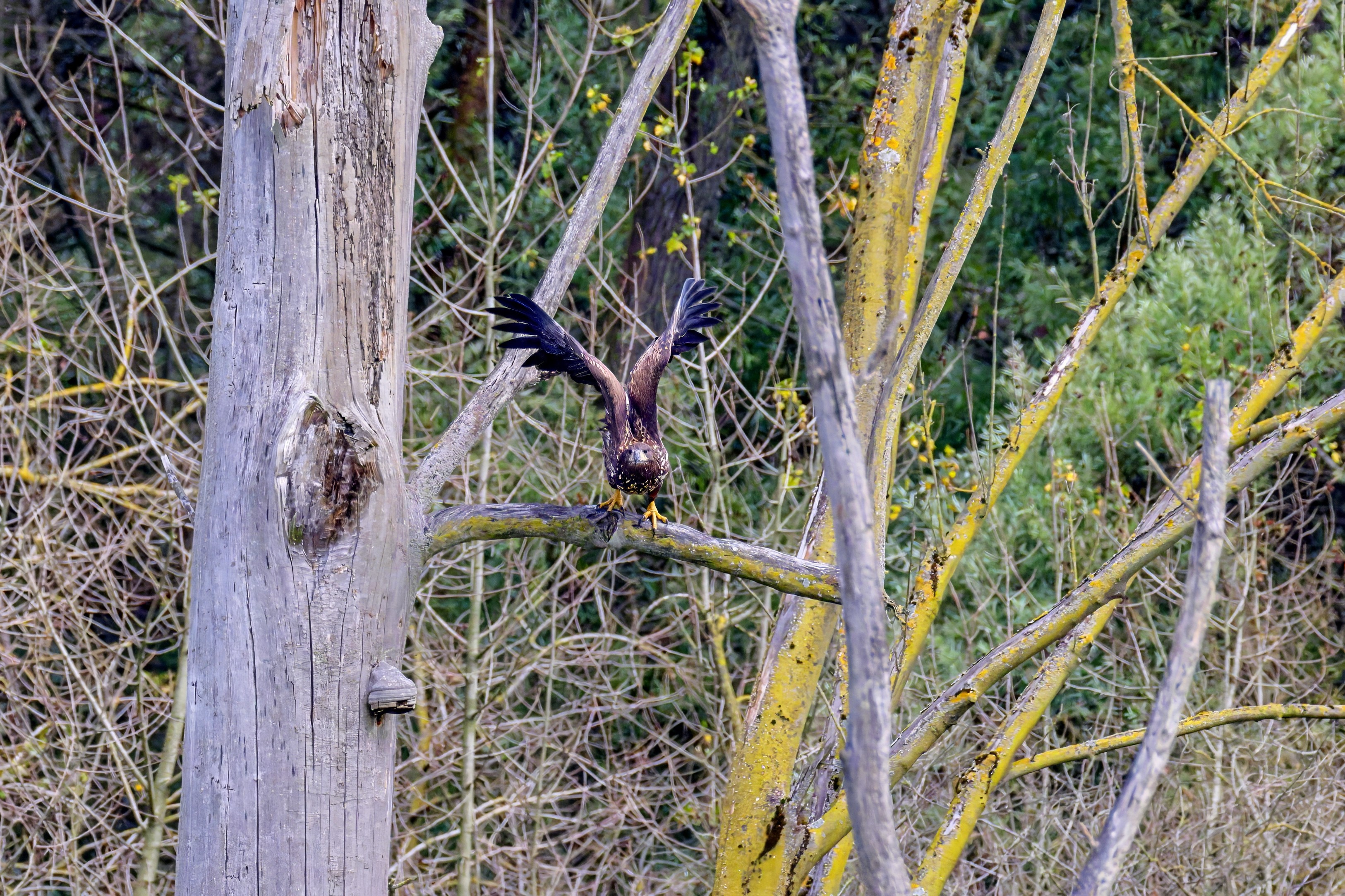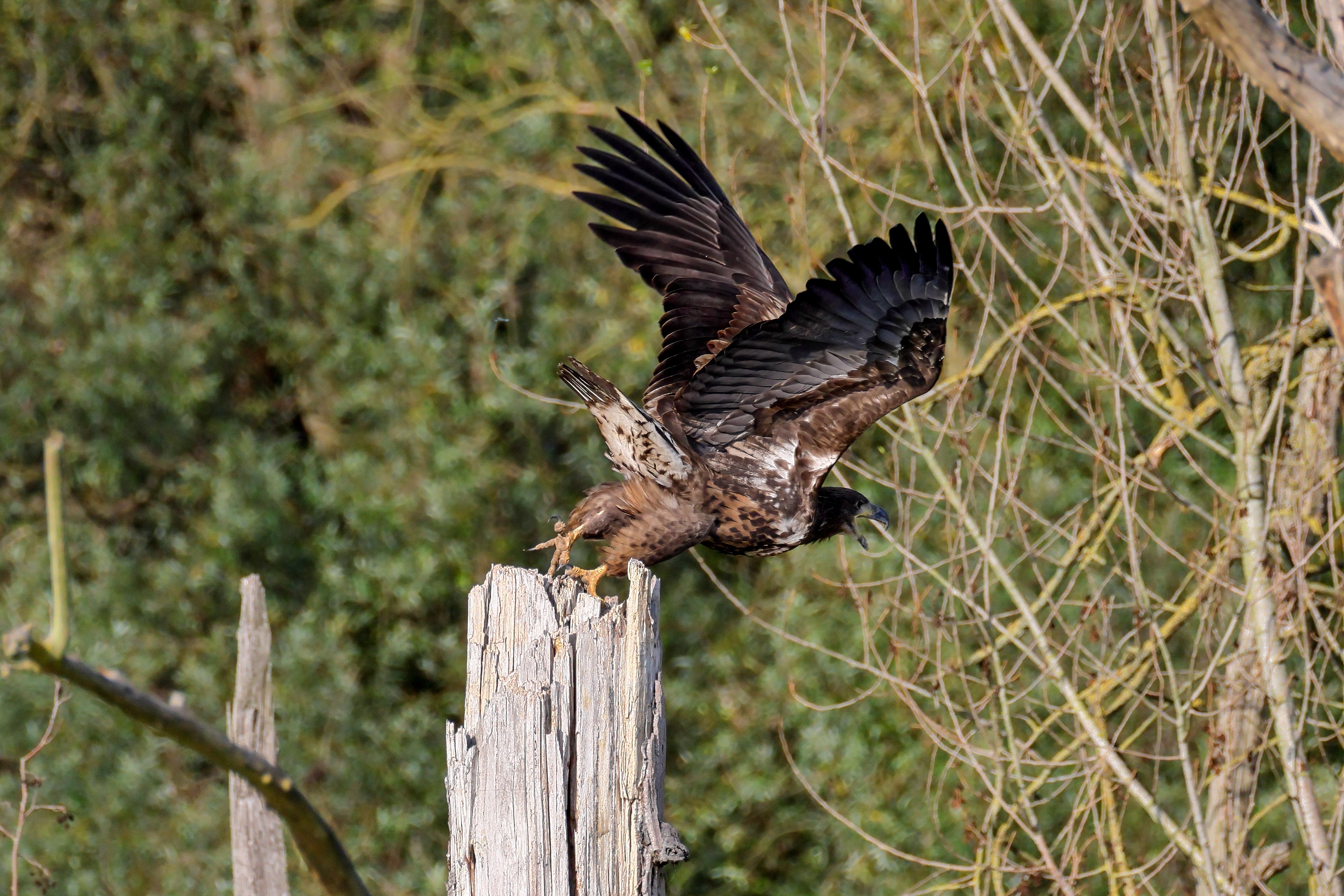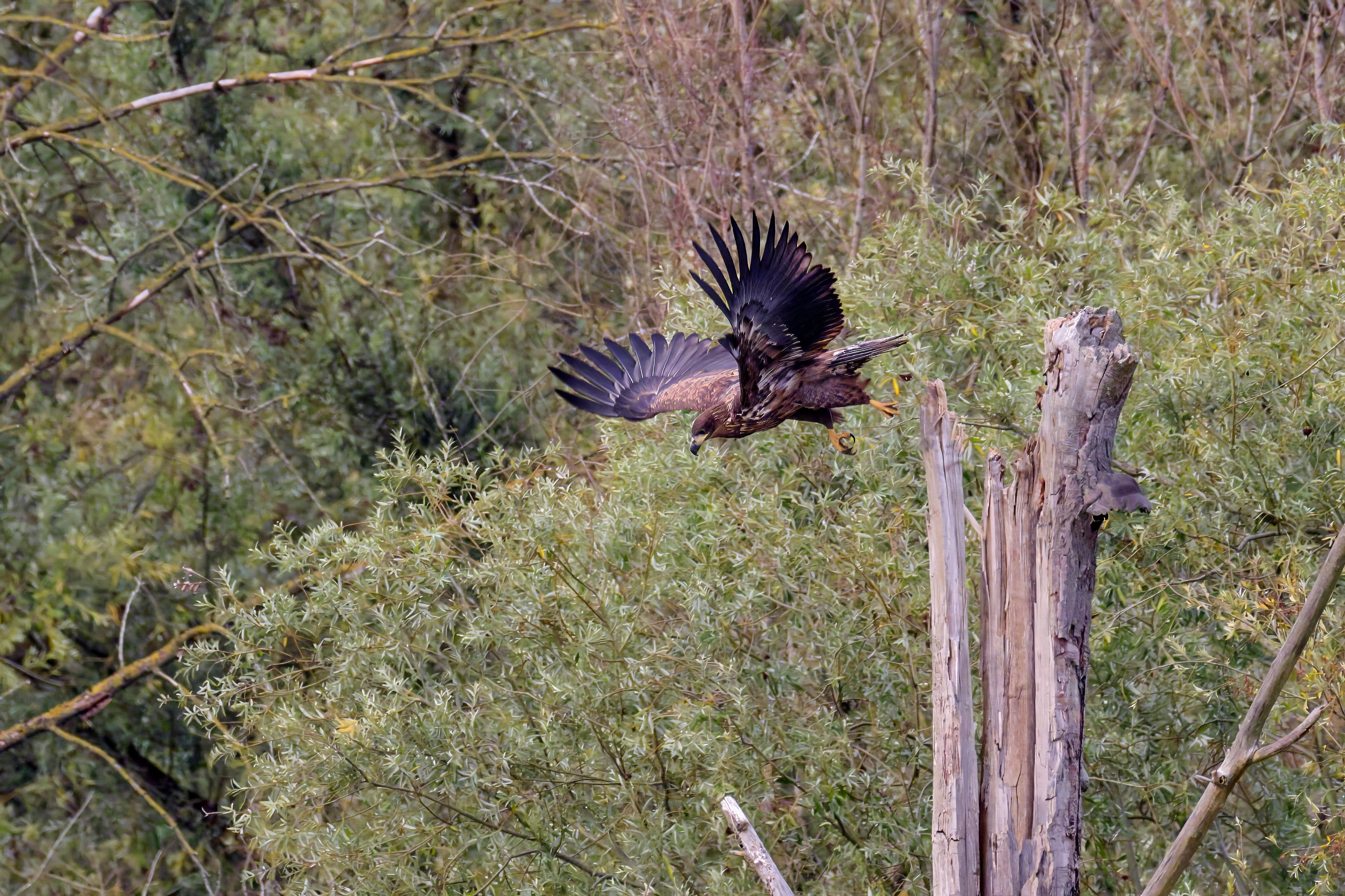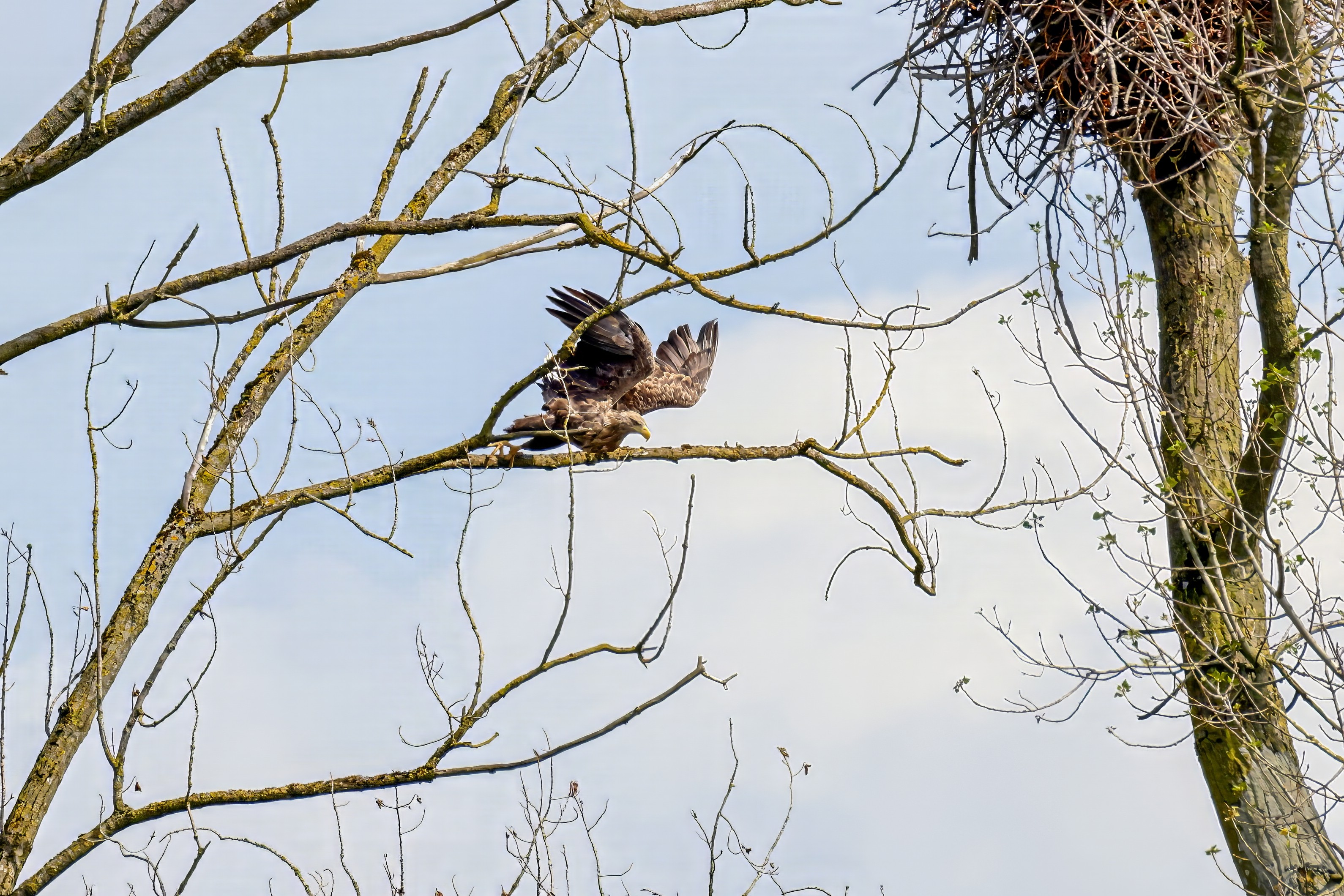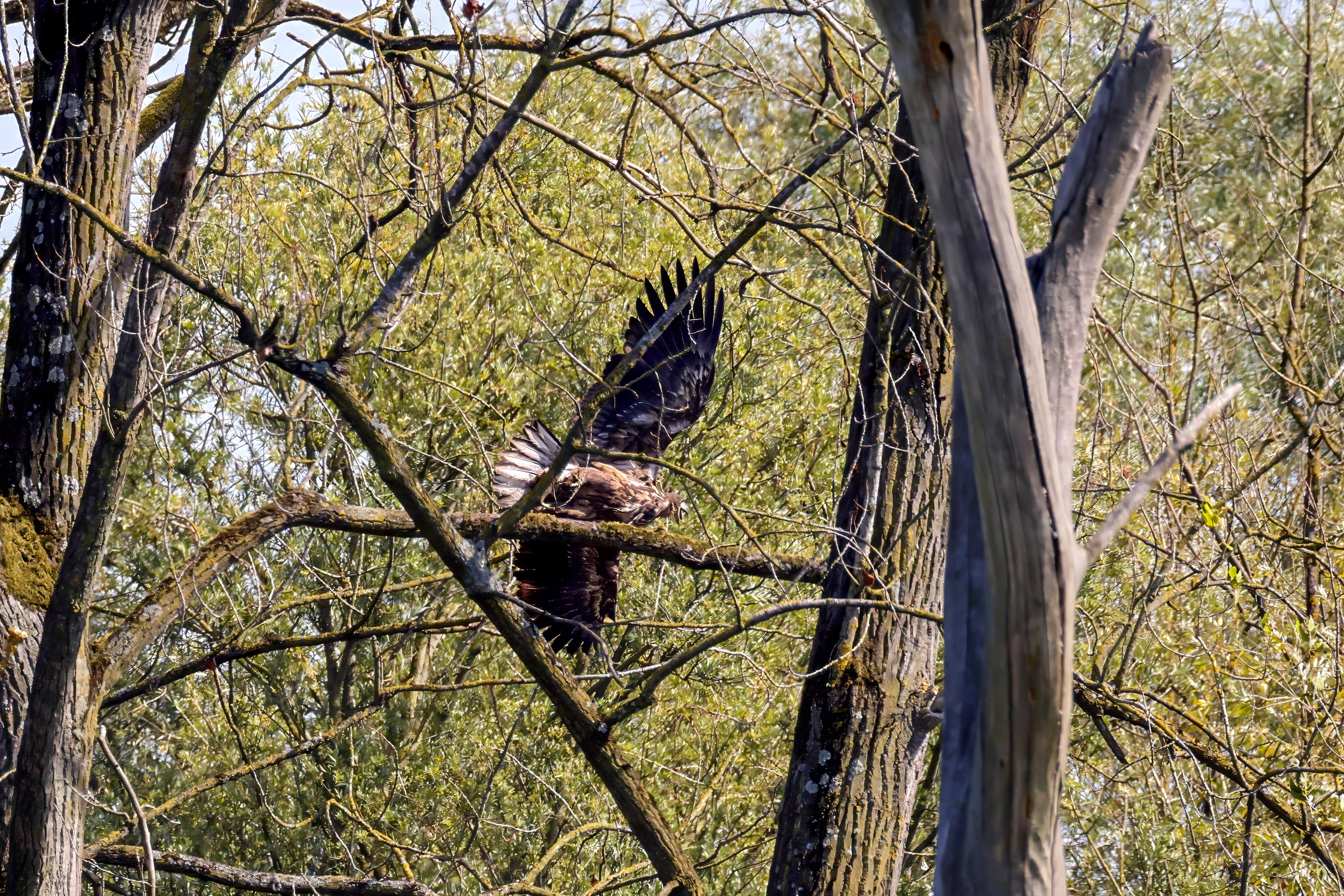 In der warmen Jahreszeit lohnt sich ein genauer Blick auf die Jungseeadler der Bislicher Insel. Sie haben sich prächtig entwickelt und zeigen inzwischen beeindruckende Flugkünste.