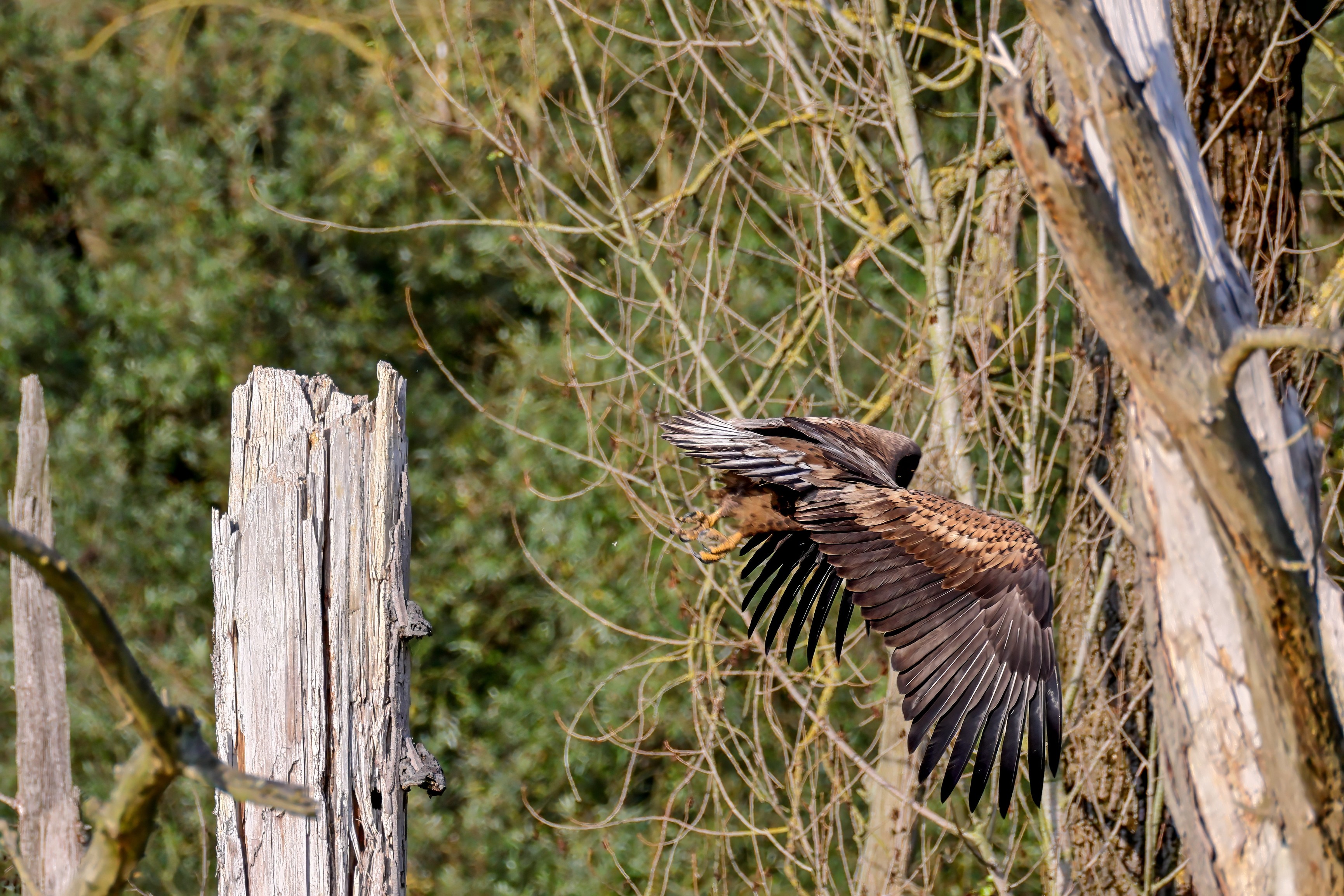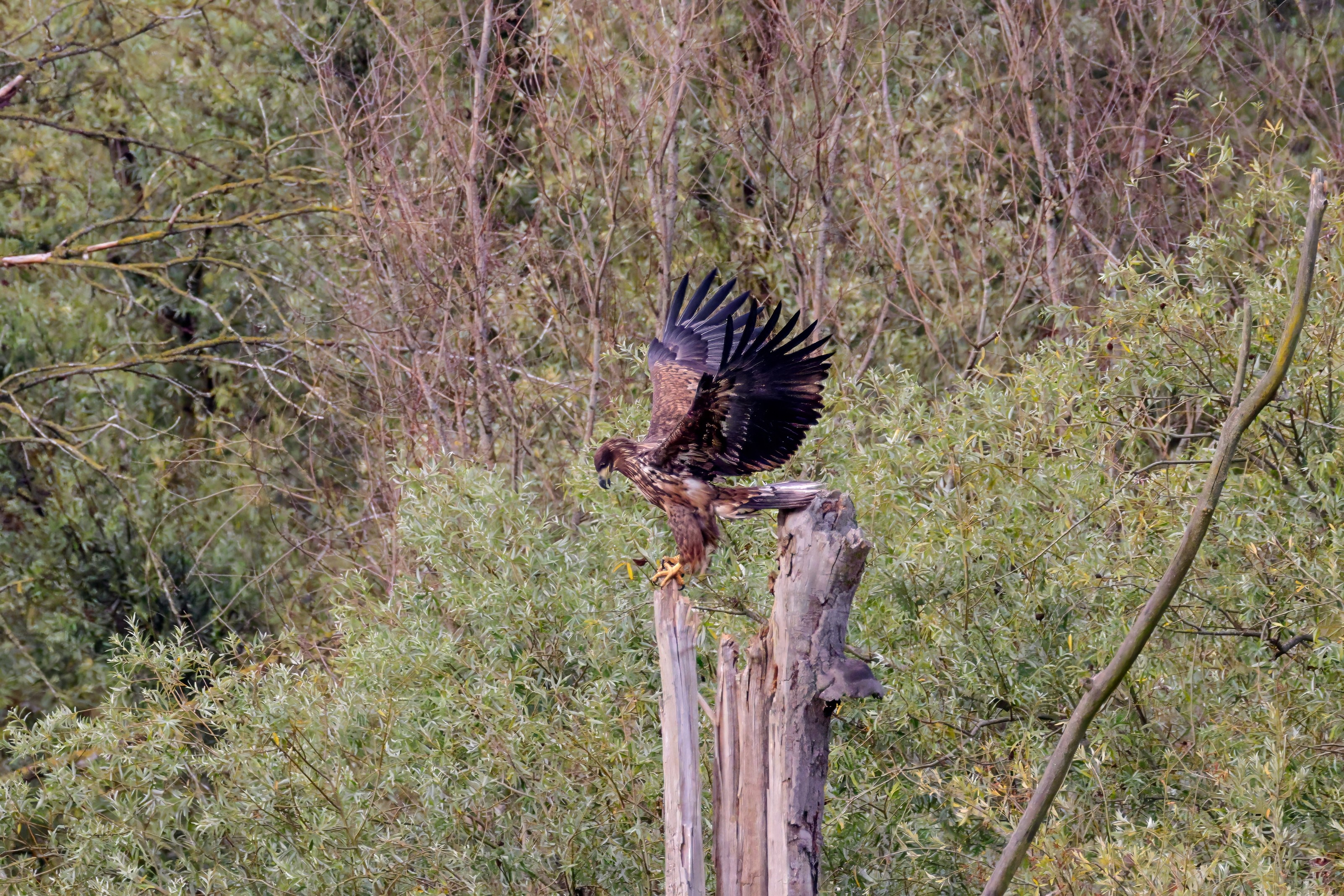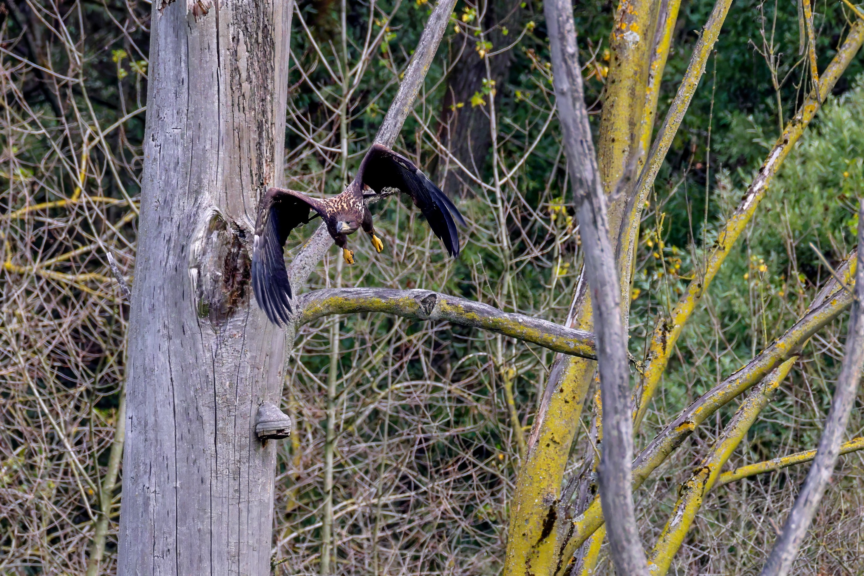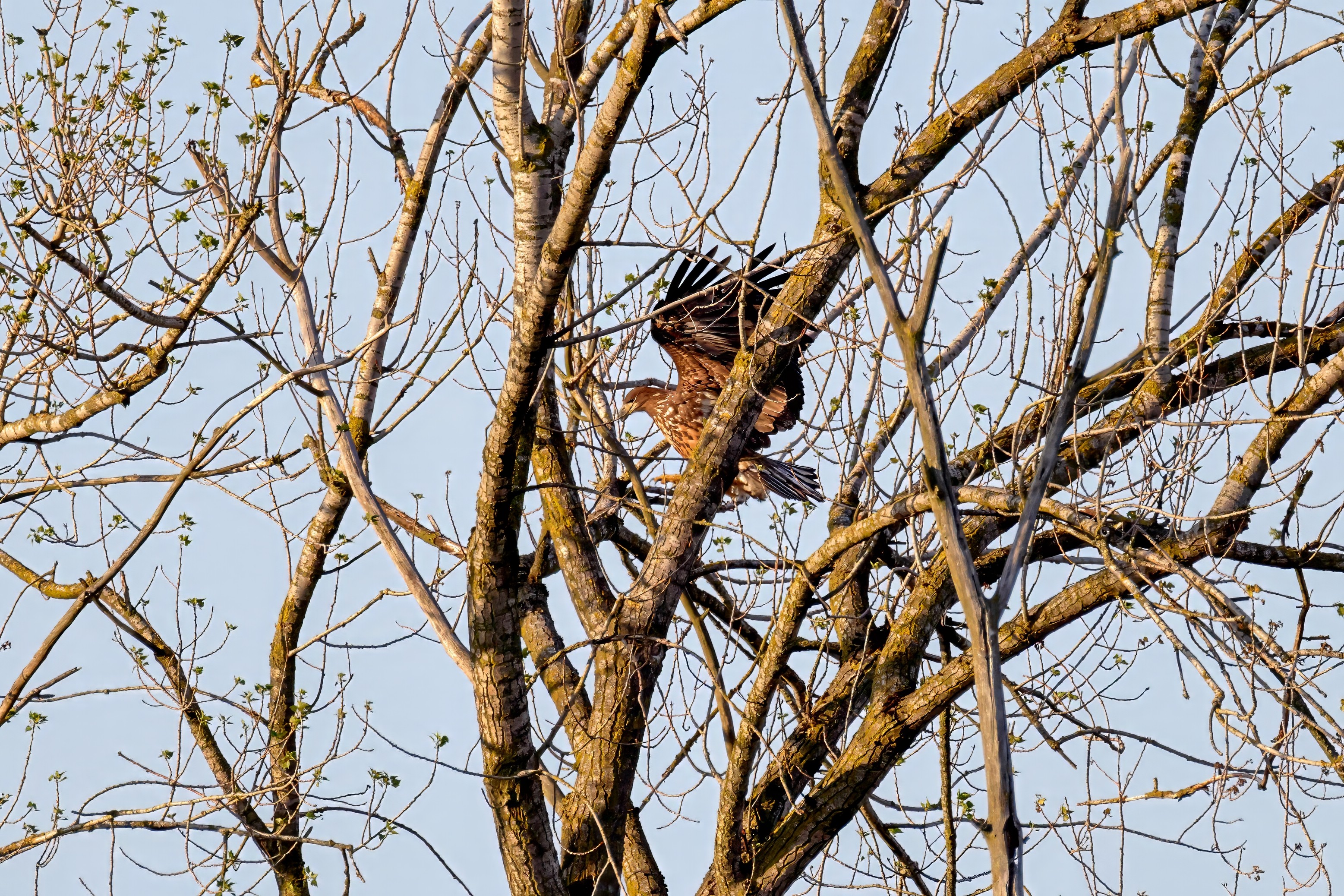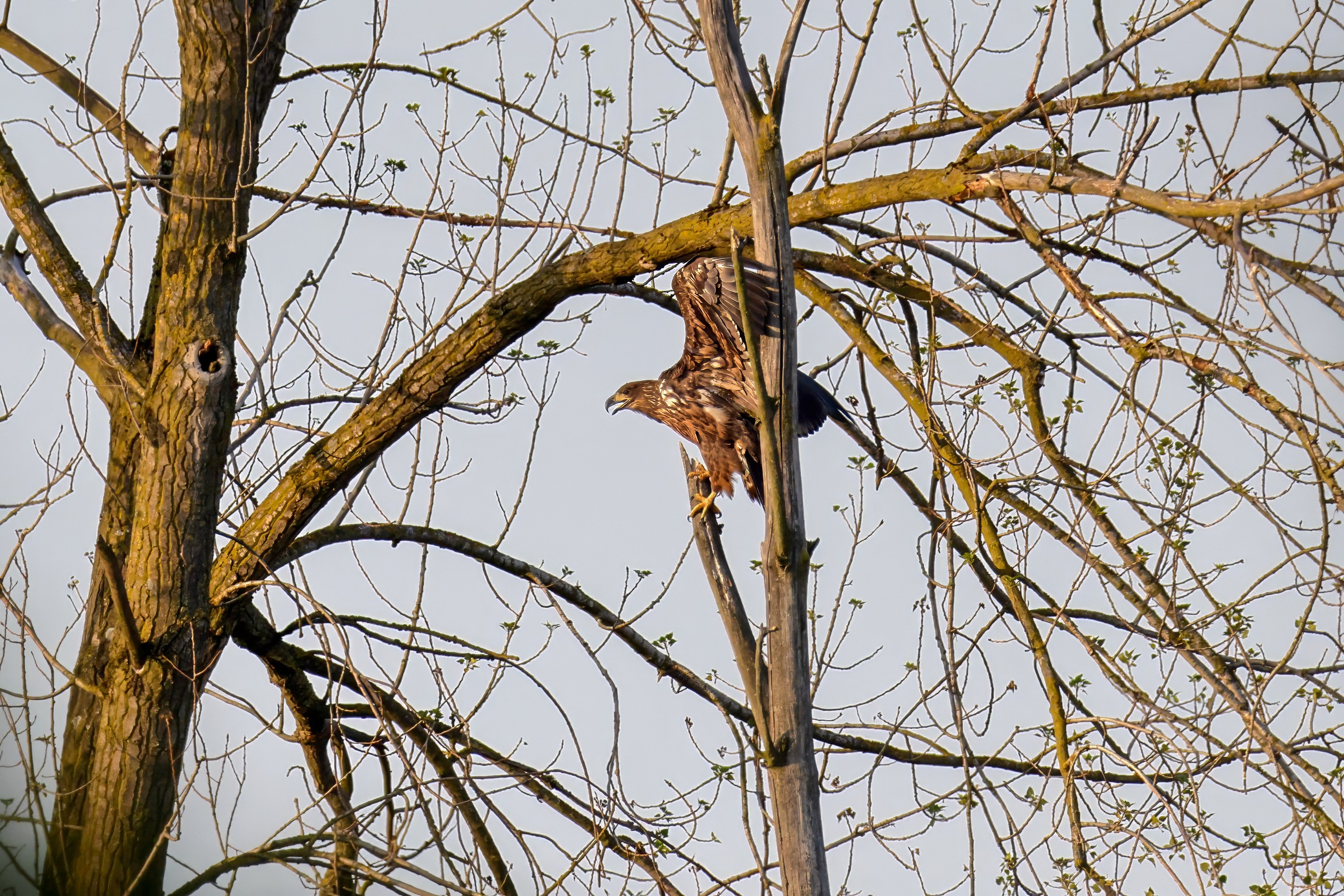 In der warmen Jahreszeit lohnt sich ein genauer Blick auf die Jungseeadler der Bislicher Insel. Sie haben sich prächtig entwickelt und zeigen inzwischen beeindruckende Flugkünste.