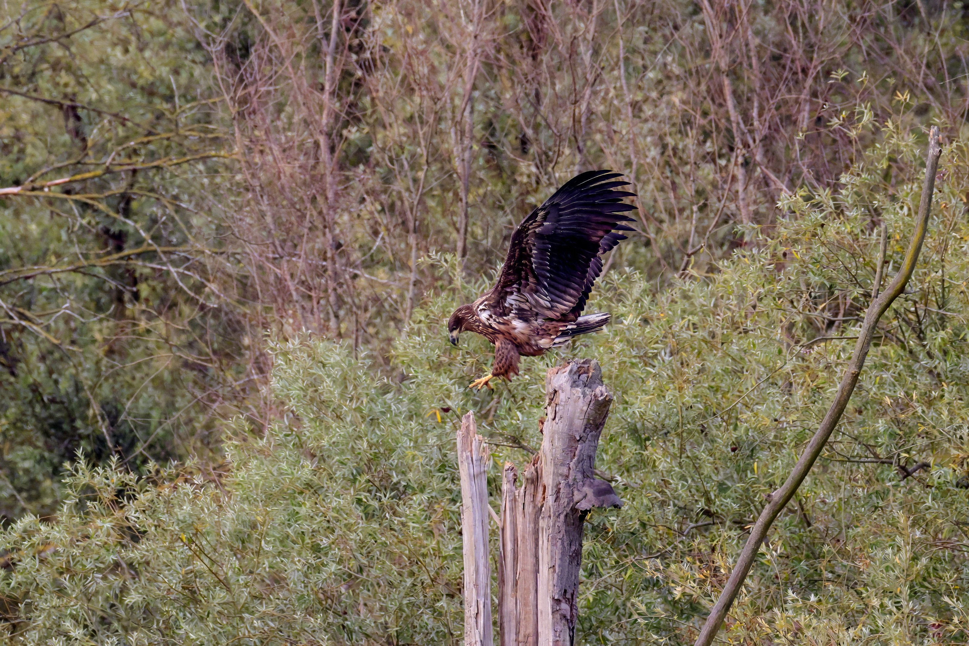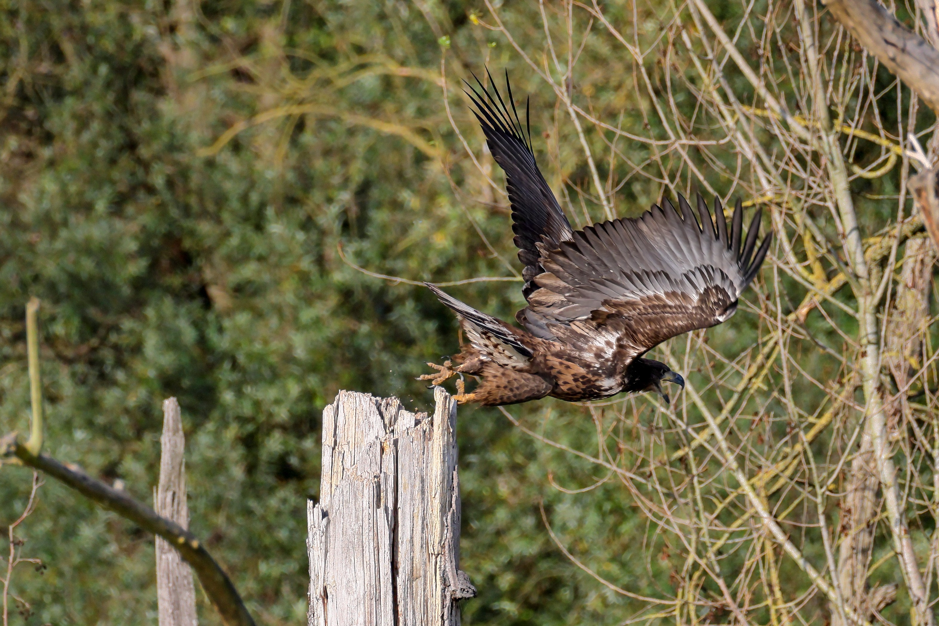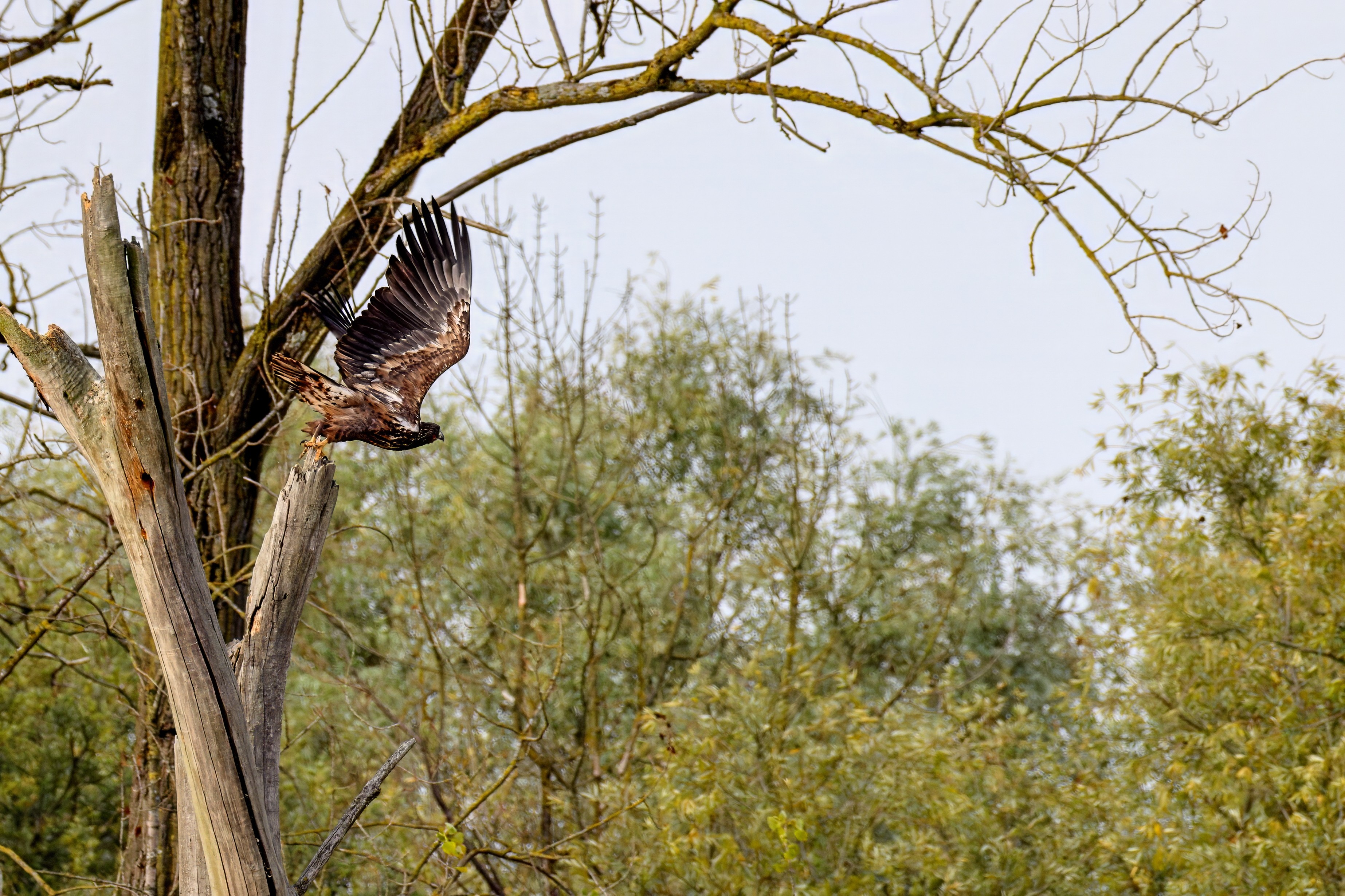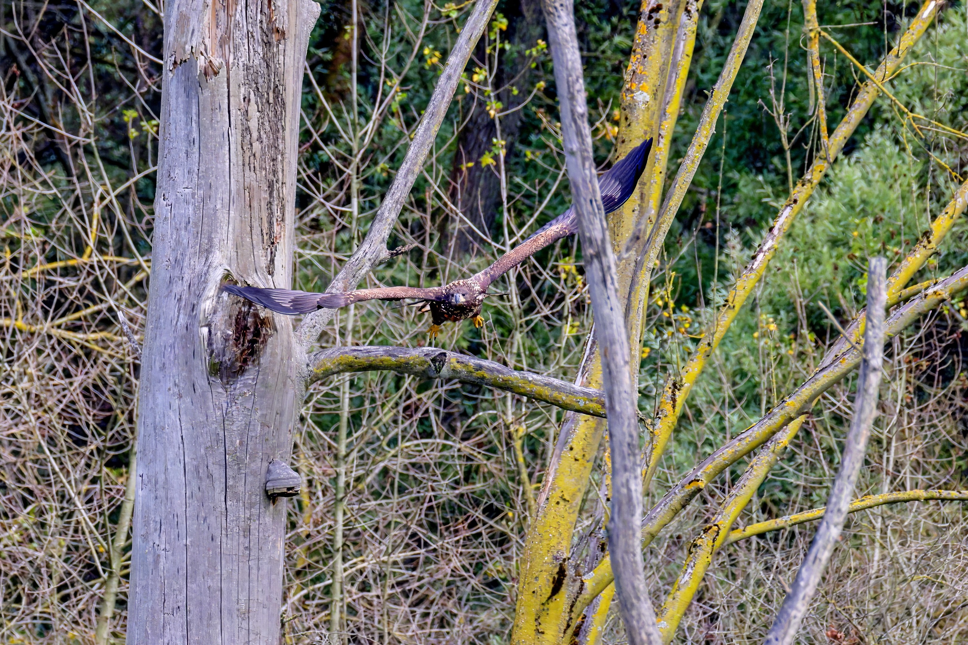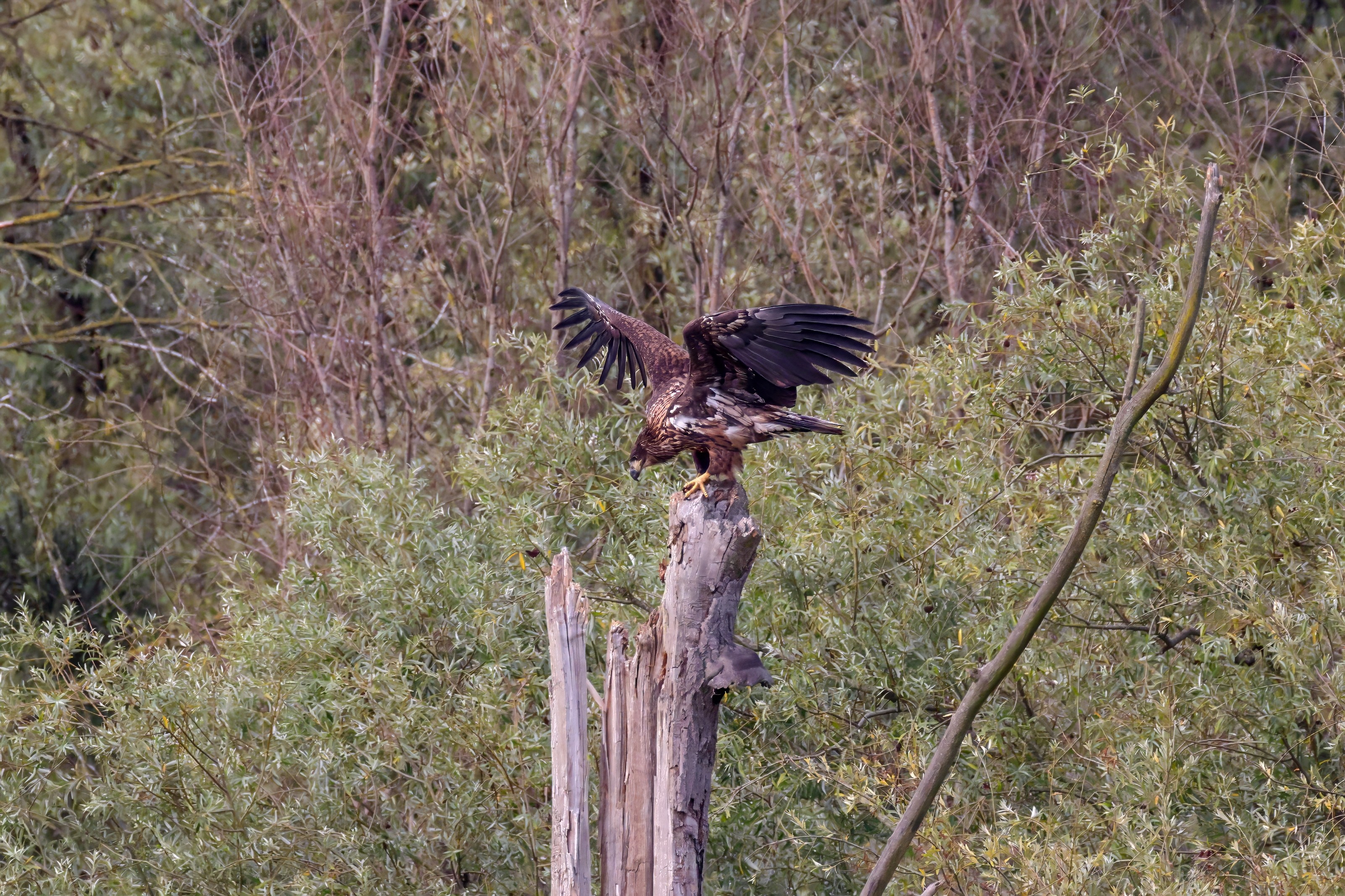 In der warmen Jahreszeit lohnt sich ein genauer Blick auf die Jungseeadler der Bislicher Insel. Sie haben sich prächtig entwickelt und zeigen inzwischen beeindruckende Flugkünste.